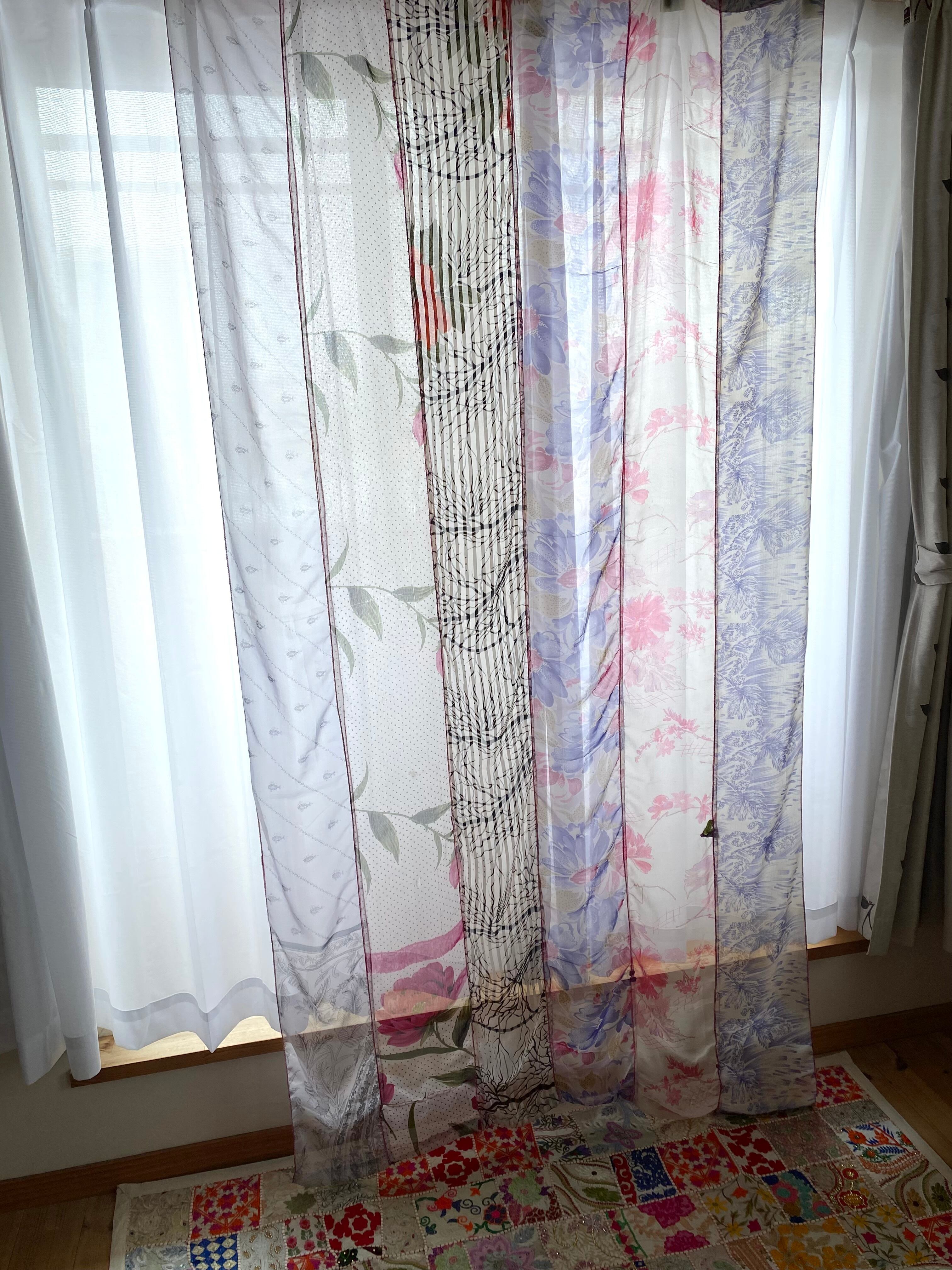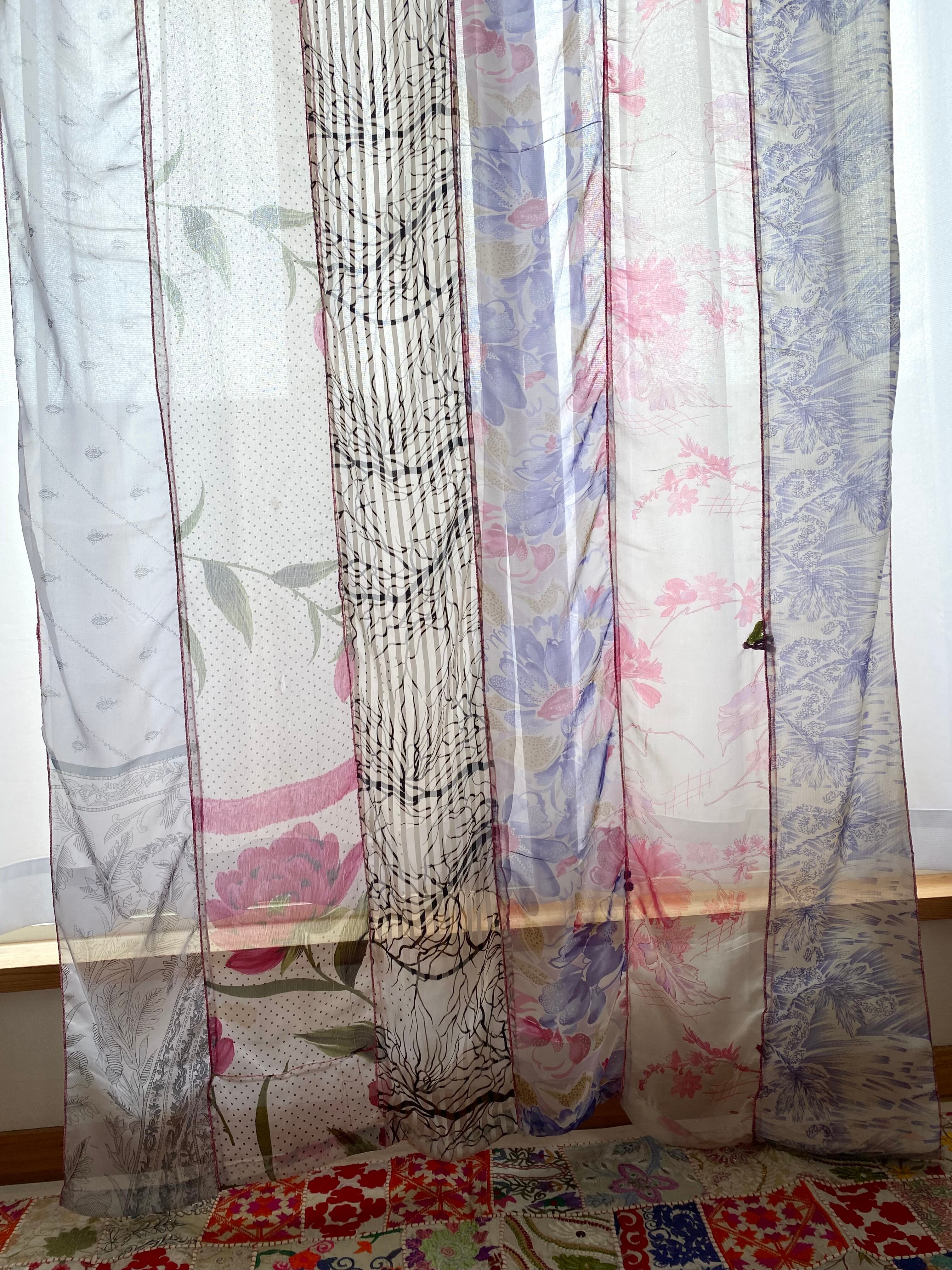 ヴィンテージサリーで出来たパッチワークシルクカーテン