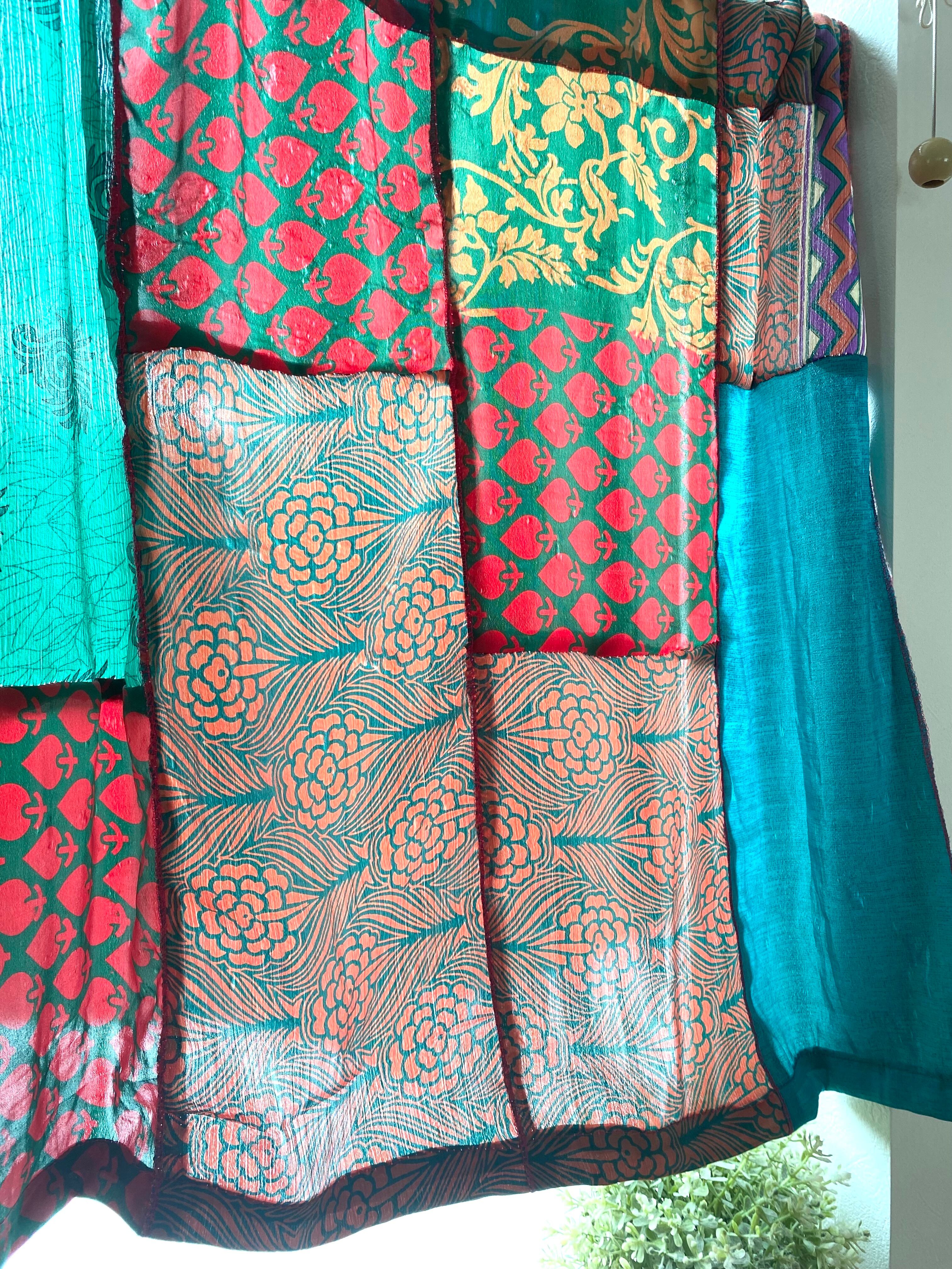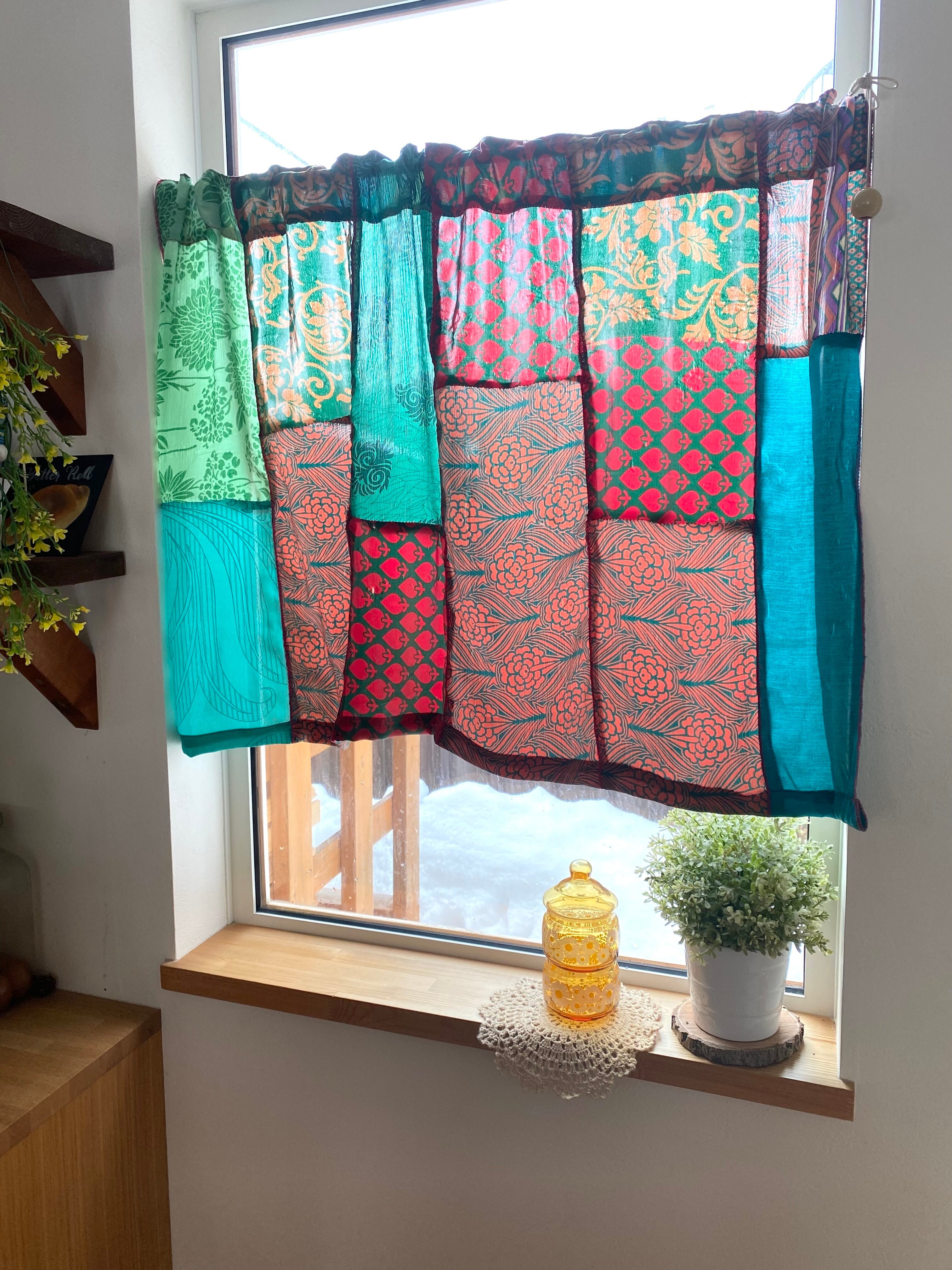 ヴィンテージサリーで出来たパッチワークシルクカーテン