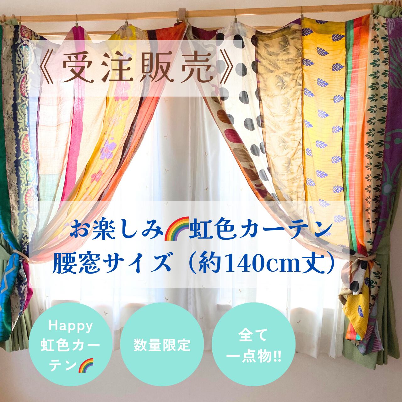 ※以前までの虹色腰窓サイズカーテンと変更点がございます!!(必ずお読みください!!)