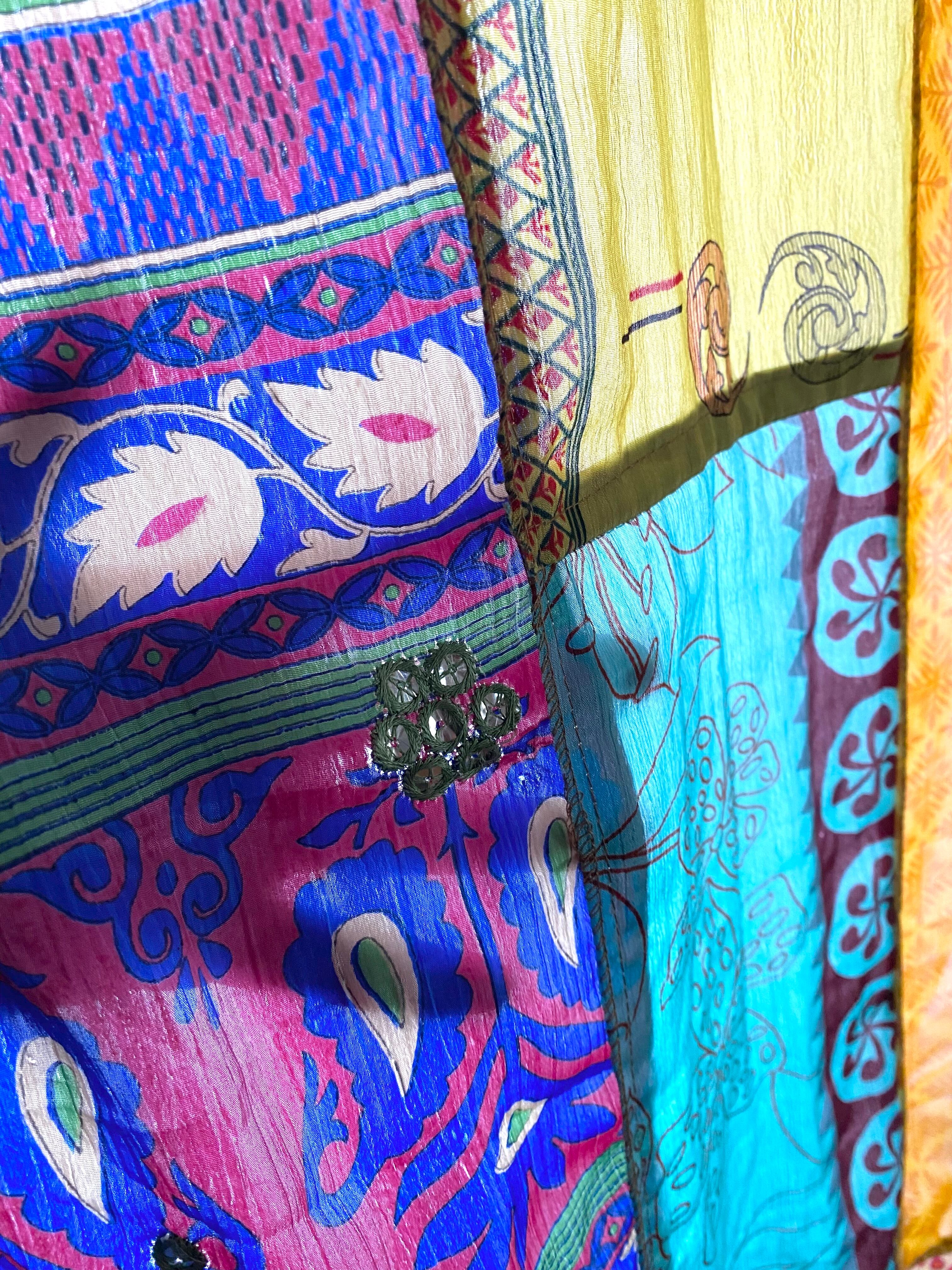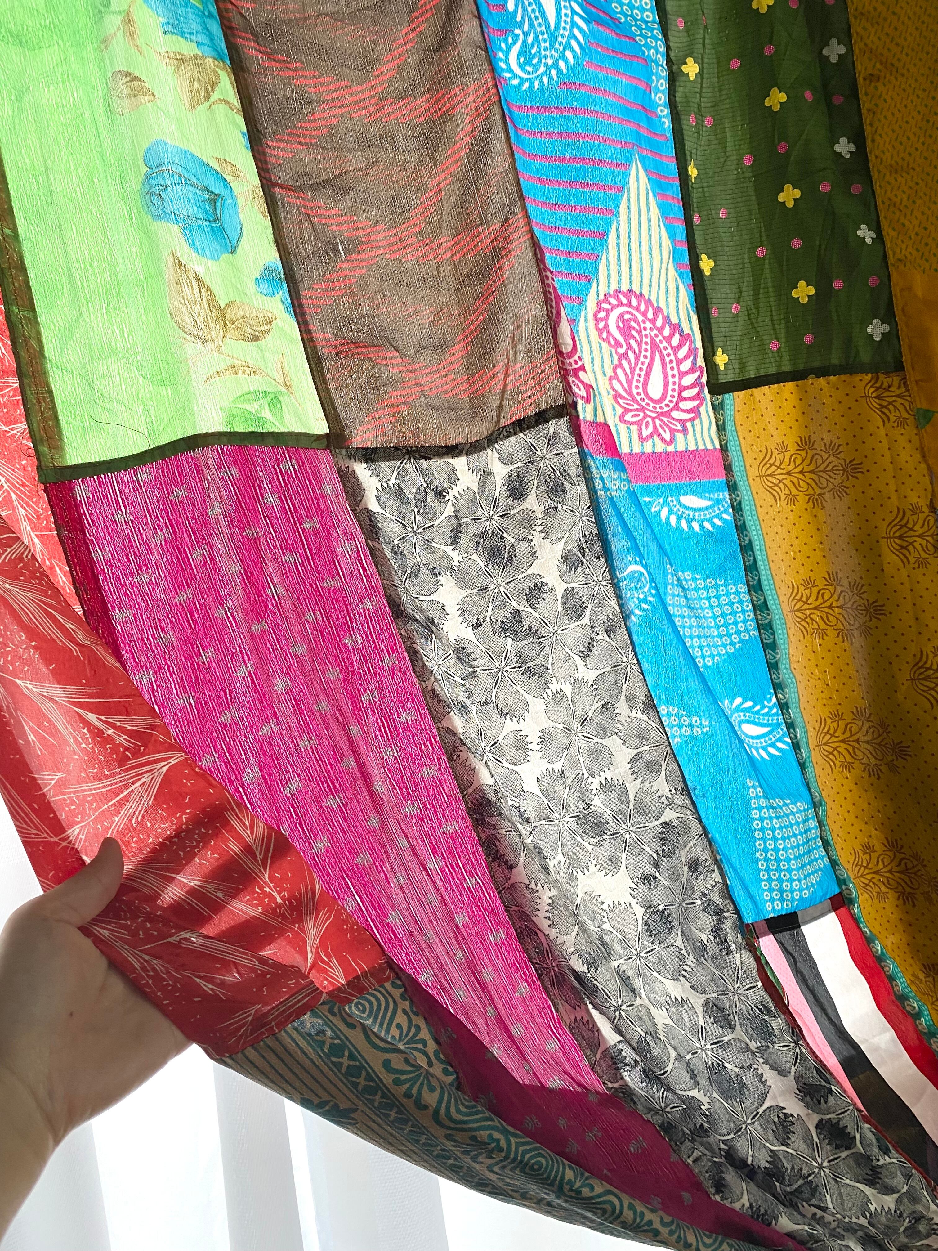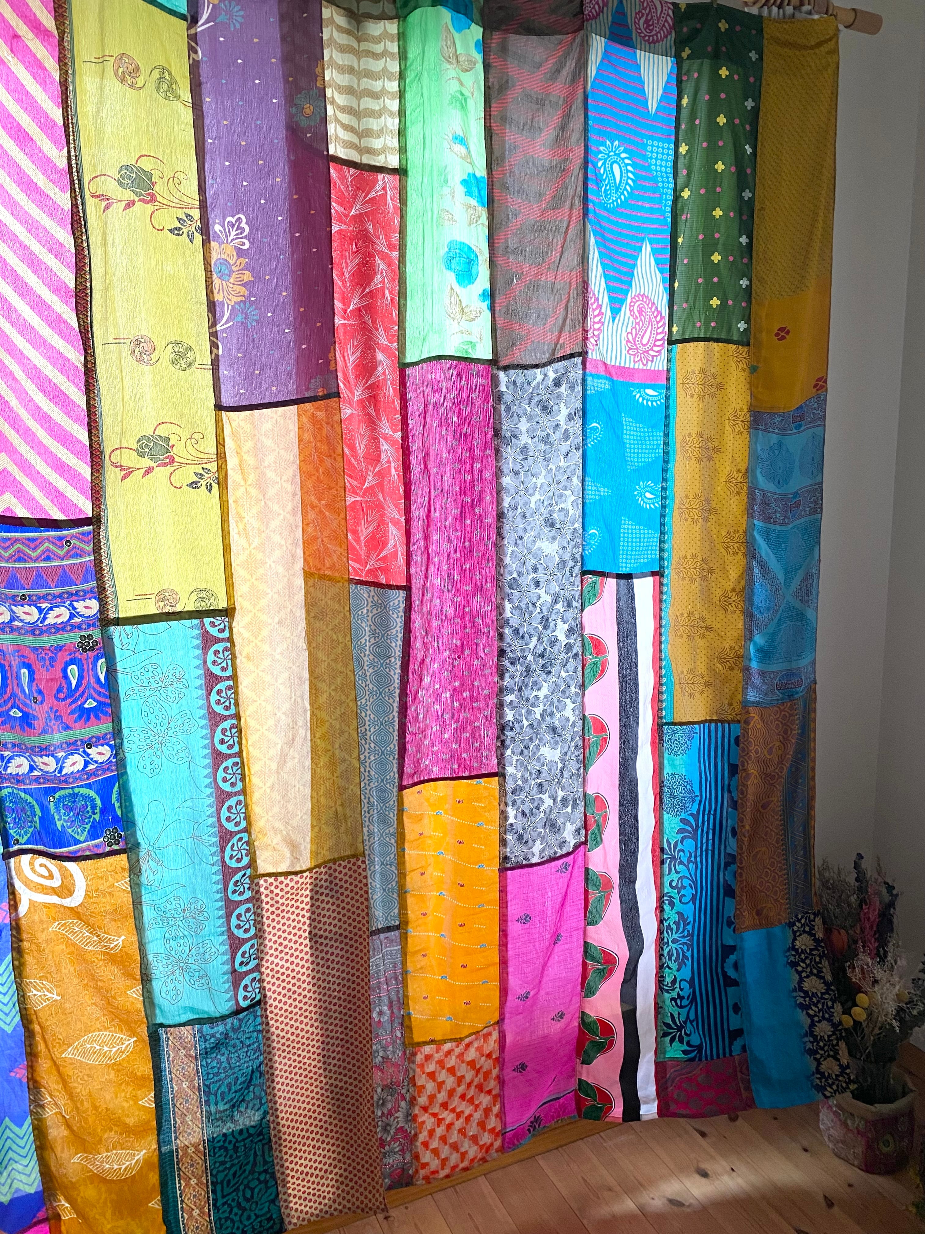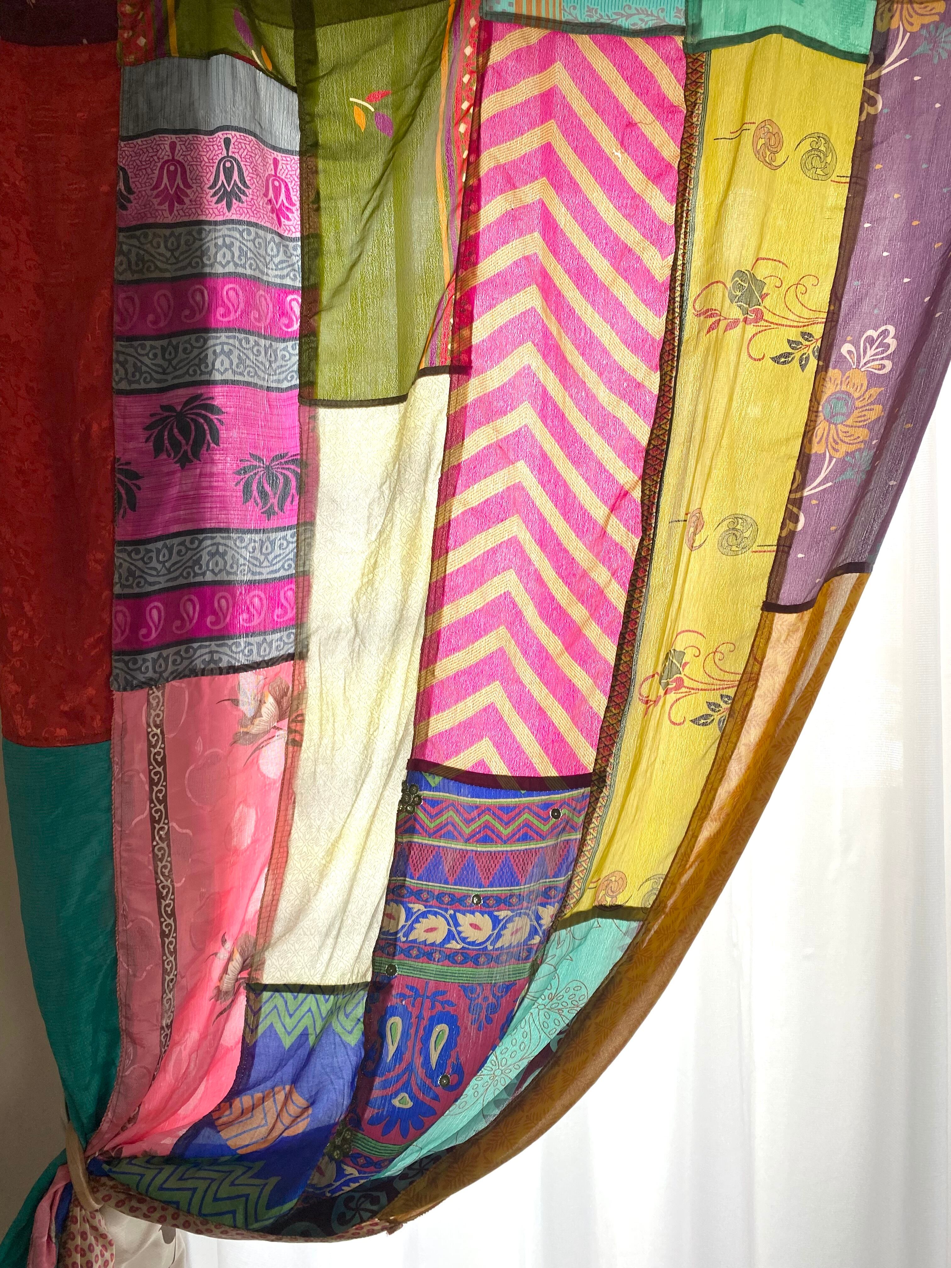 ヴィンテージサリーで出来たパッチワークシルクカーテン