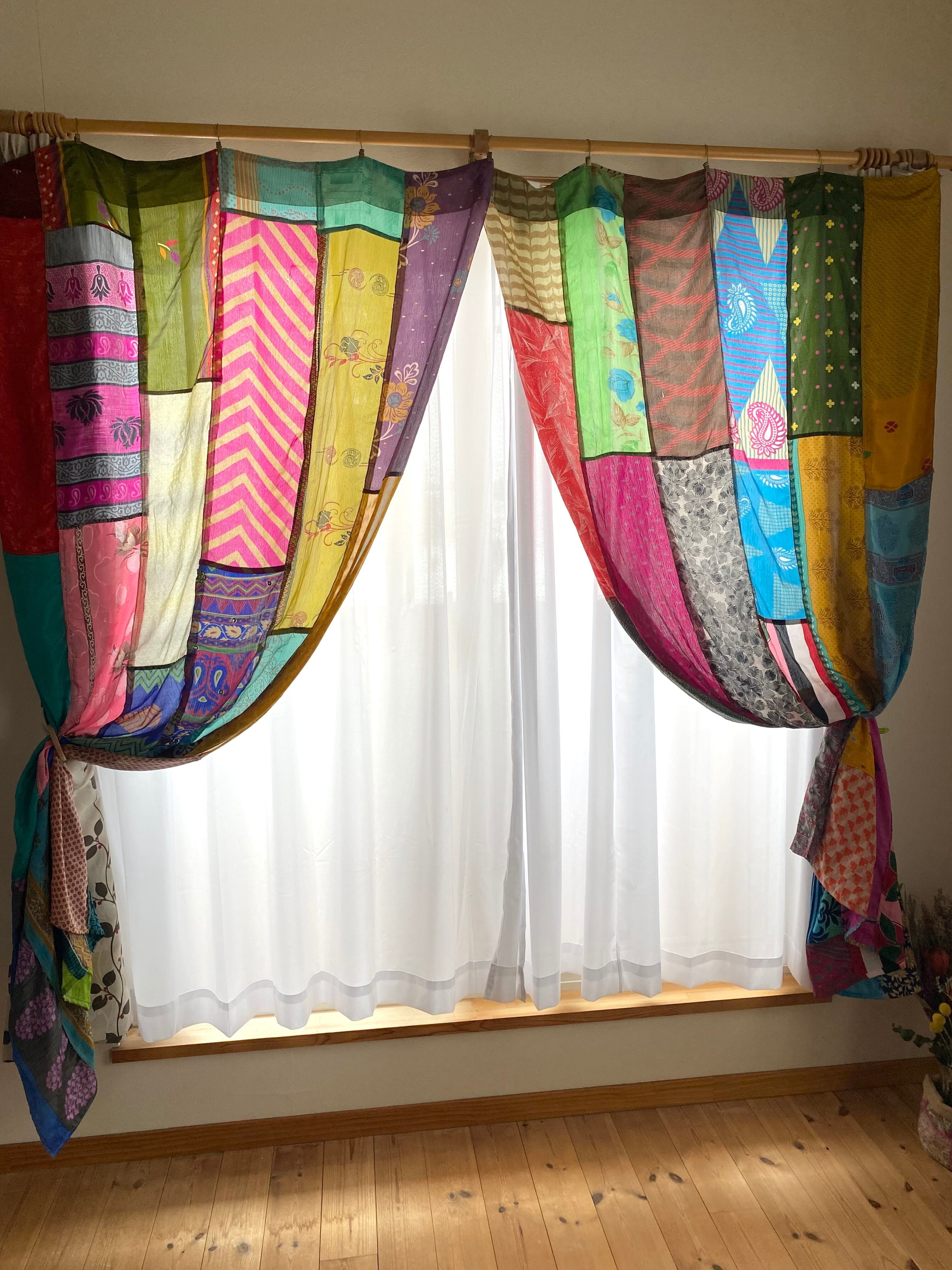 ※カーテンとしては新品未使用ですが、布はヴィンテージサリーを使っております。