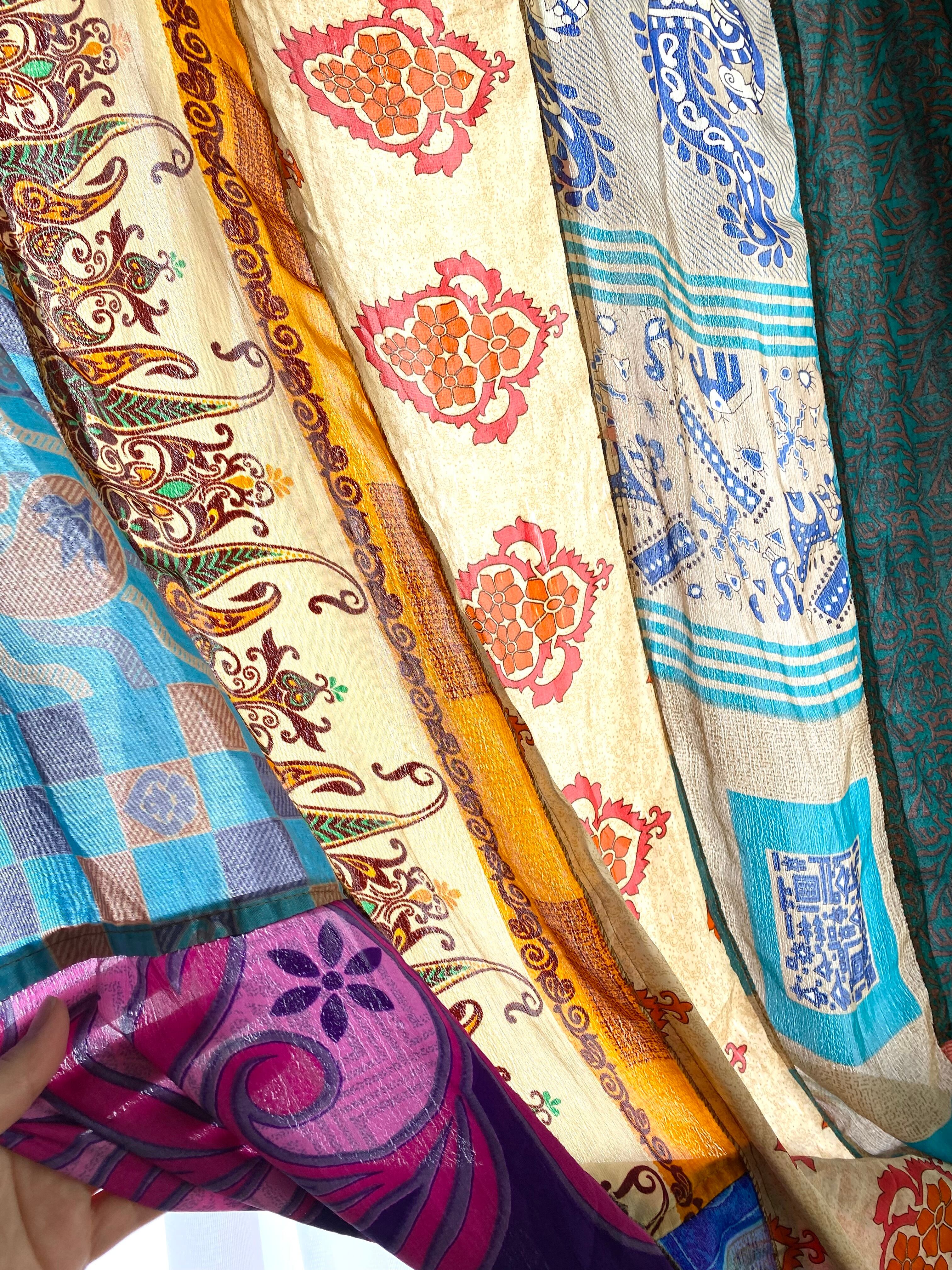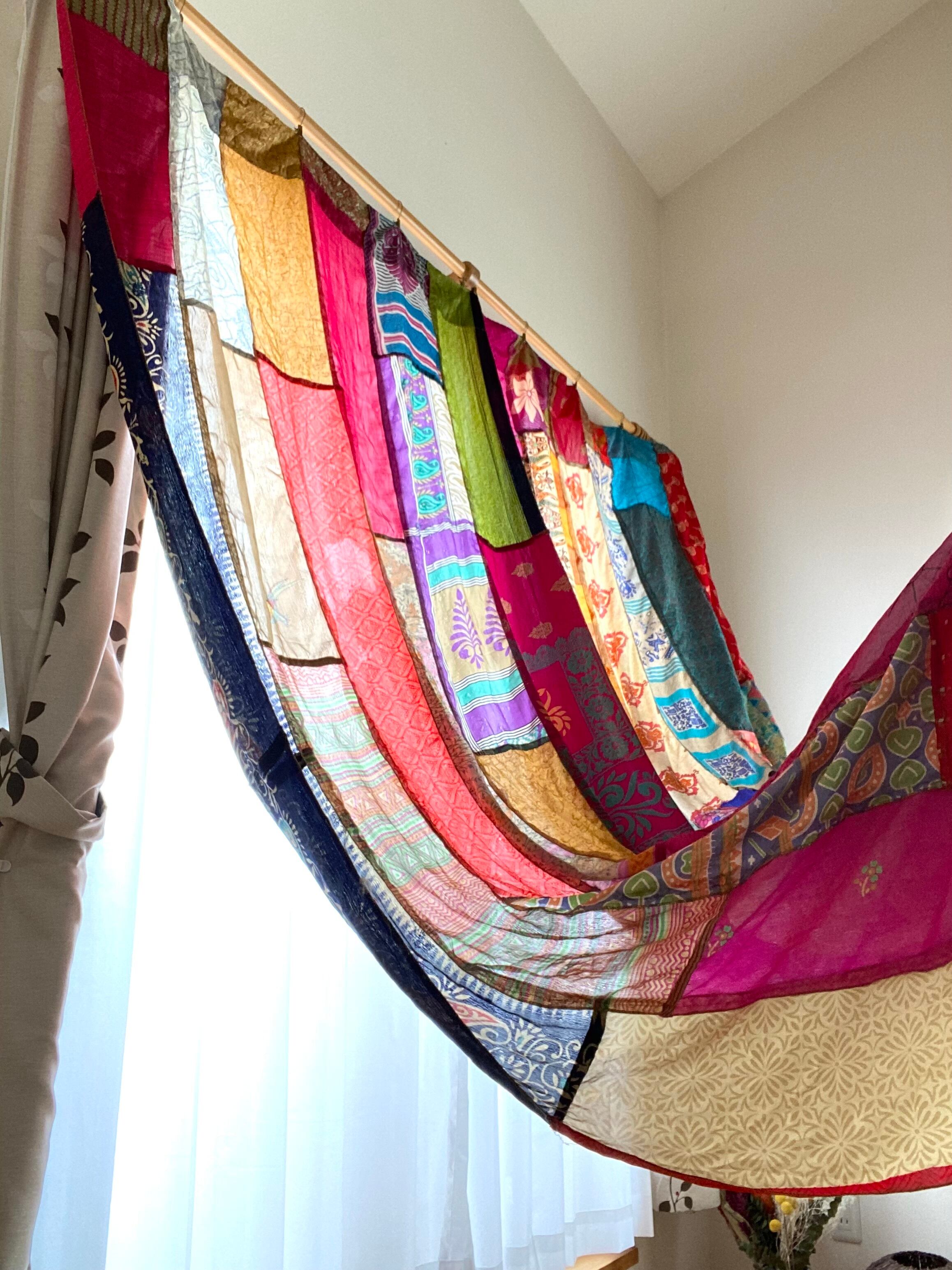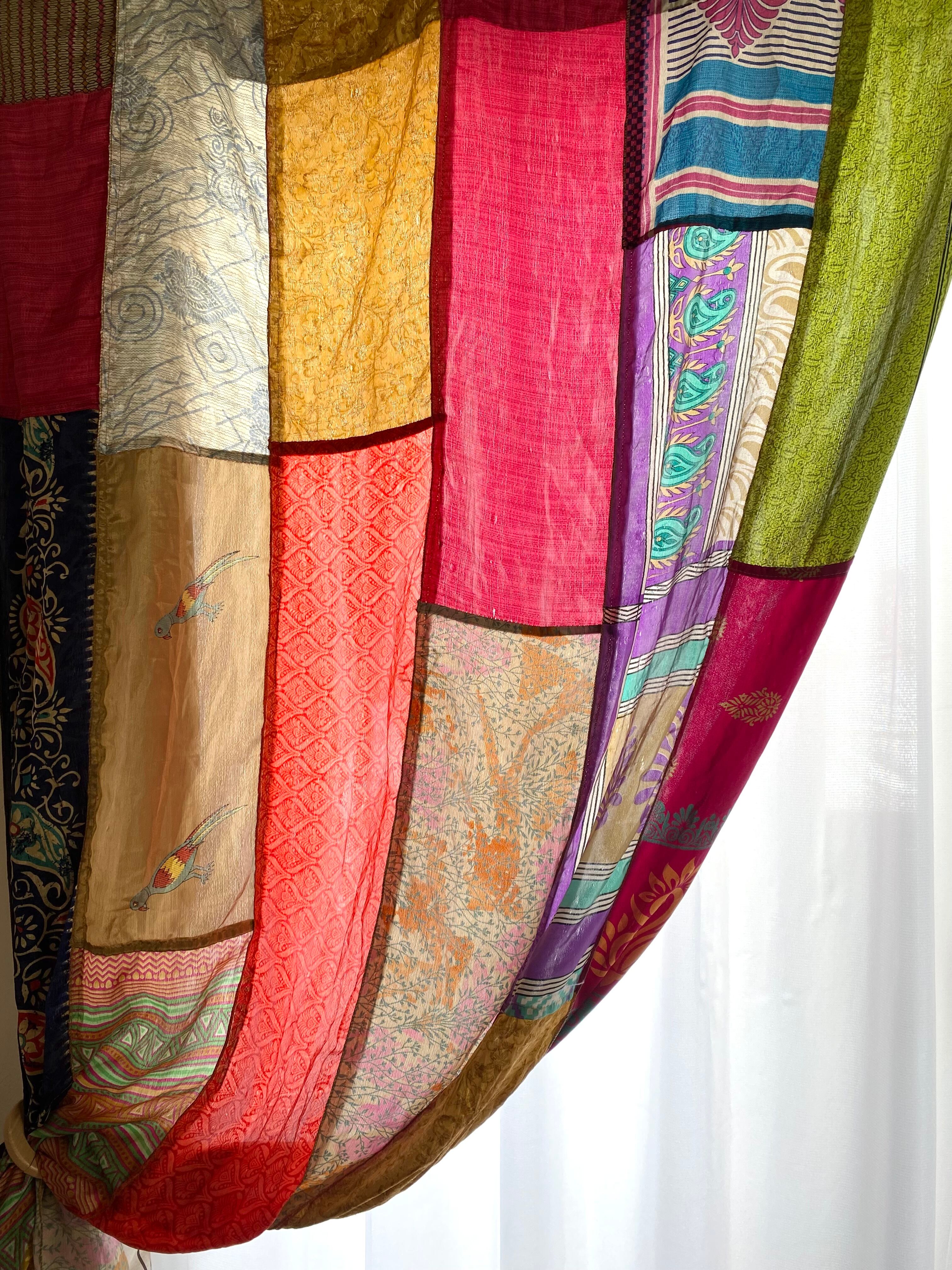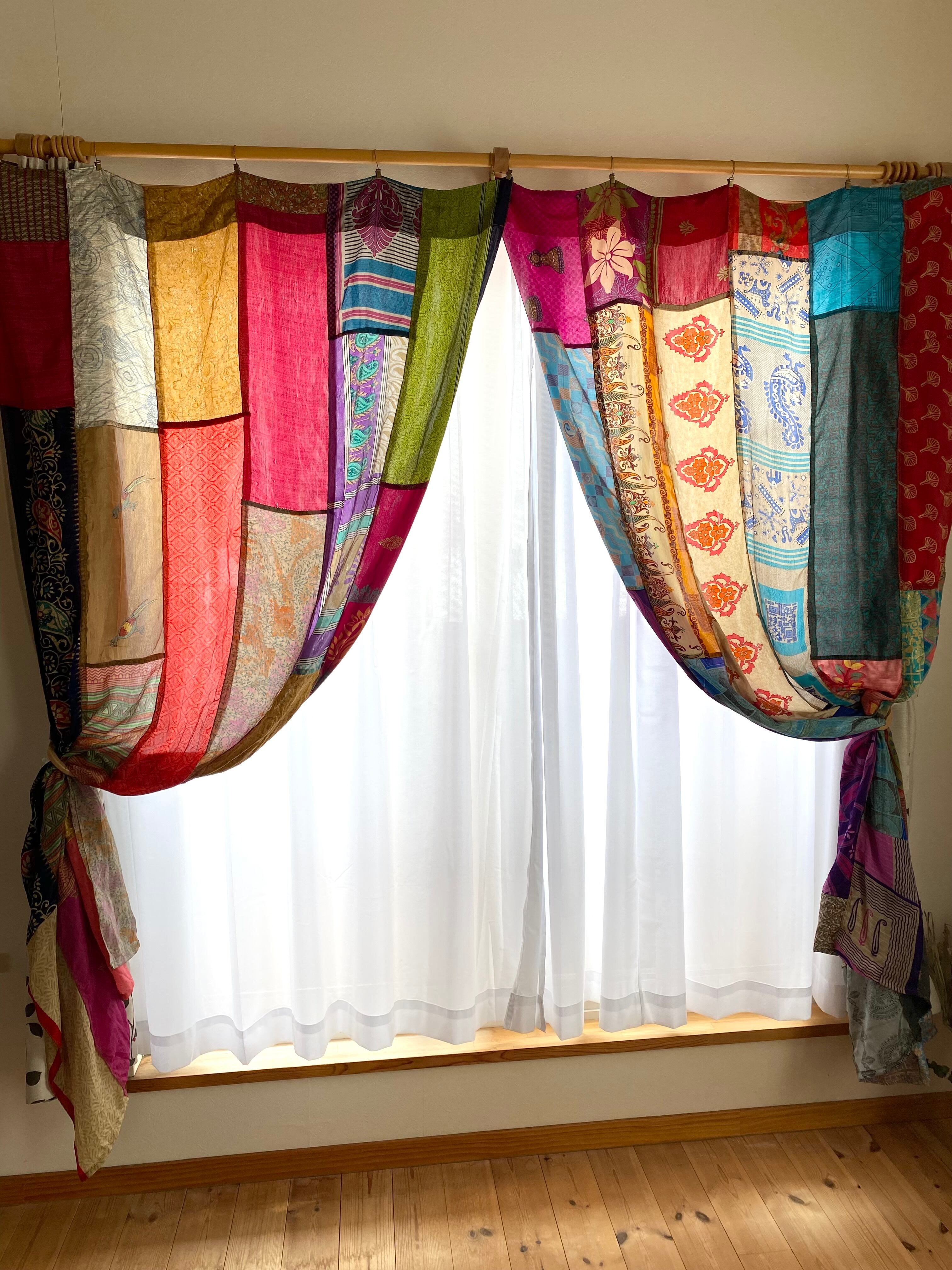ヴィンテージサリーで出来たパッチワークシルクカーテン