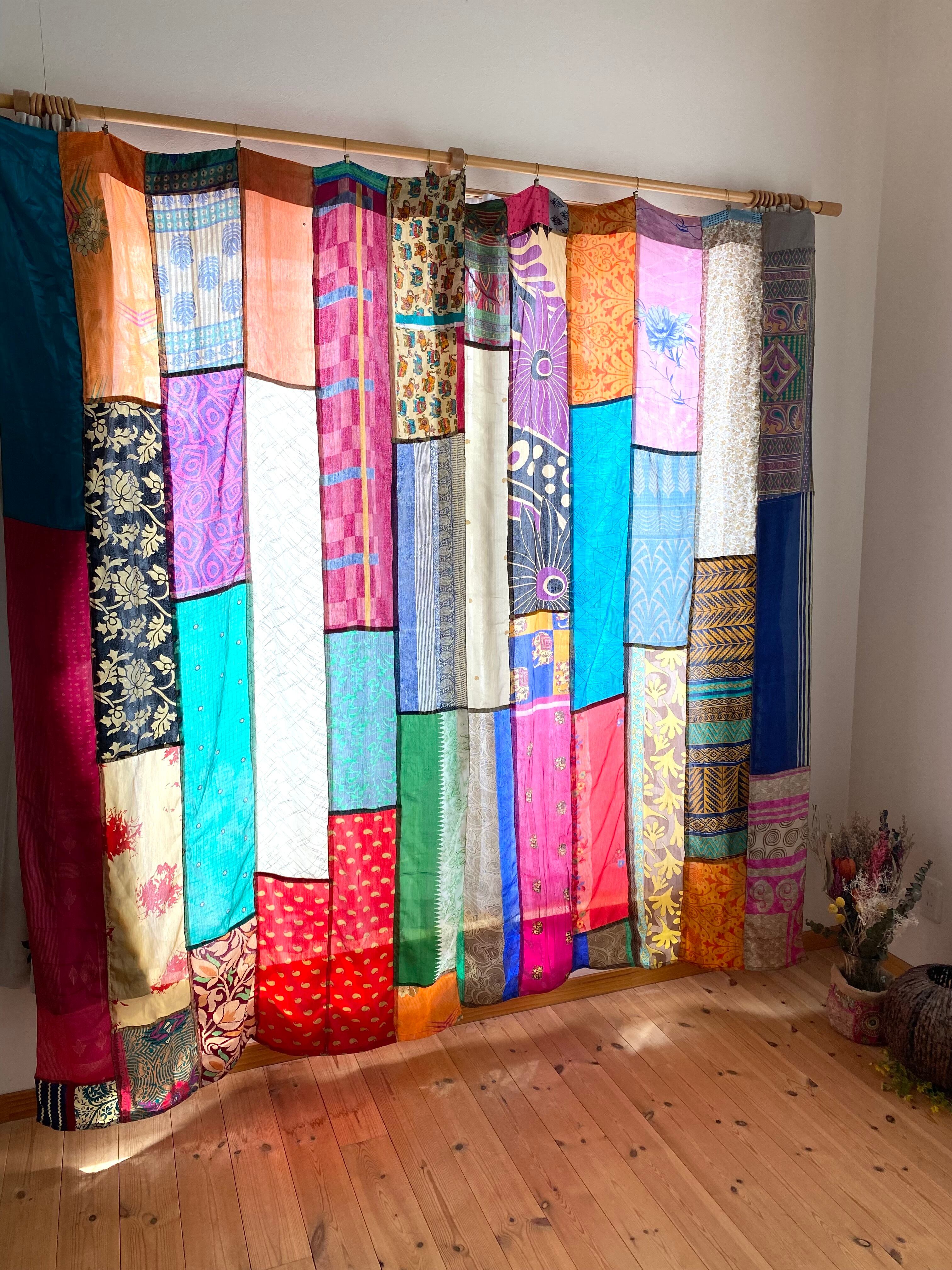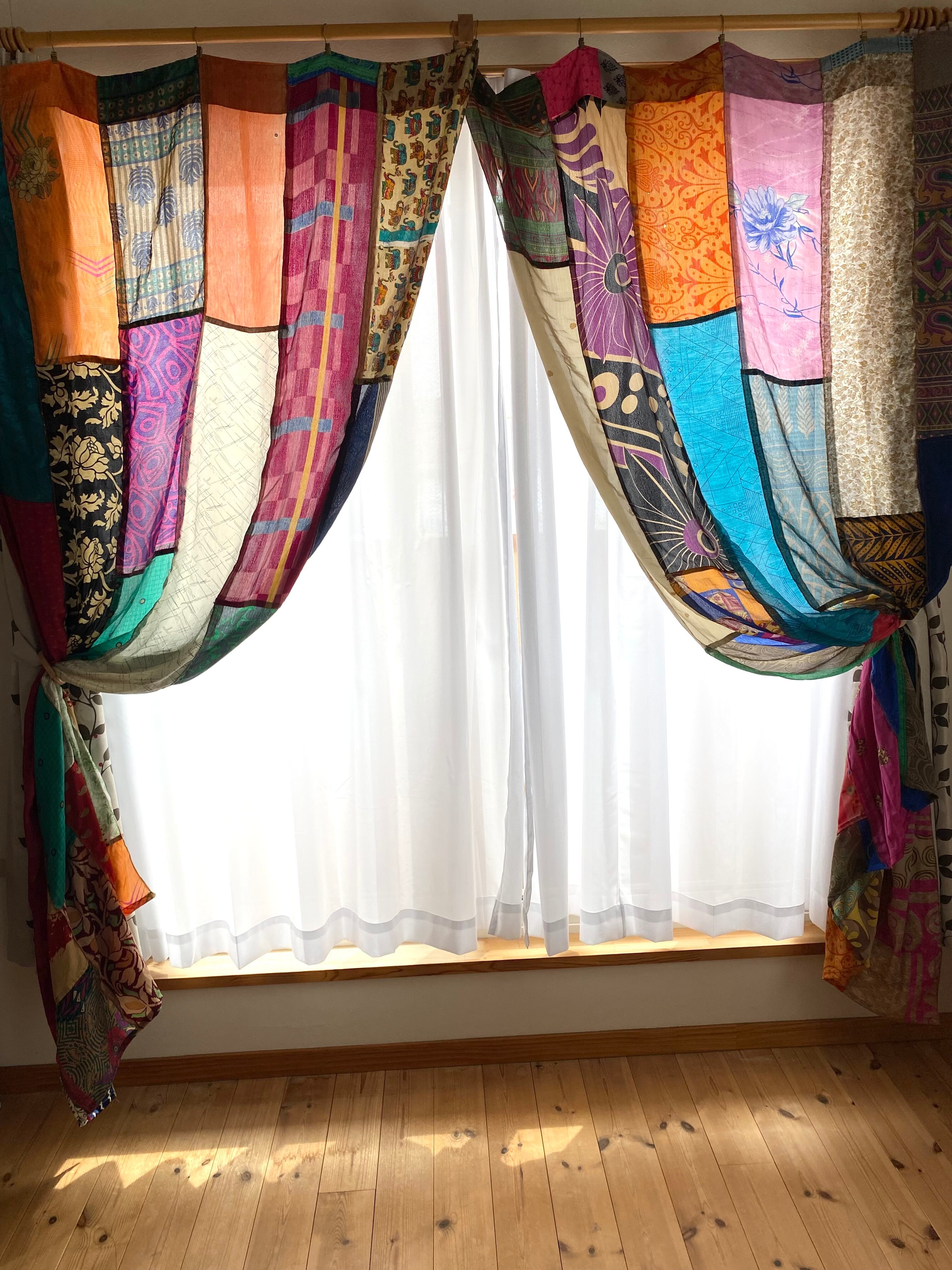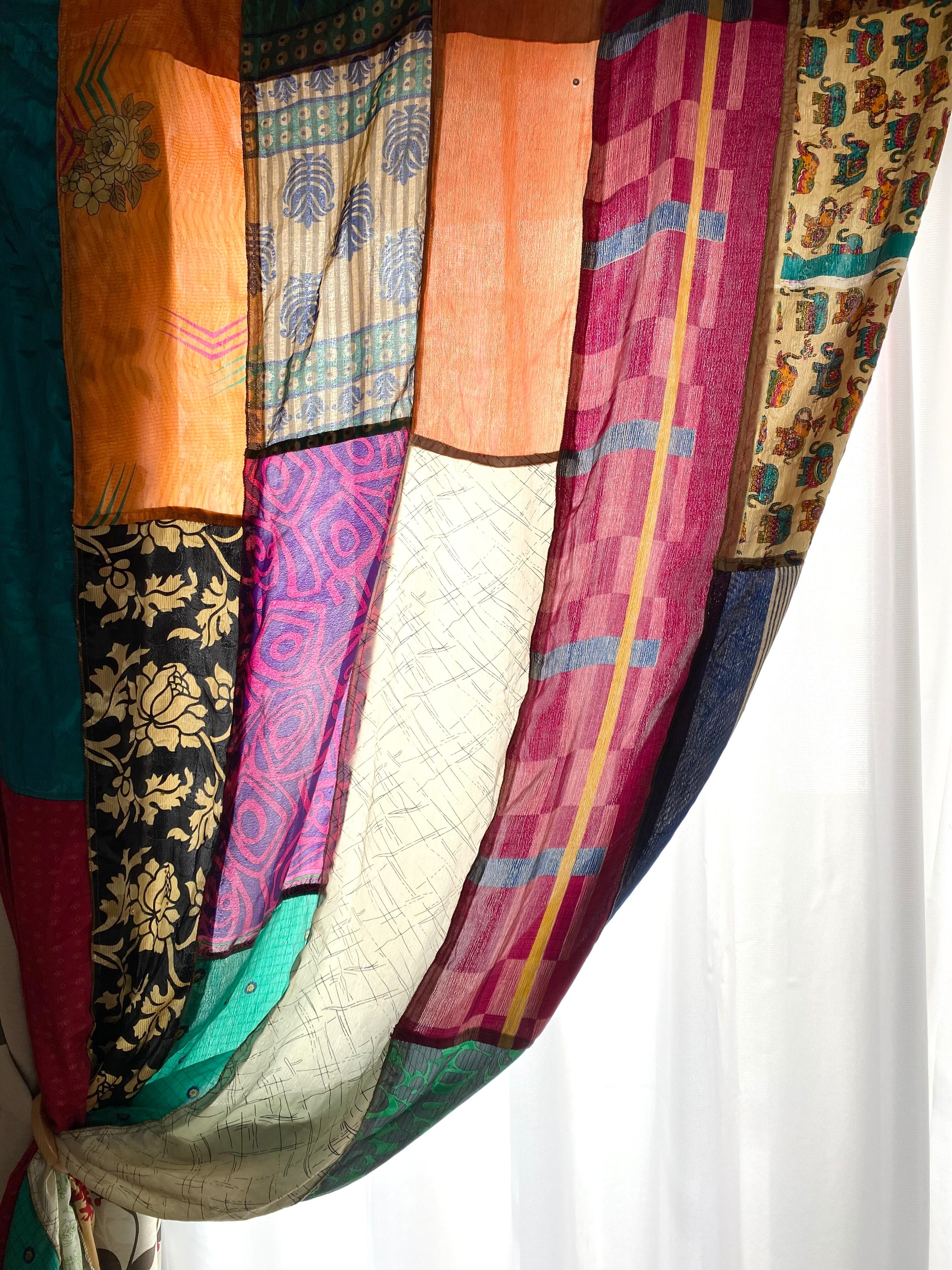 ヴィンテージサリーで出来たパッチワークシルクカーテン