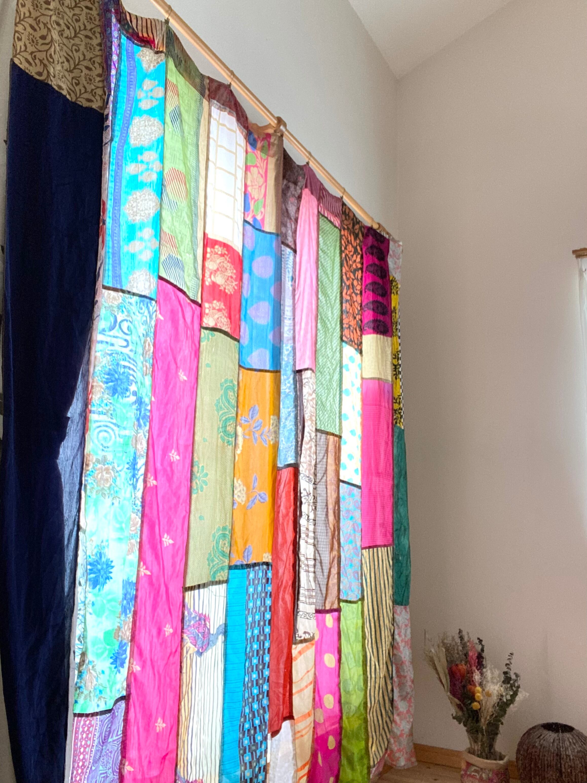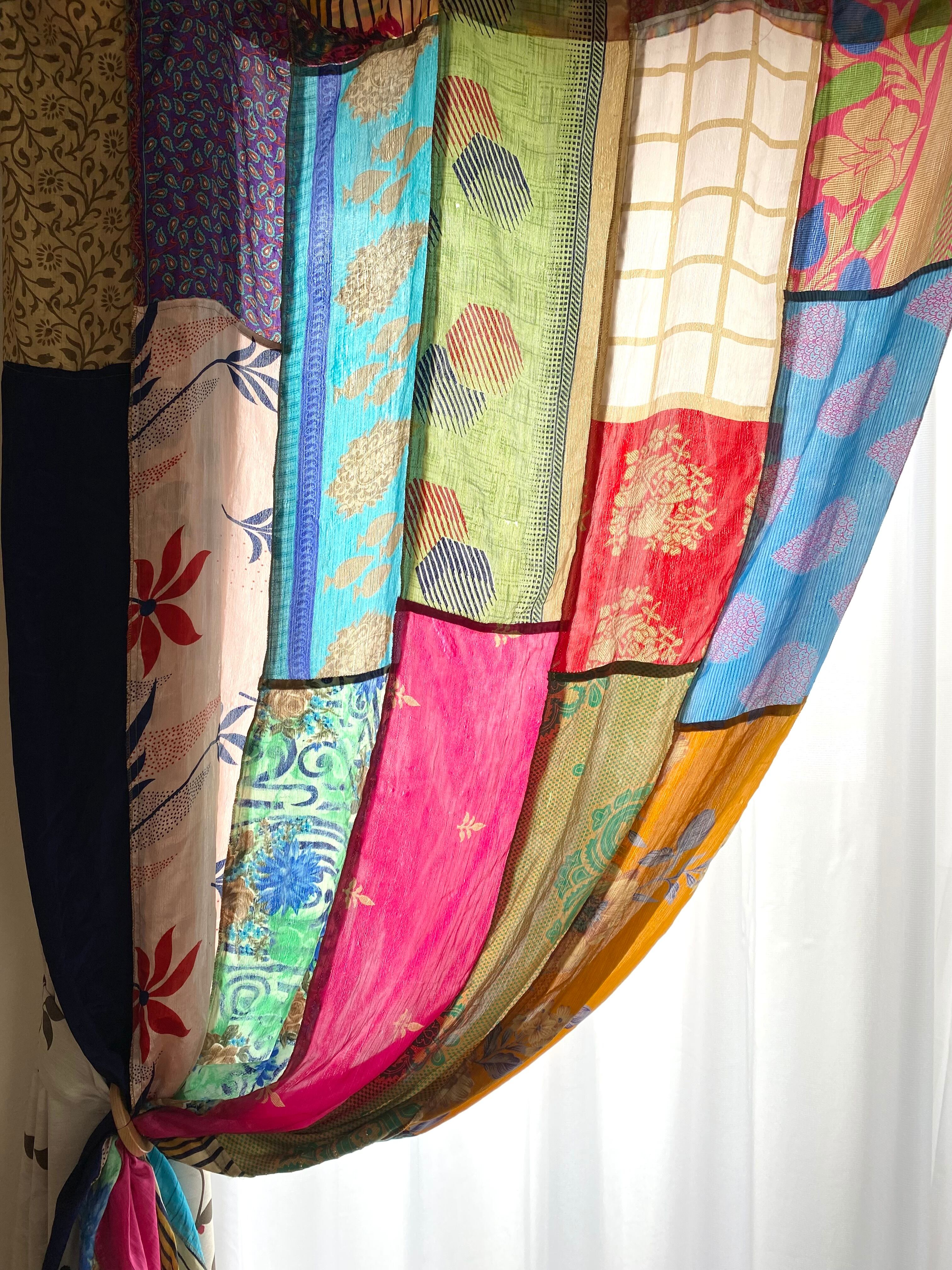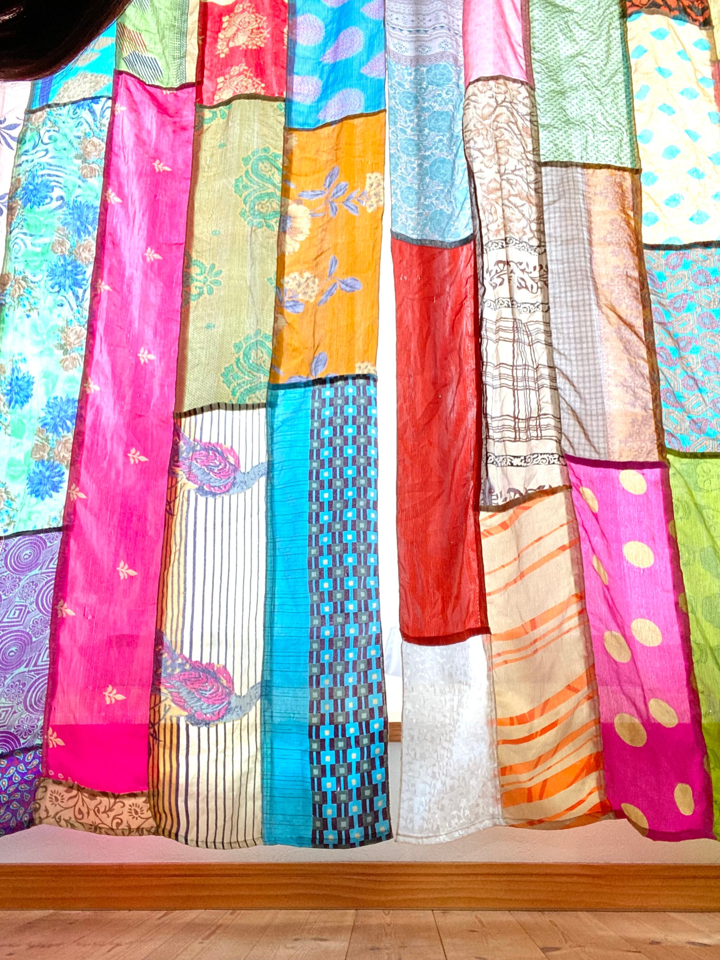 ヴィンテージサリーで出来たパッチワークシルクカーテン