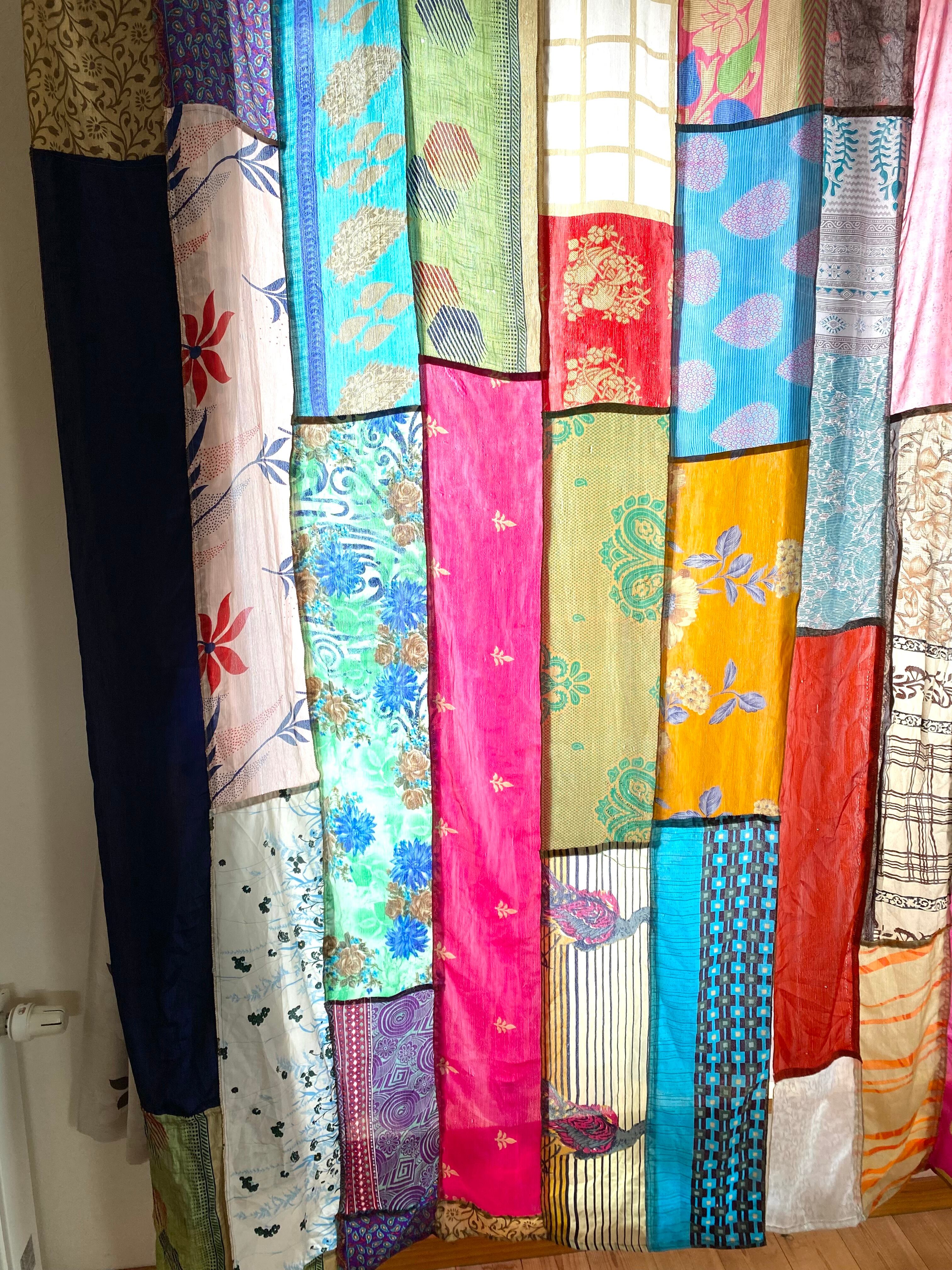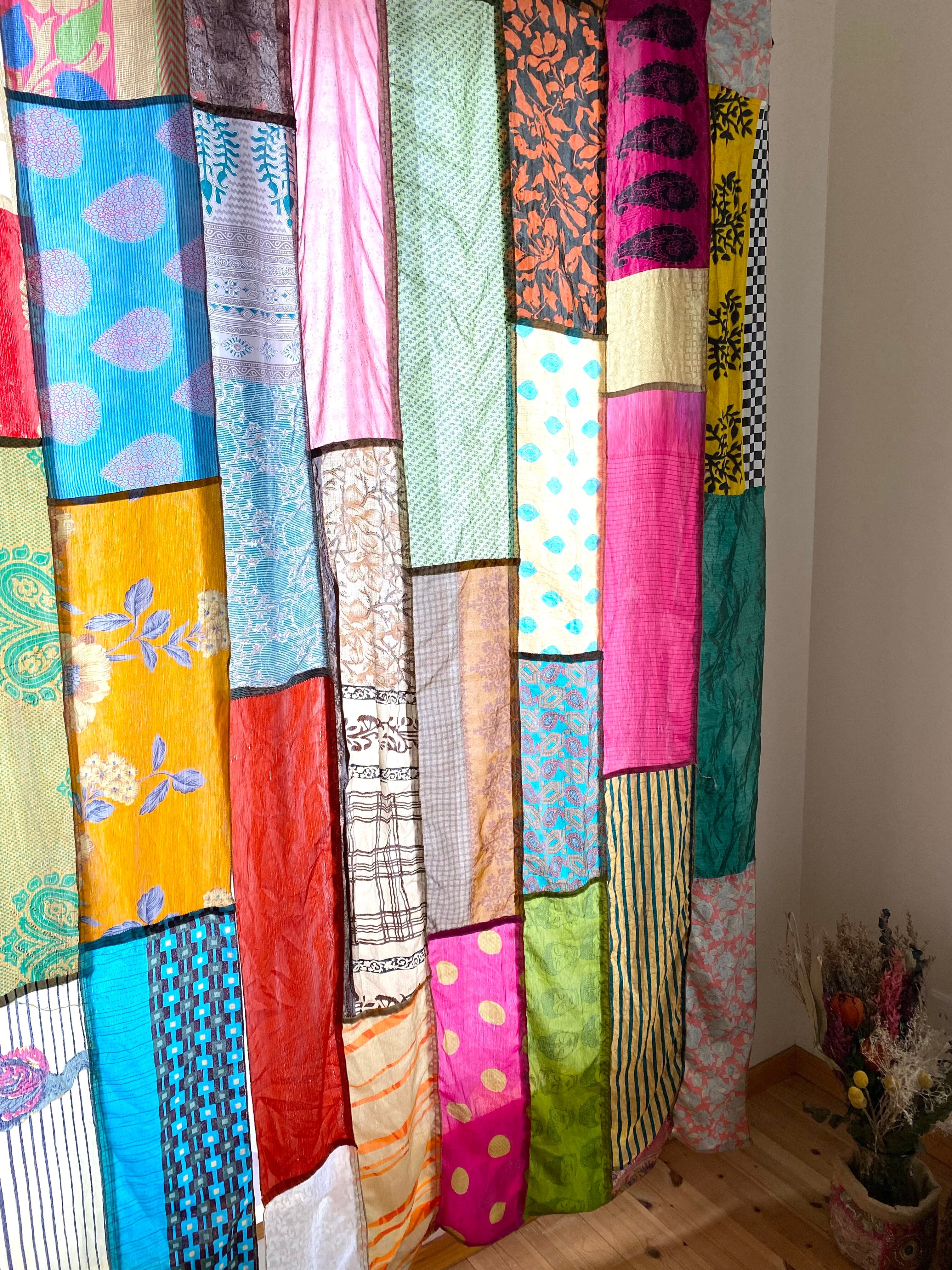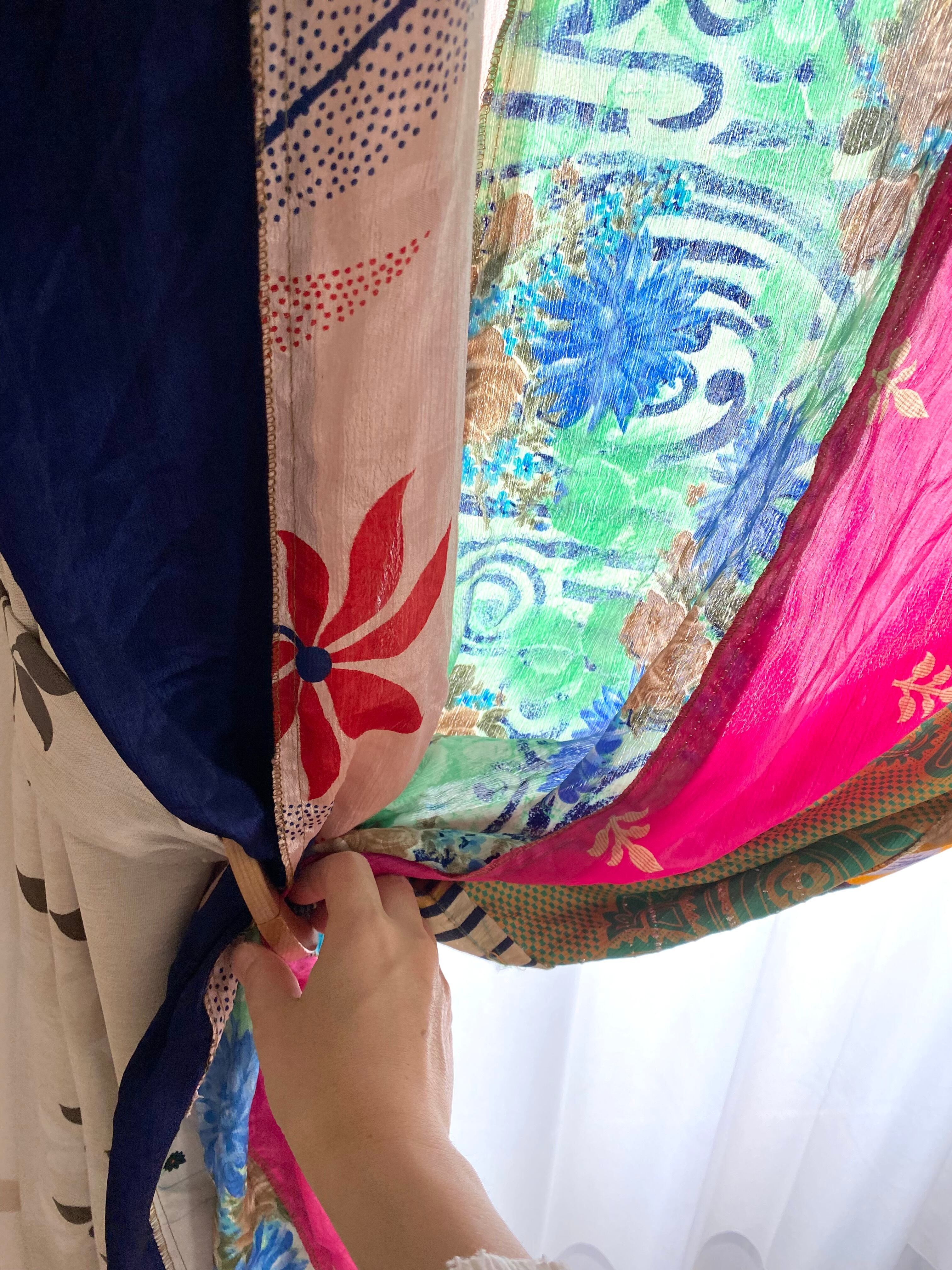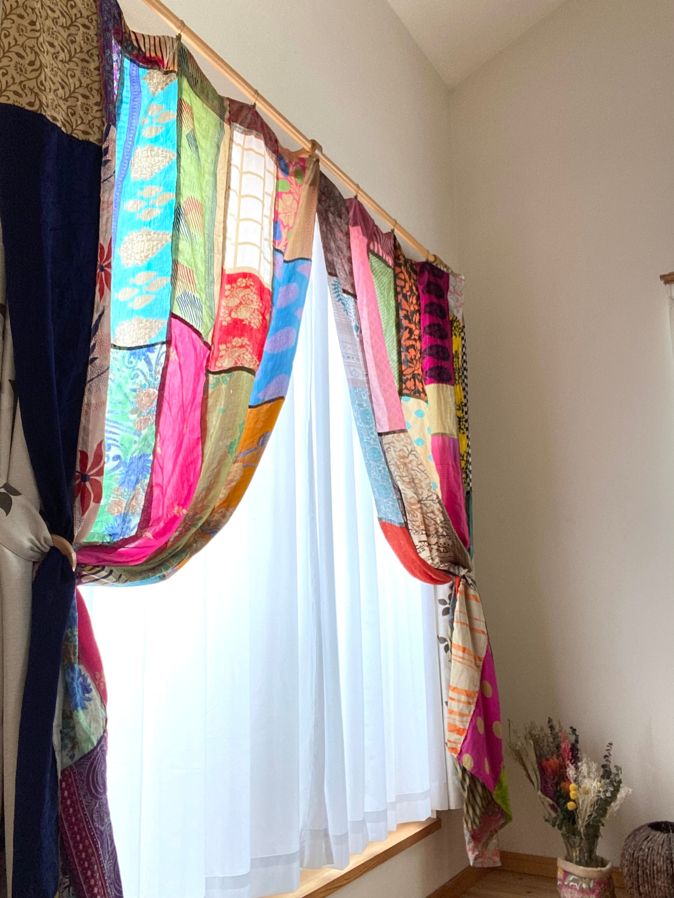 ヴィンテージサリーで出来たパッチワークシルクカーテン