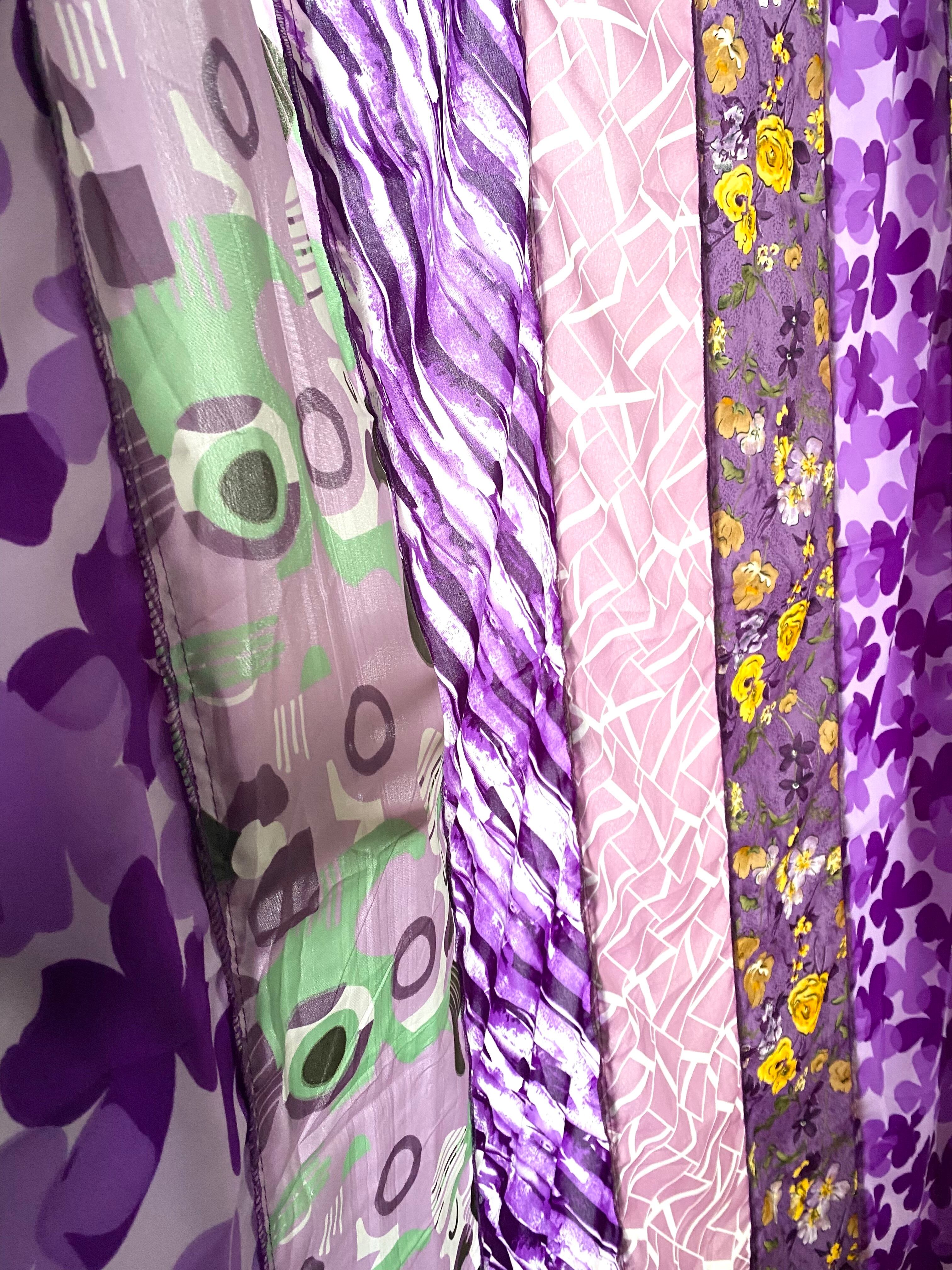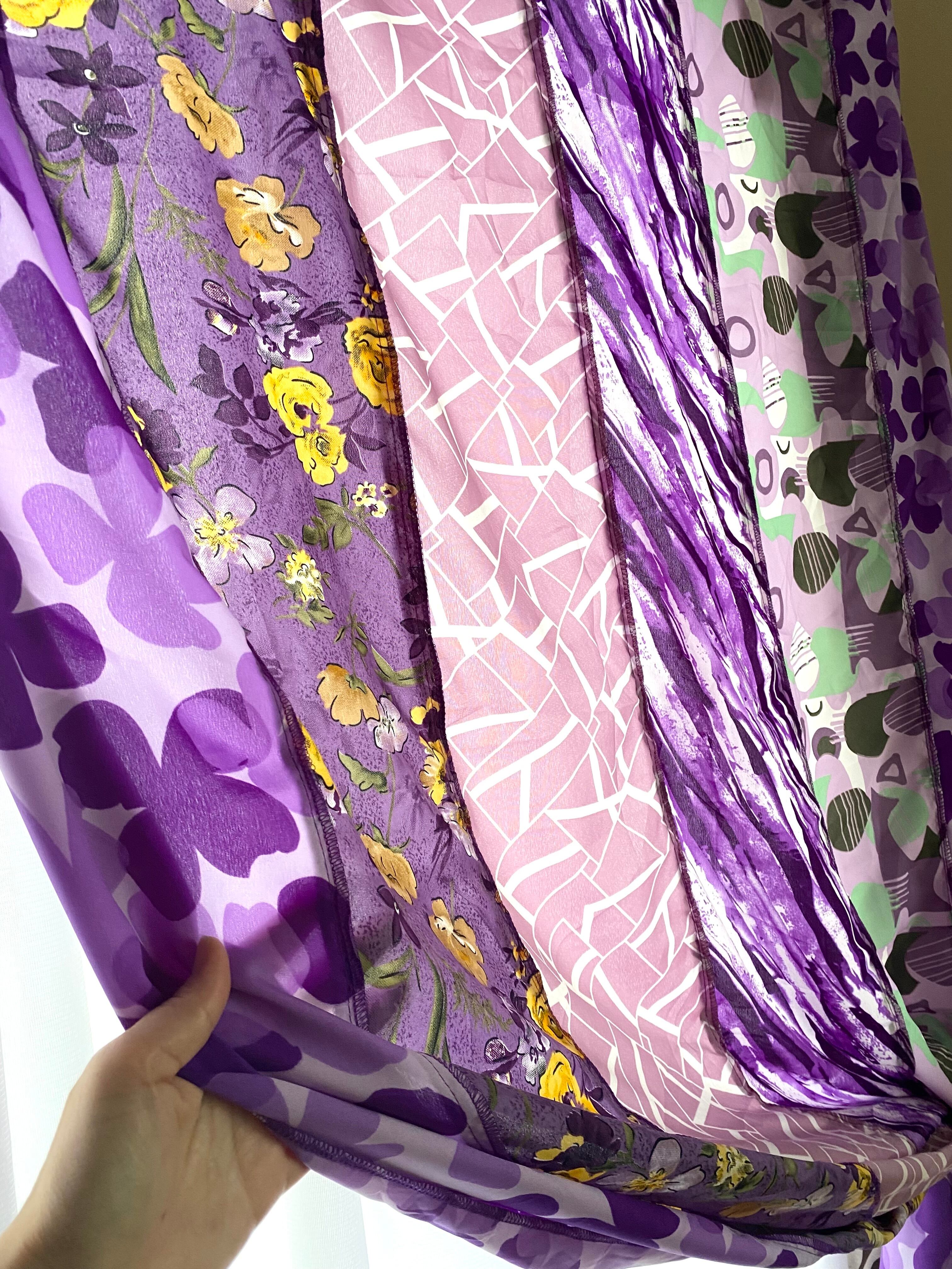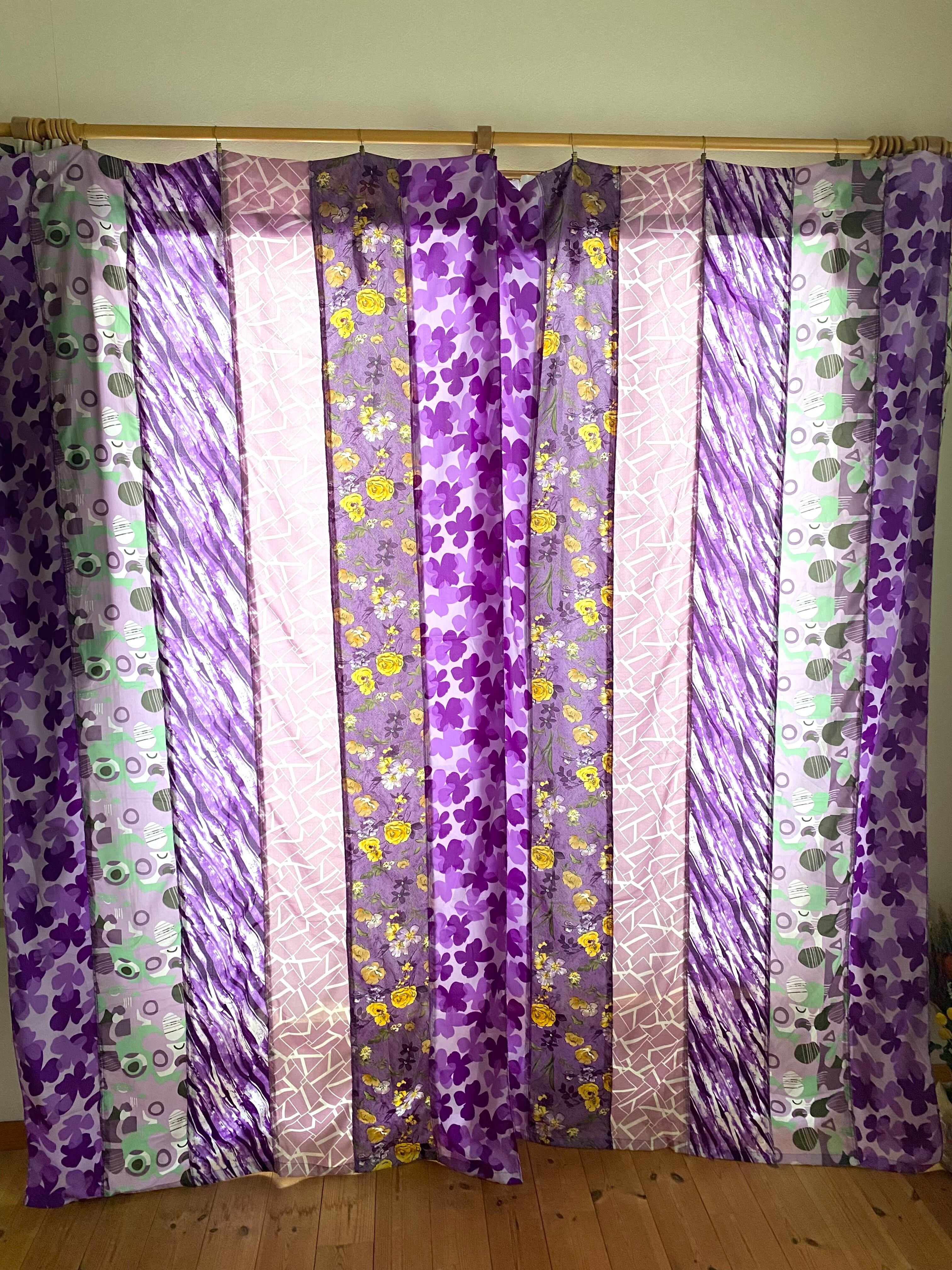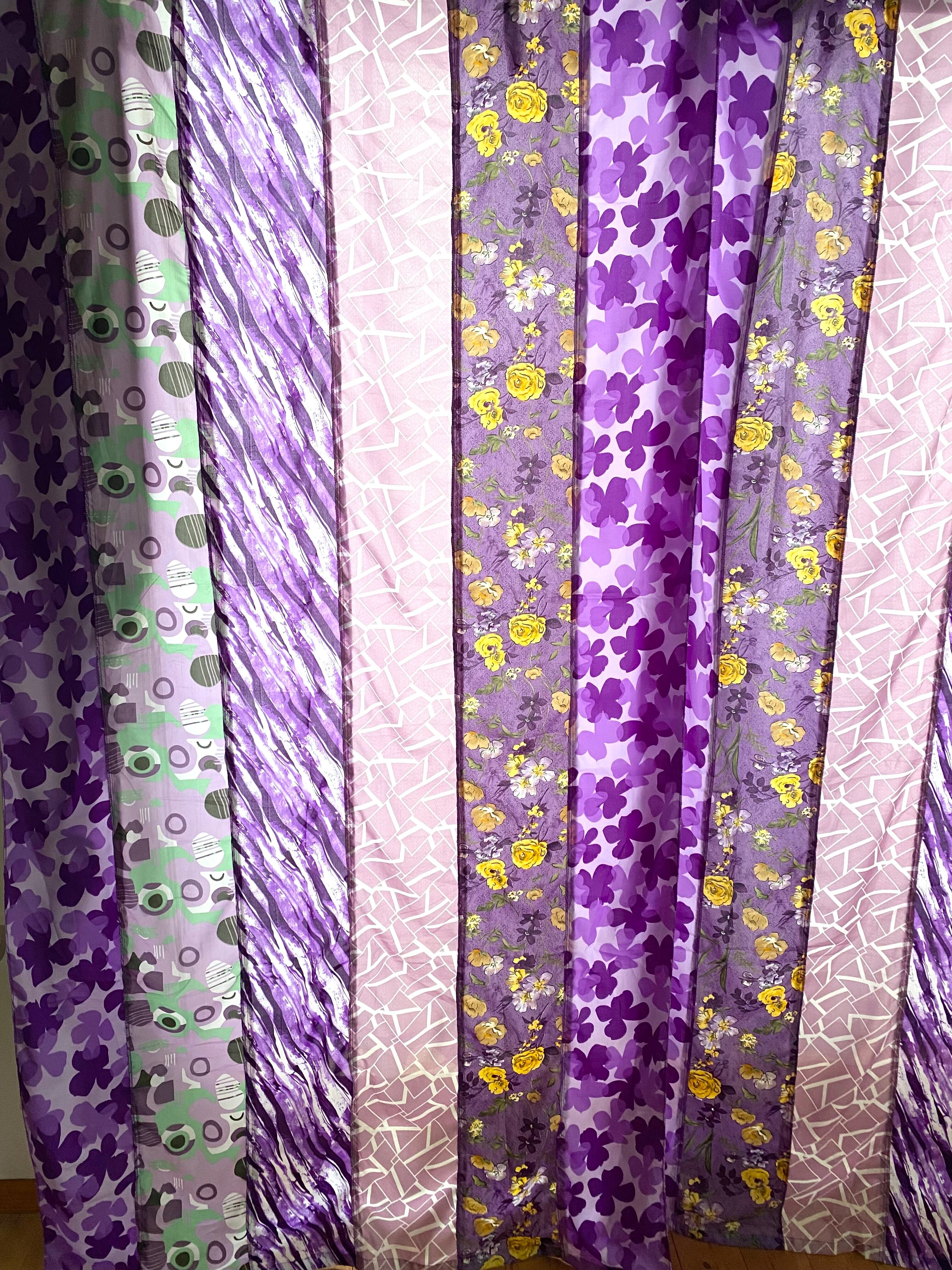 1枚1枚丁寧に繋ぎ合わせ、大変カラフルできれいなパッチワークカーテンにアップサイクルされました!!