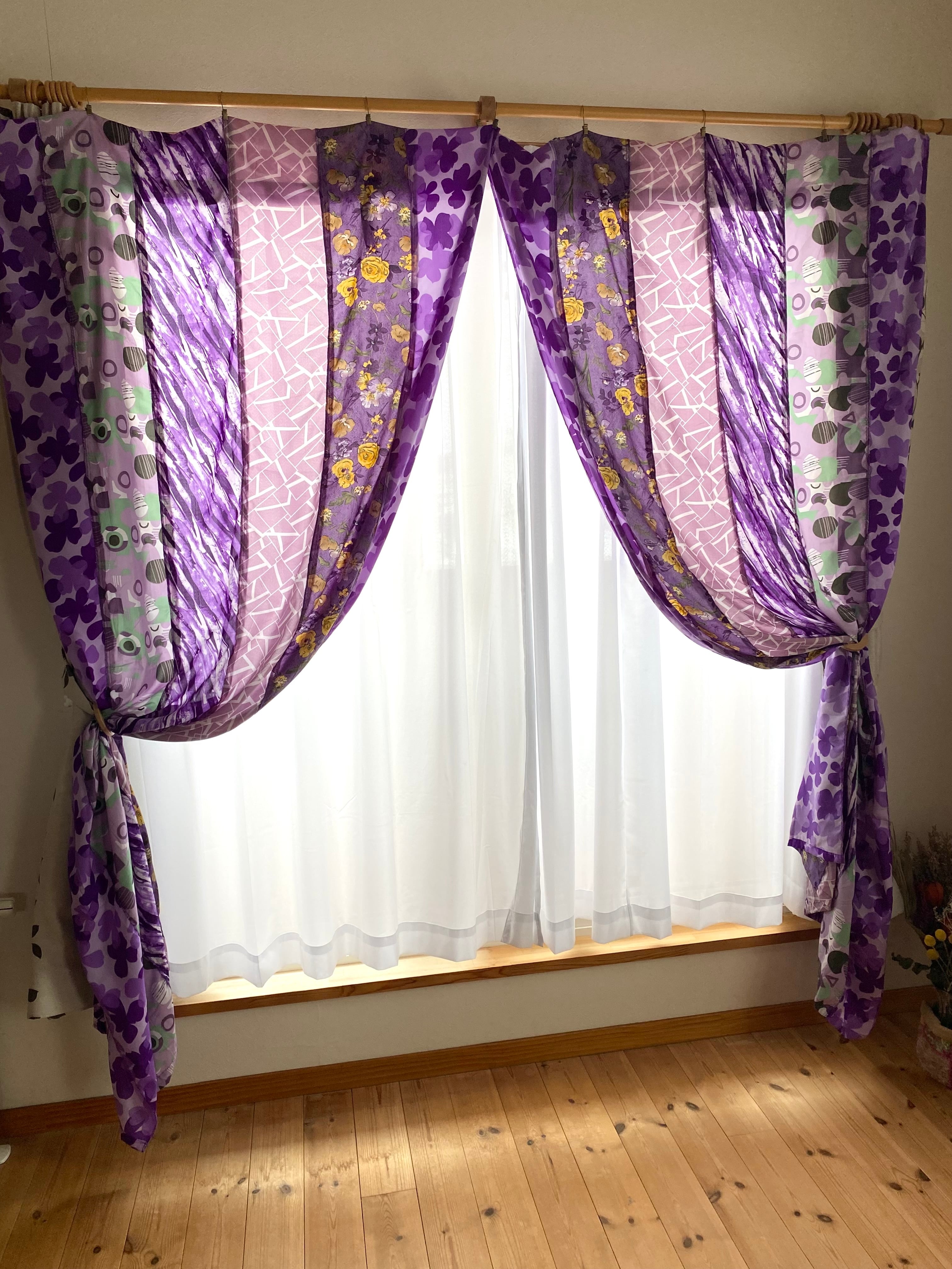 パープルと薄いピンクのMIXカラーのカーテンです。