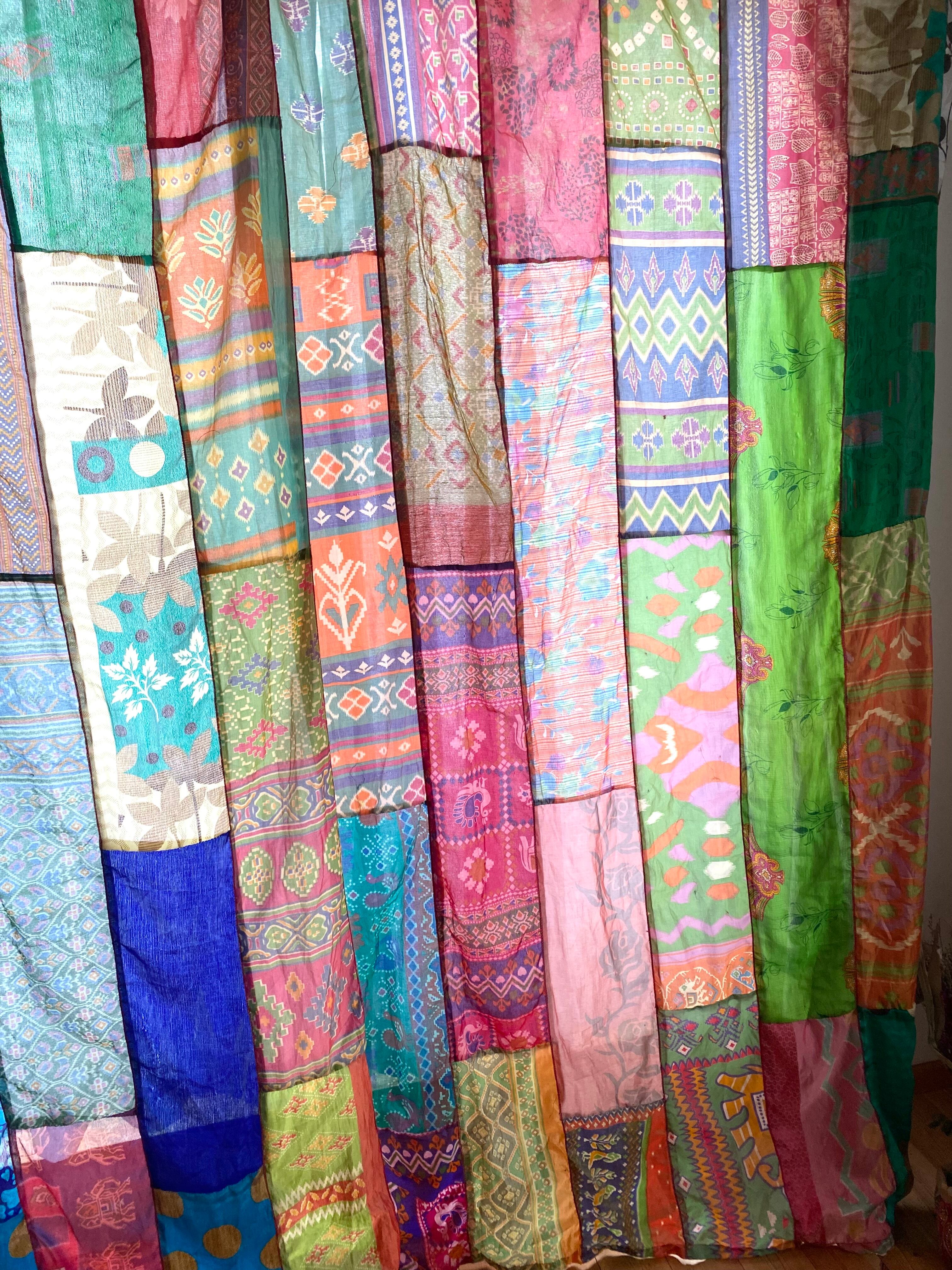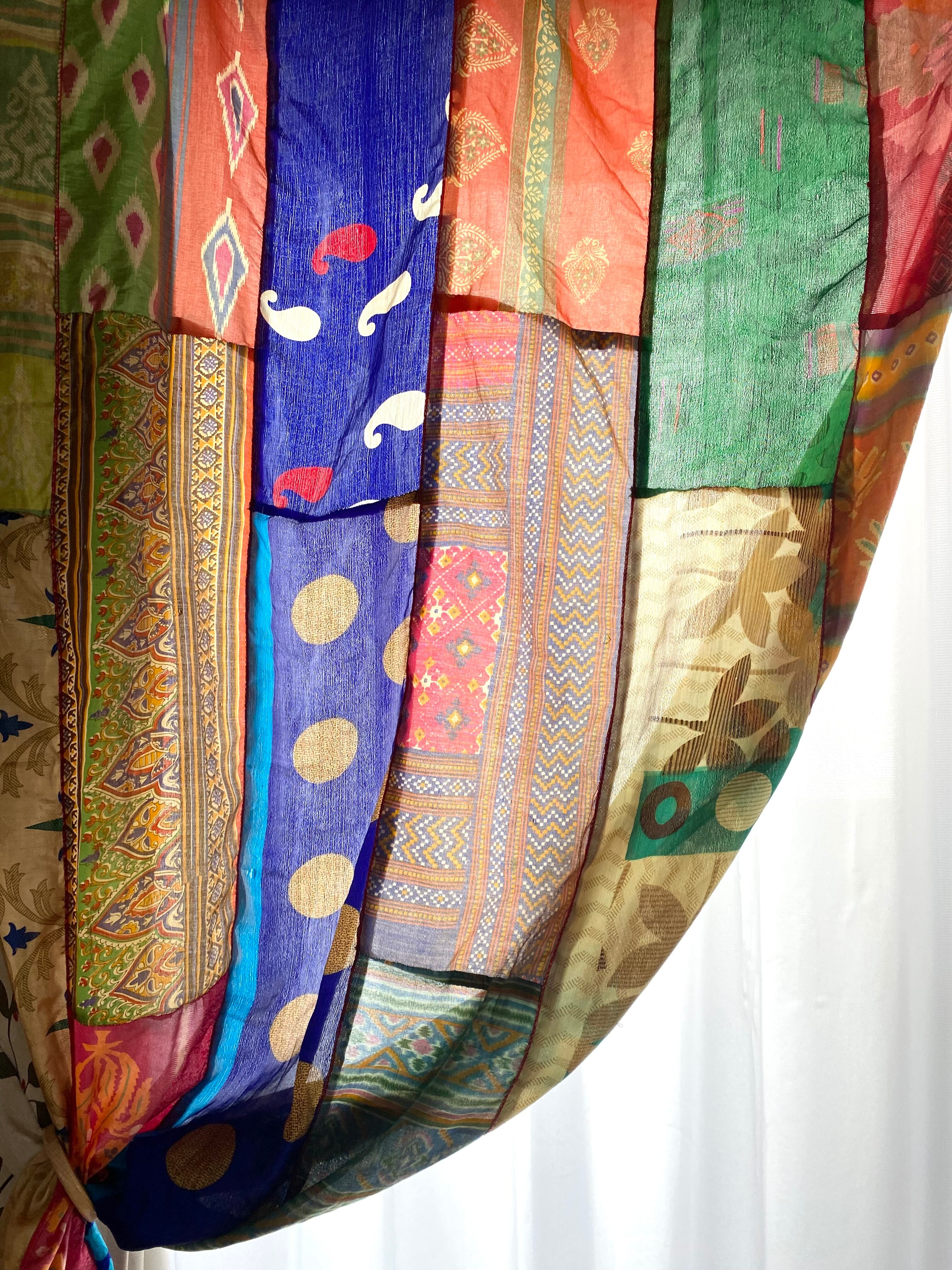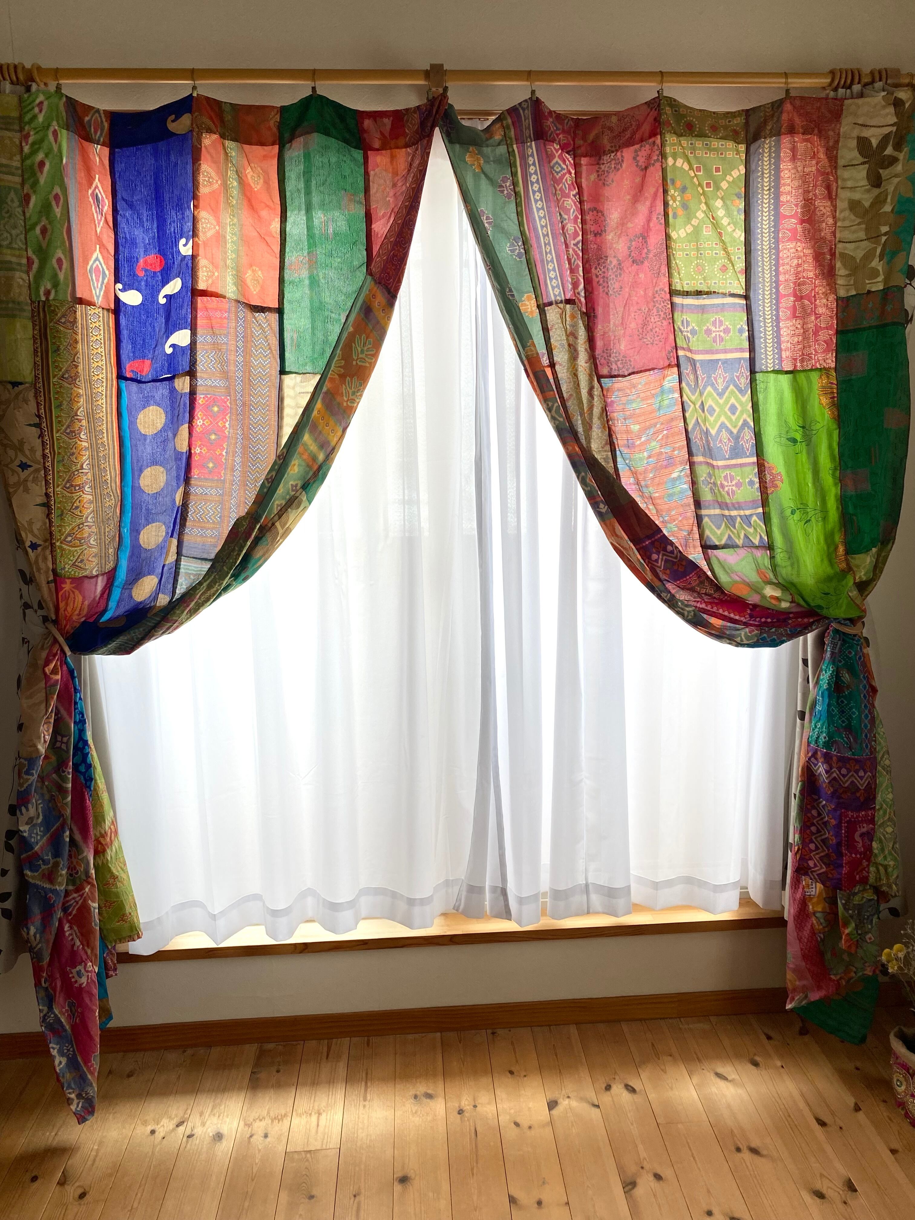 ヴィンテージサリーで出来たパッチワークシルクカーテン
