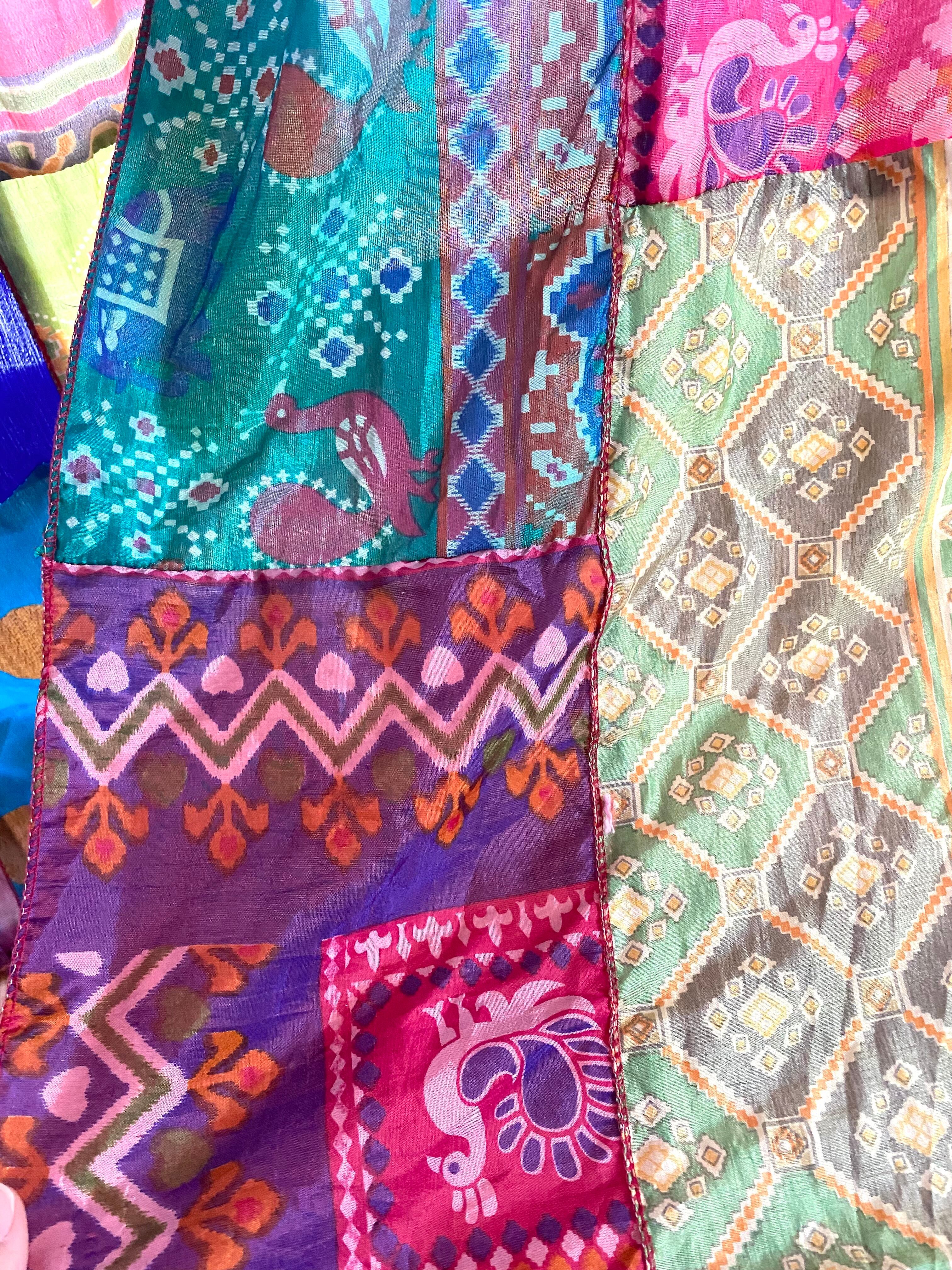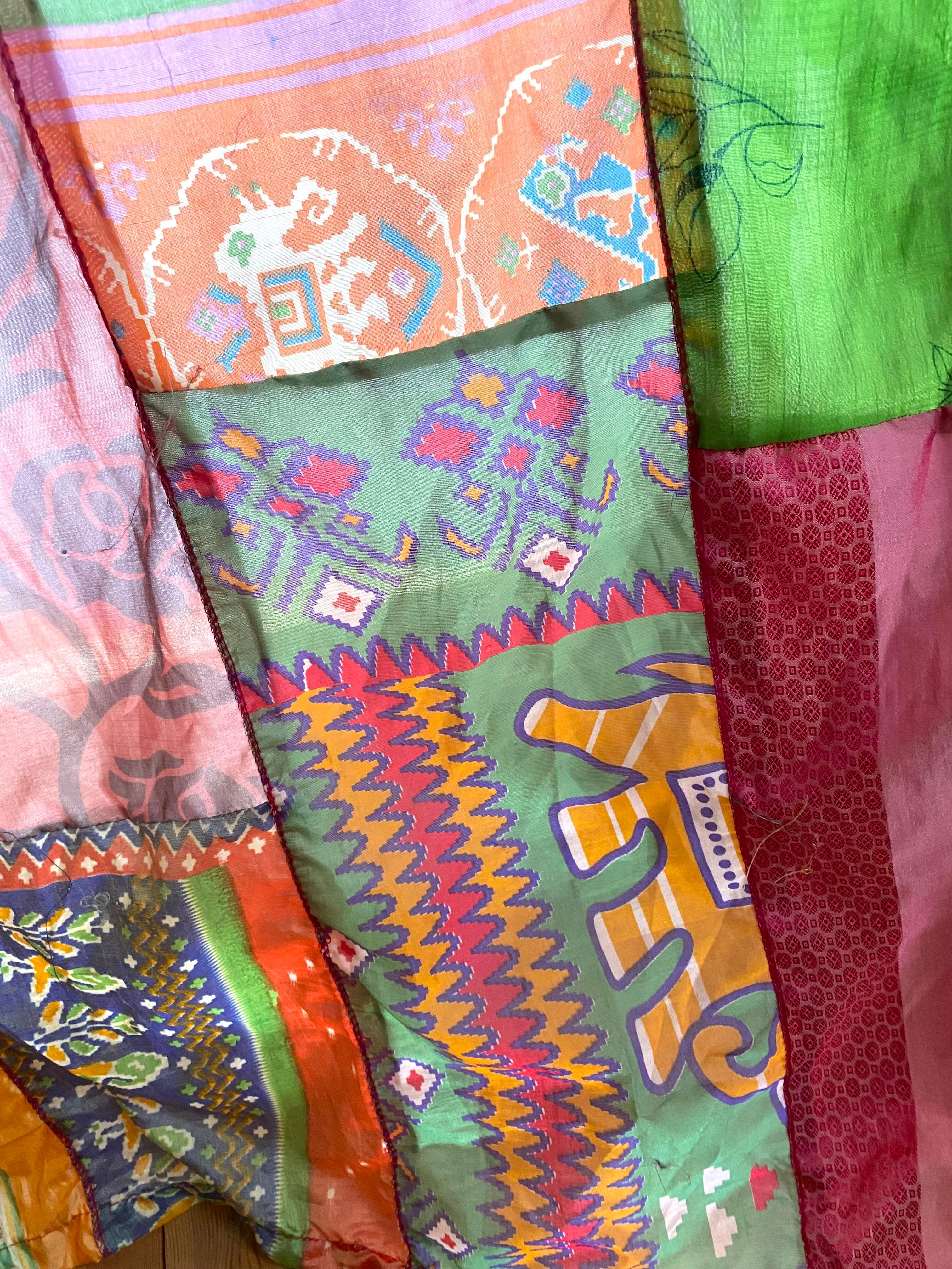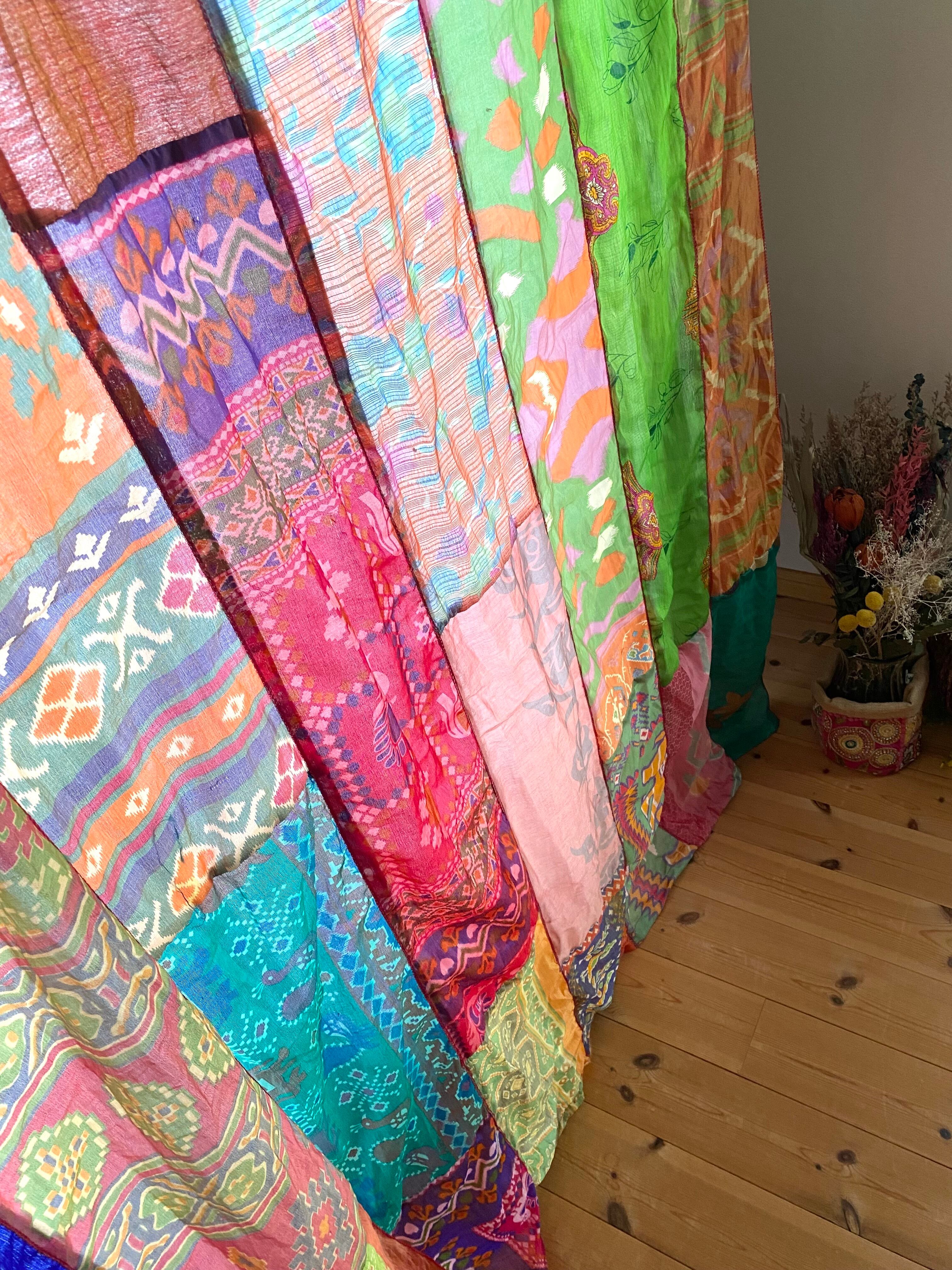 ヴィンテージサリーで出来たパッチワークシルクカーテン
