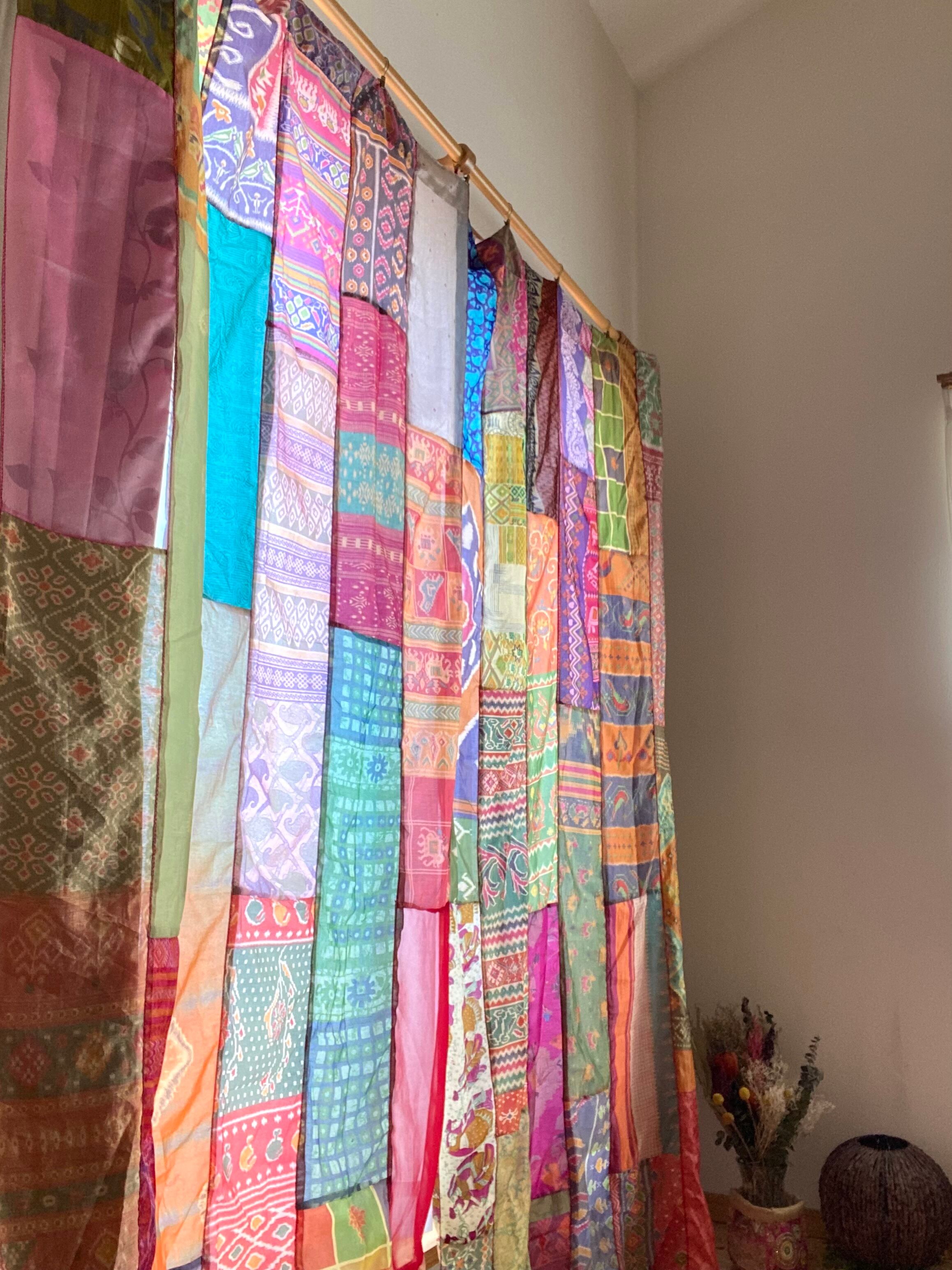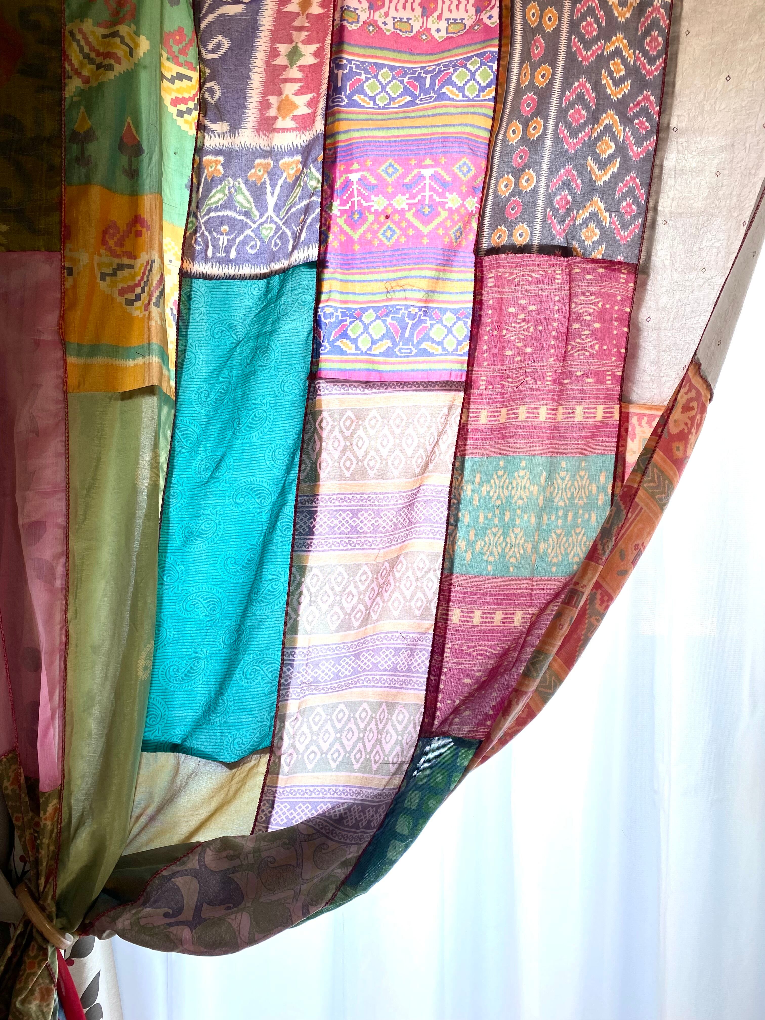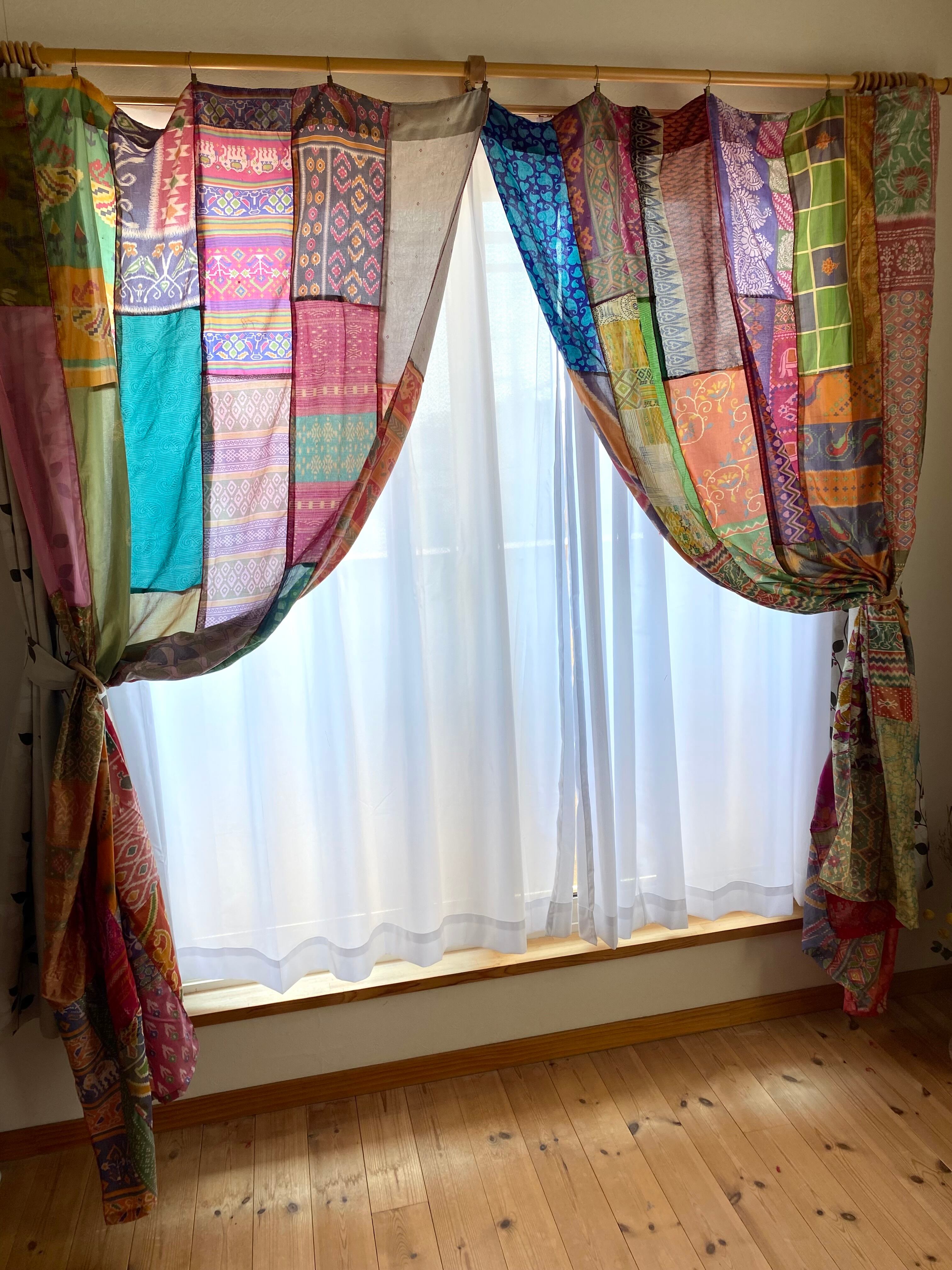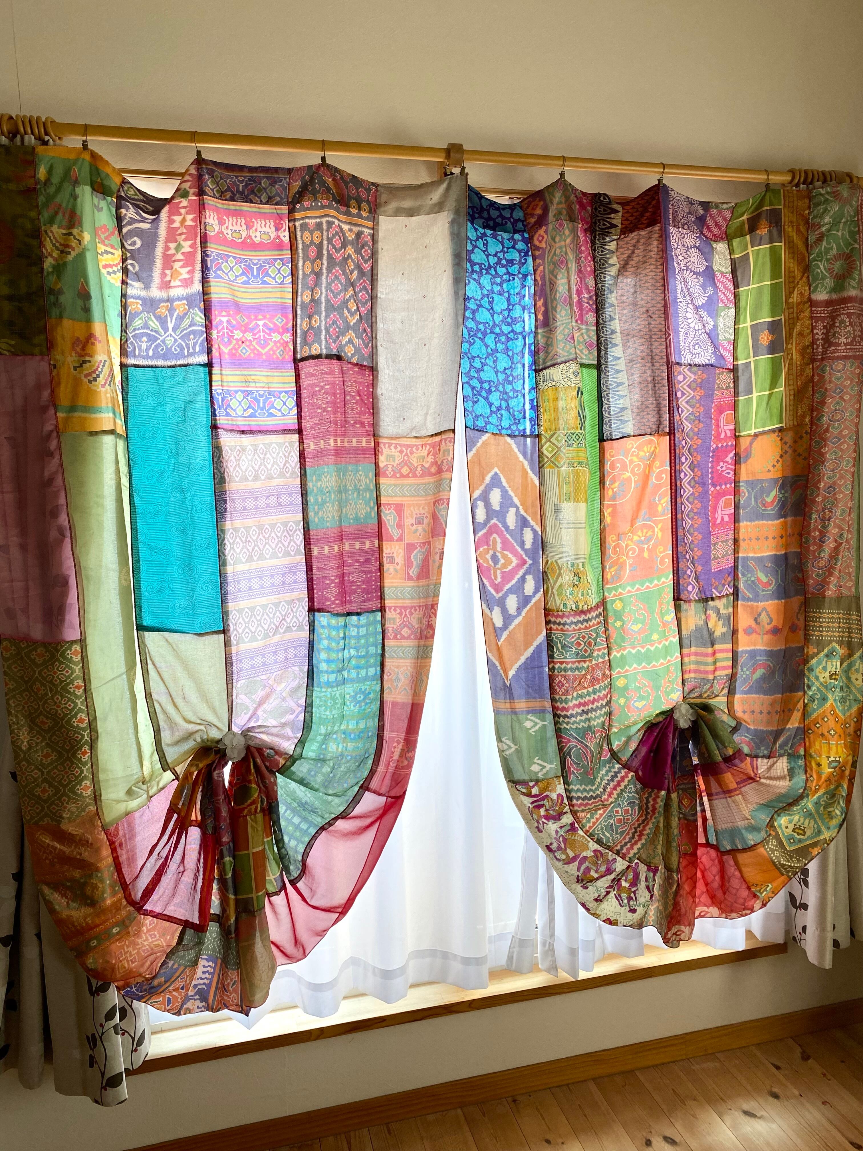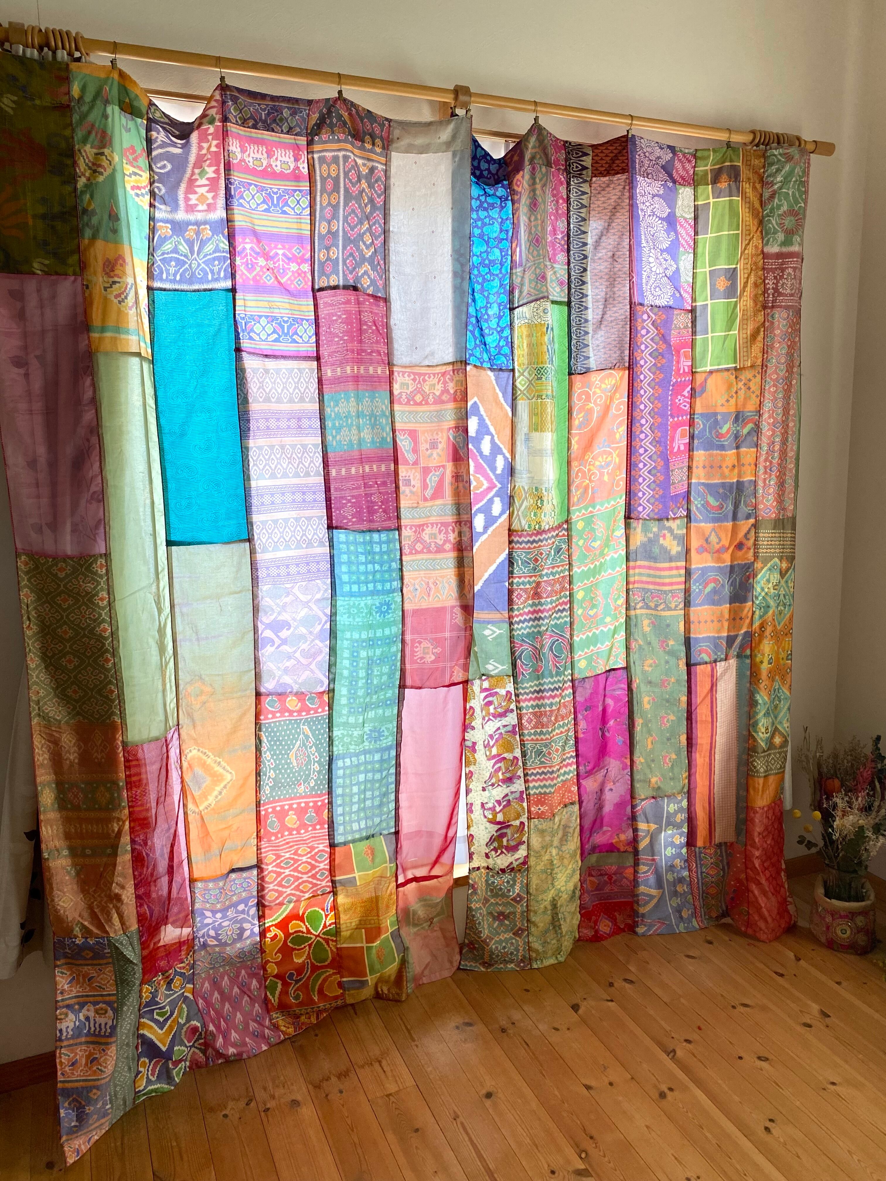 ヴィンテージサリーで出来たパッチワークシルクカーテン