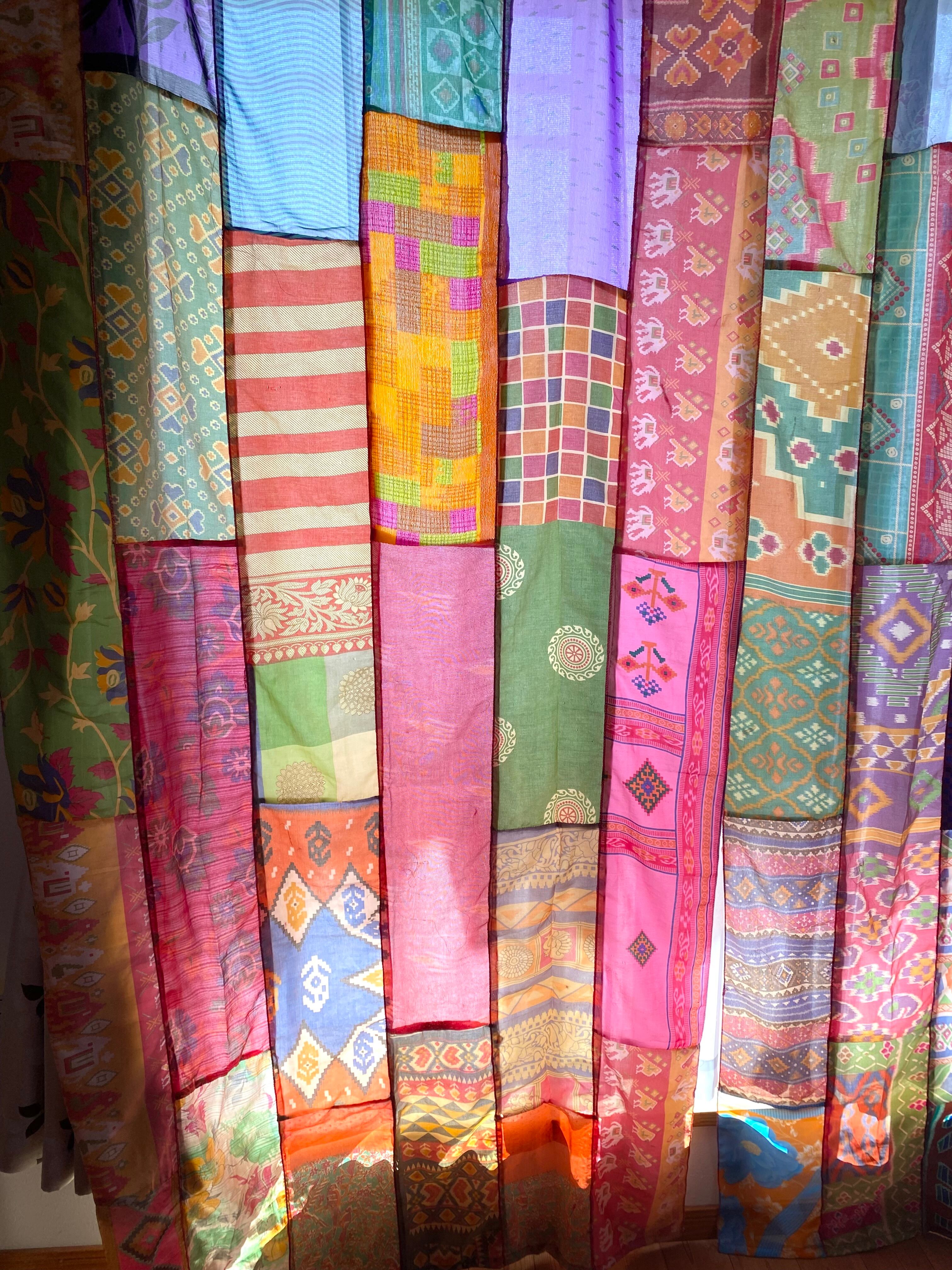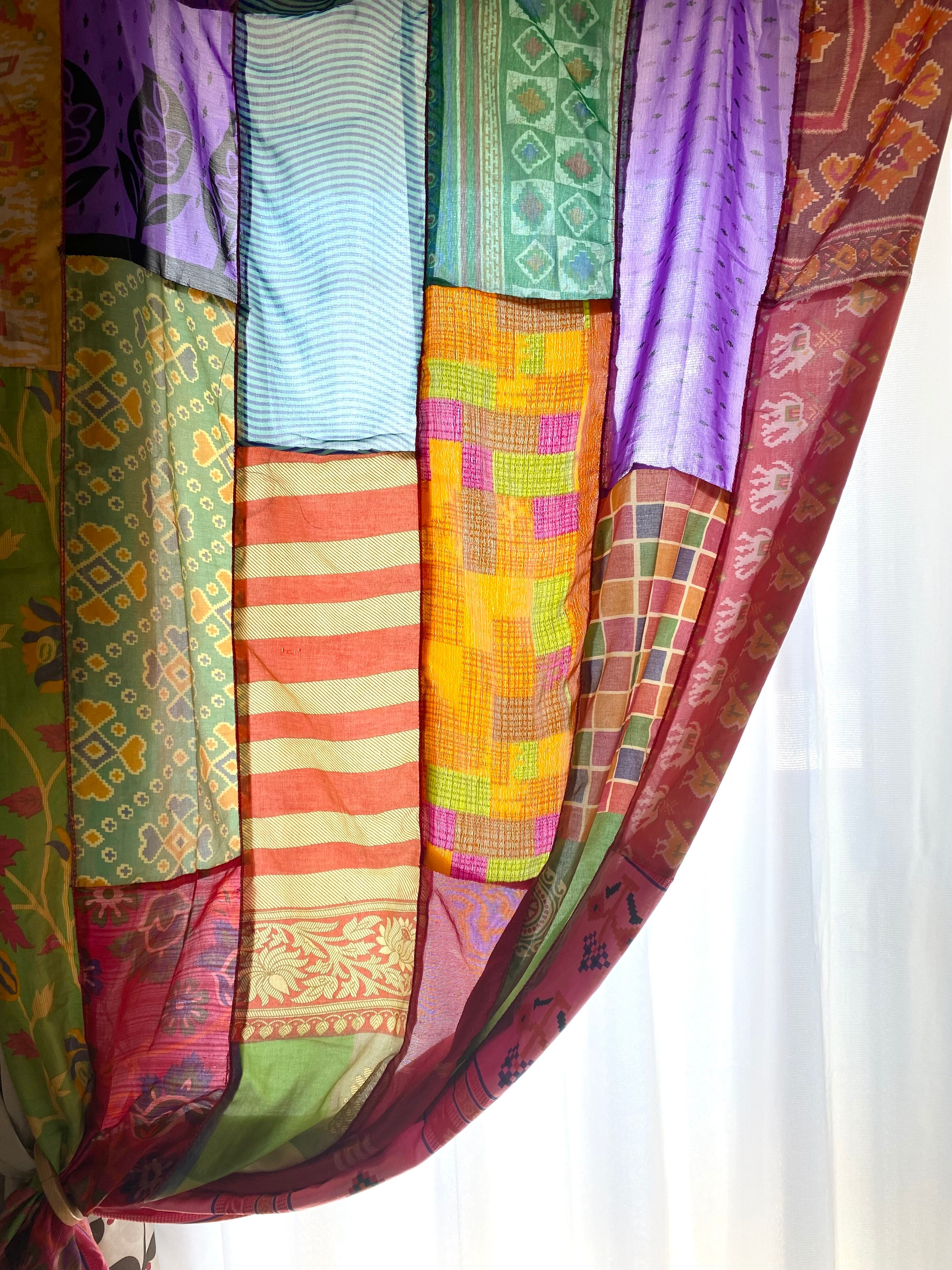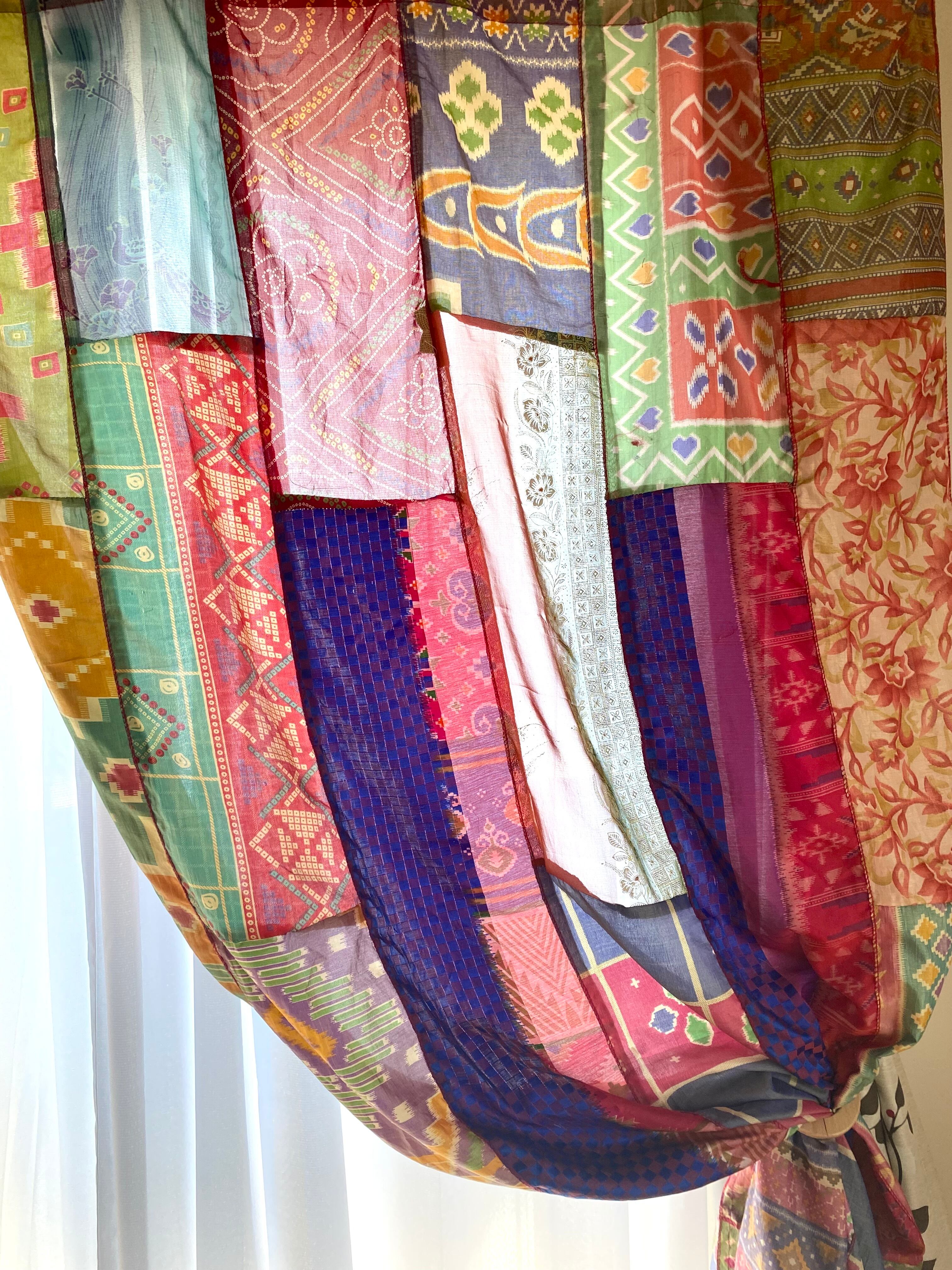 ヴィンテージサリーで出来たパッチワークシルクカーテン