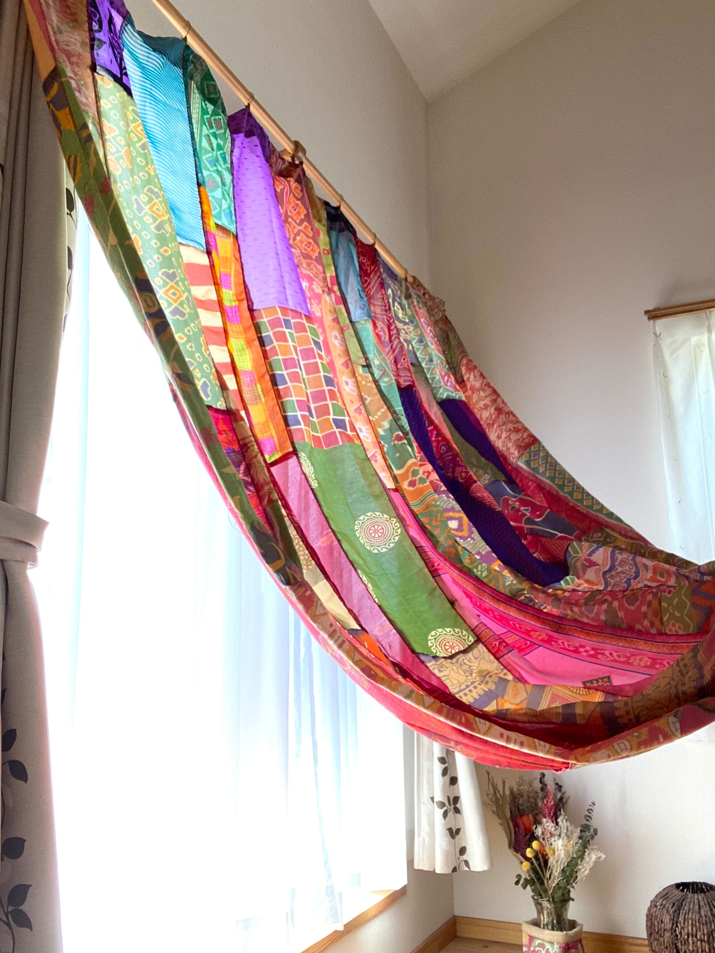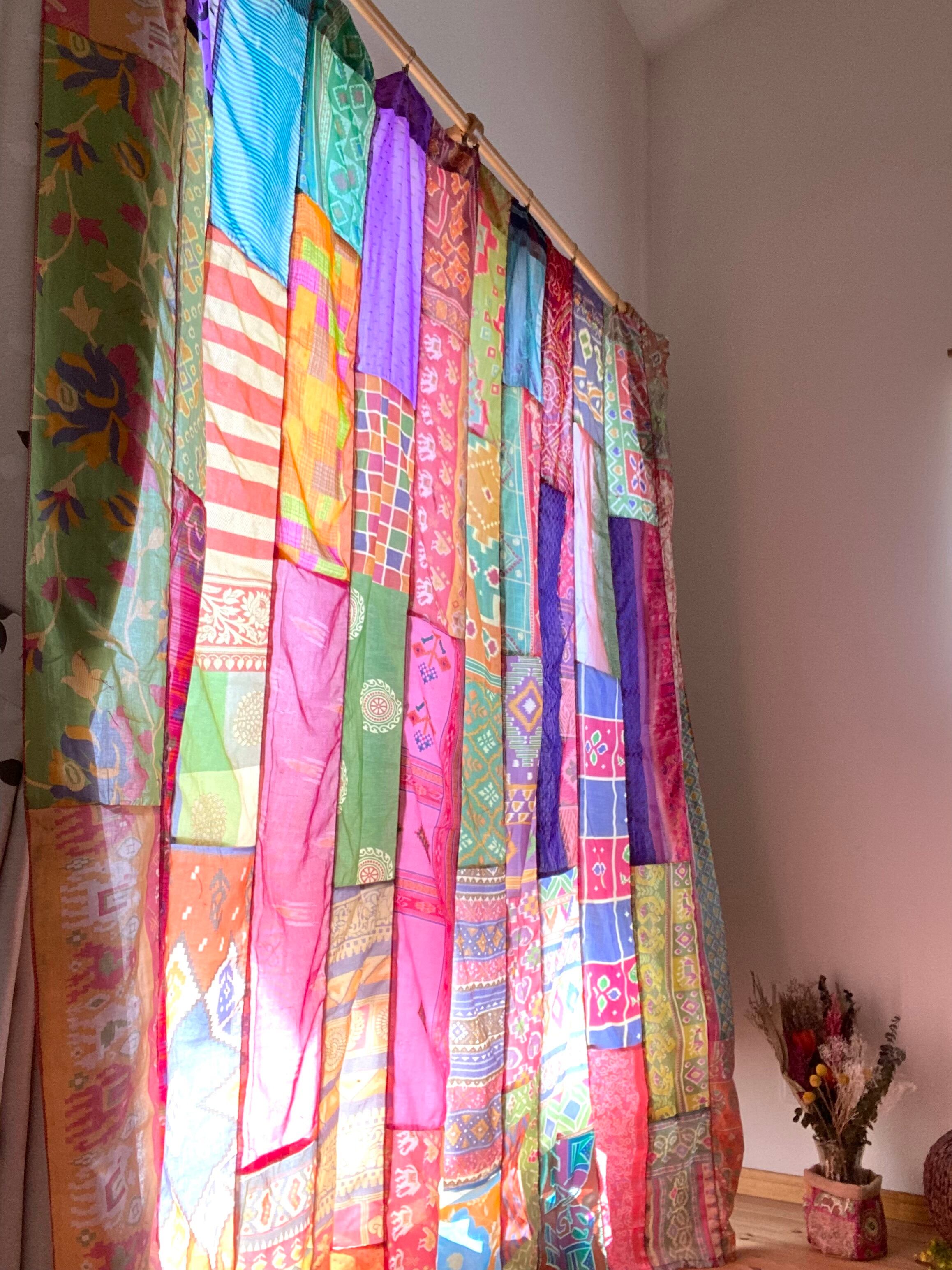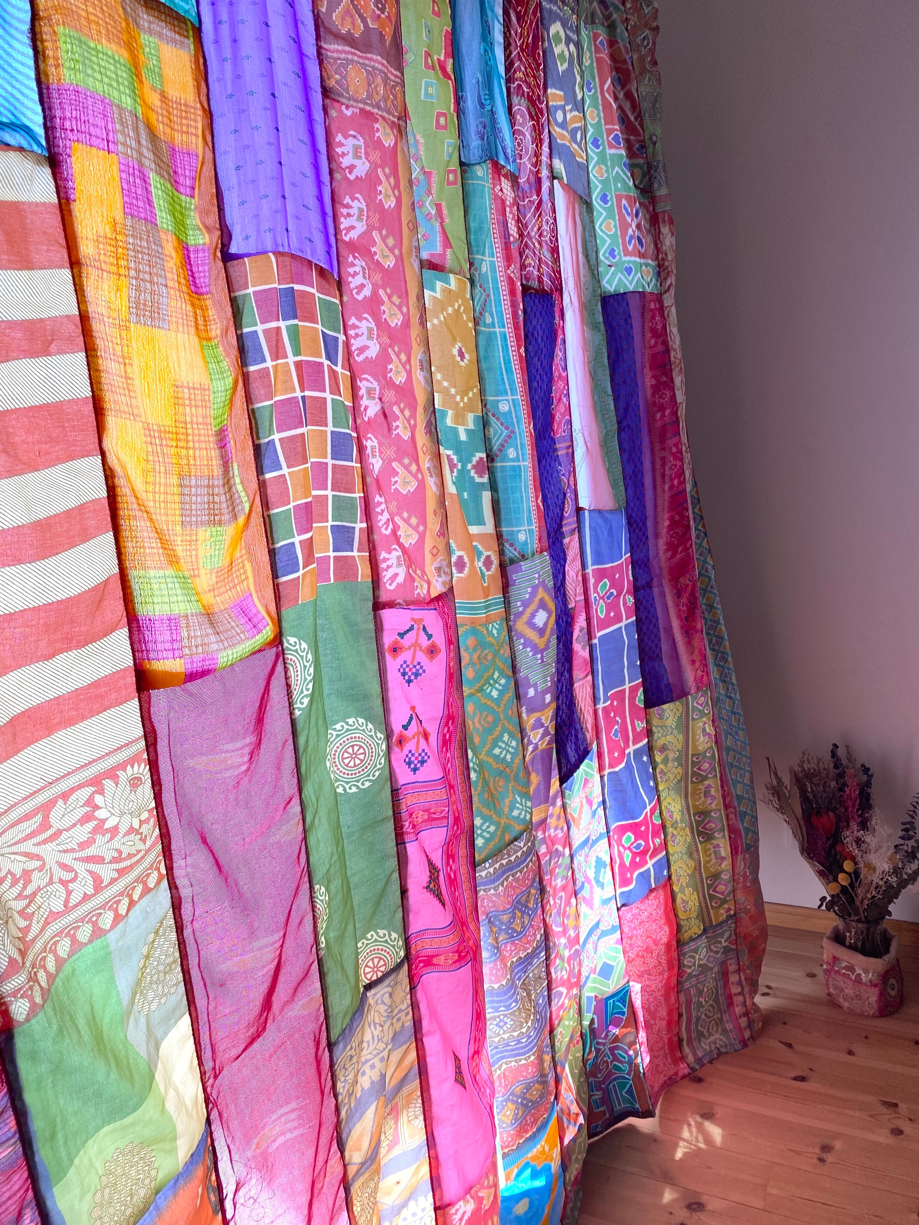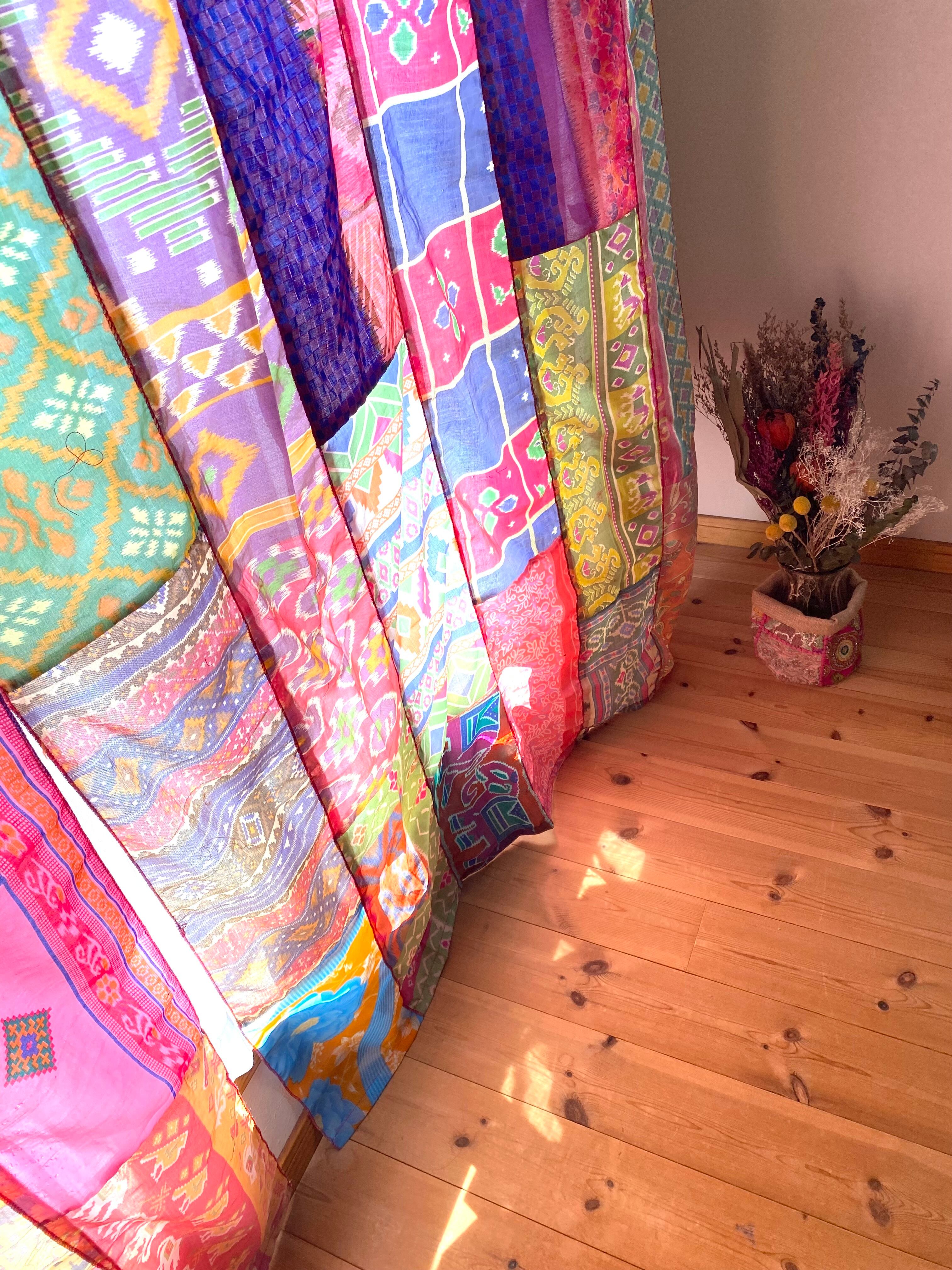 ヴィンテージサリーで出来たパッチワークシルクカーテン