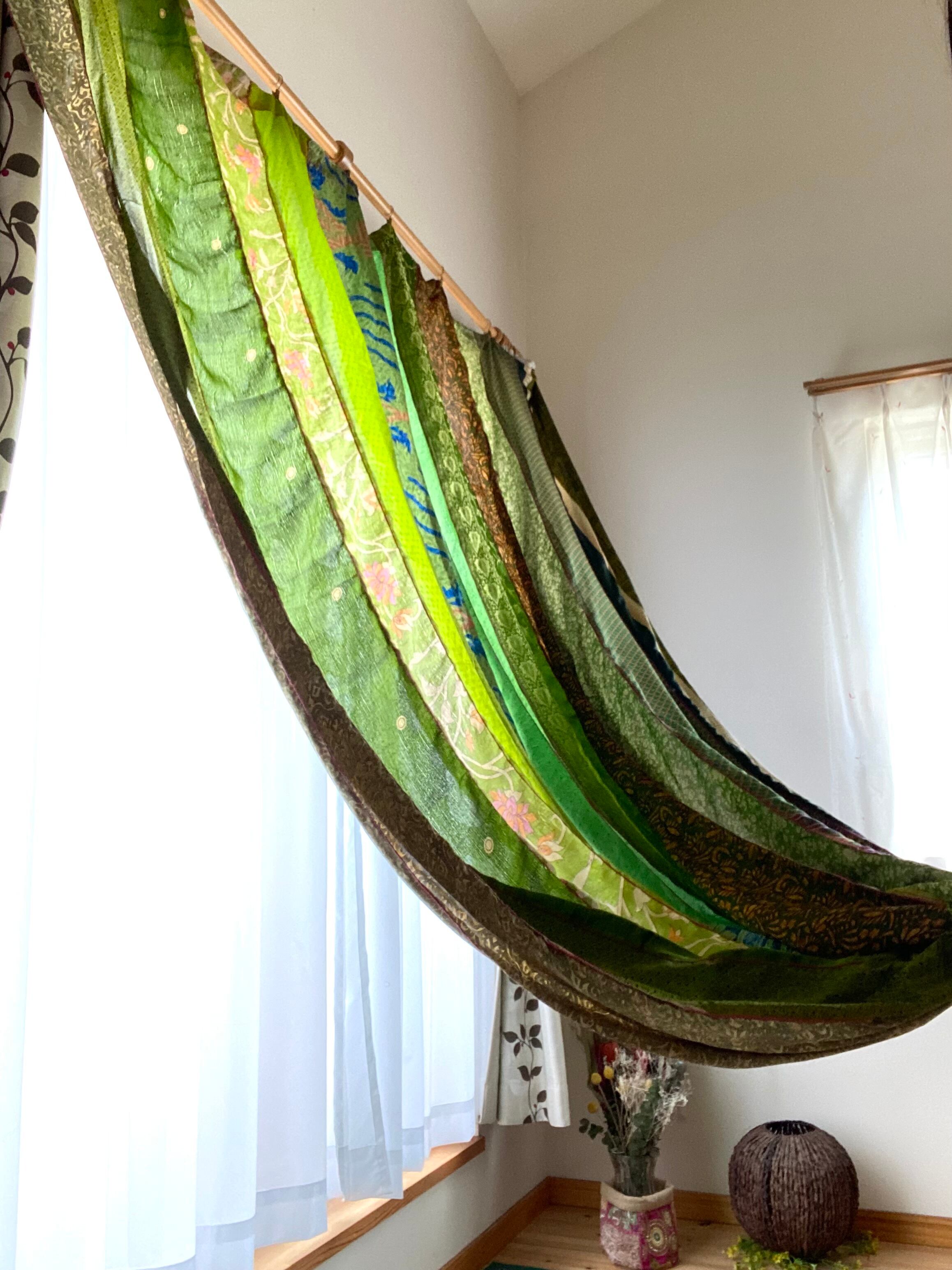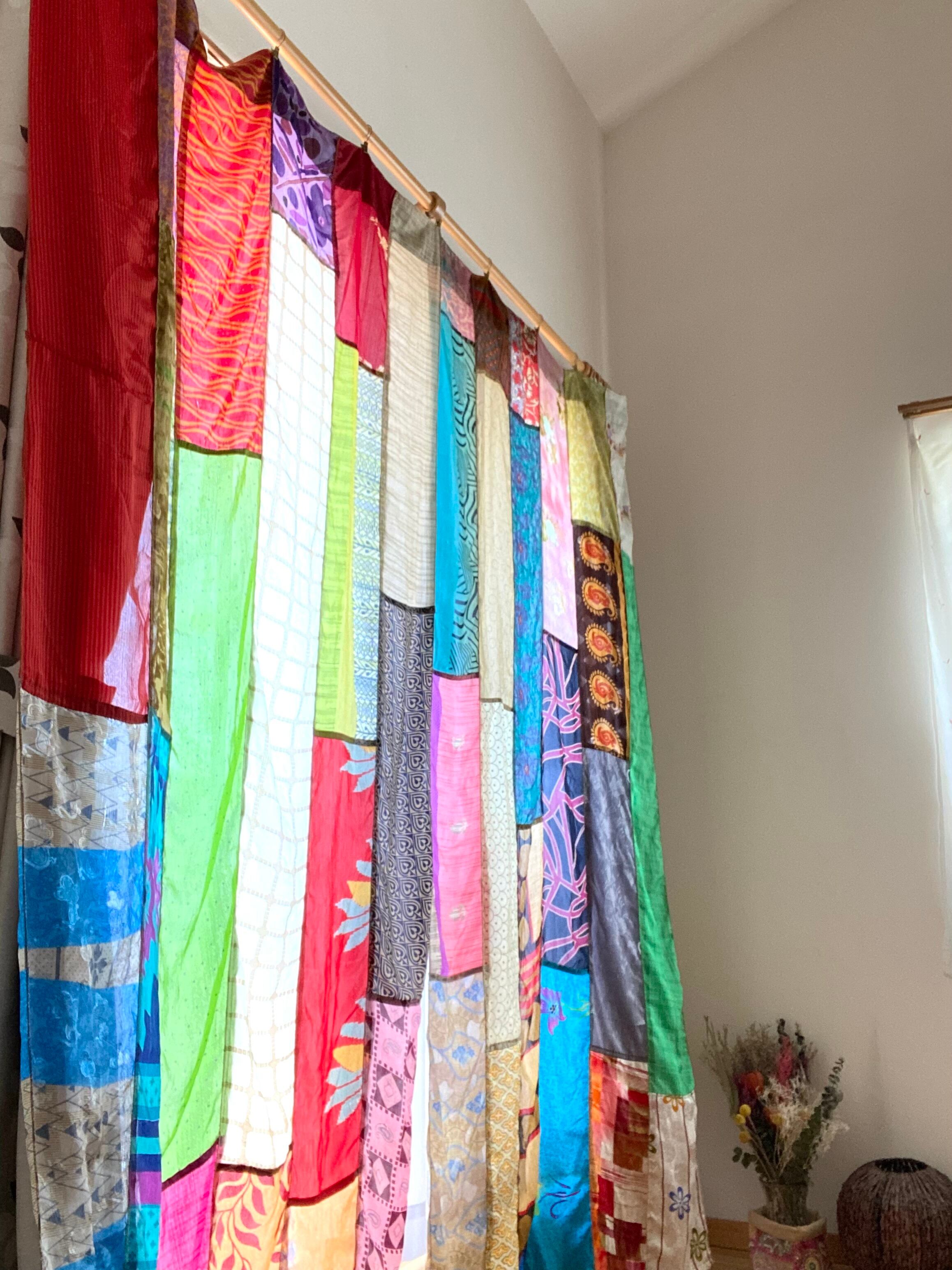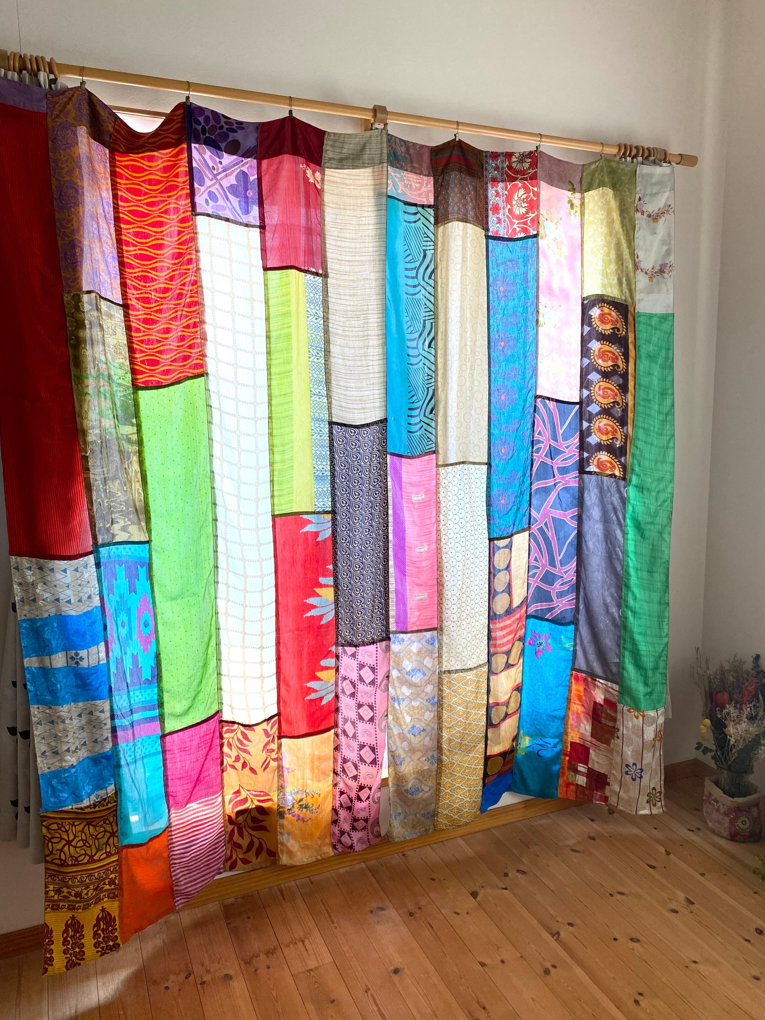 ヴィンテージサリーで出来たパッチワークシルクカーテン