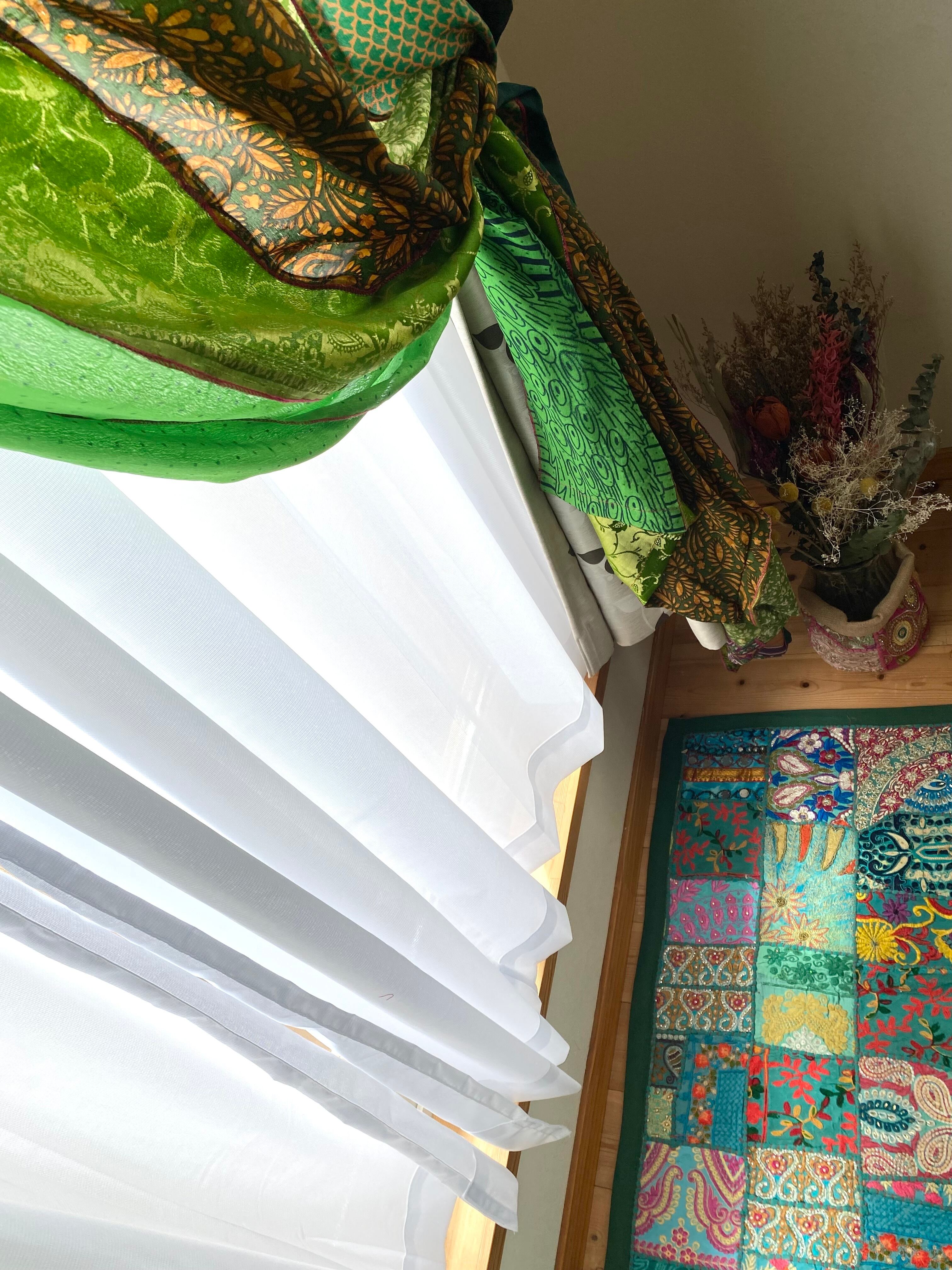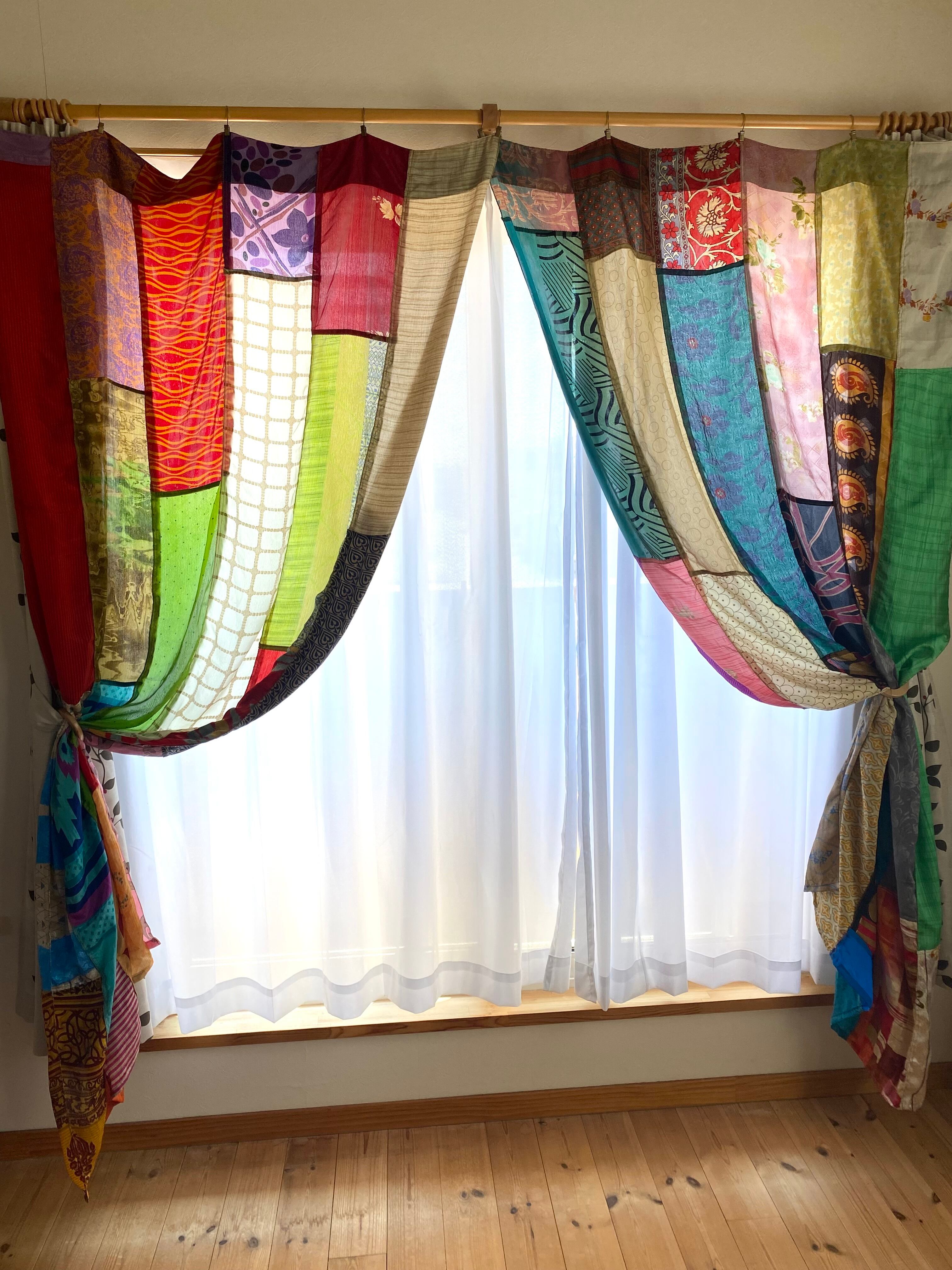 ※カーテンとしては新品未使用ですが、布はヴィンテージサリーを使っております。