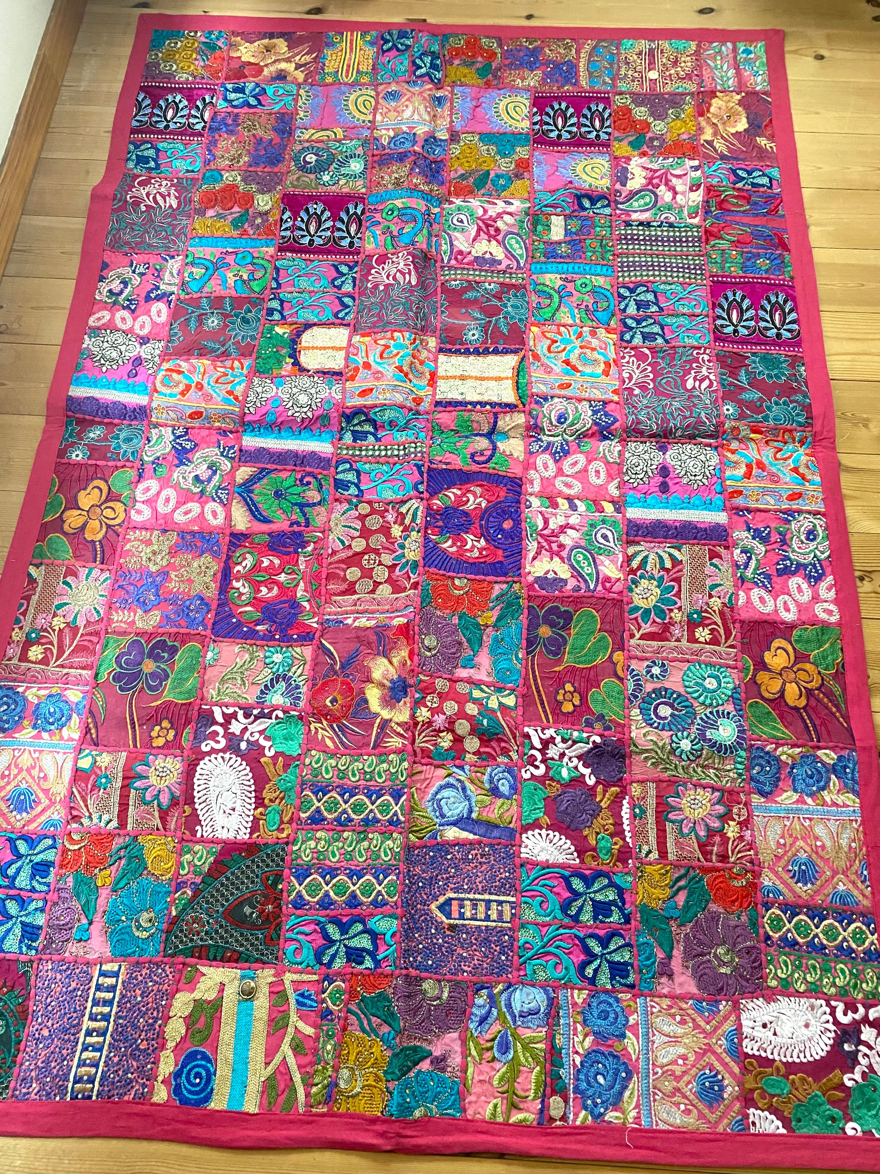 【ザリ刺繍タペストリーパッチワークラグ】