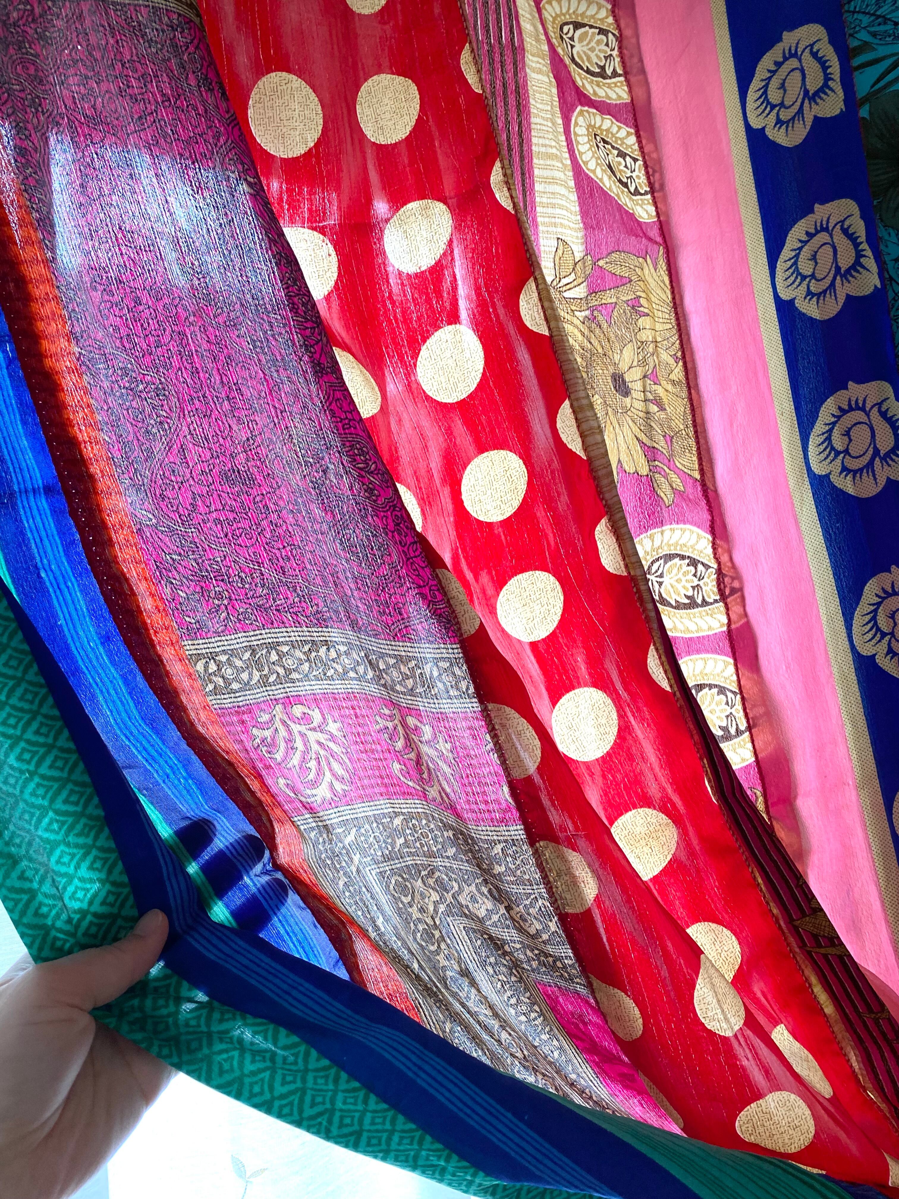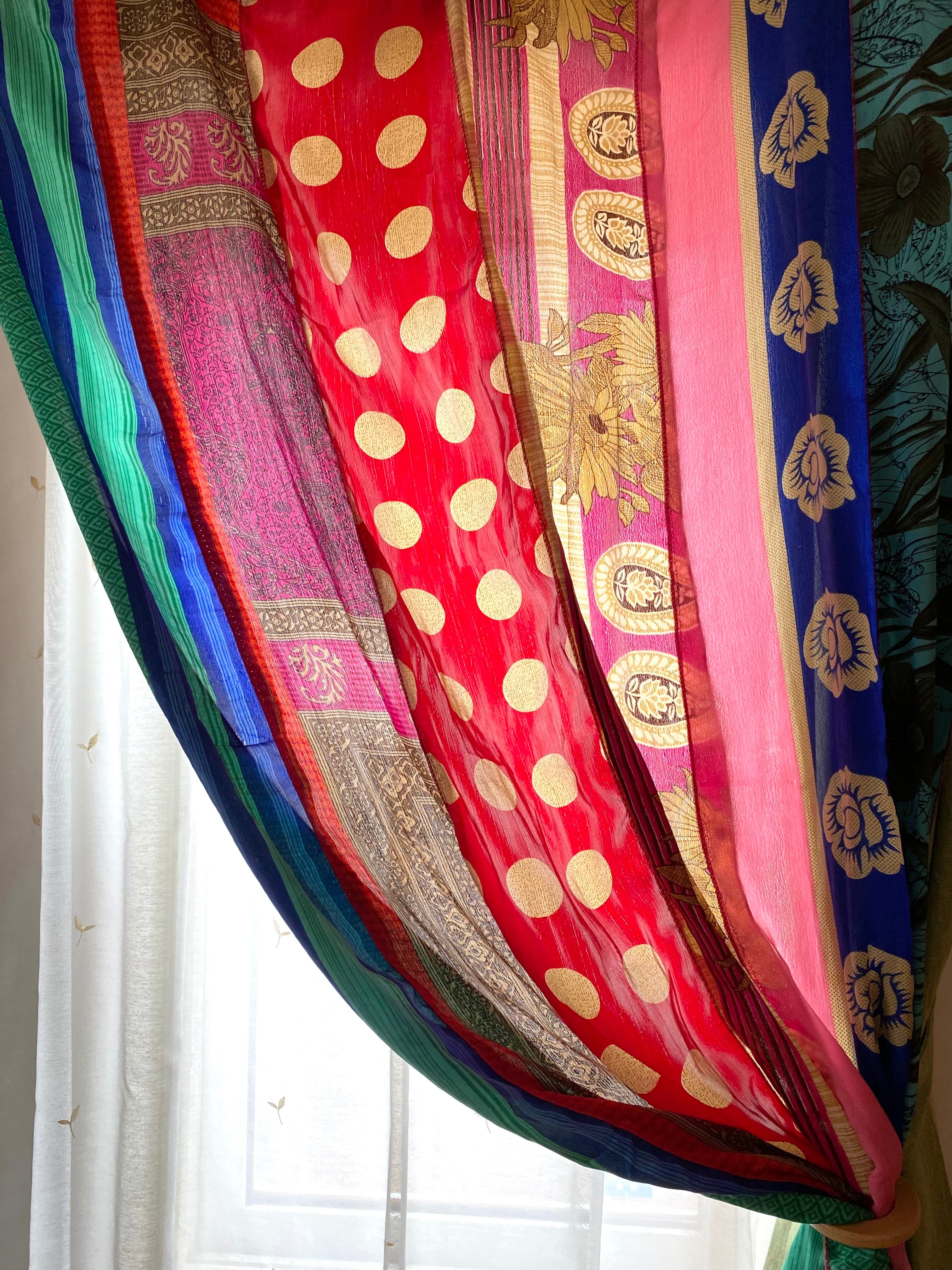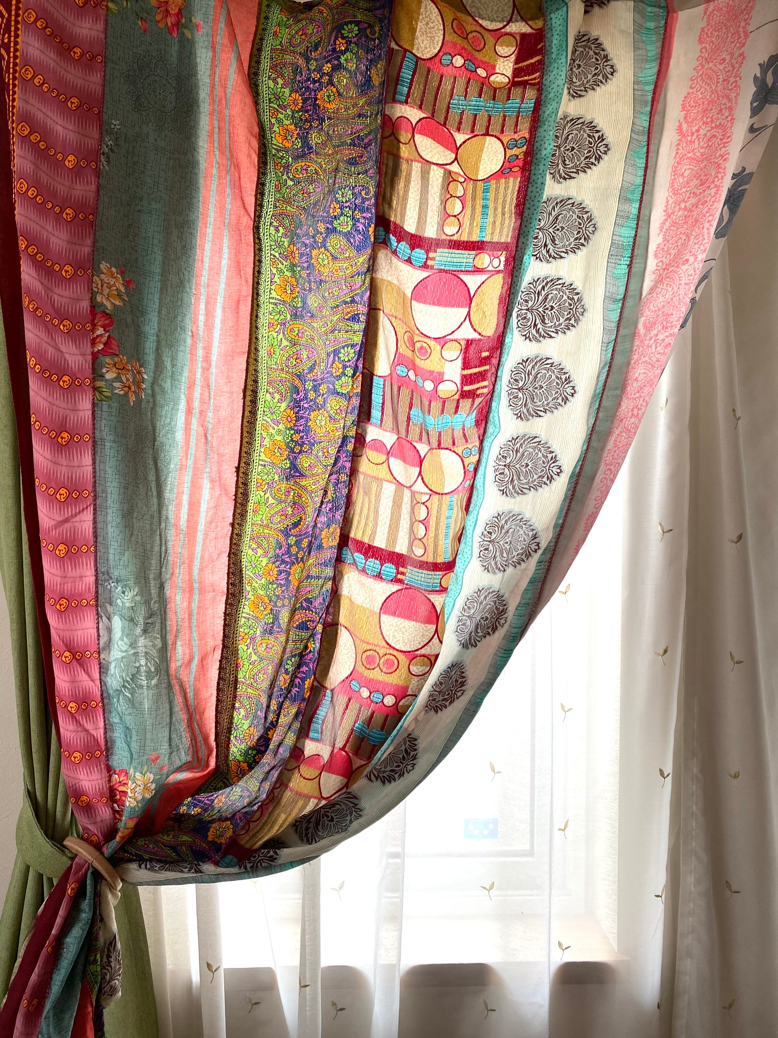 ヴィンテージサリーで出来たパッチワークシルクカーテン