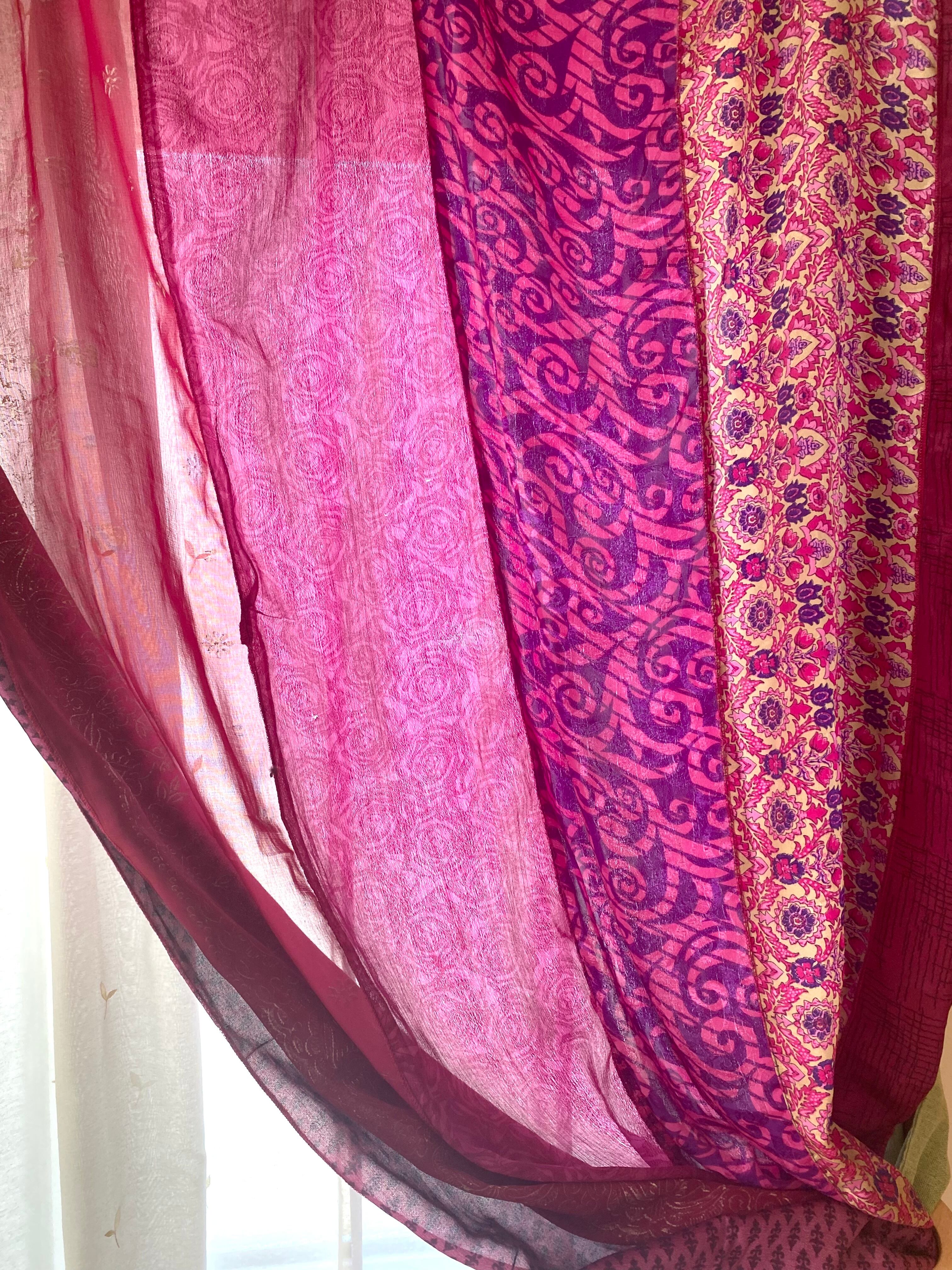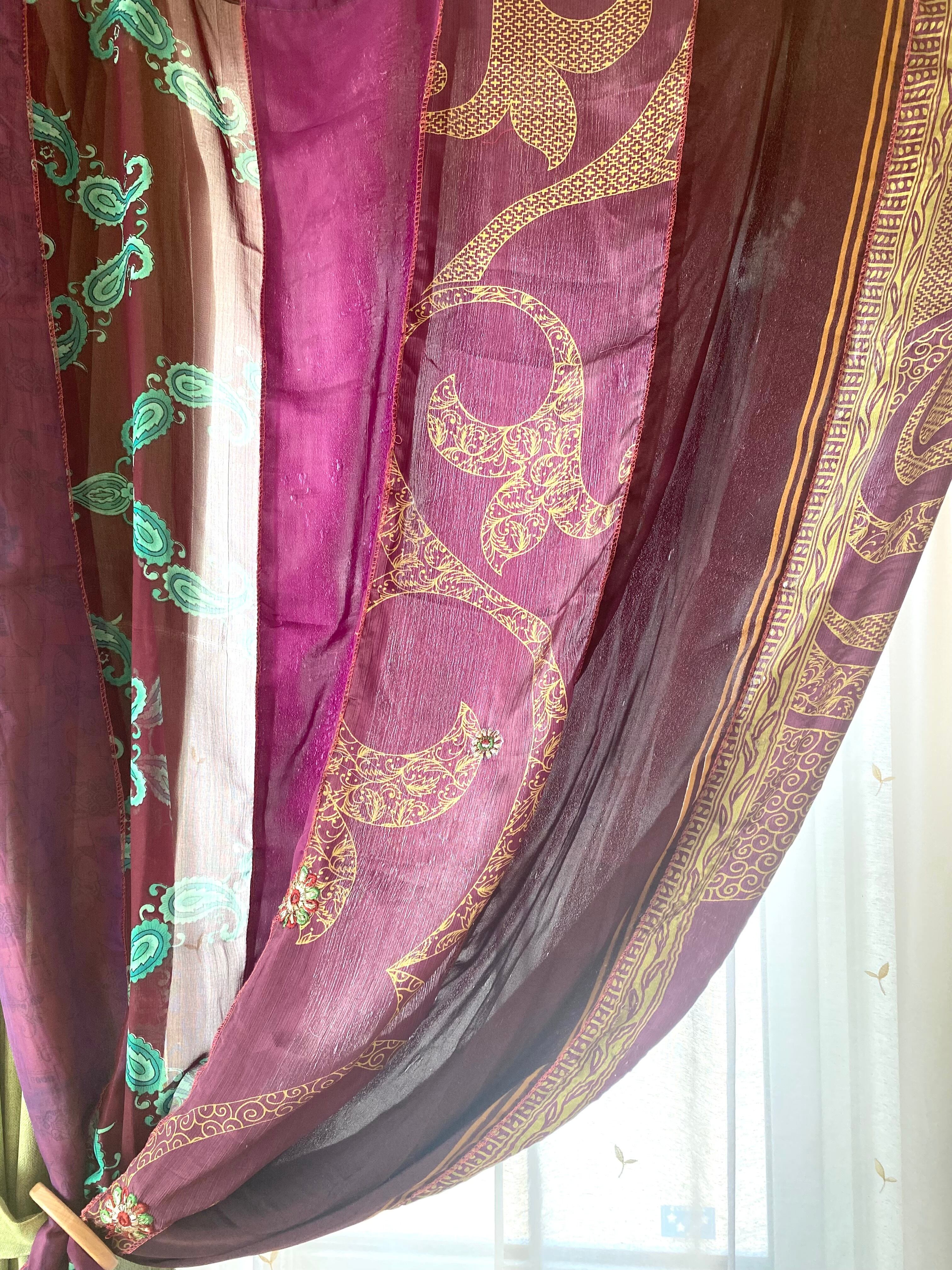 ヴィンテージサリーで出来たパッチワークシルクカーテン