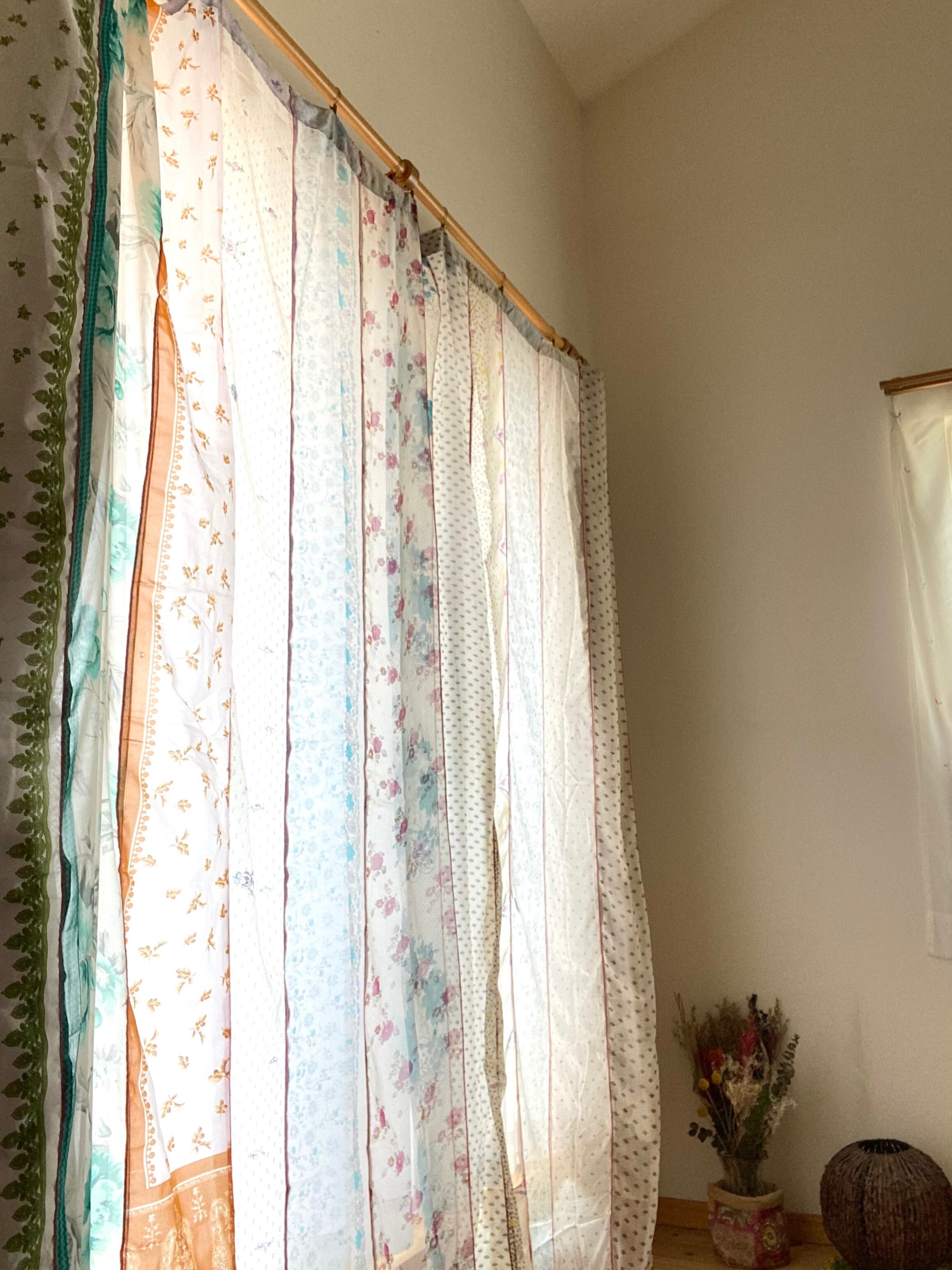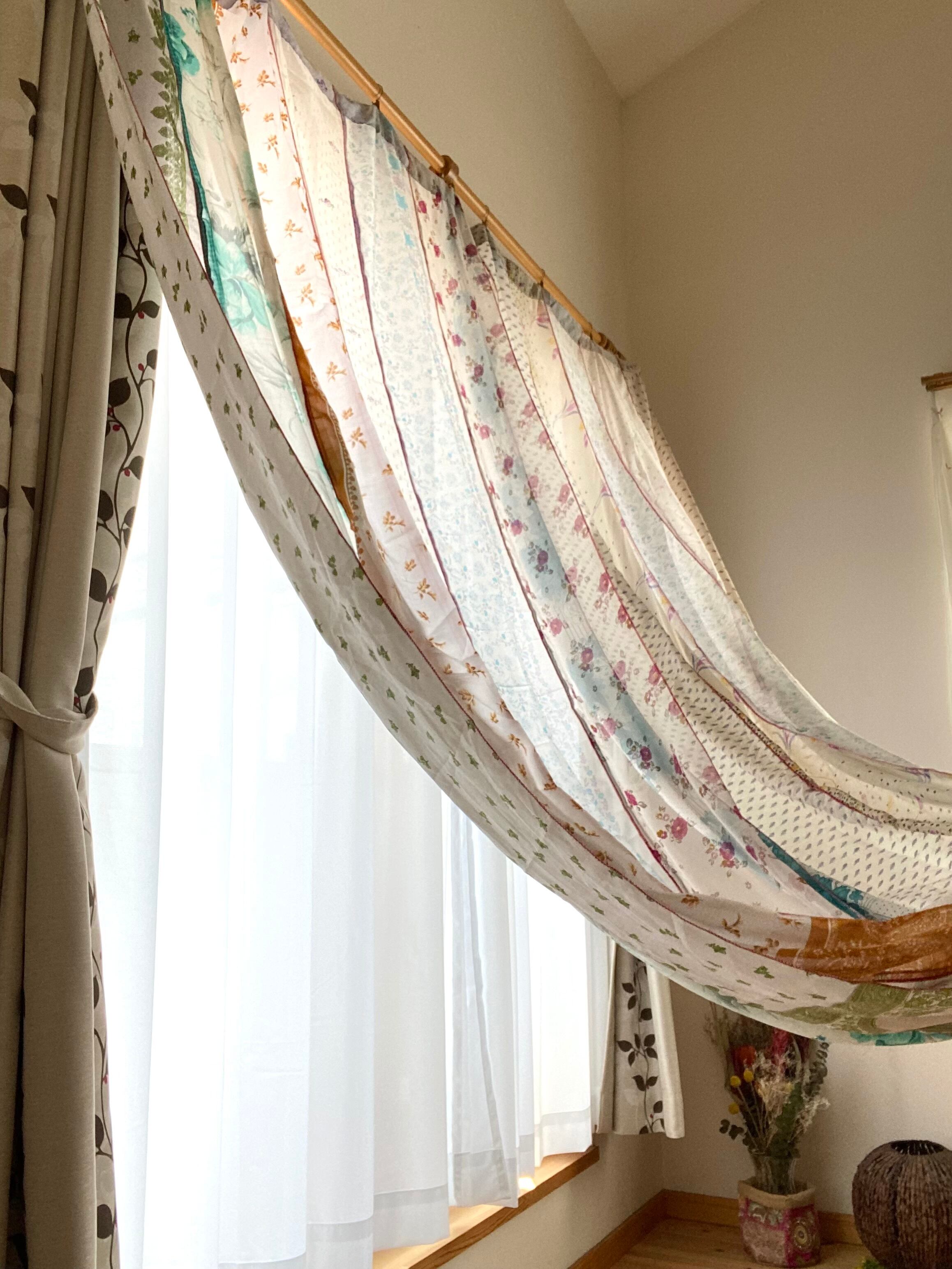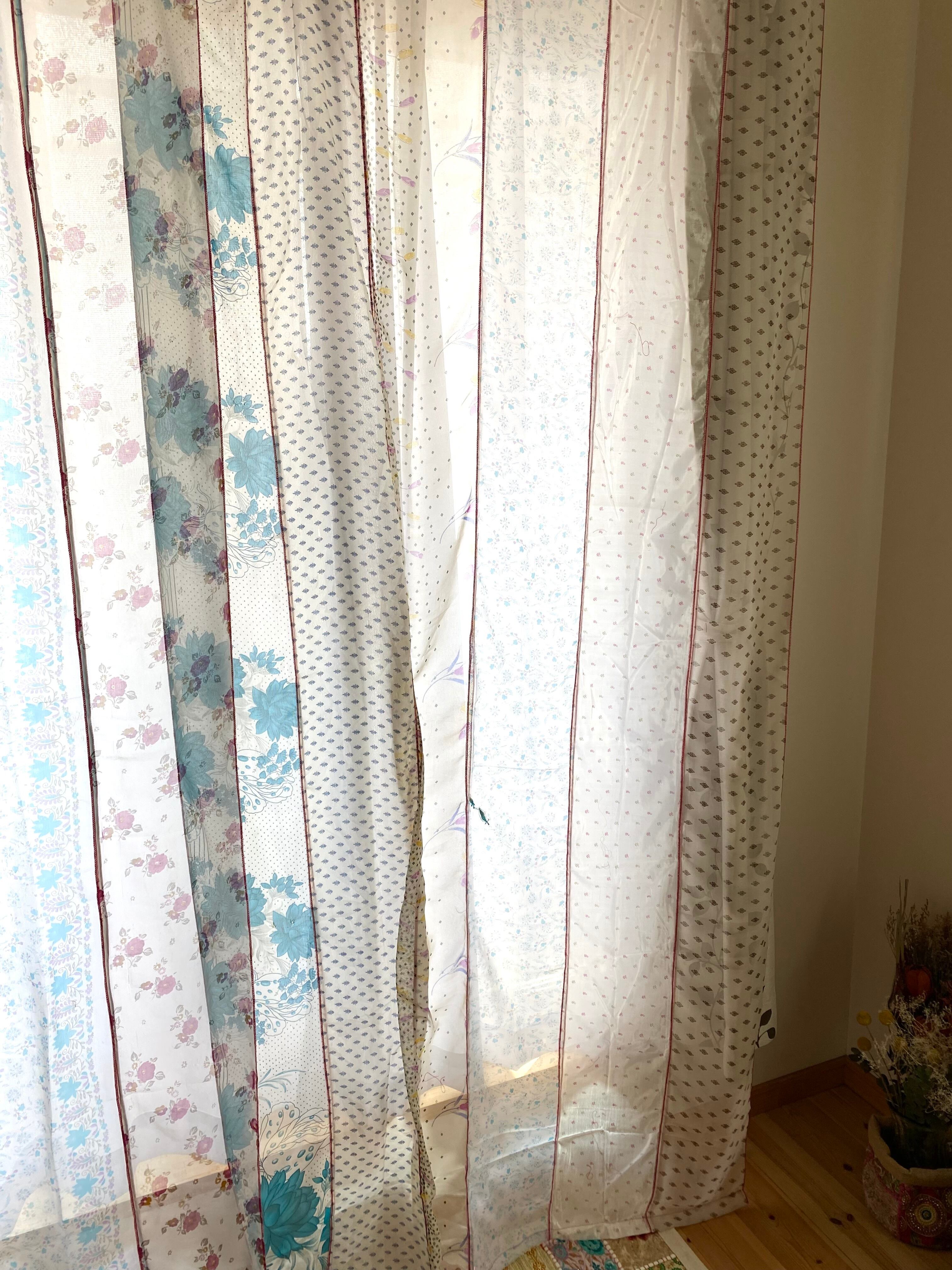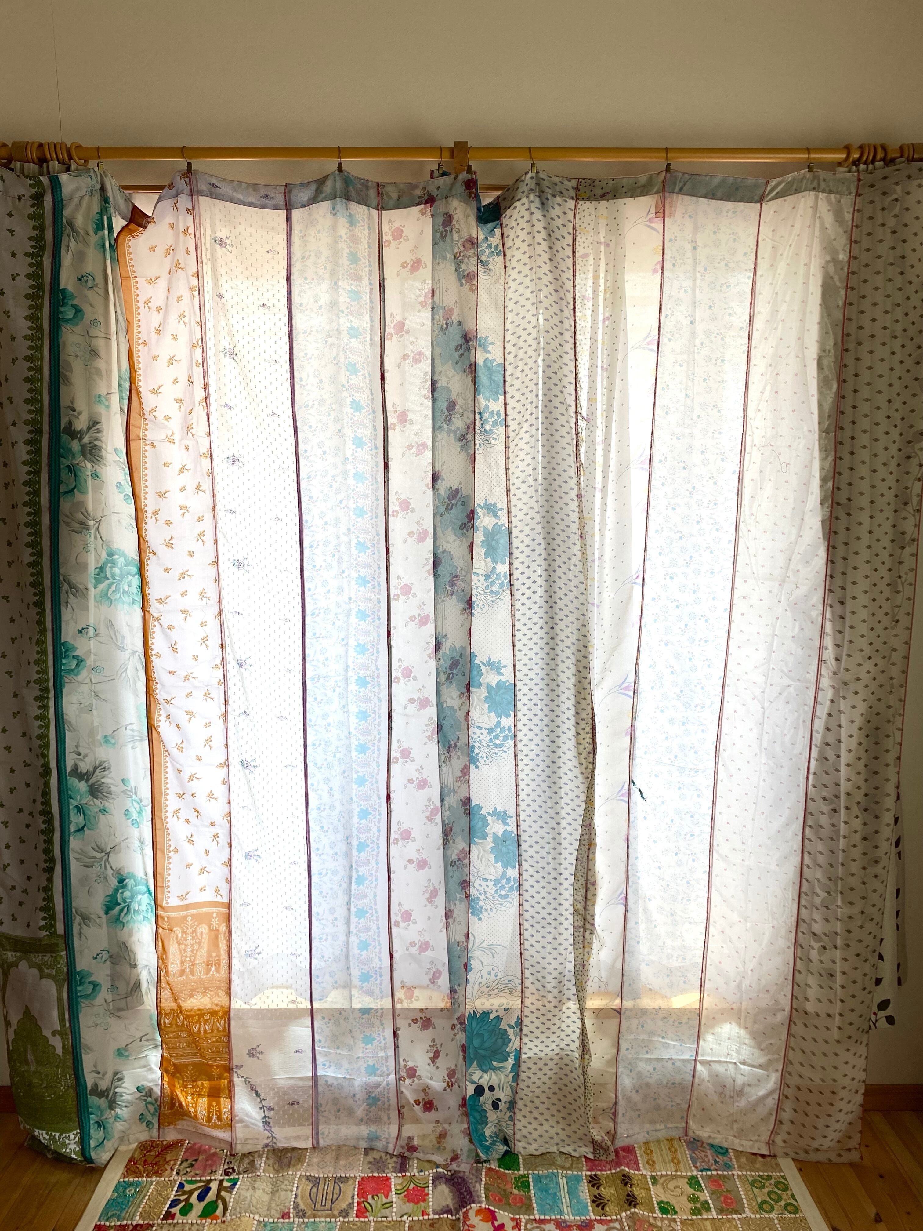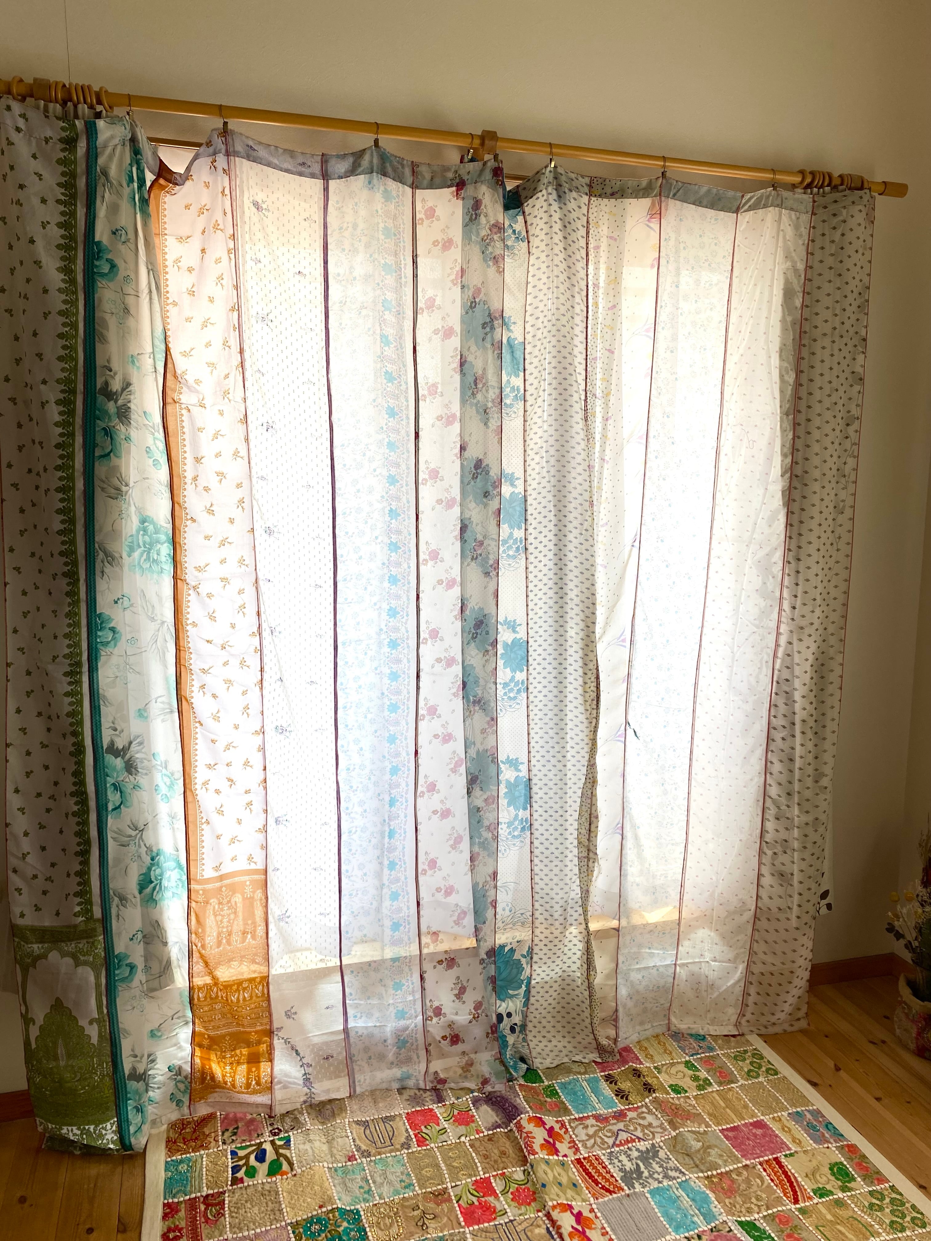 ヴィンテージサリーで出来たパッチワークシルクカーテン