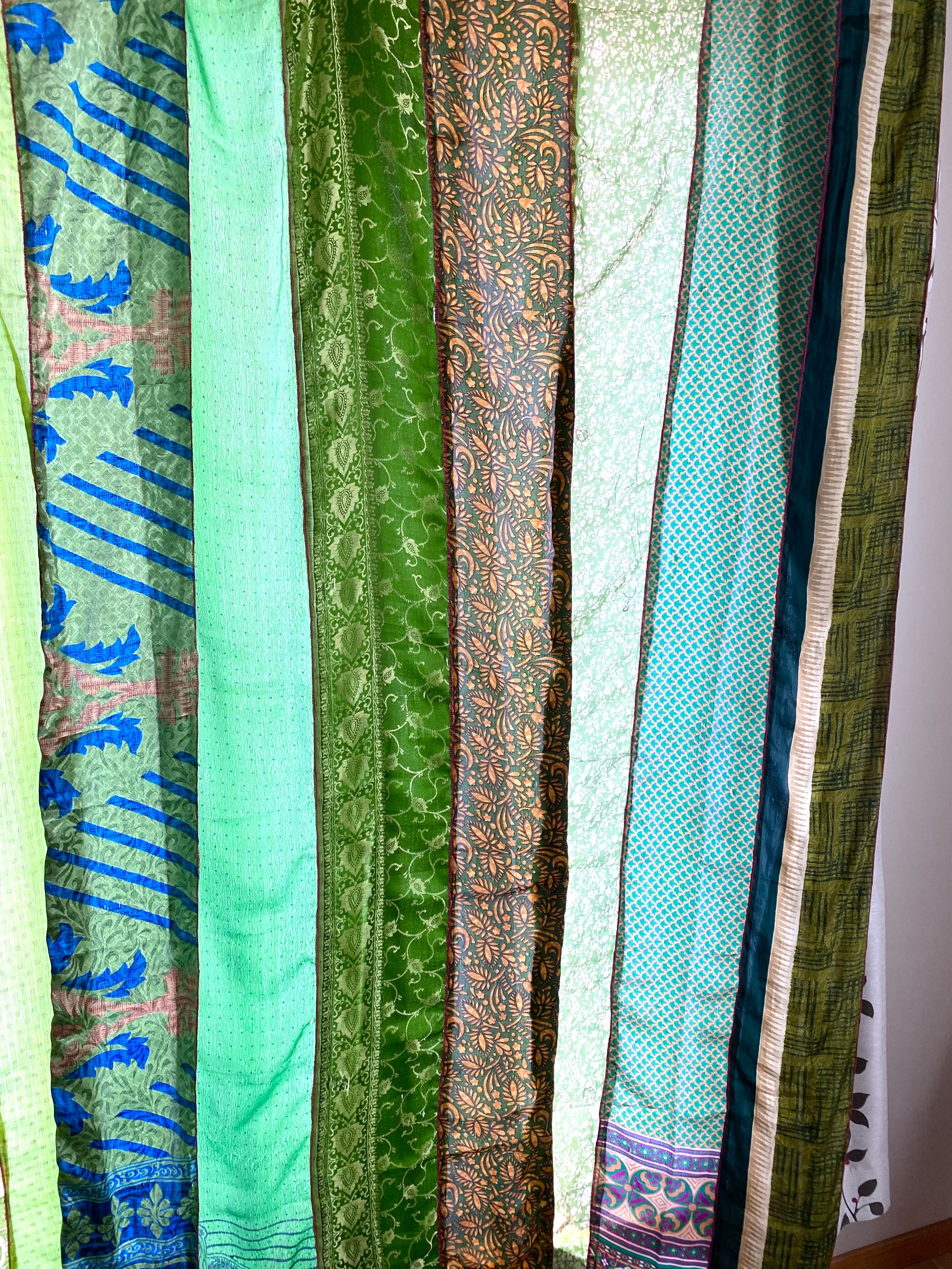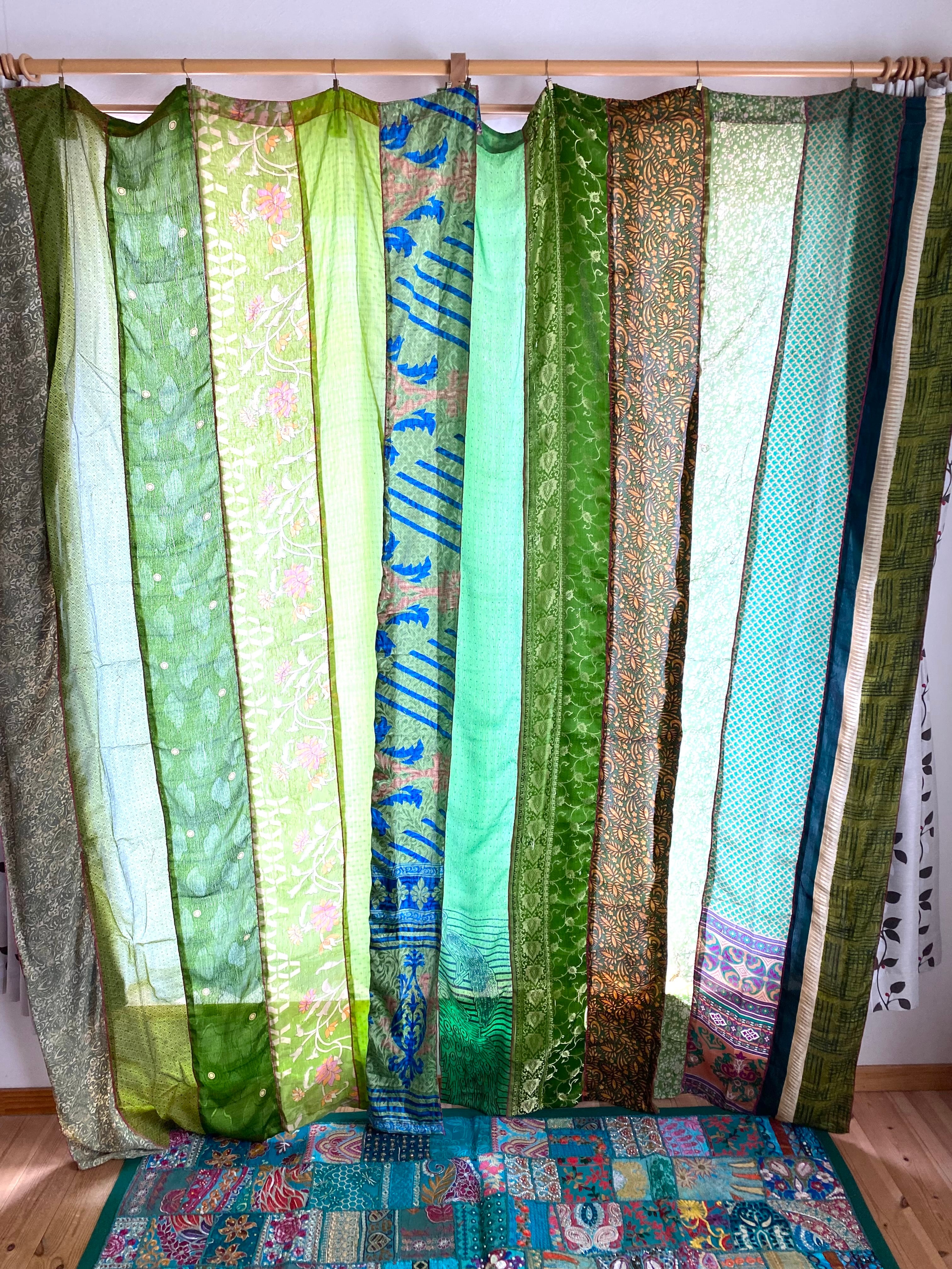 ヴィンテージサリーで出来たパッチワークシルクカーテン