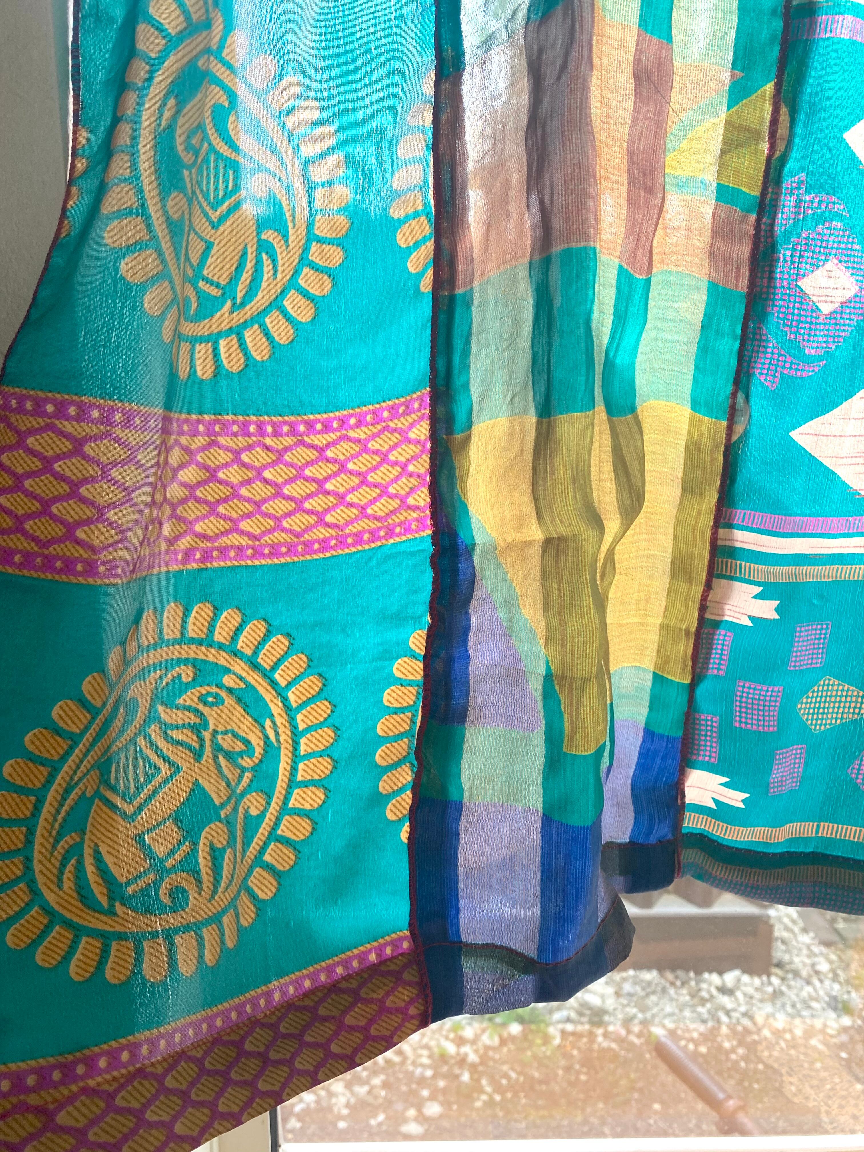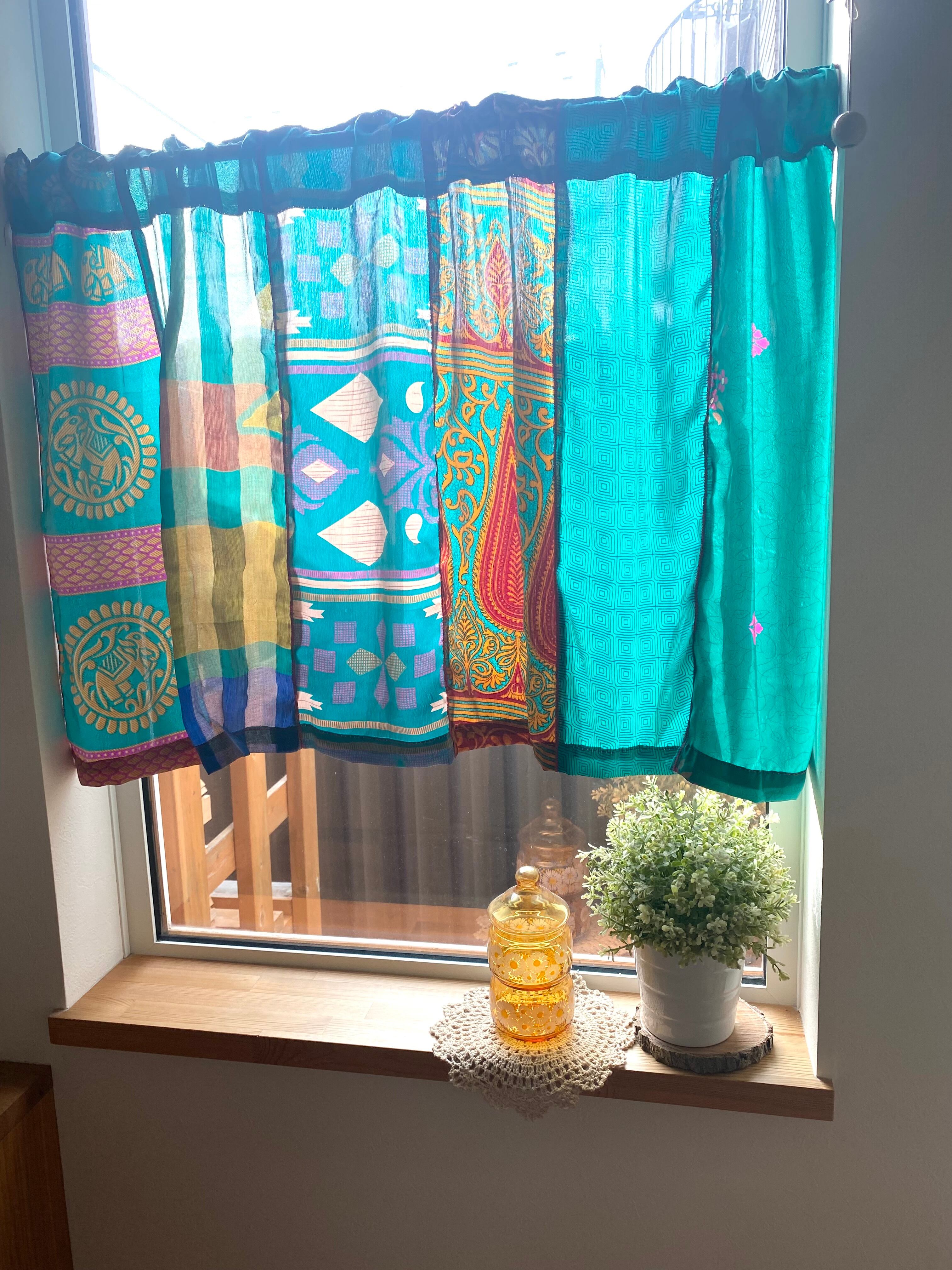 ヴィンテージサリーで出来たパッチワークシルクカーテンのカフェカーテンです!!