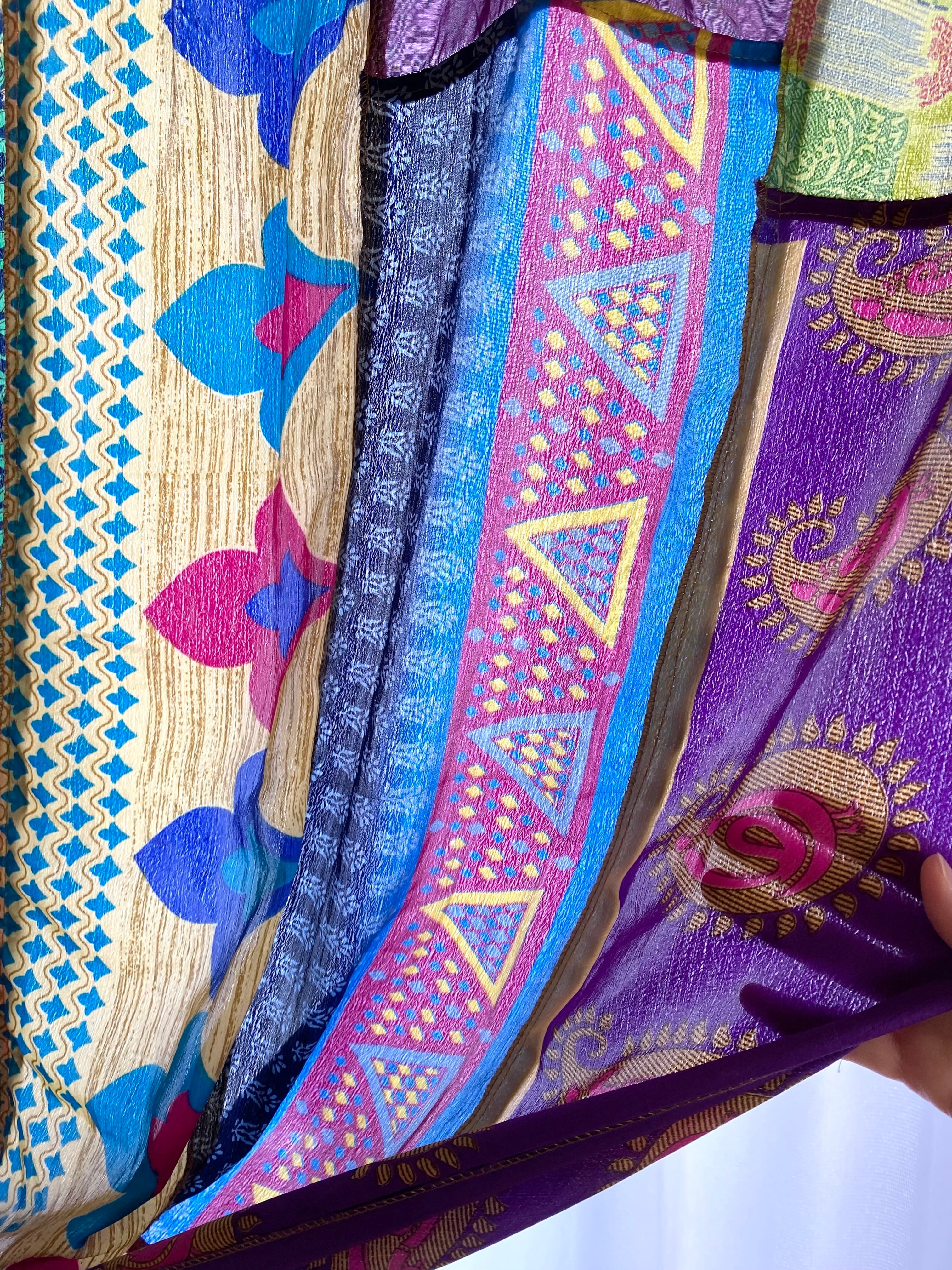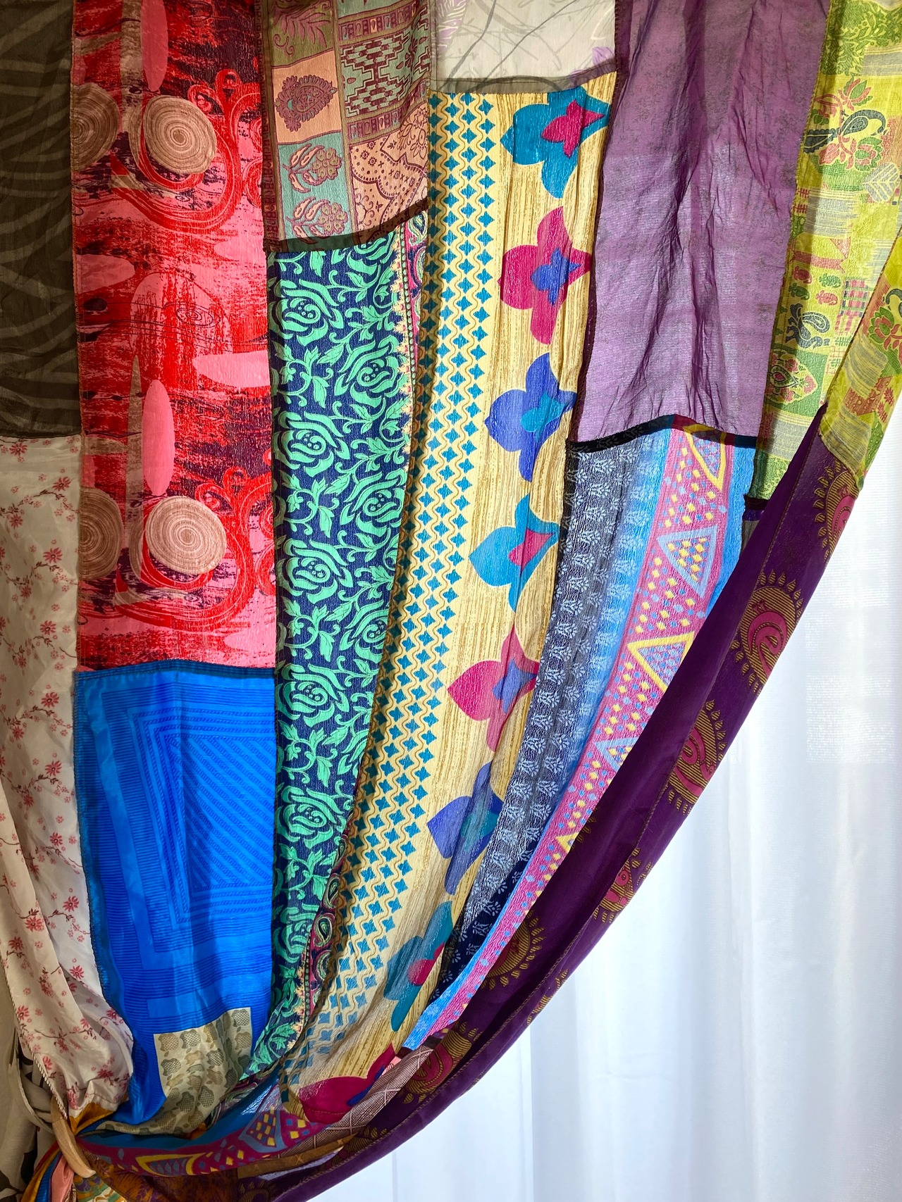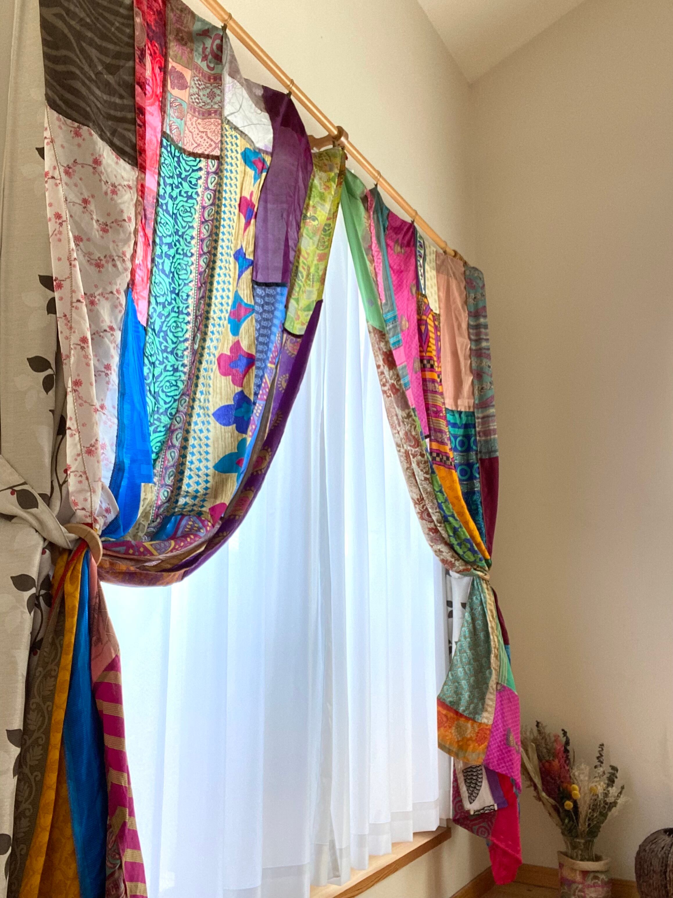 ヴィンテージサリーで出来たパッチワークシルクカーテン