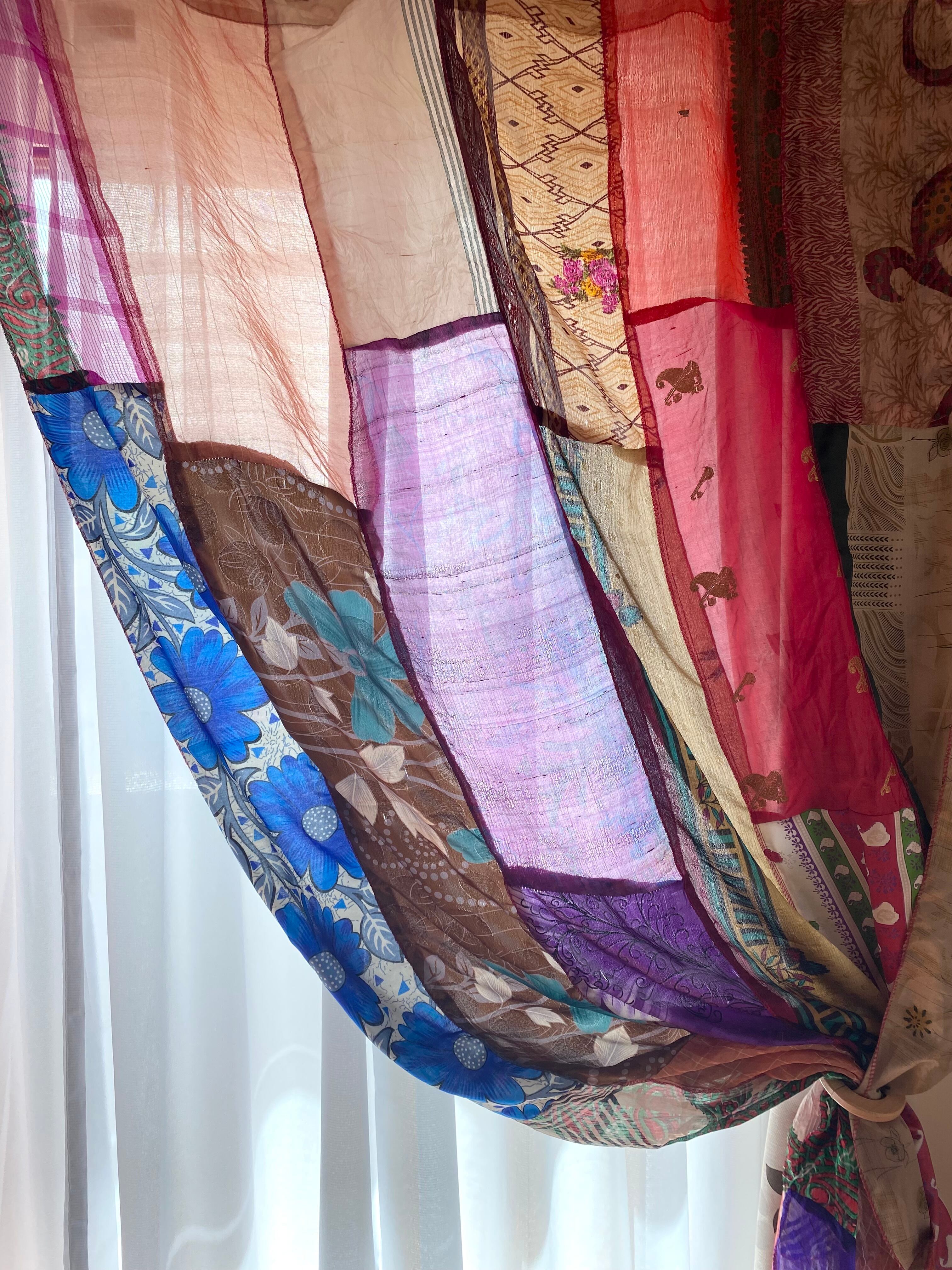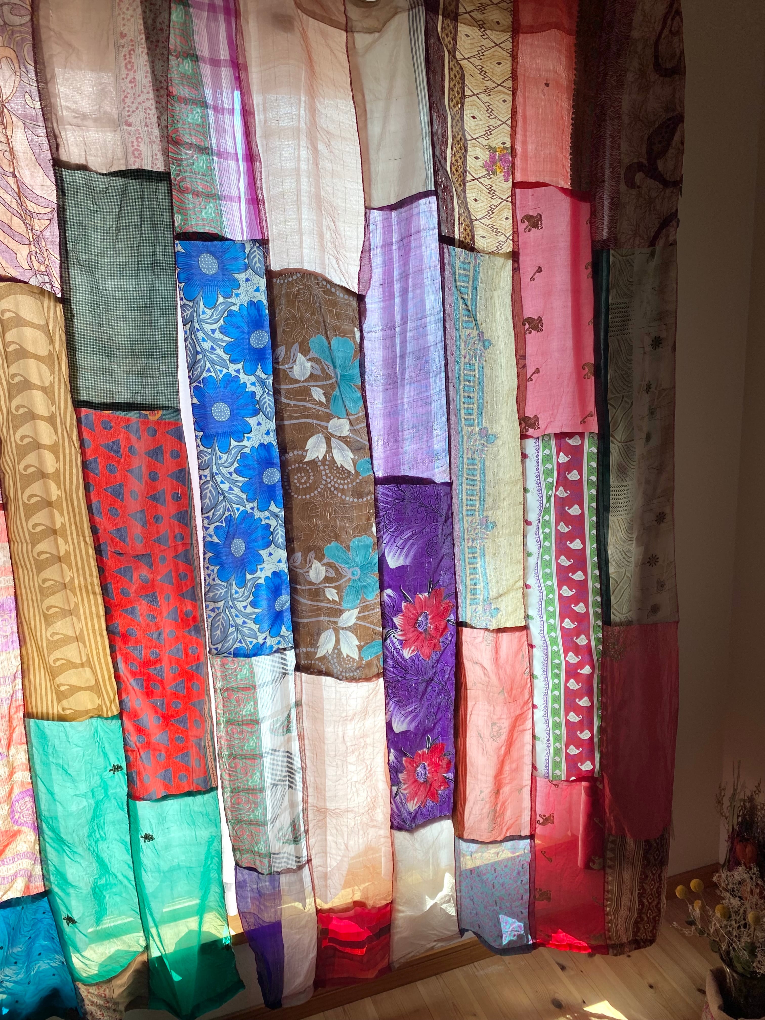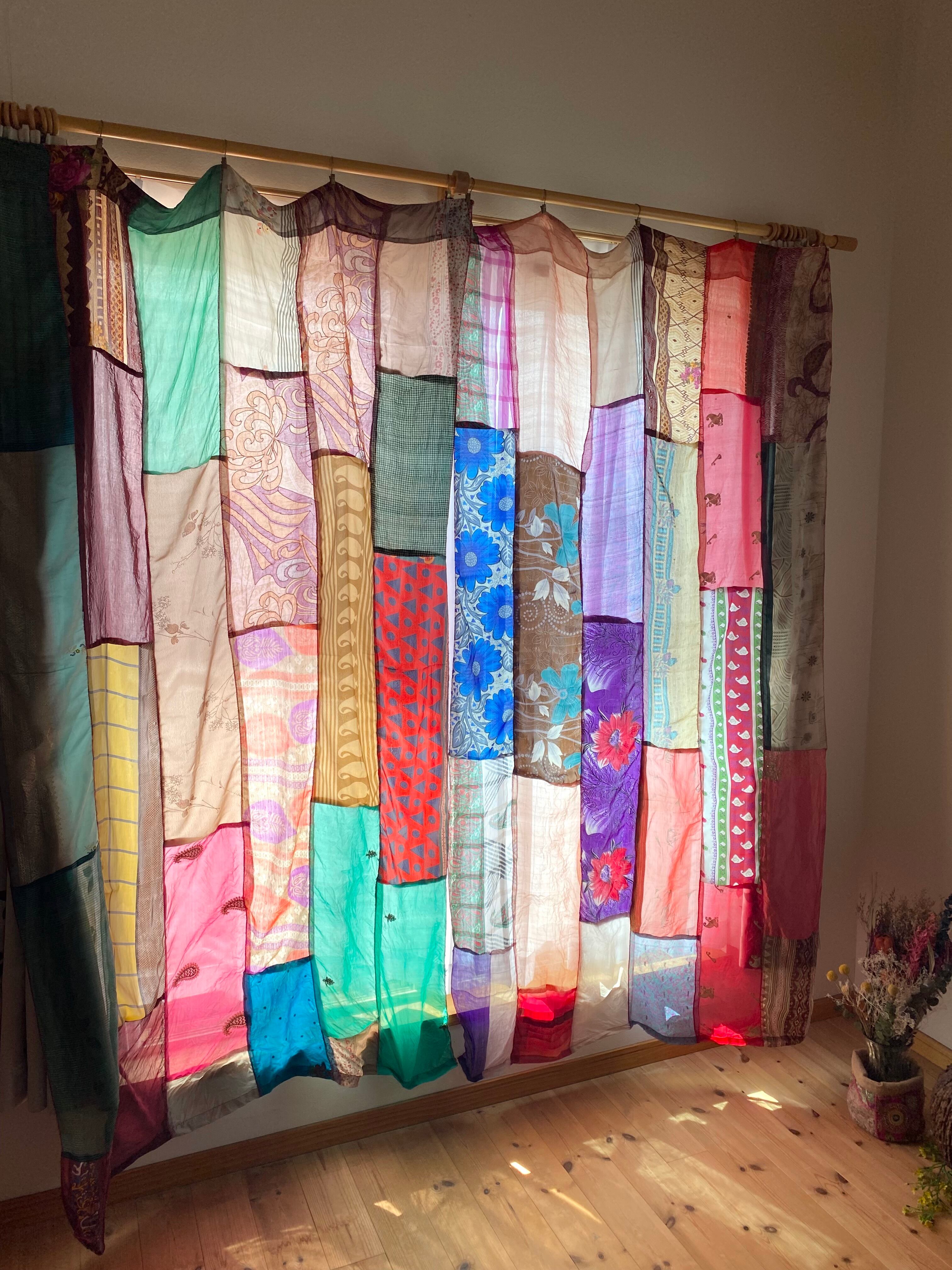 ヴィンテージサリーで出来たパッチワークシルクカーテン