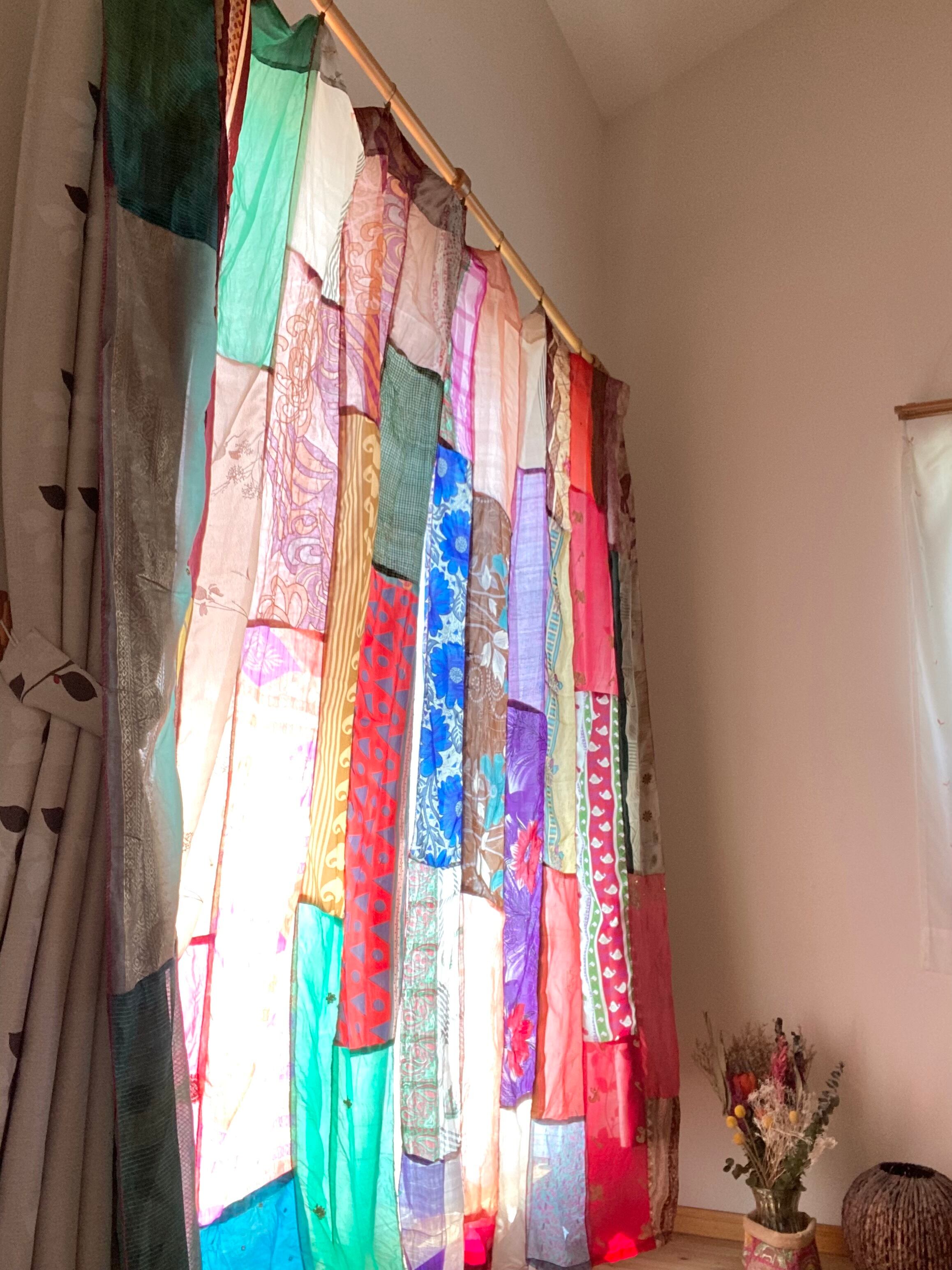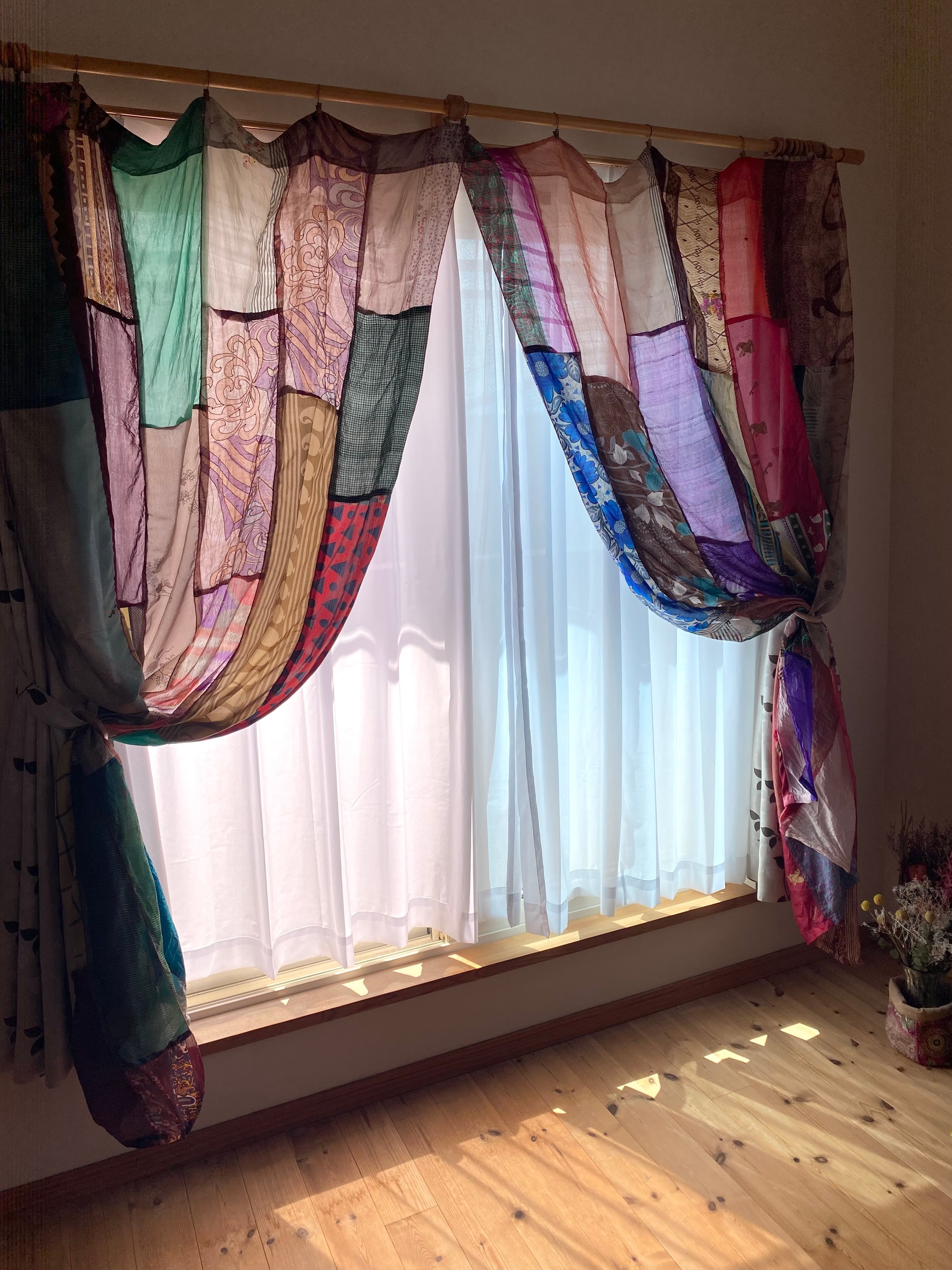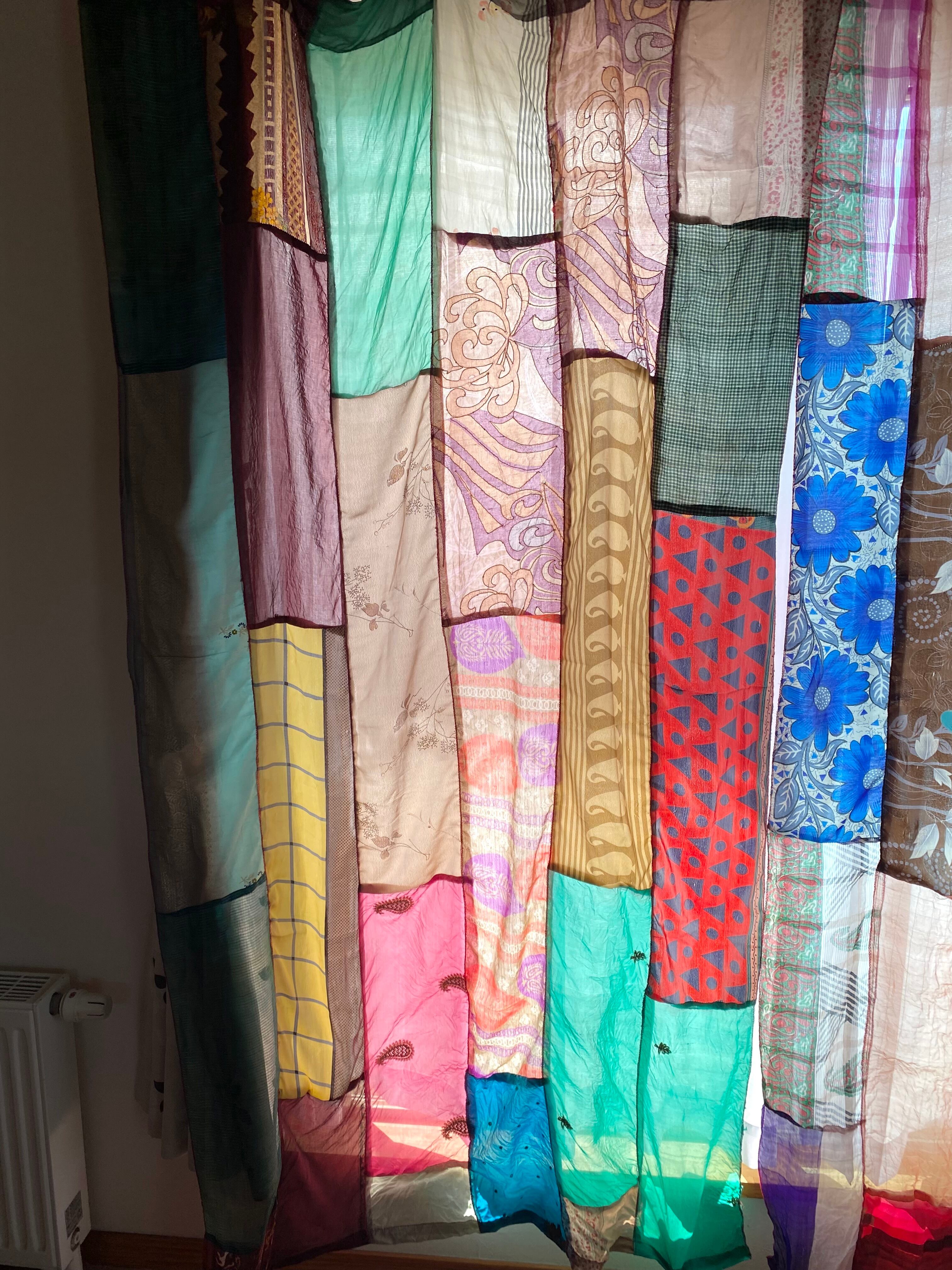 ヴィンテージサリーで出来たパッチワークシルクカーテン