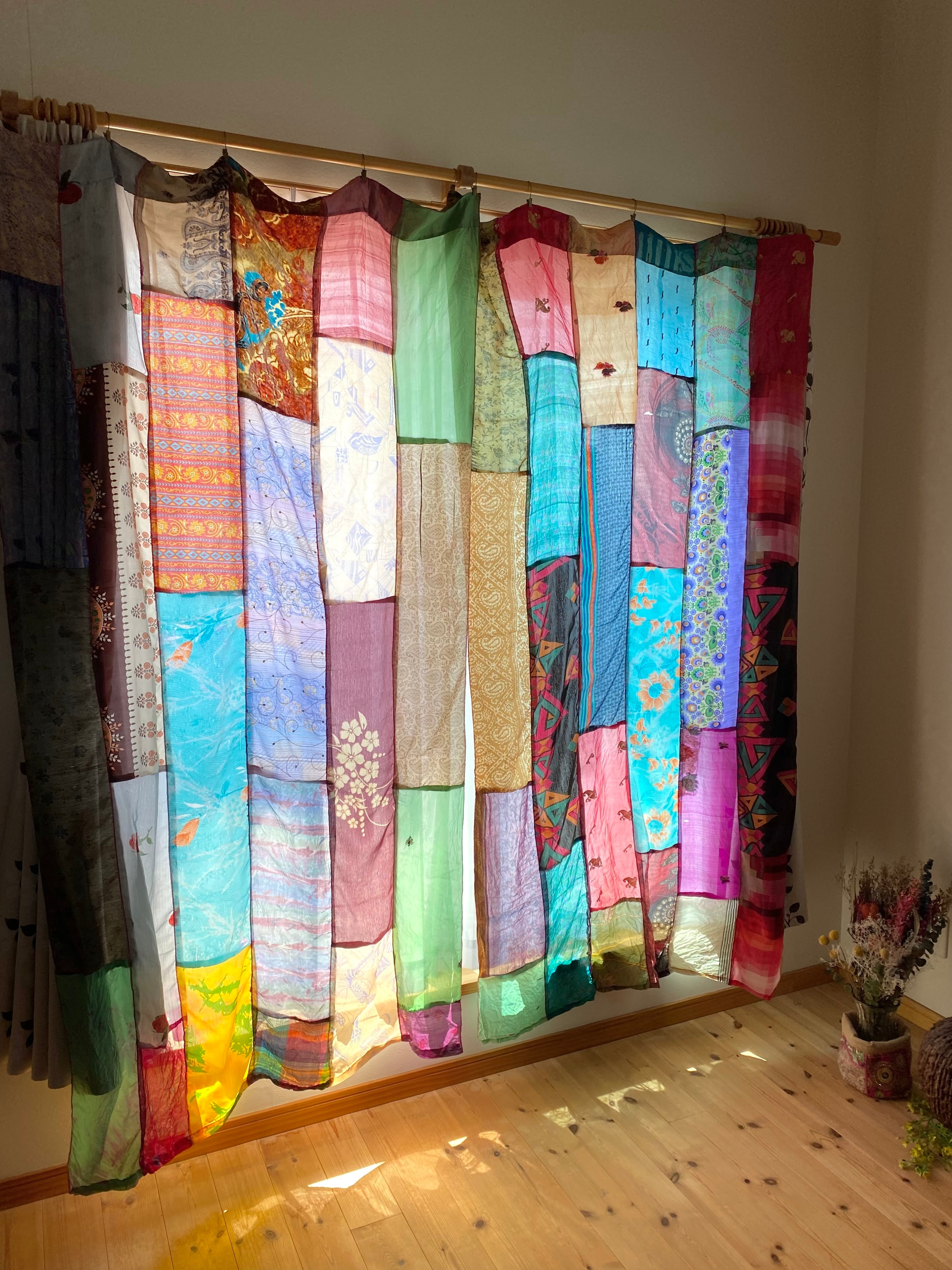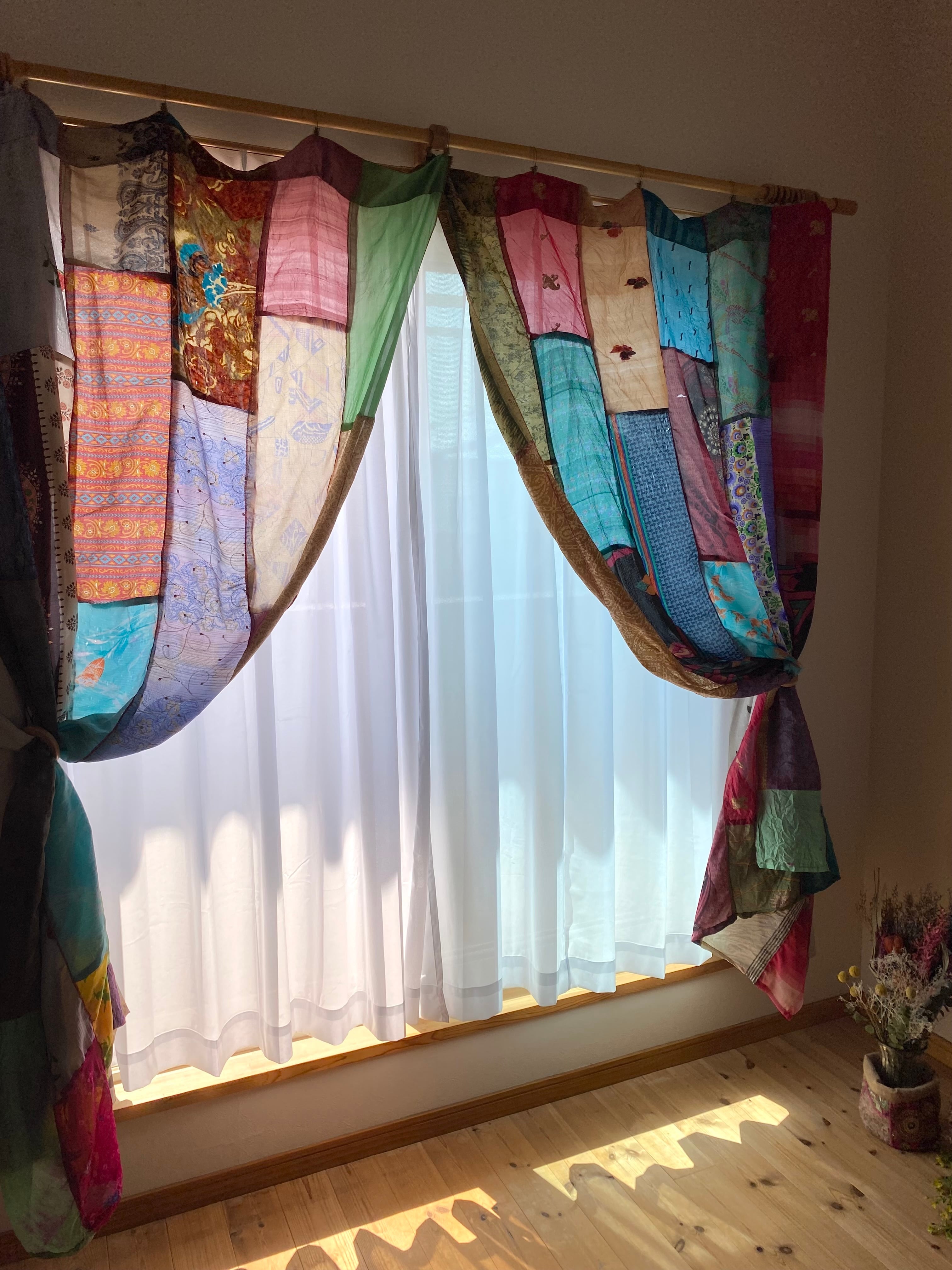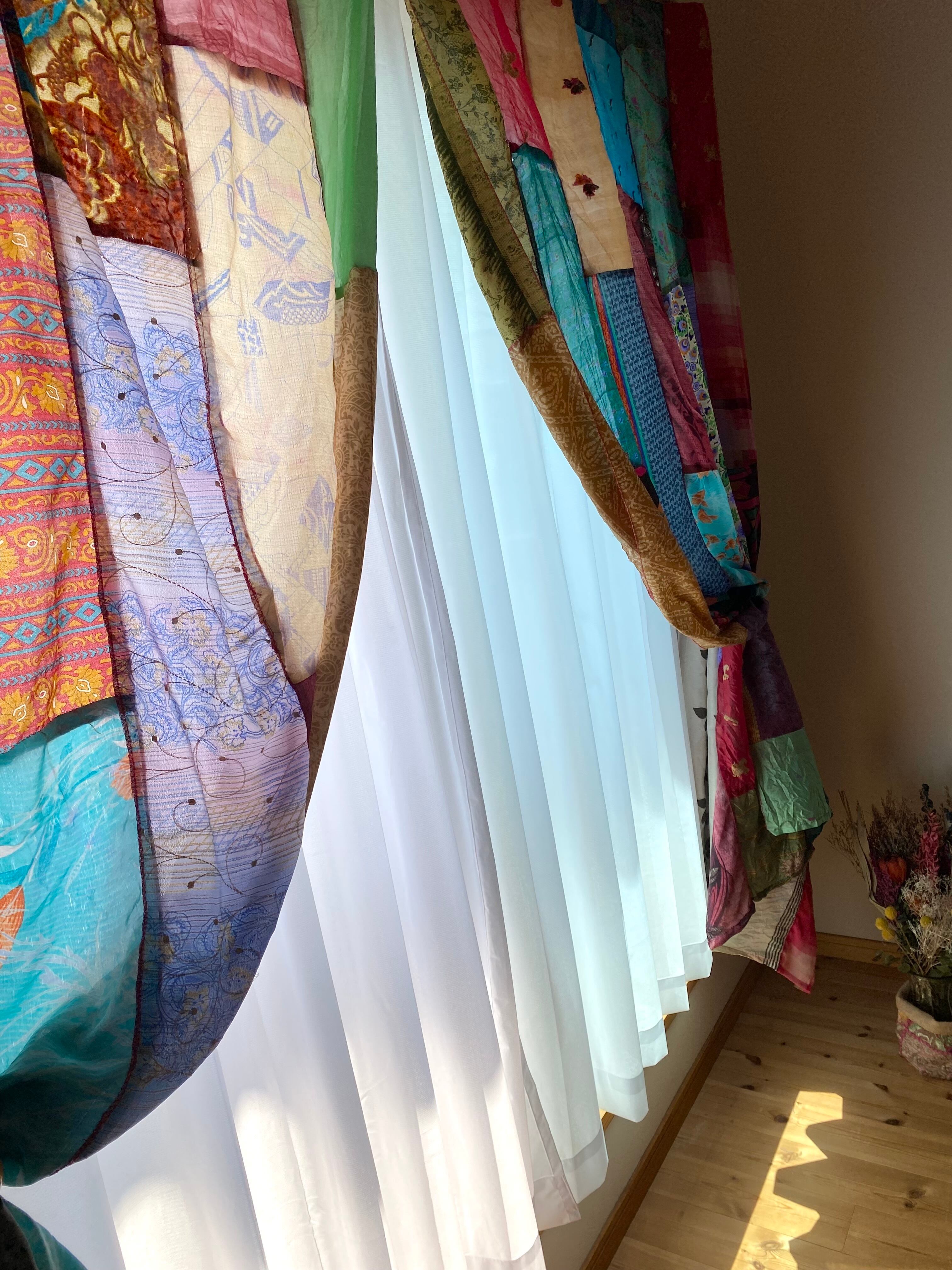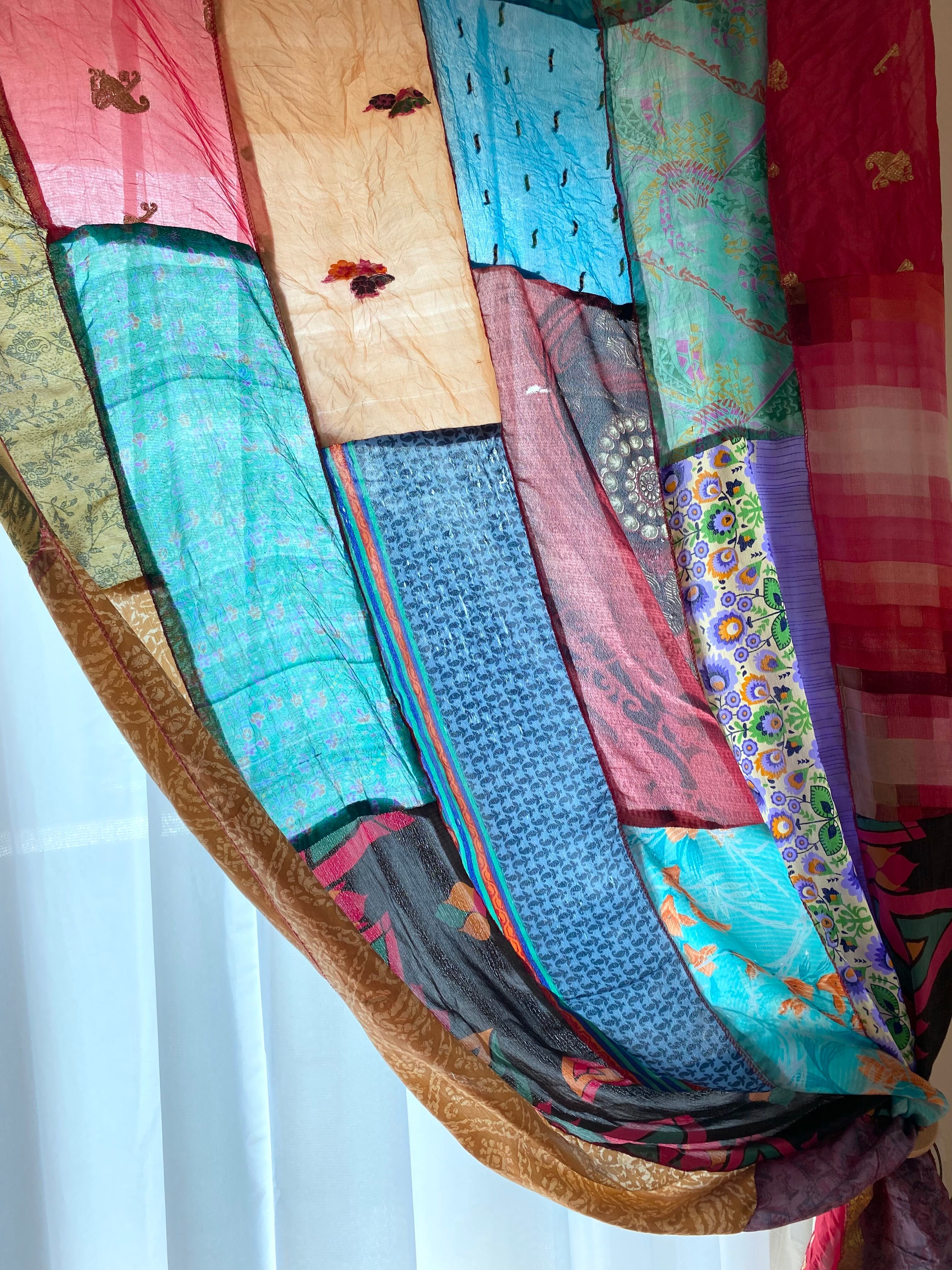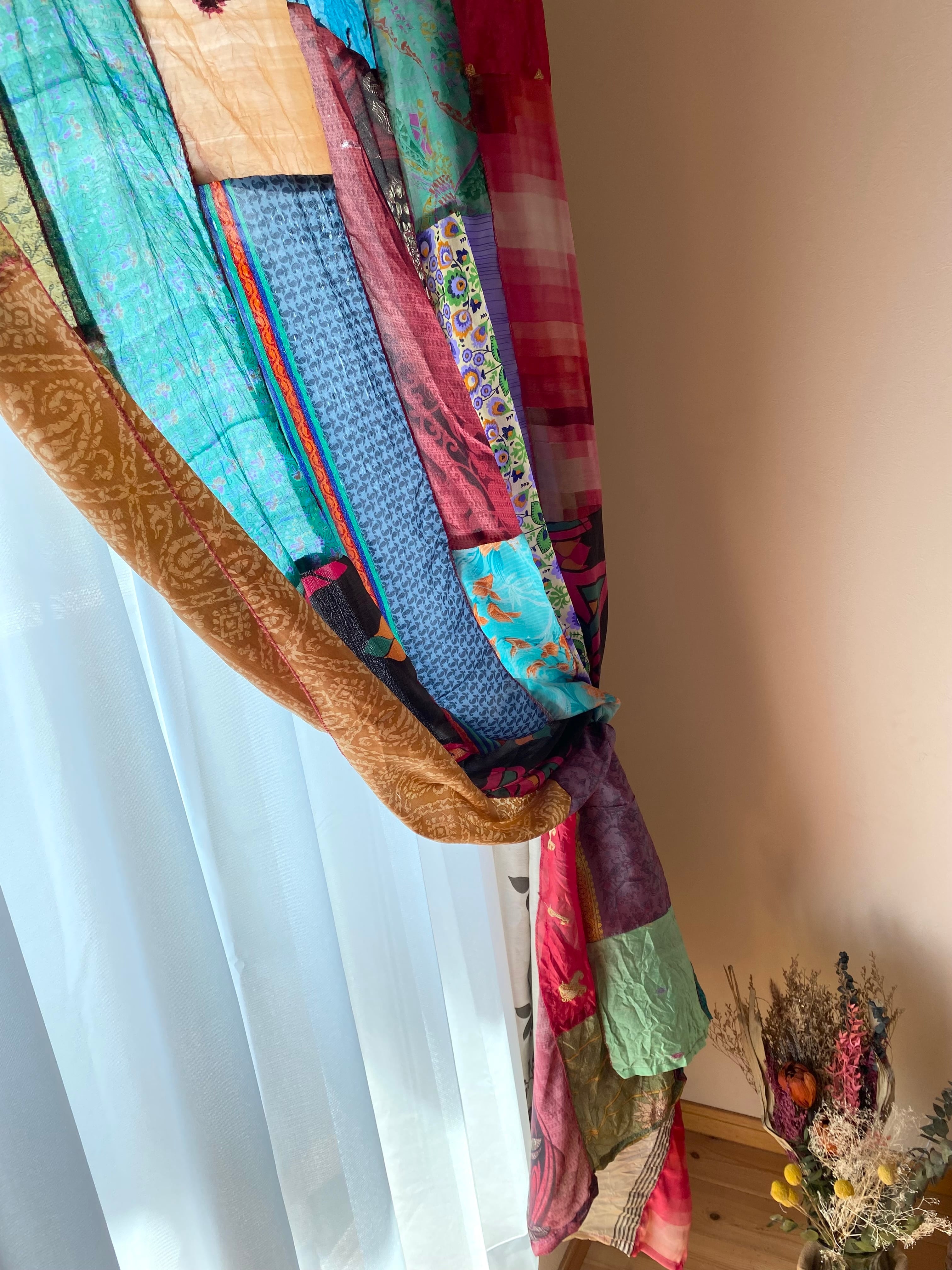 ヴィンテージサリーで出来たパッチワークシルクカーテン