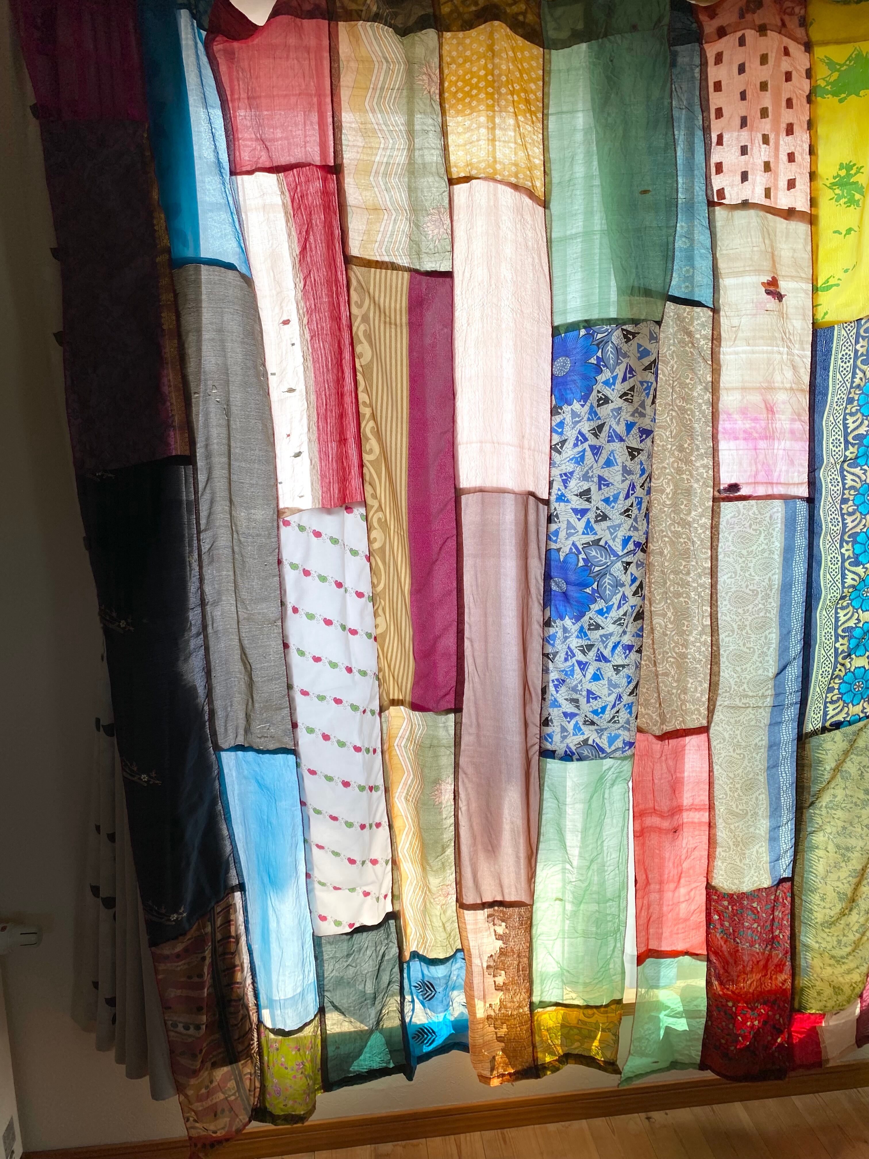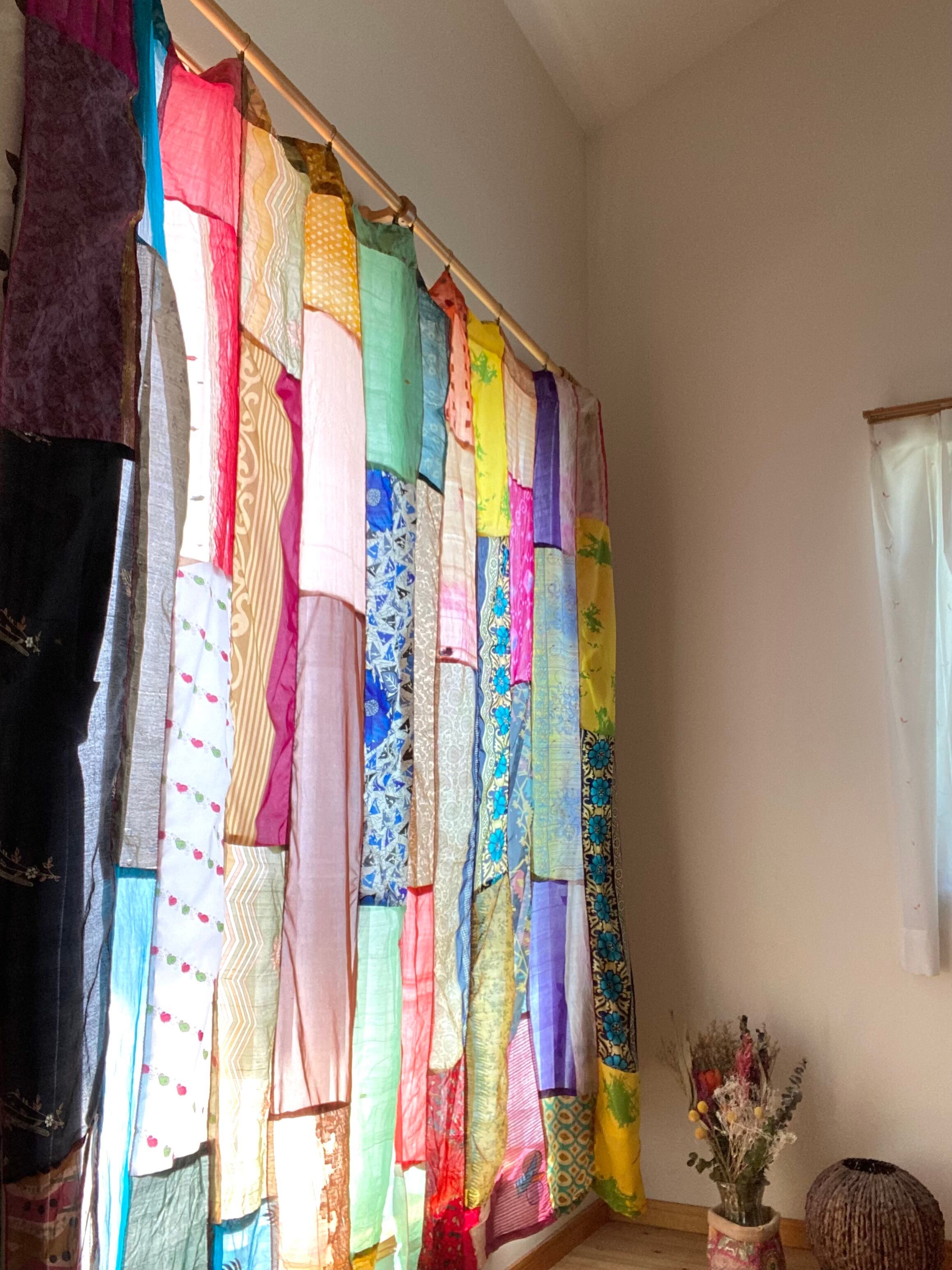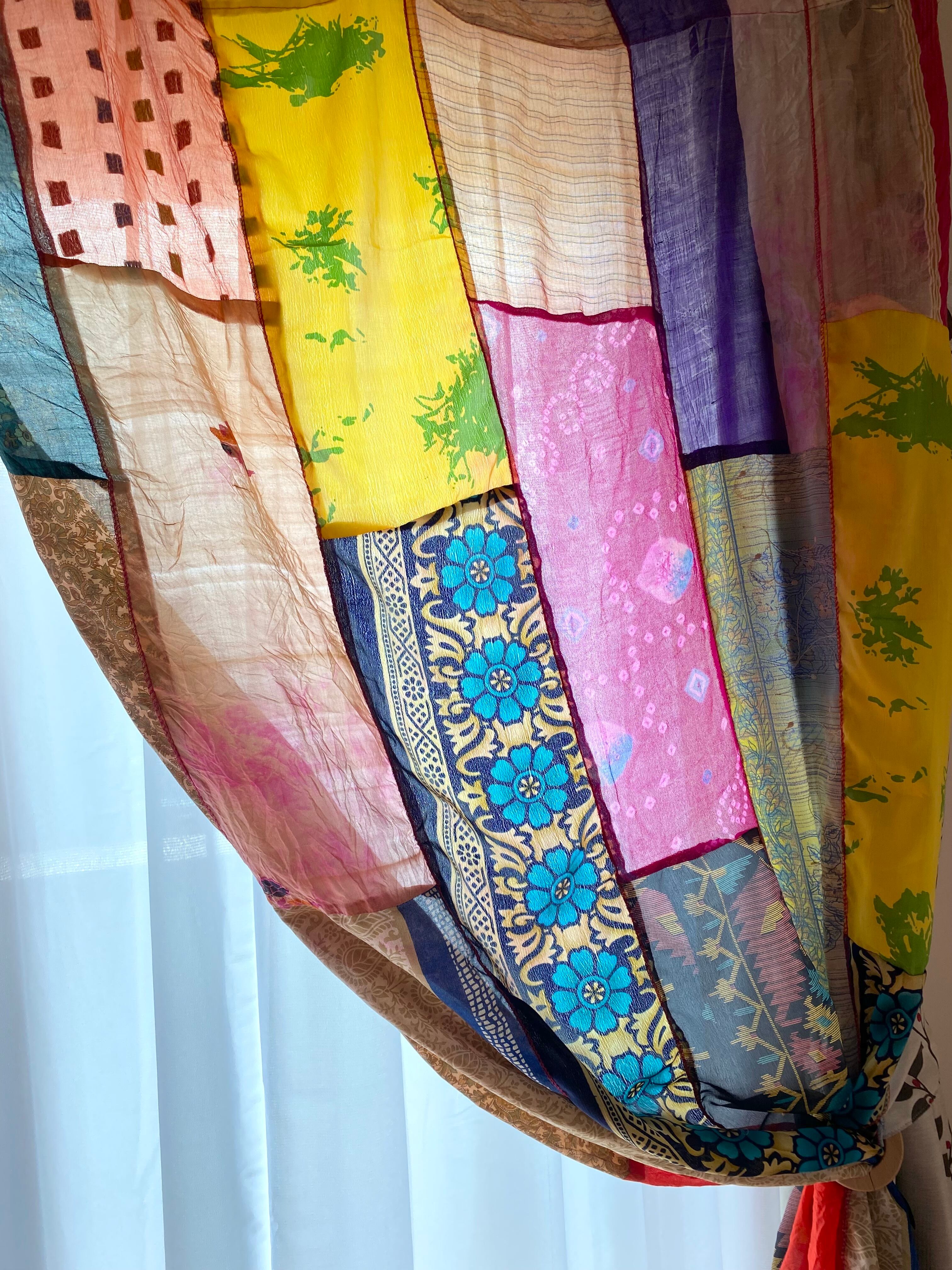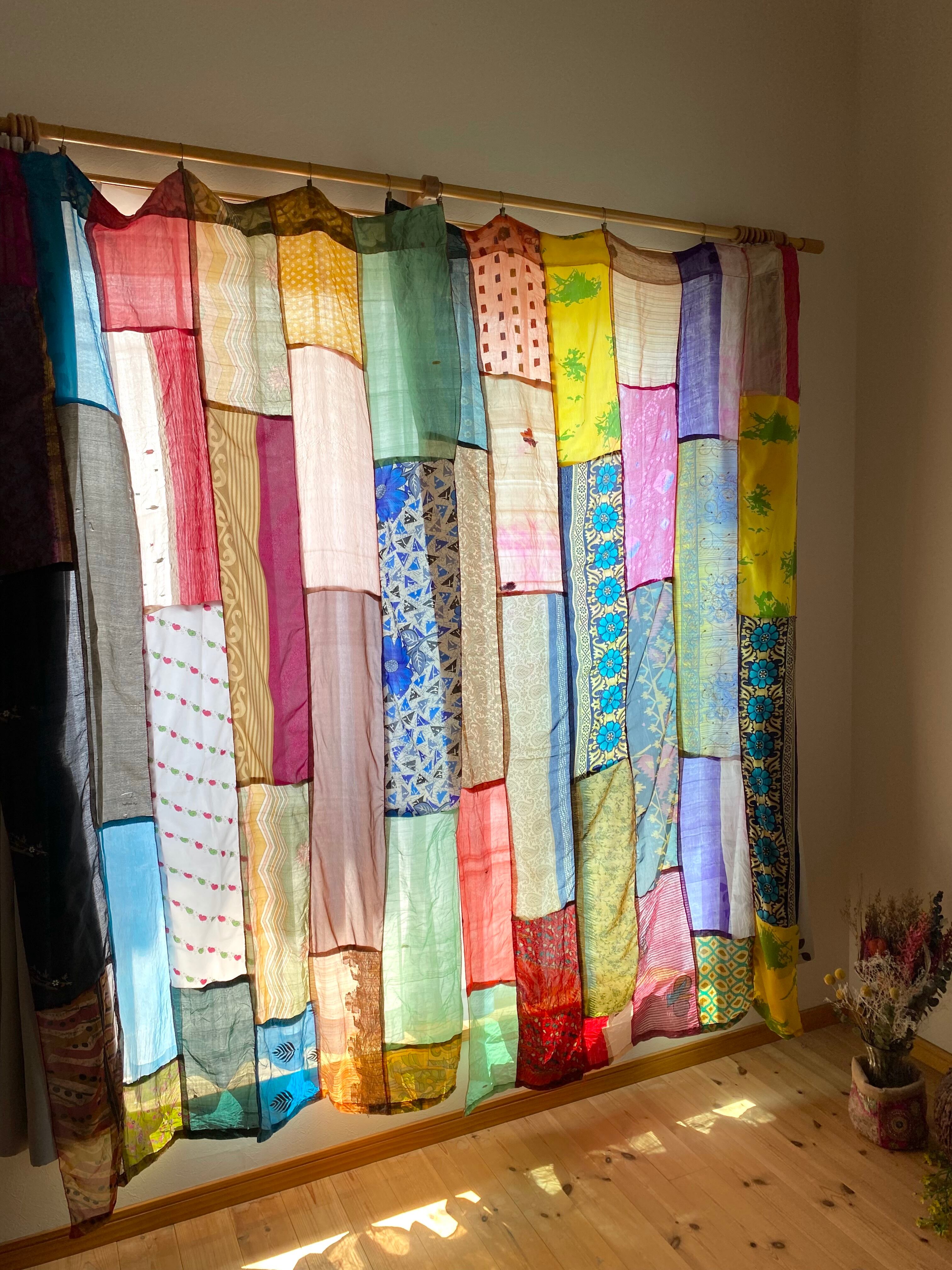 ヴィンテージサリーで出来たパッチワークシルクカーテン