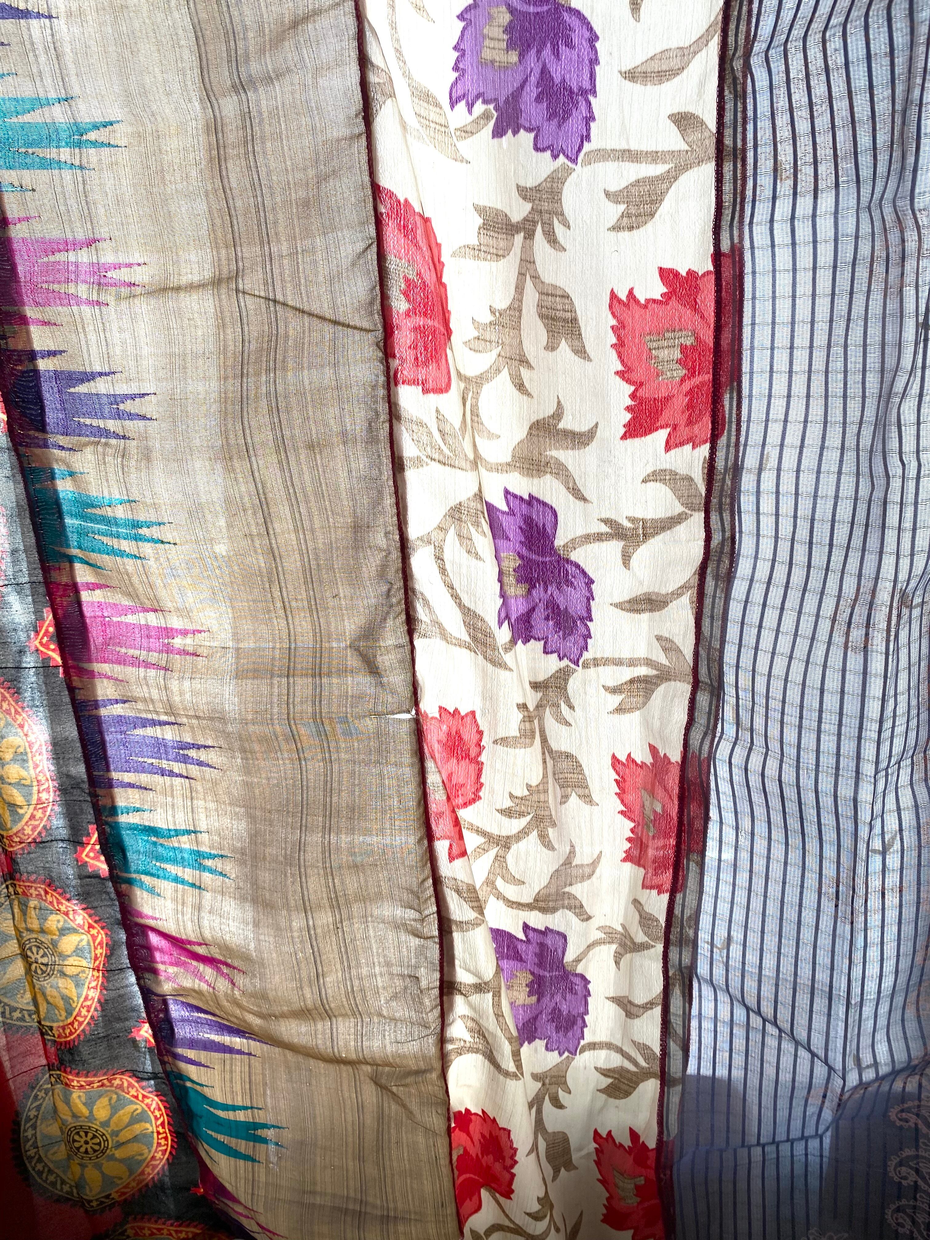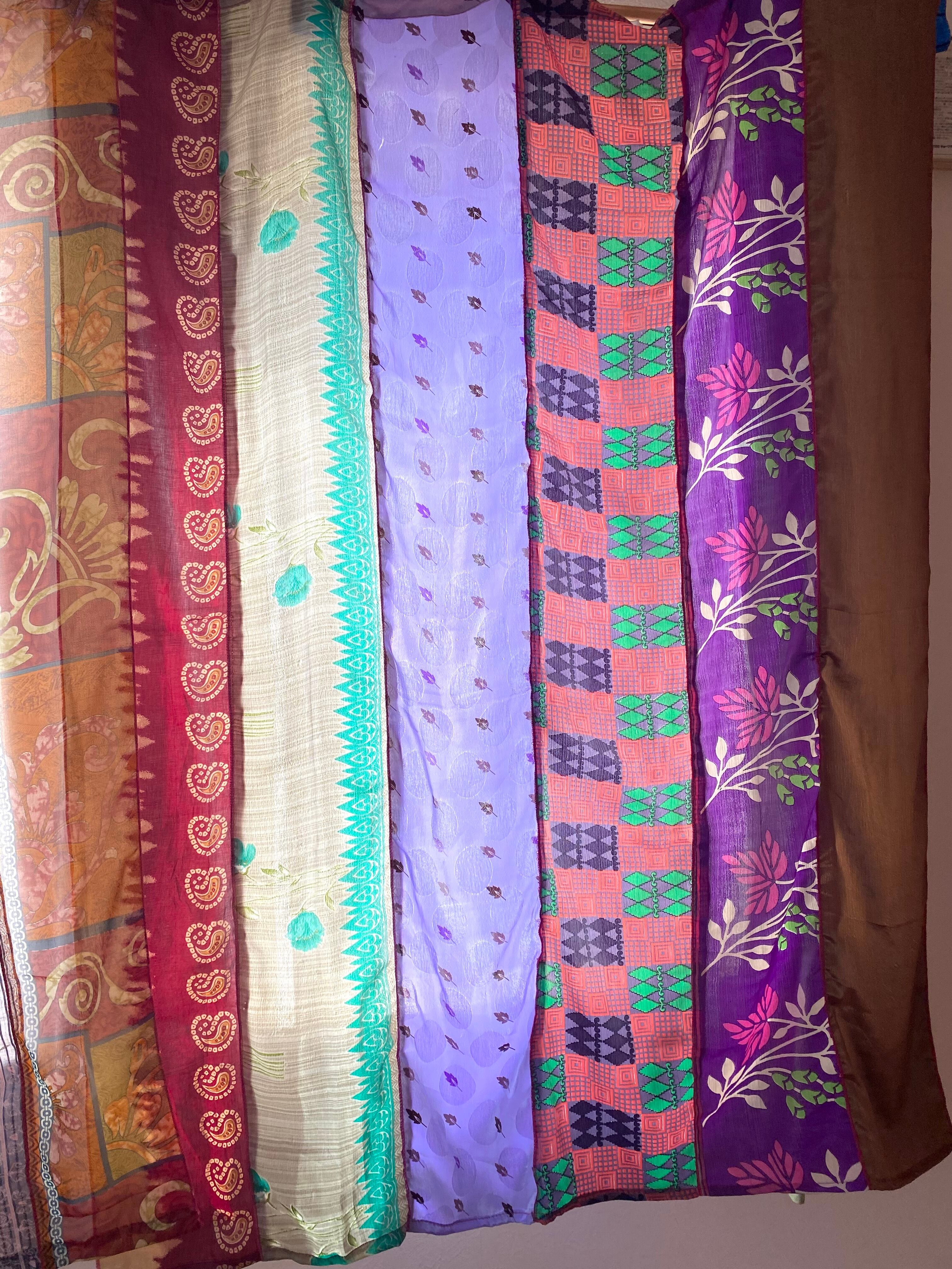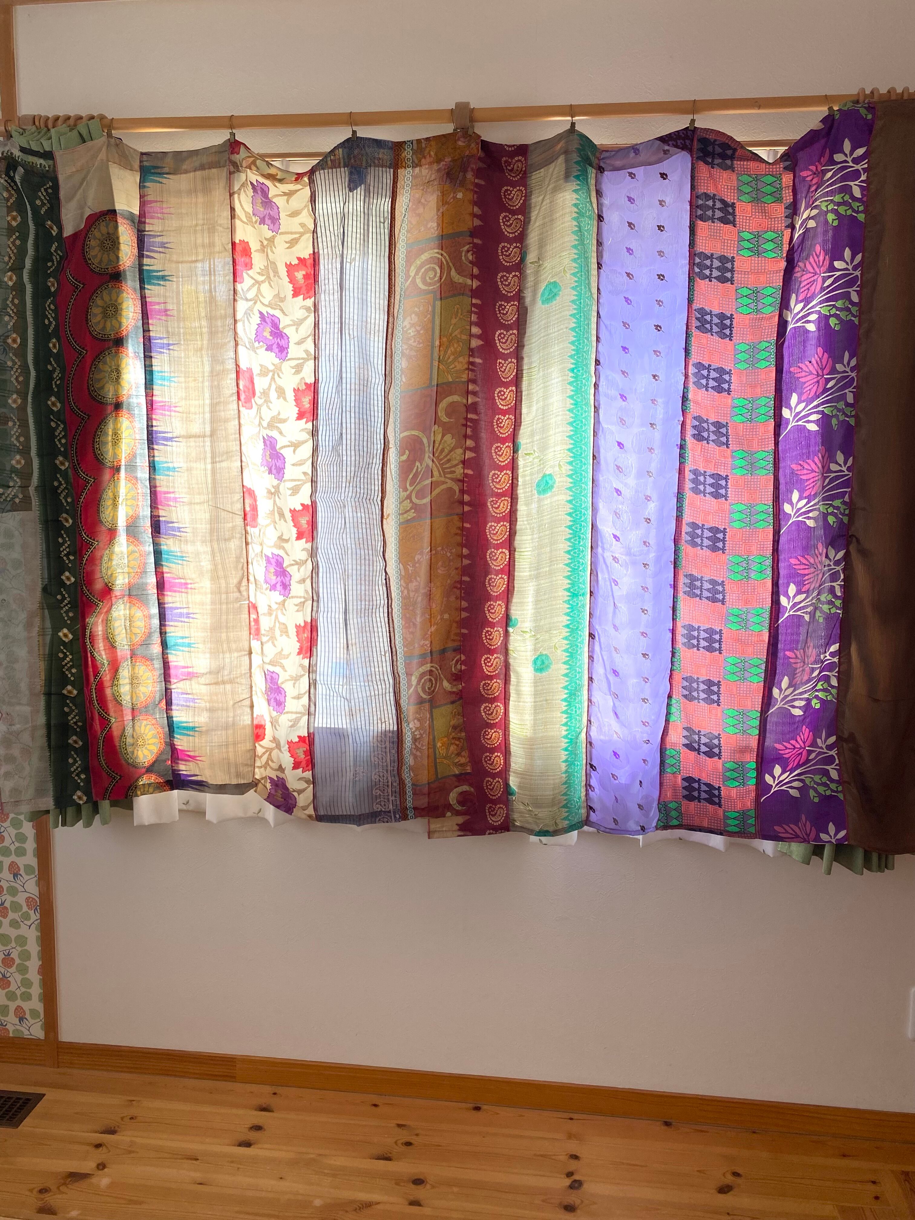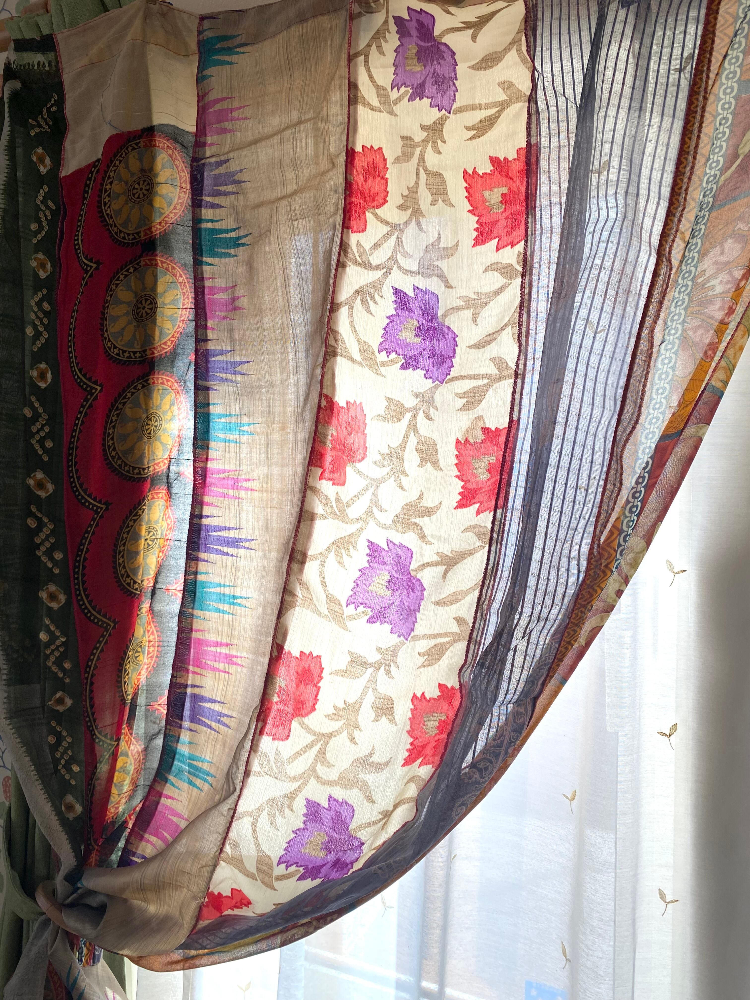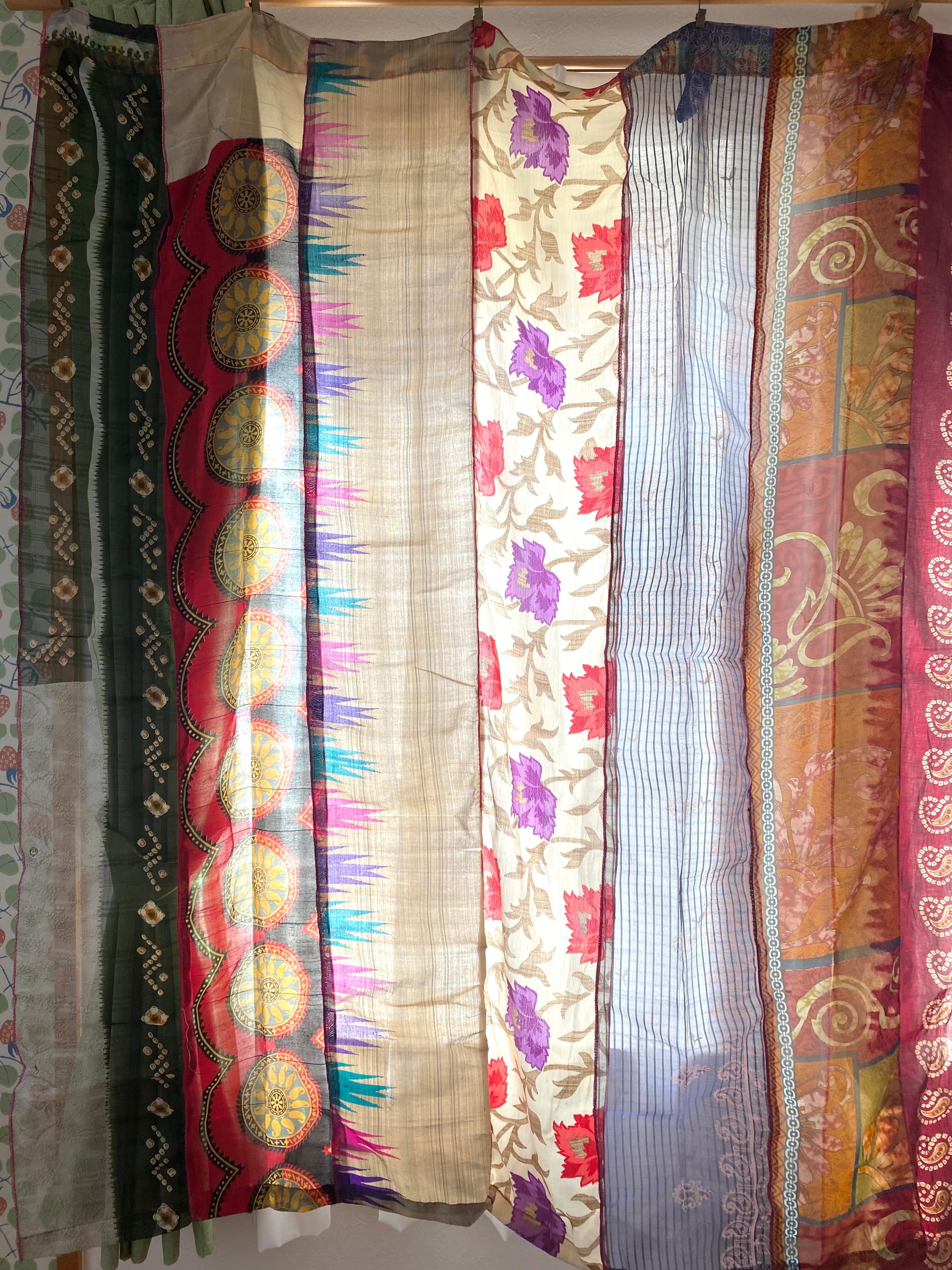 ヴィンテージサリーで出来たパッチワークシルクカーテン