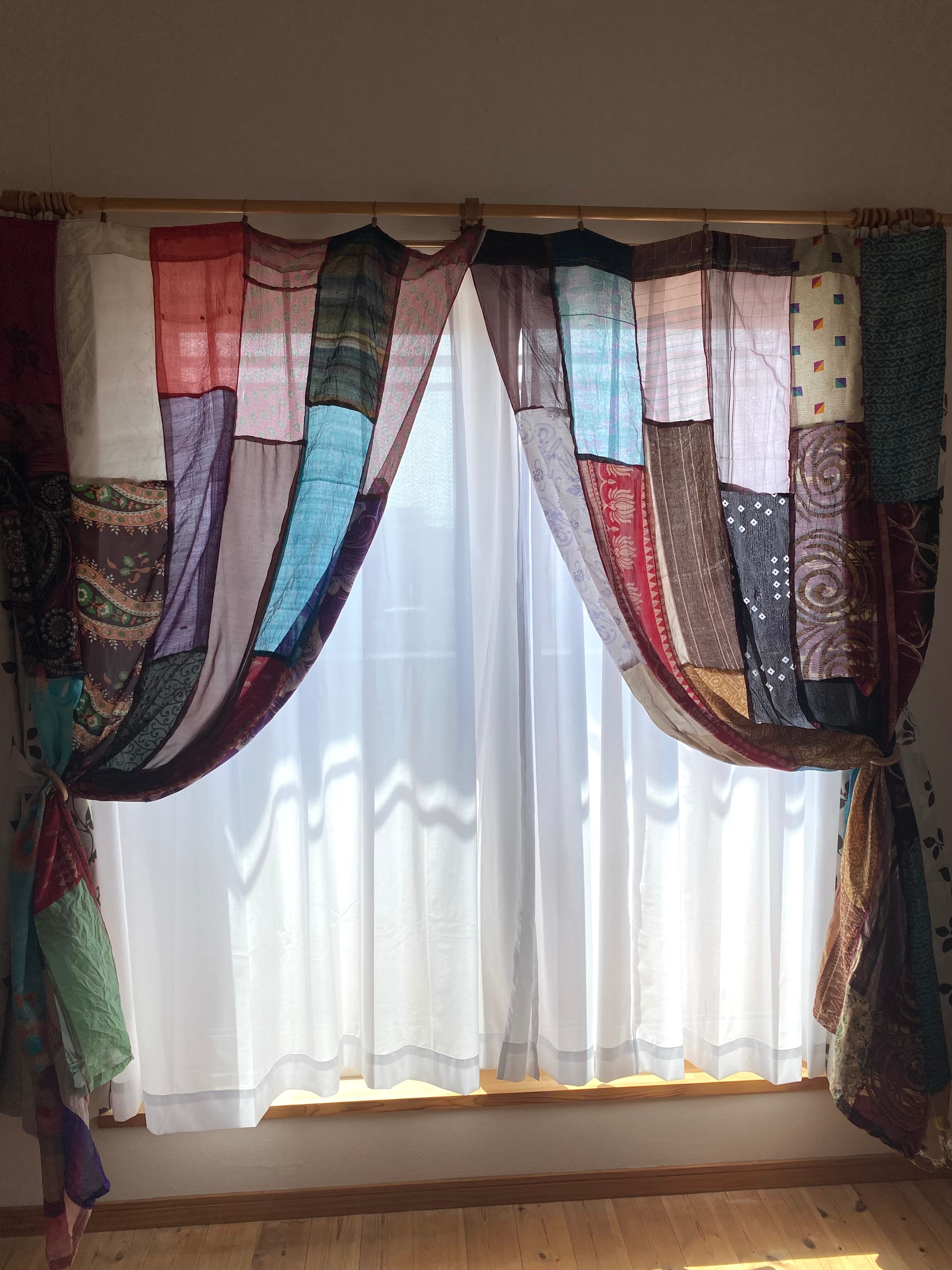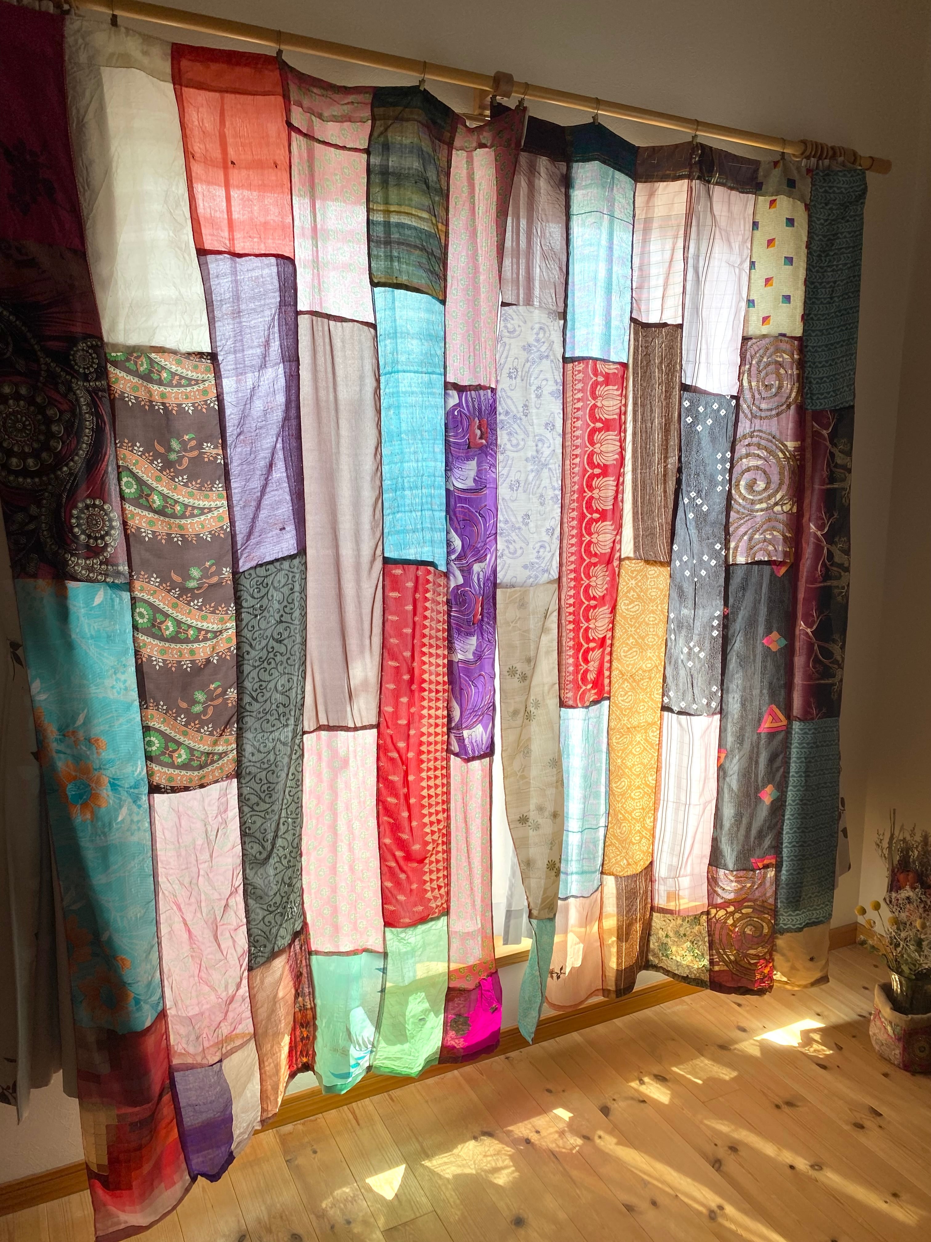 ヴィンテージサリーで出来たパッチワークシルクカーテン