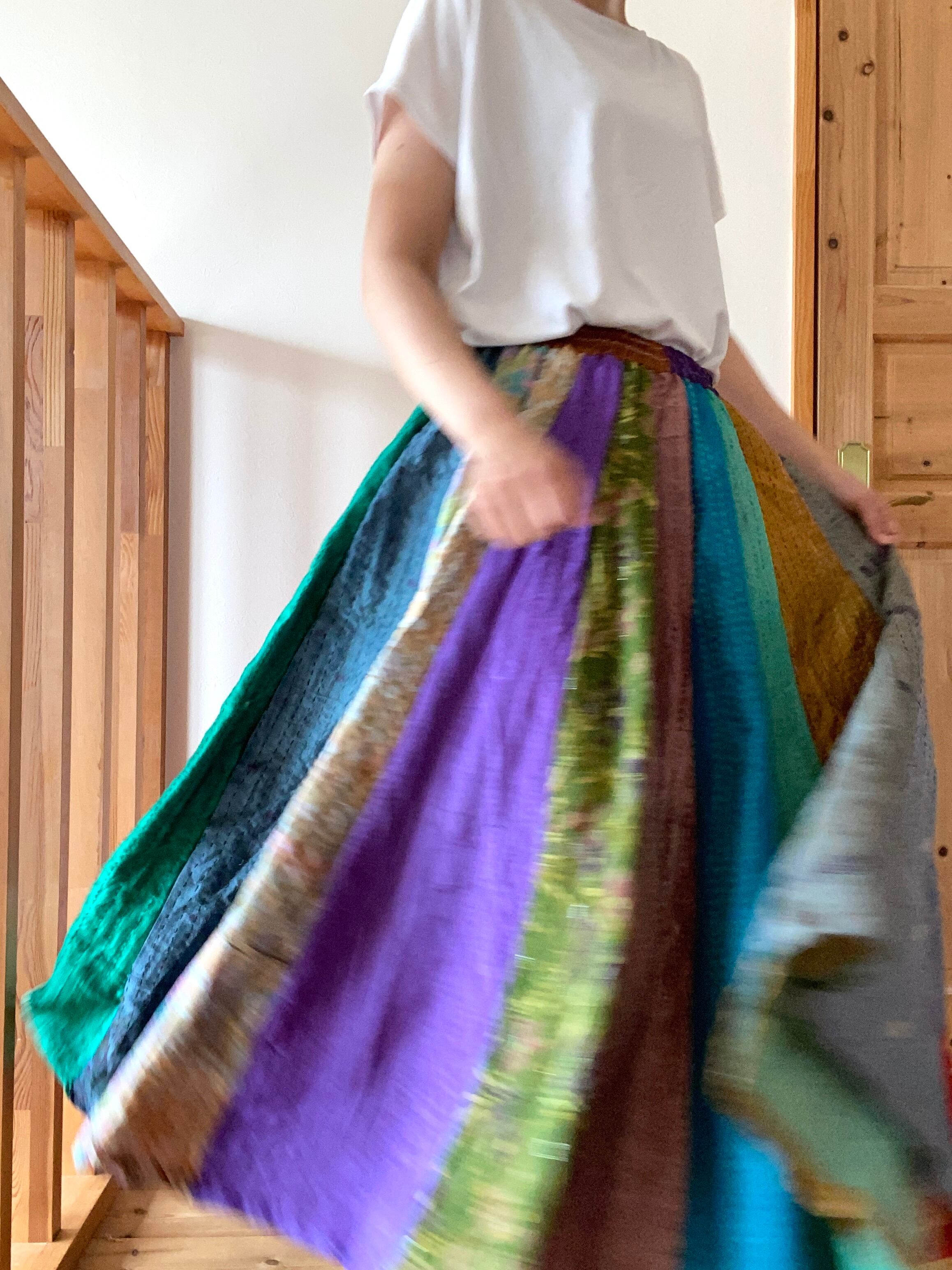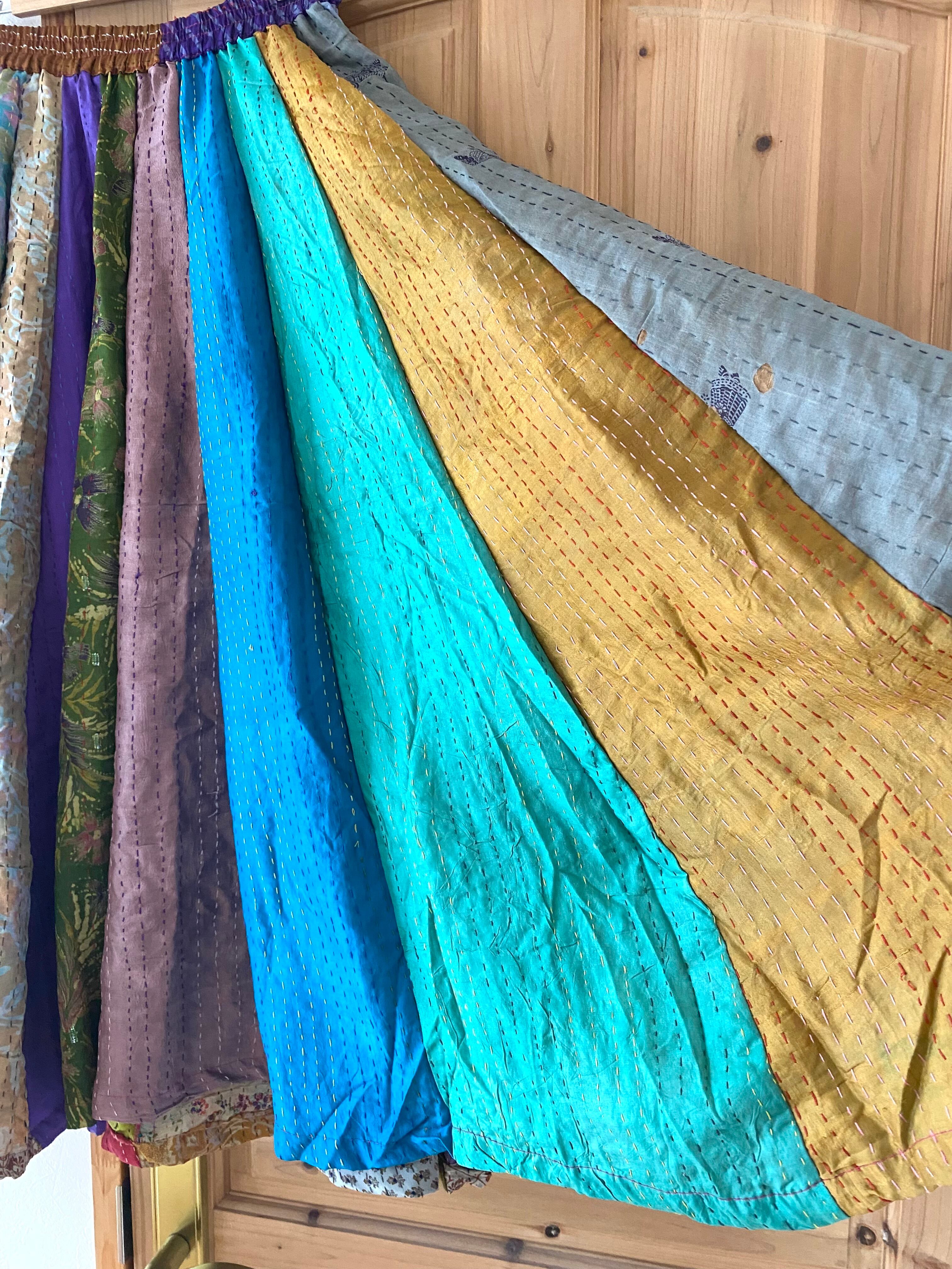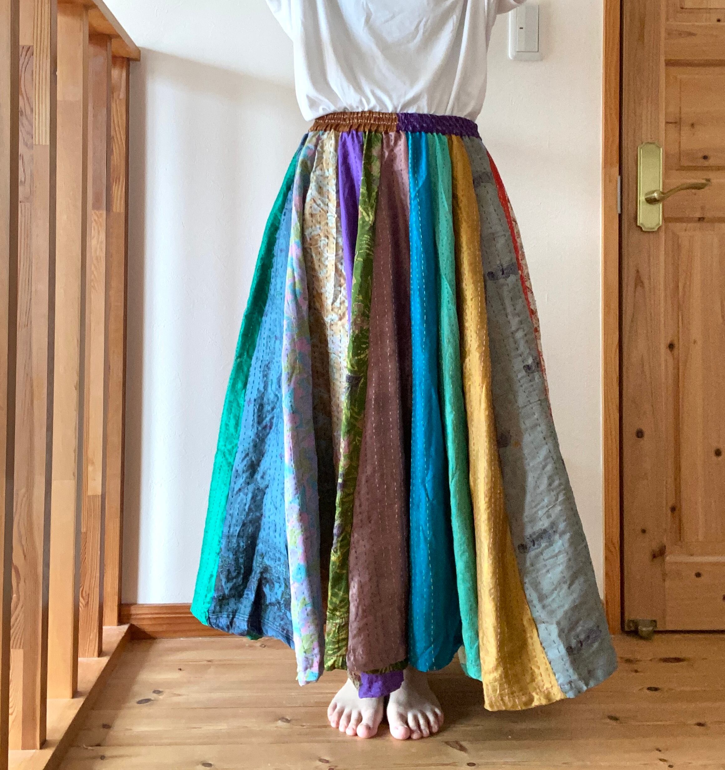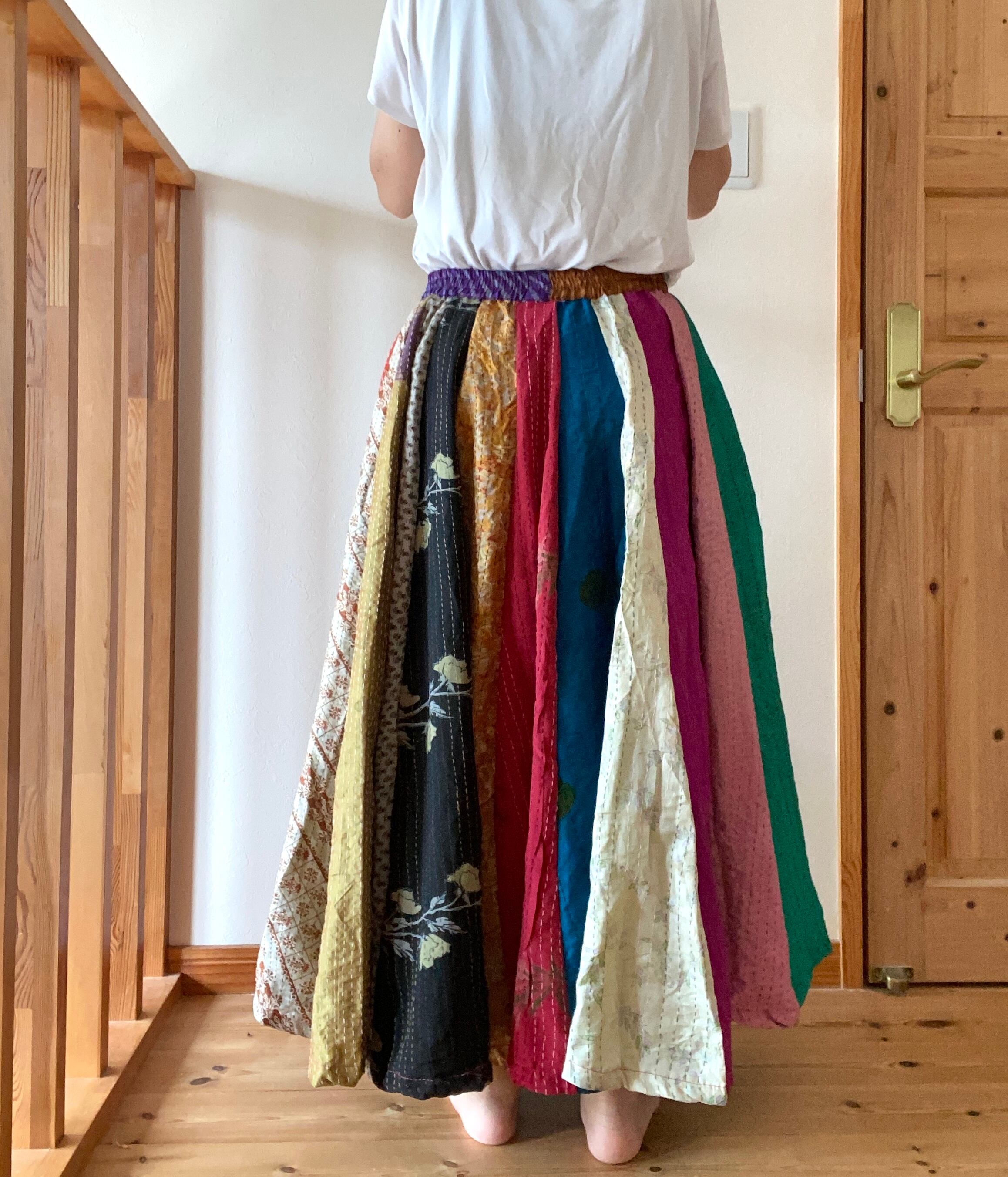 カラフル虹ドリーム/カンタ刺繍パッチワークスカート