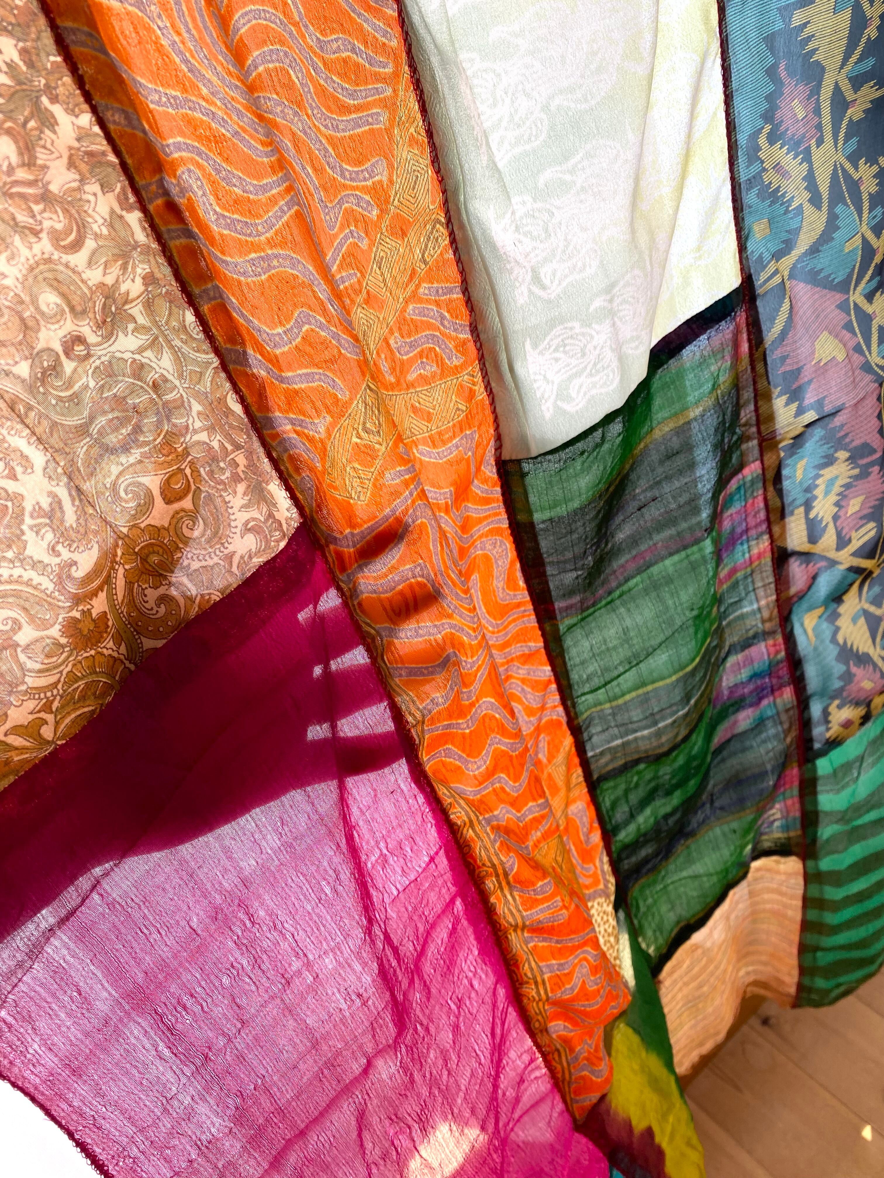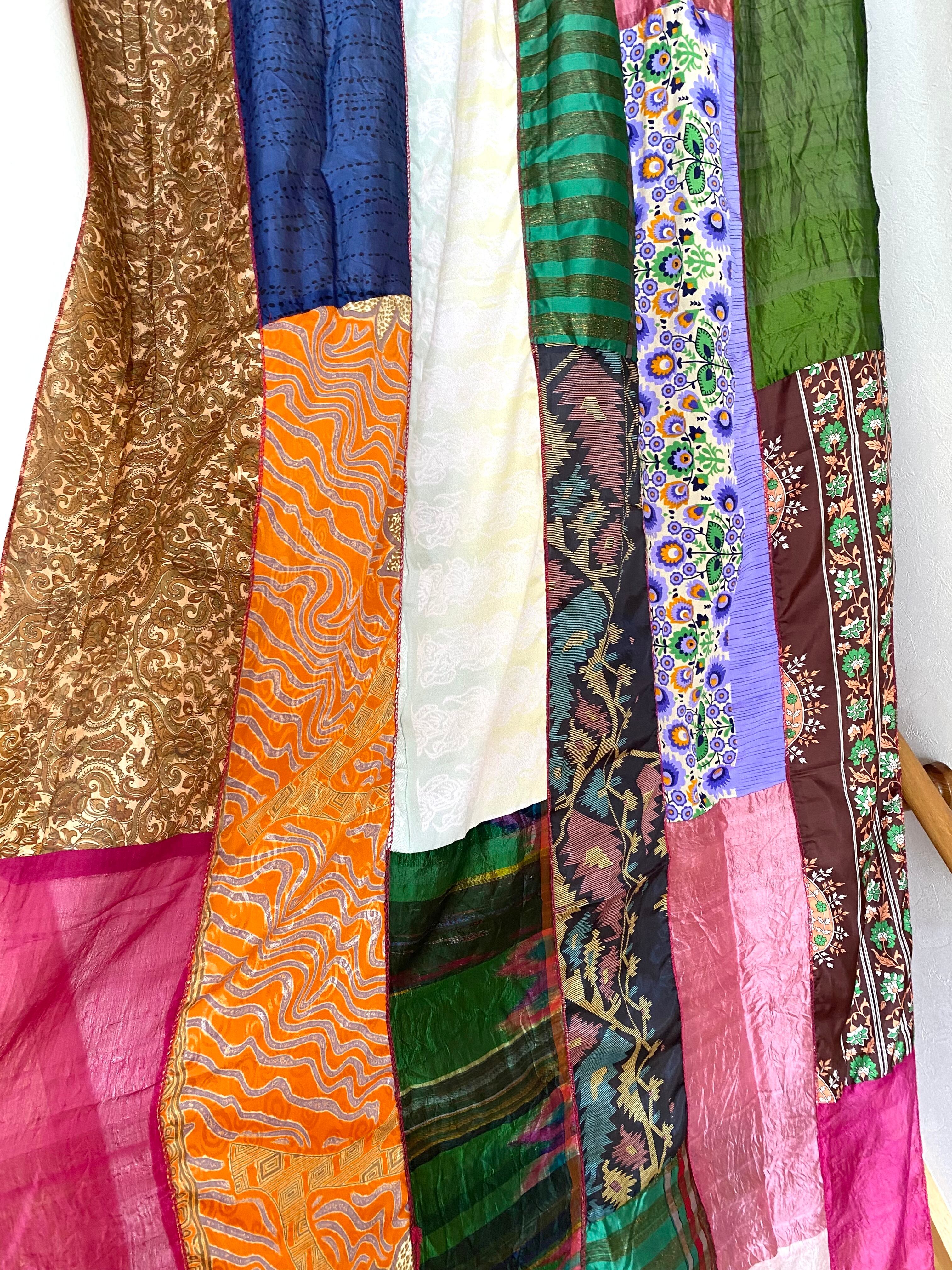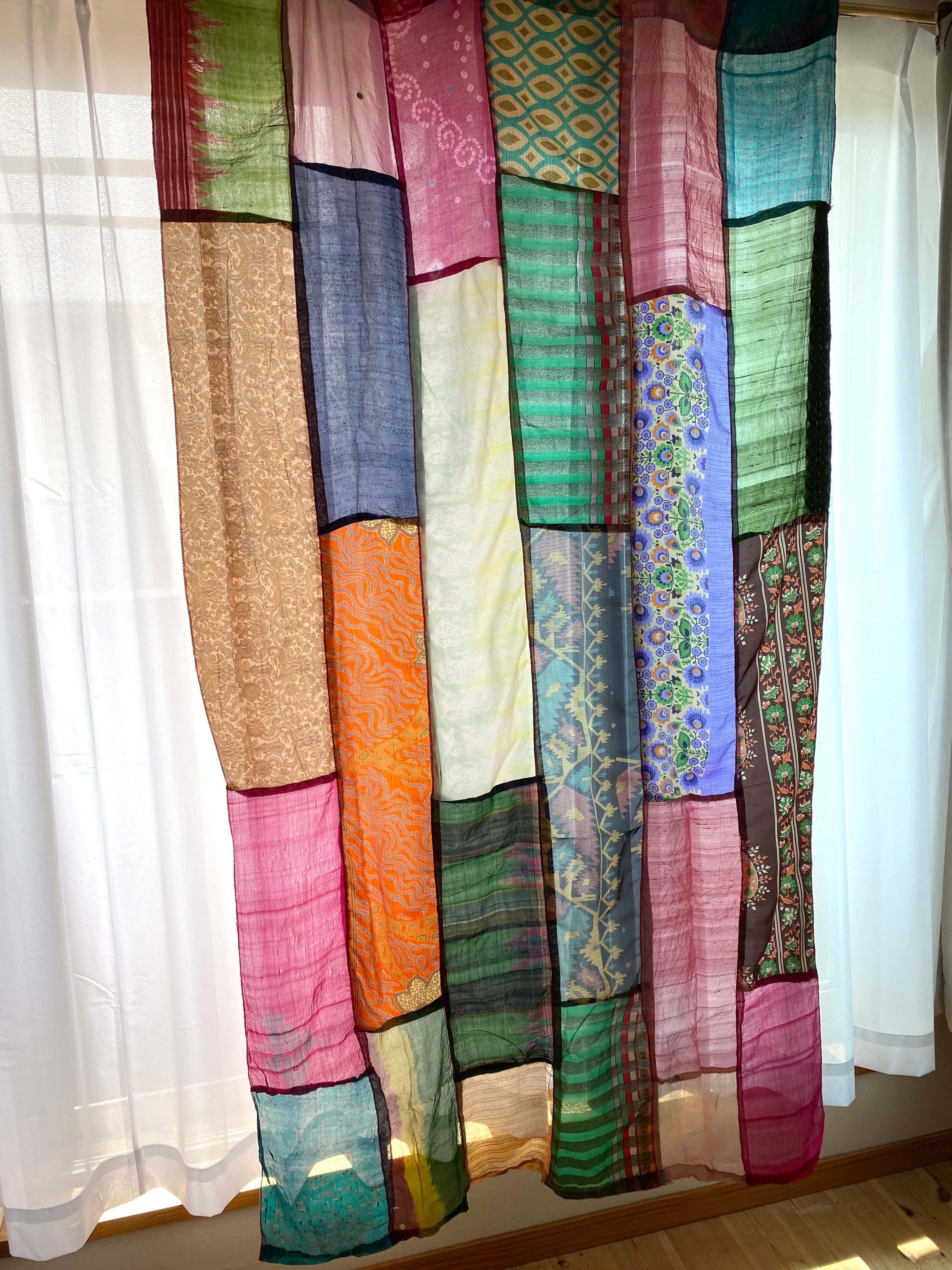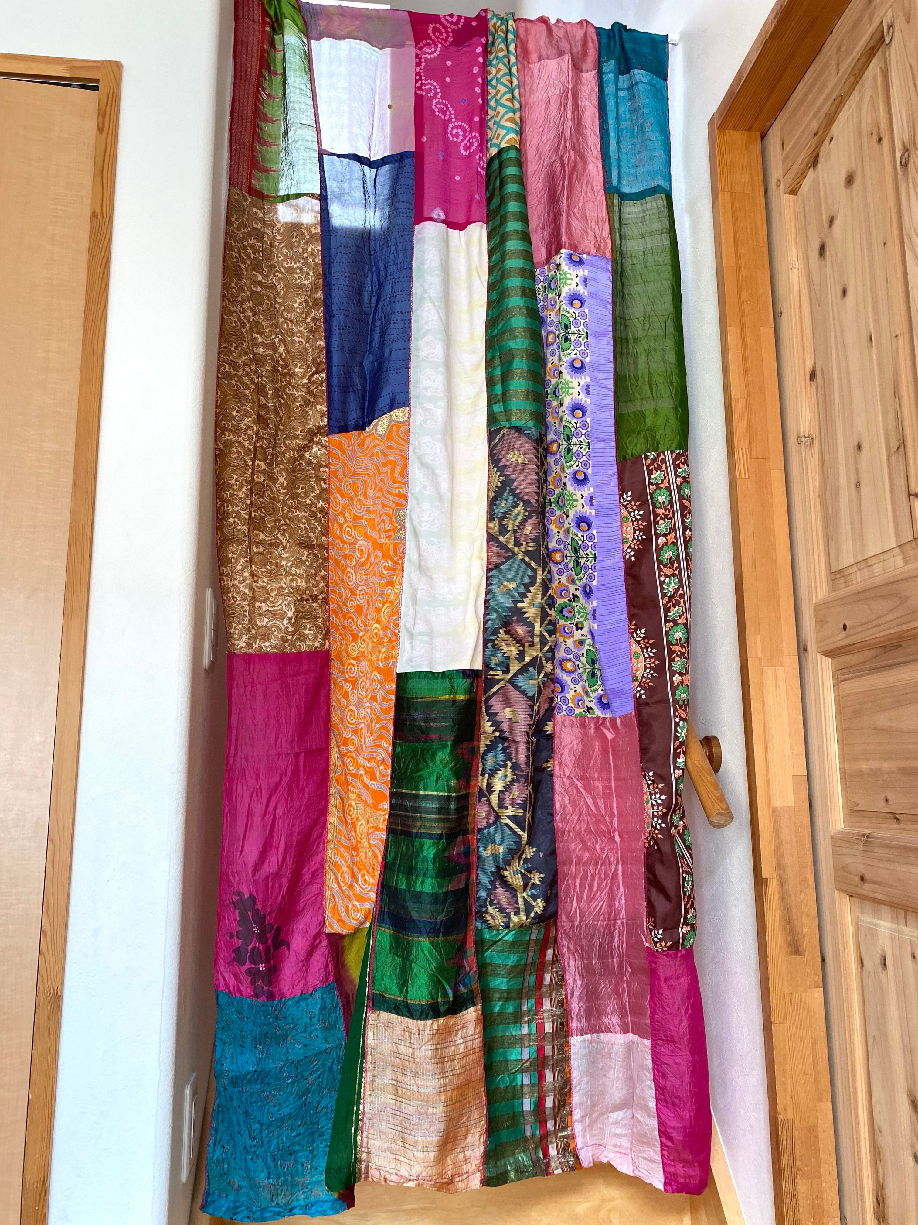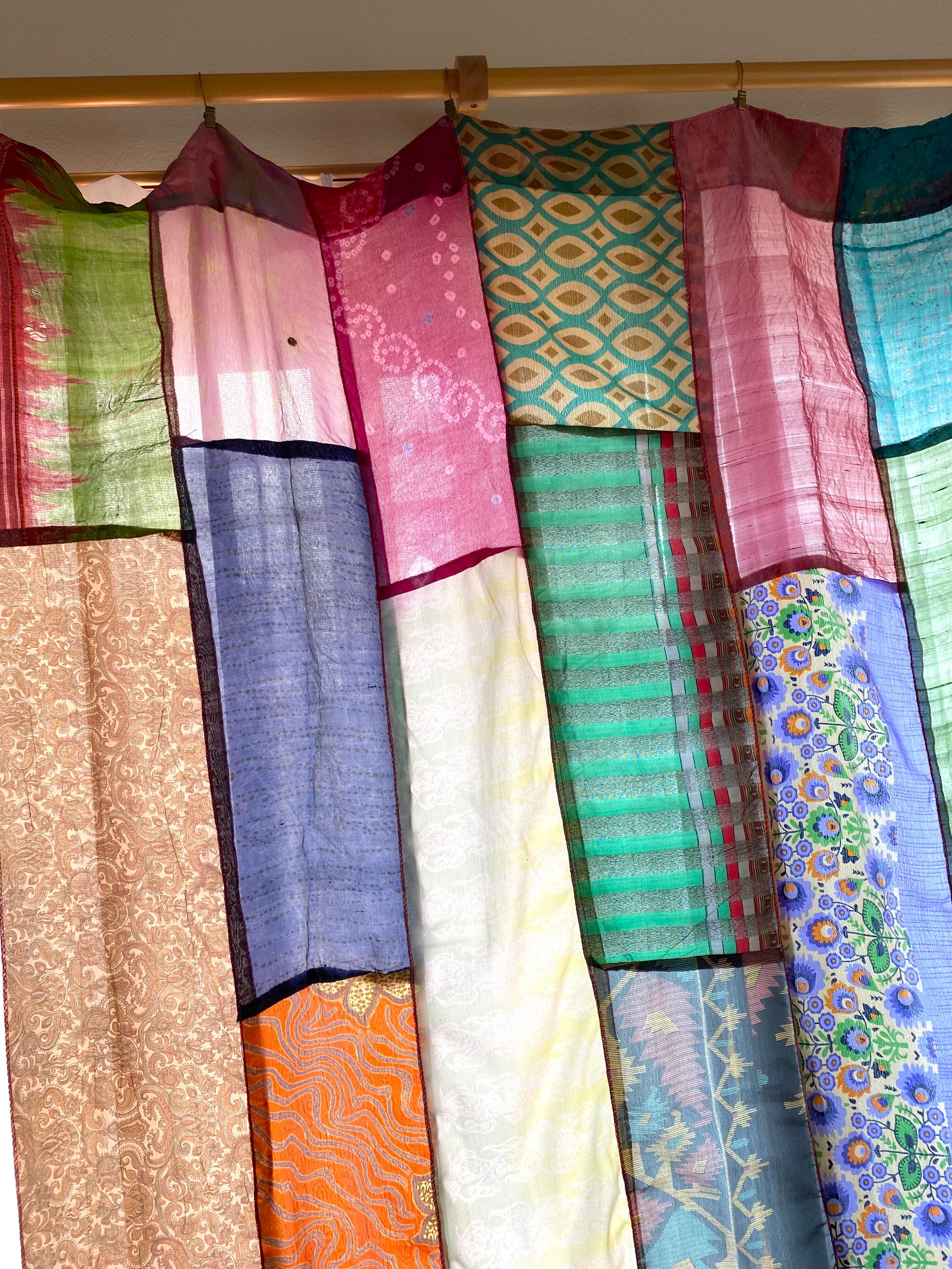 ヴィンテージサリーで出来たパッチワークシルクカーテン