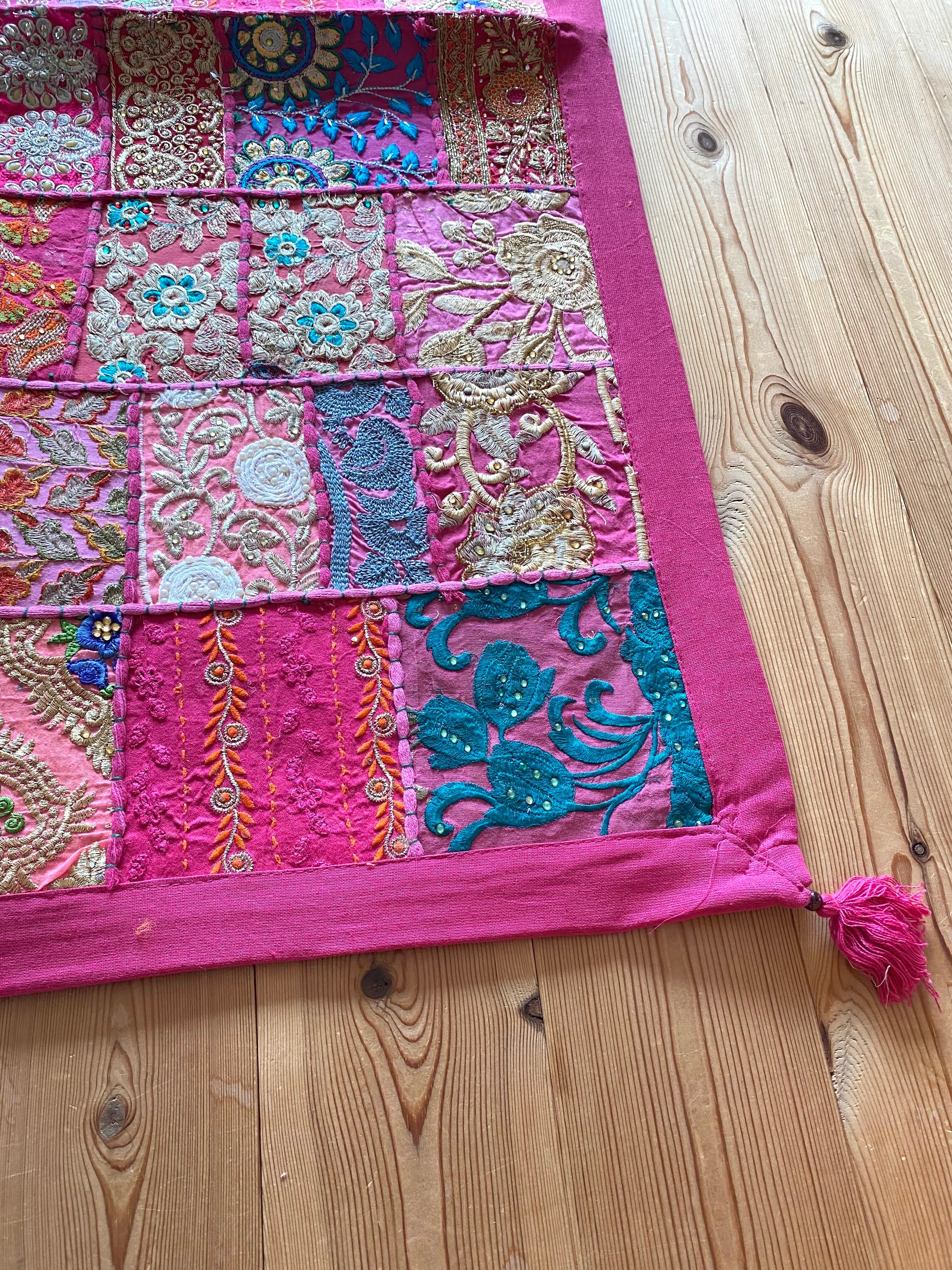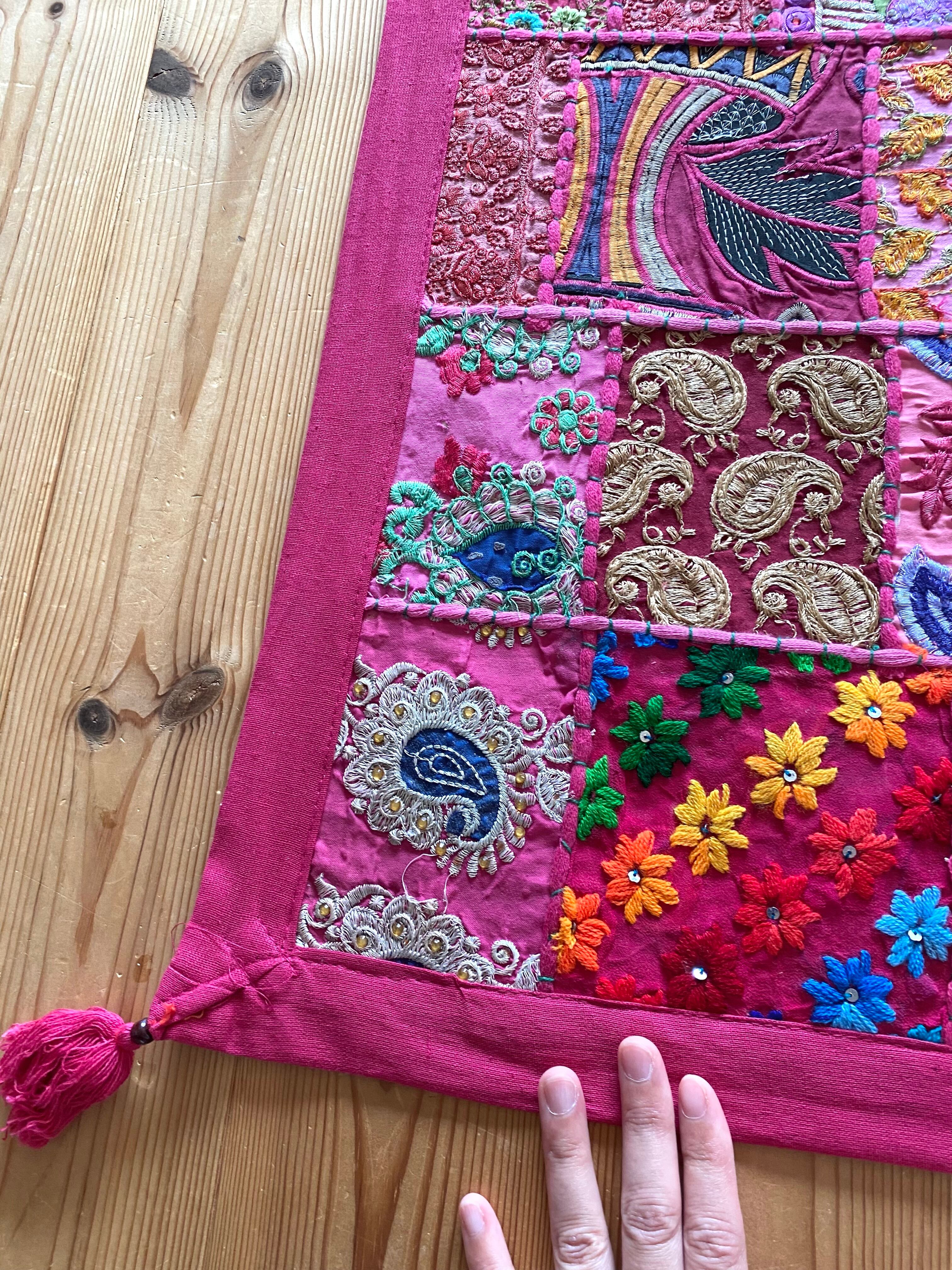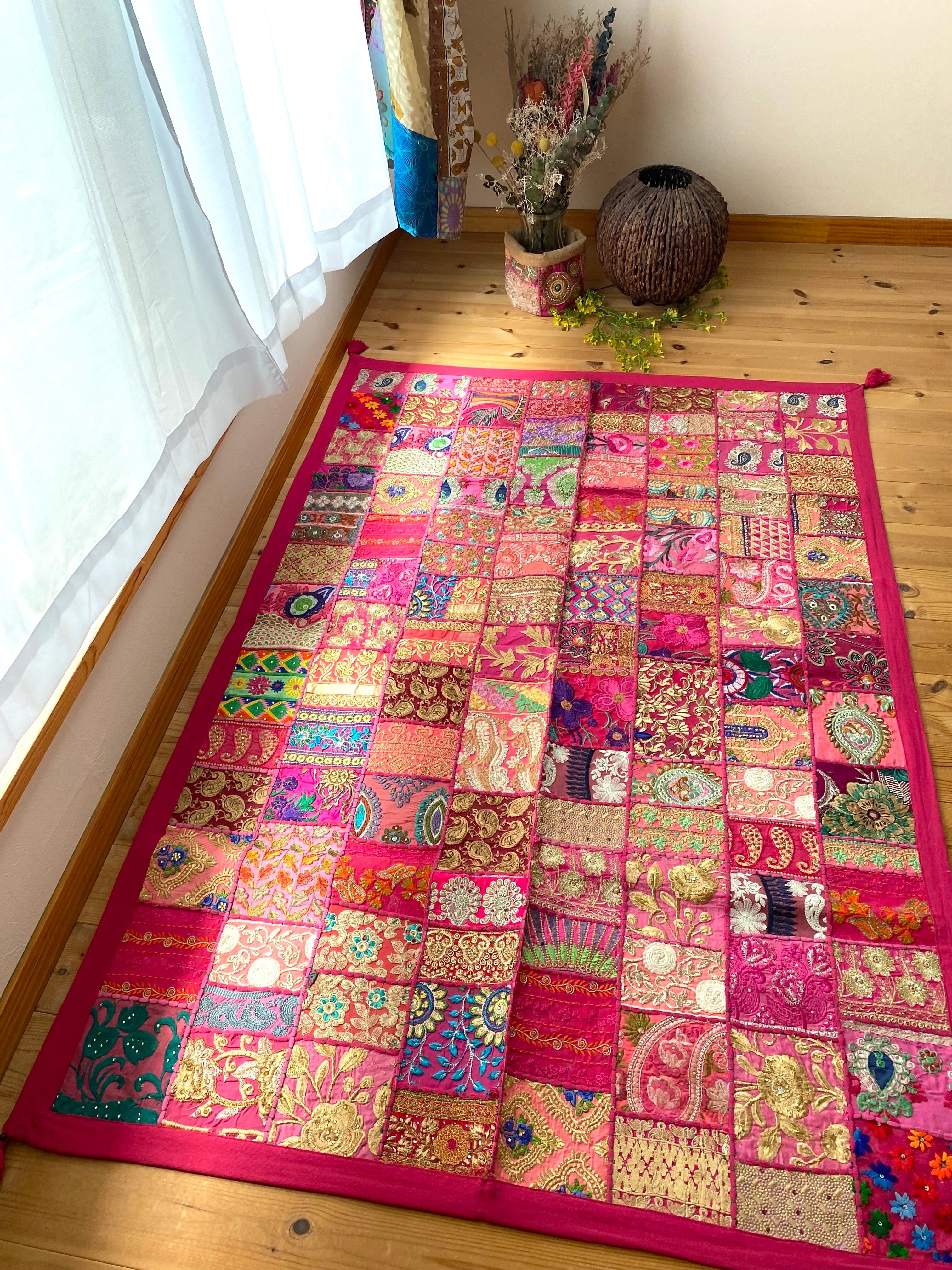 濃いピンクさん/ザリ刺繍タペストリーラグ