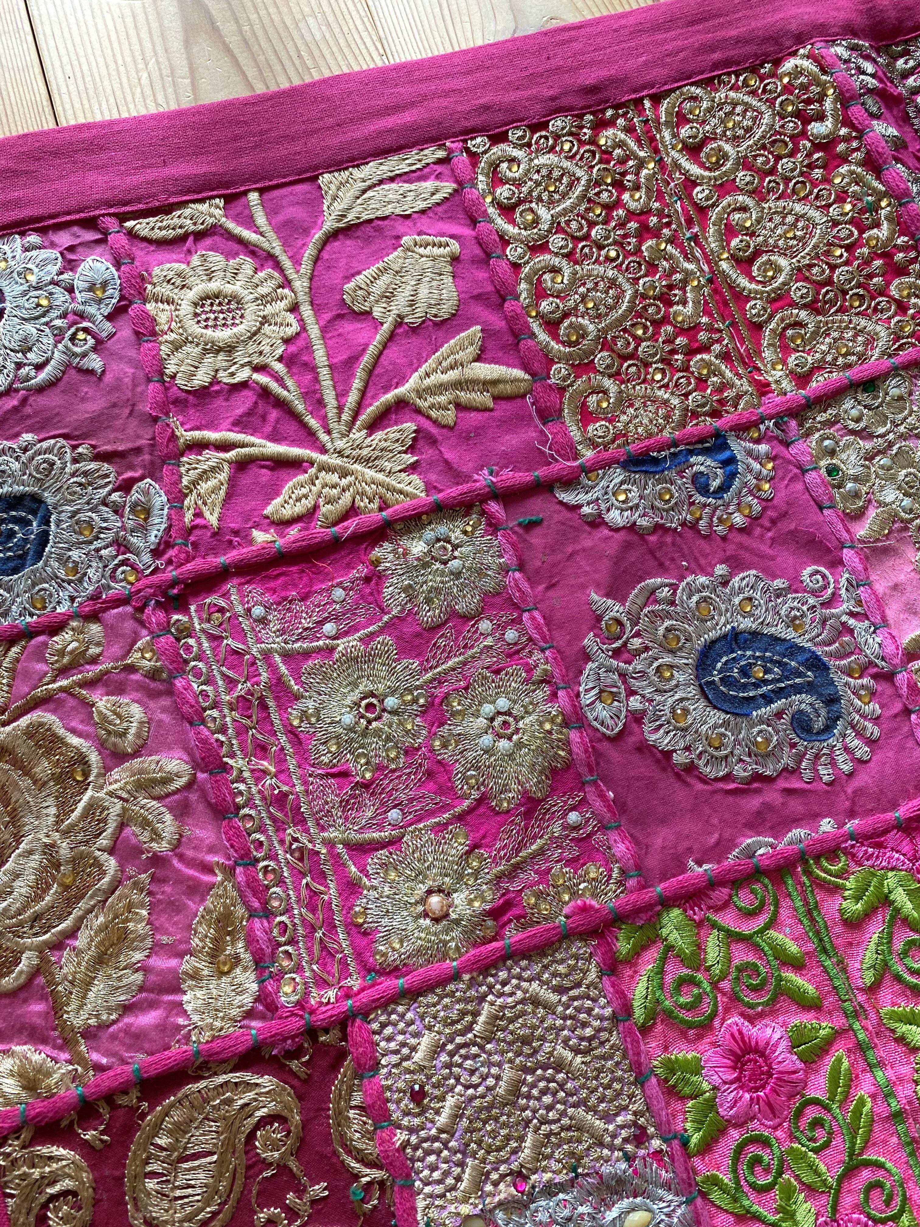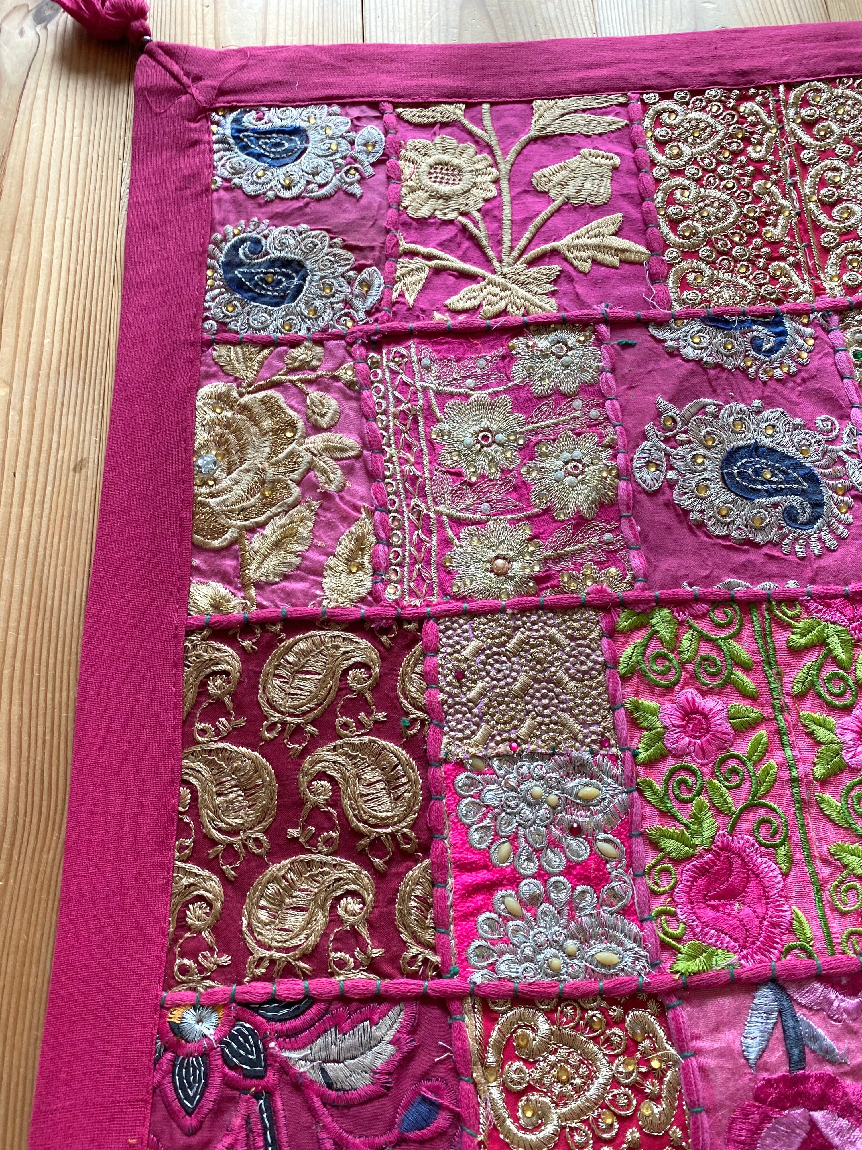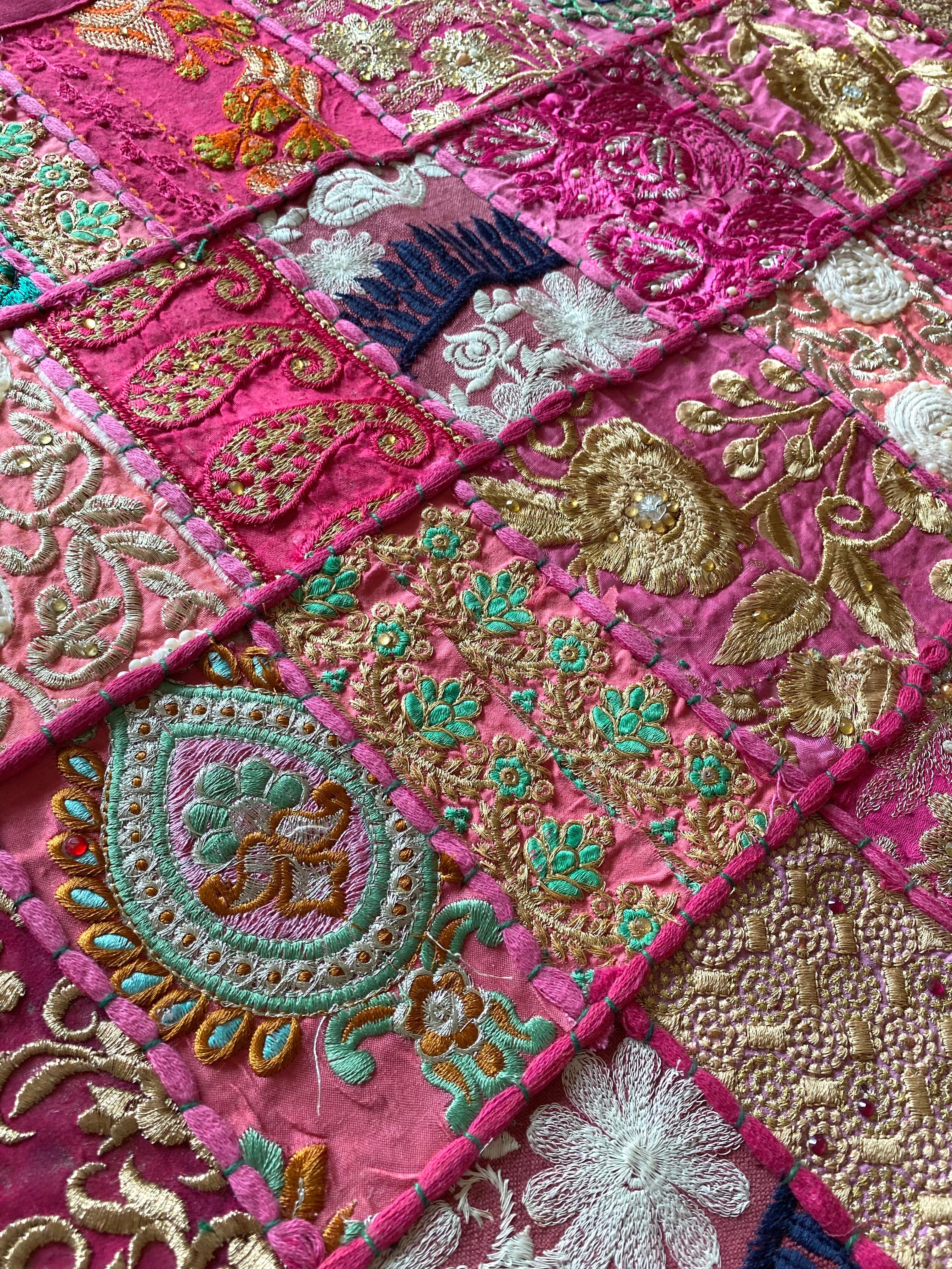 濃いピンクさん/ザリ刺繍タペストリーラグ
