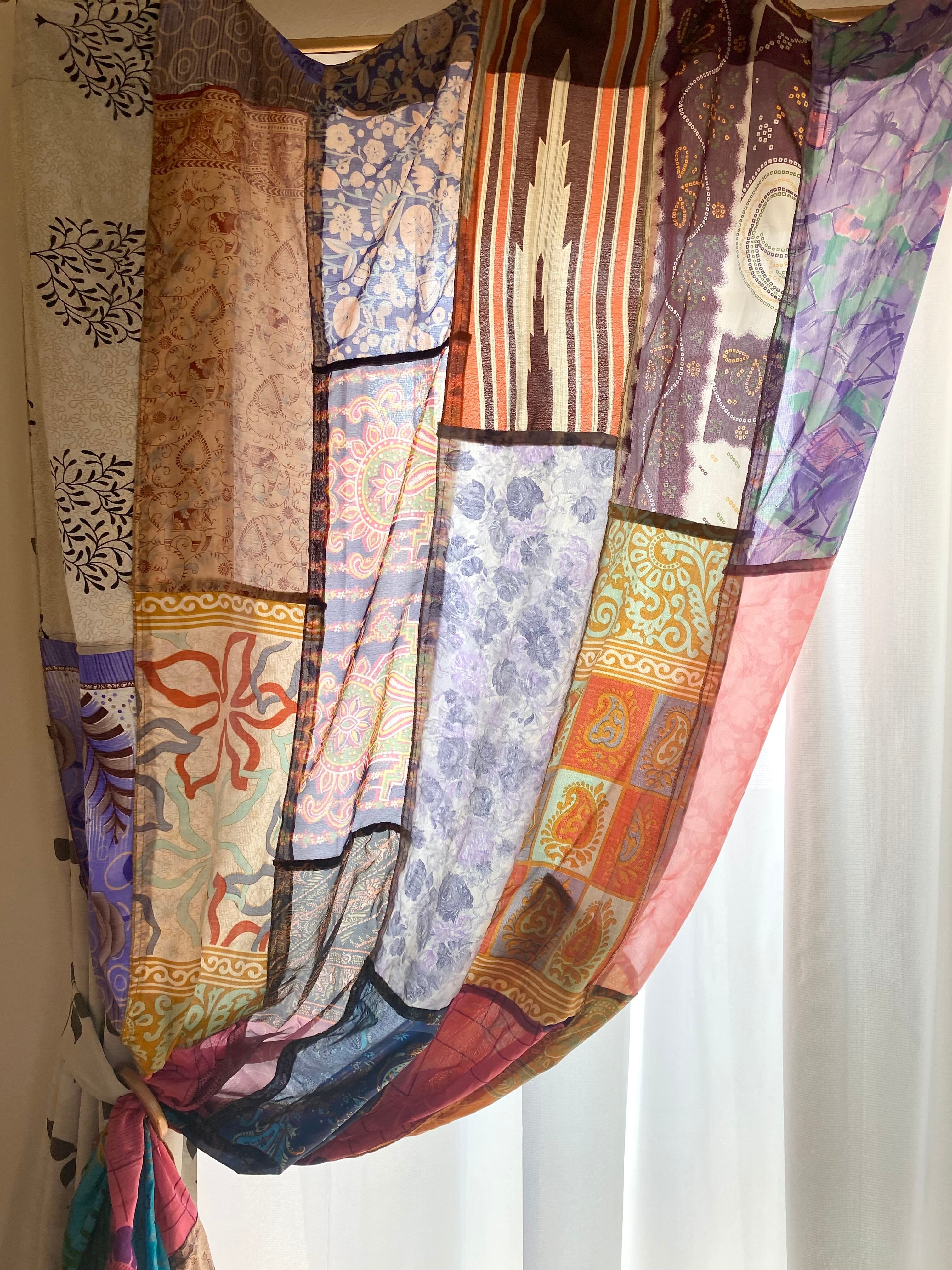 ヴィンテージサリーで出来たパッチワークシルクカーテン