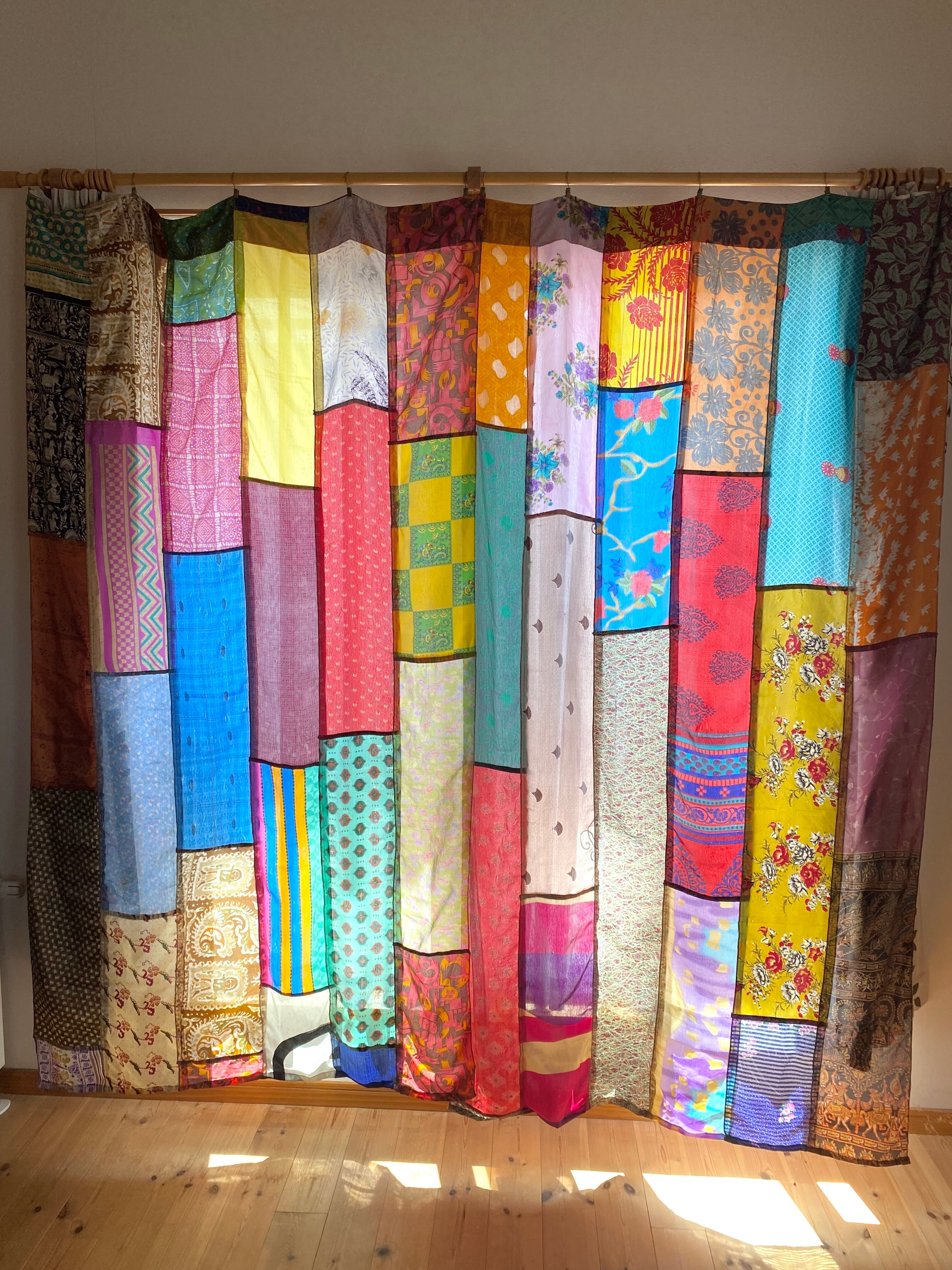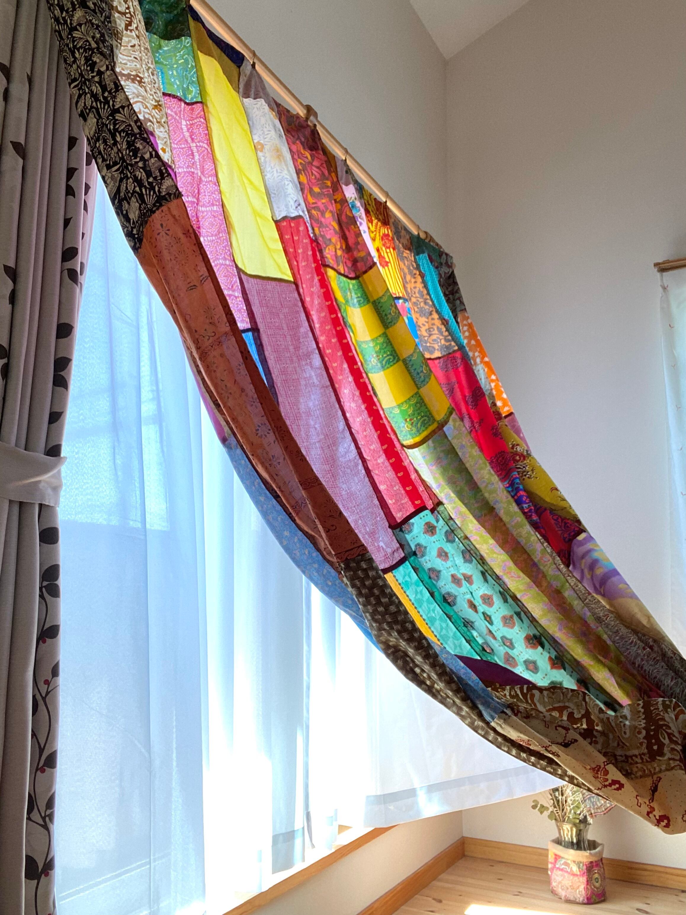 ヴィンテージサリーで出来たパッチワークシルクカーテン
