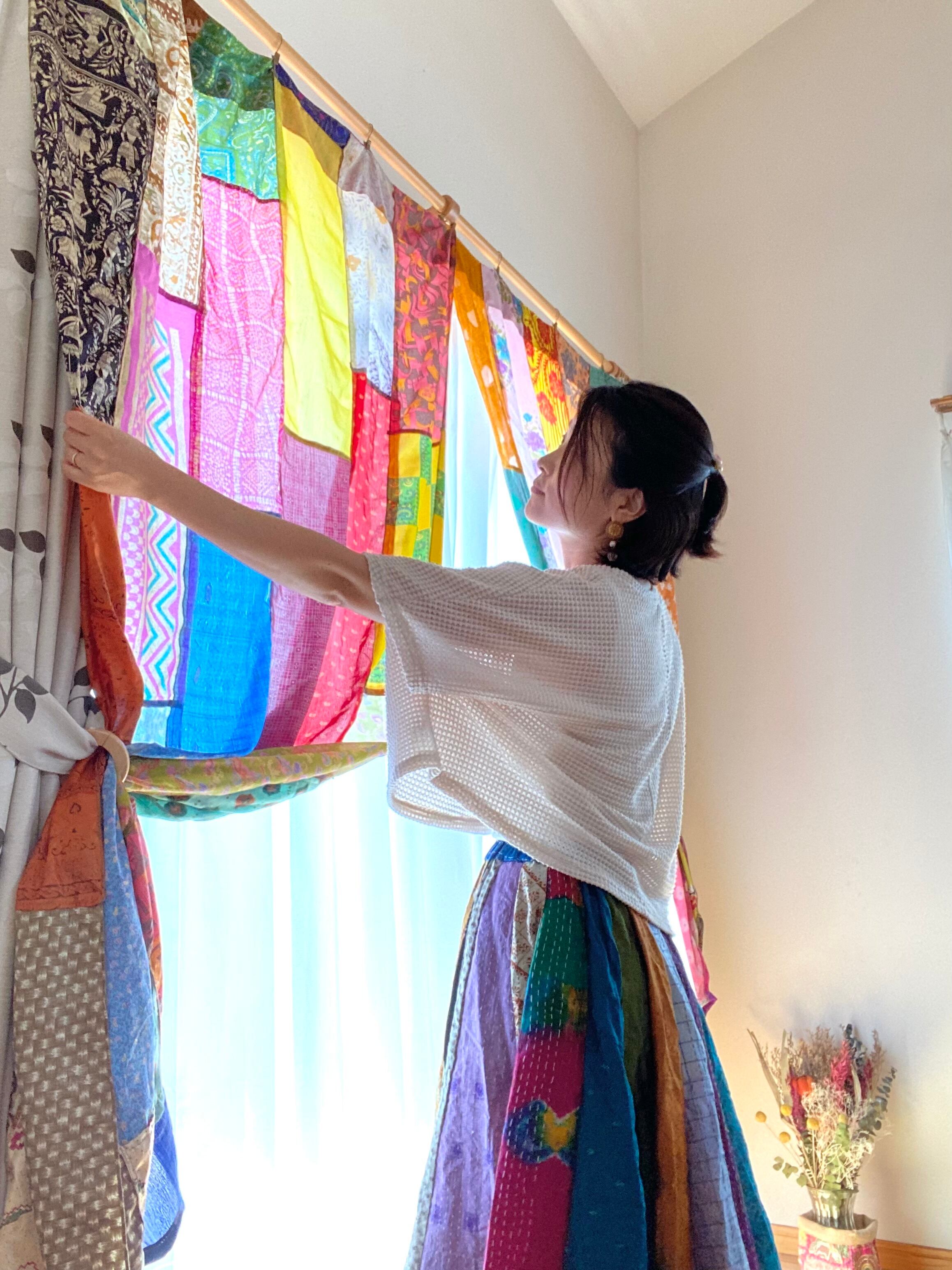 ※カーテンとしては新品未使用ですが、布はヴィンテージサリーを使っております。