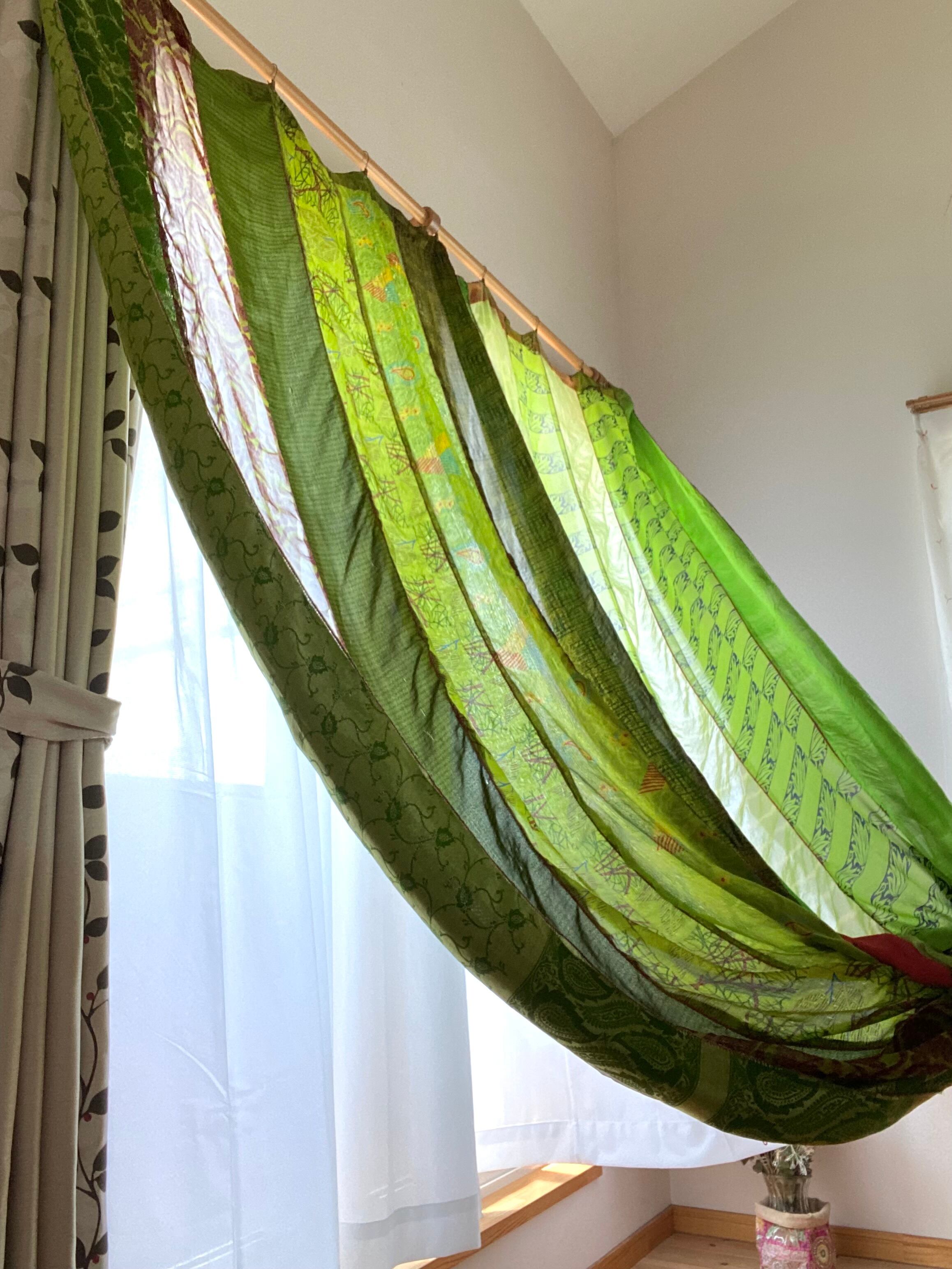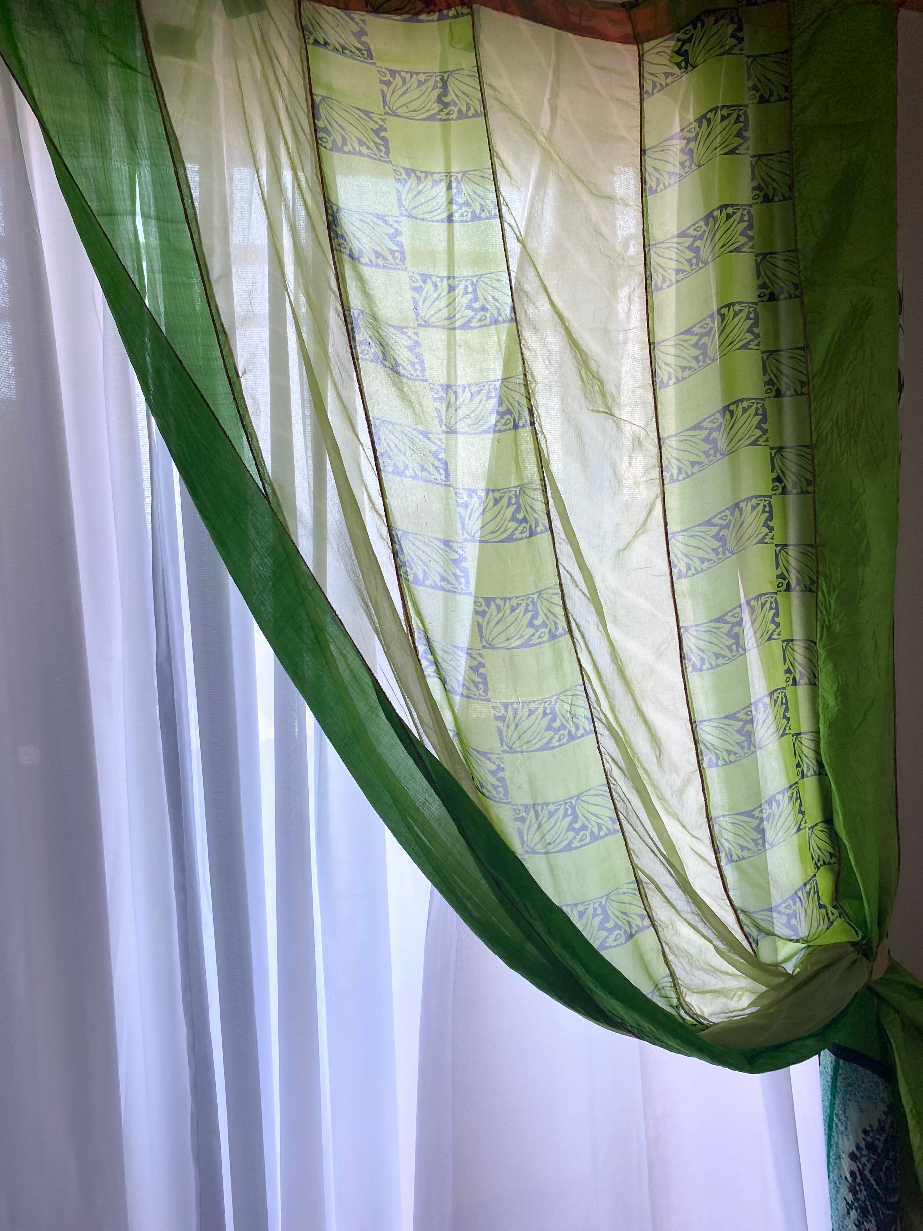 ヴィンテージサリーで出来たパッチワークシルクカーテン