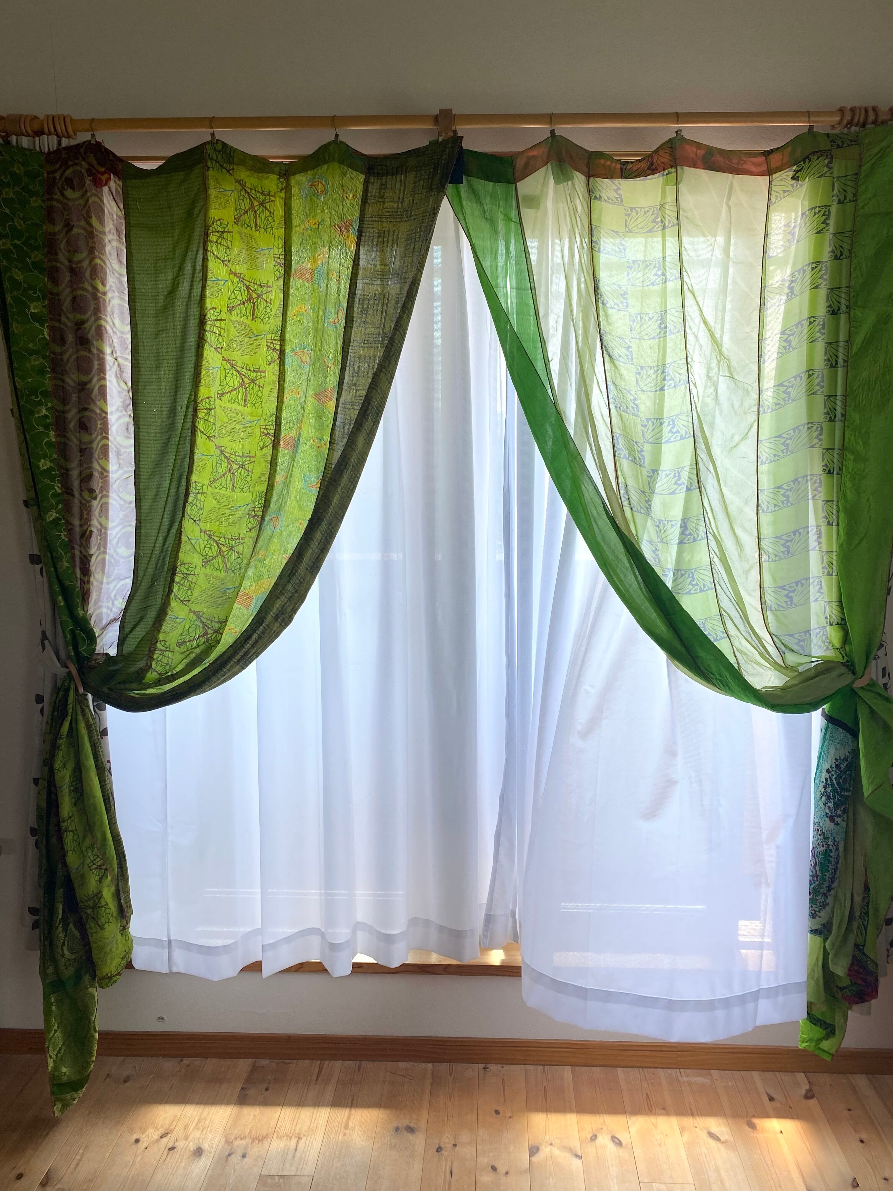 ※カーテンとしては新品未使用ですが、布はヴィンテージサリーを使っております。