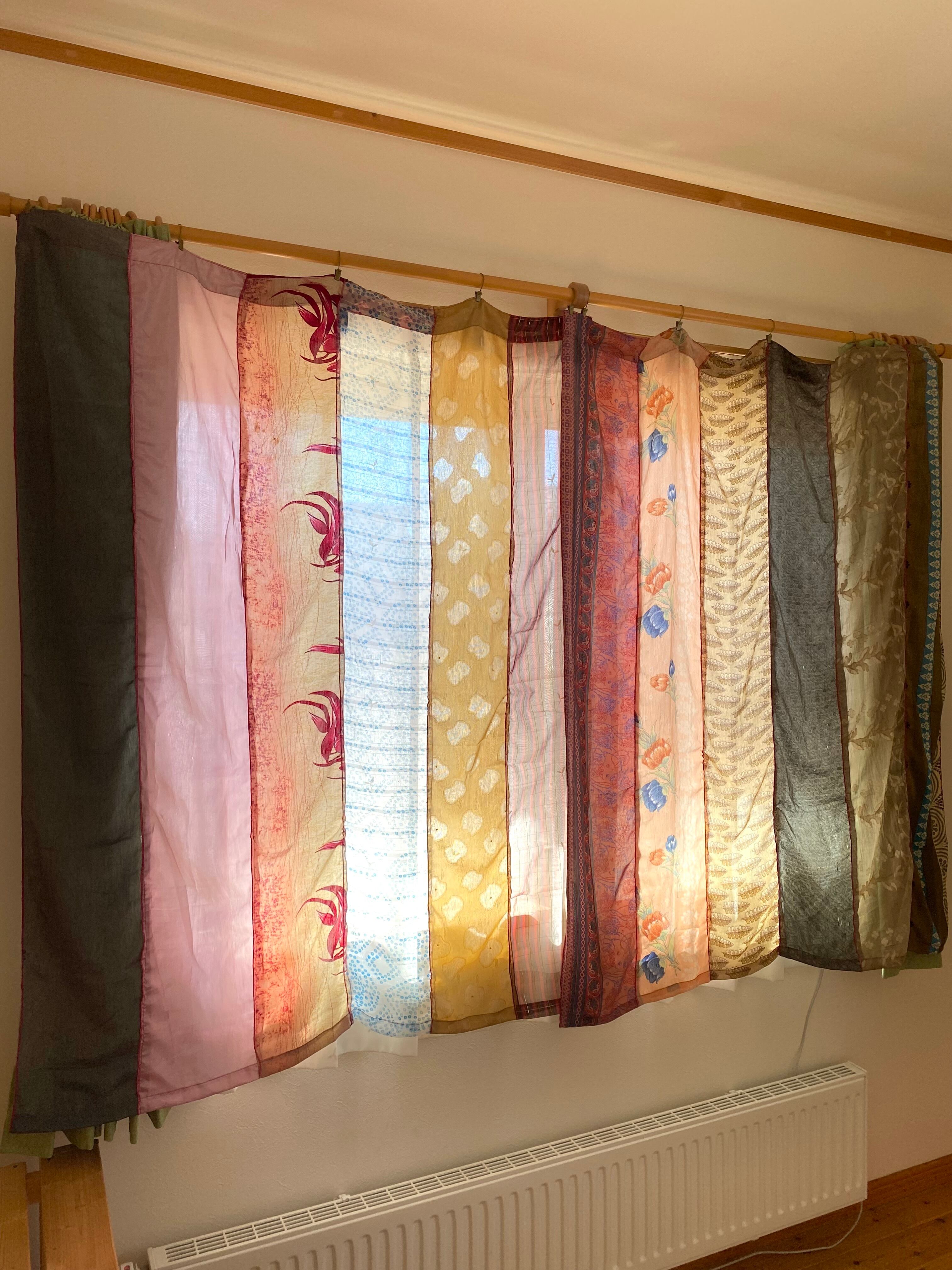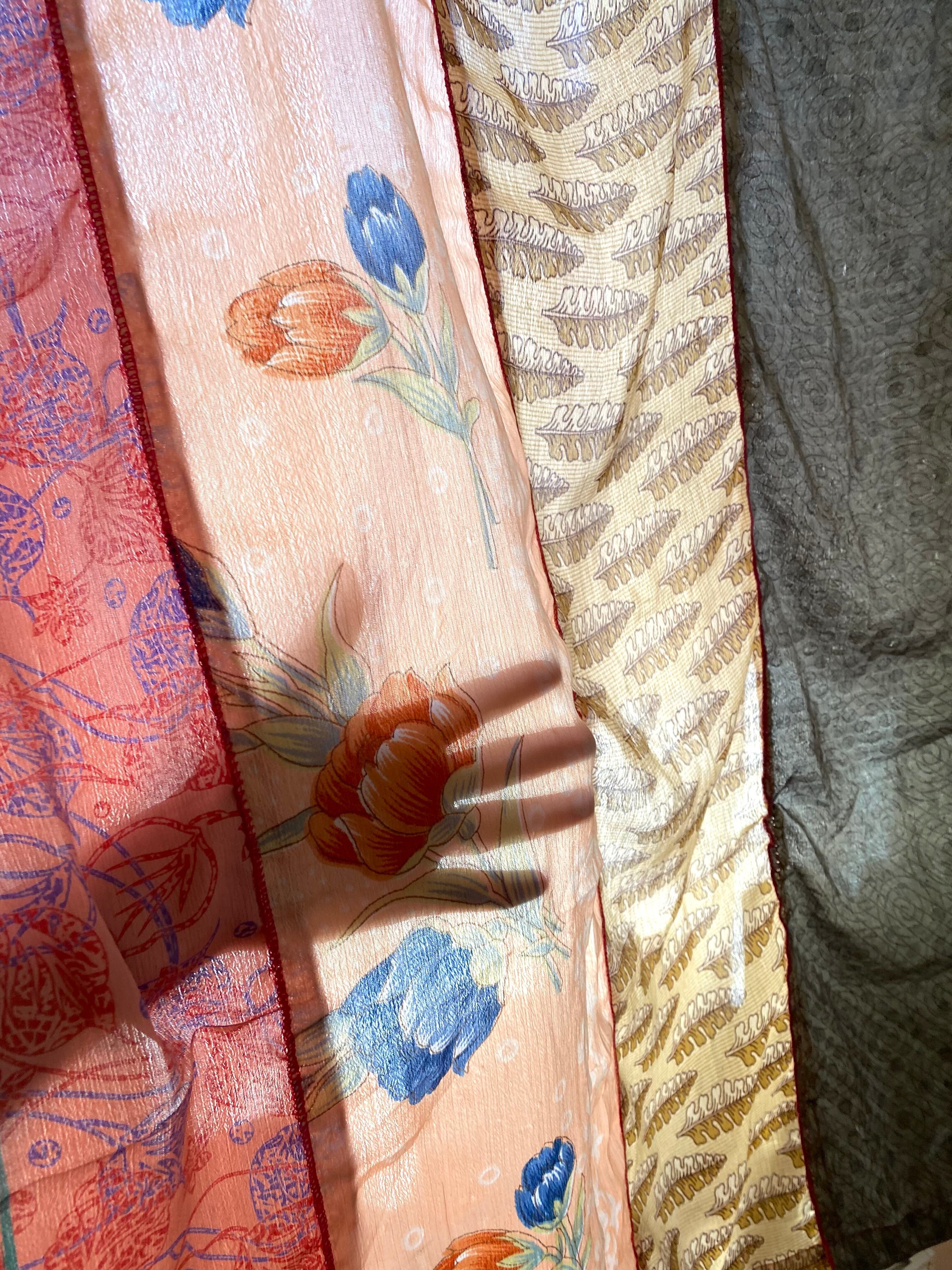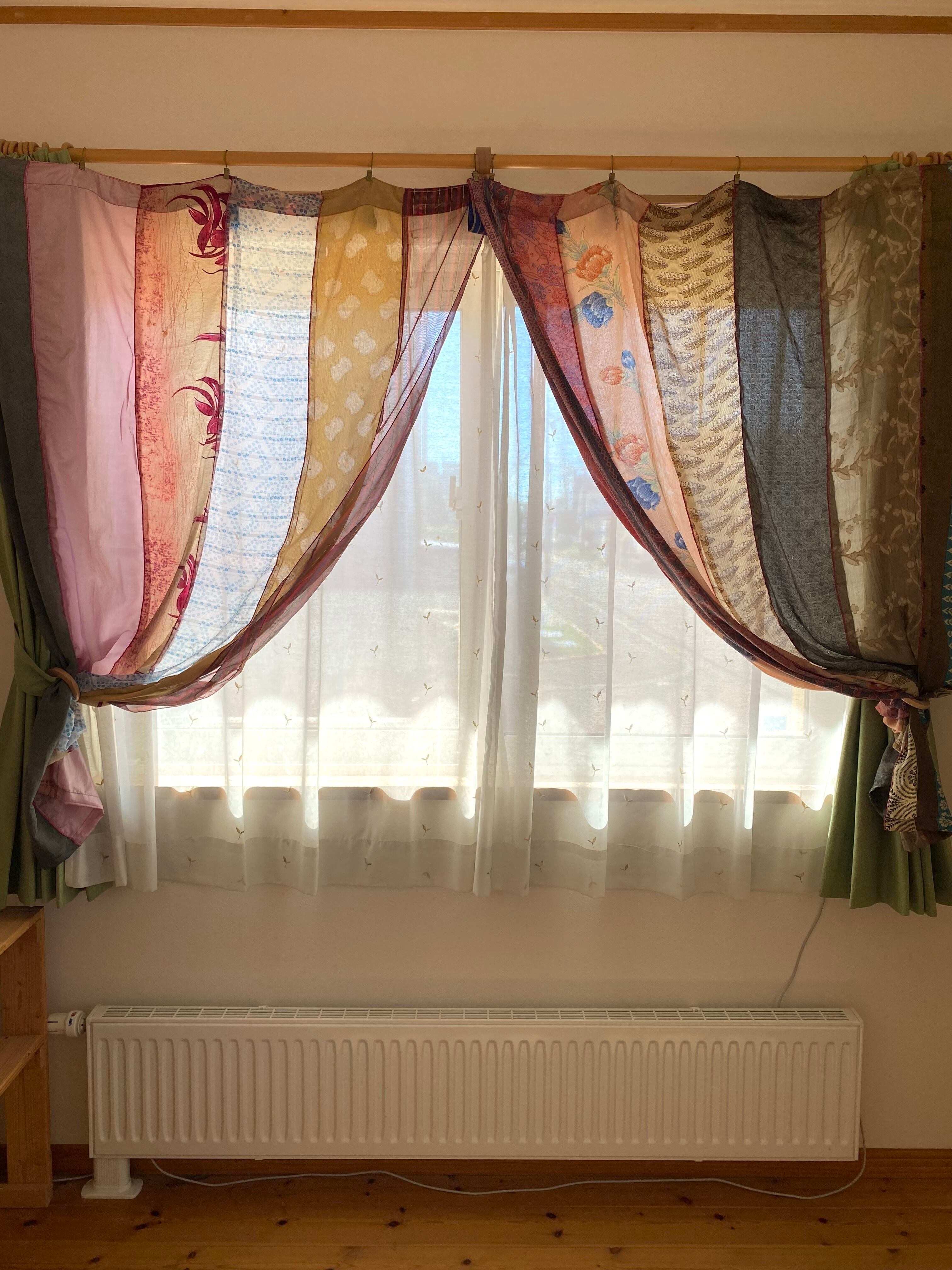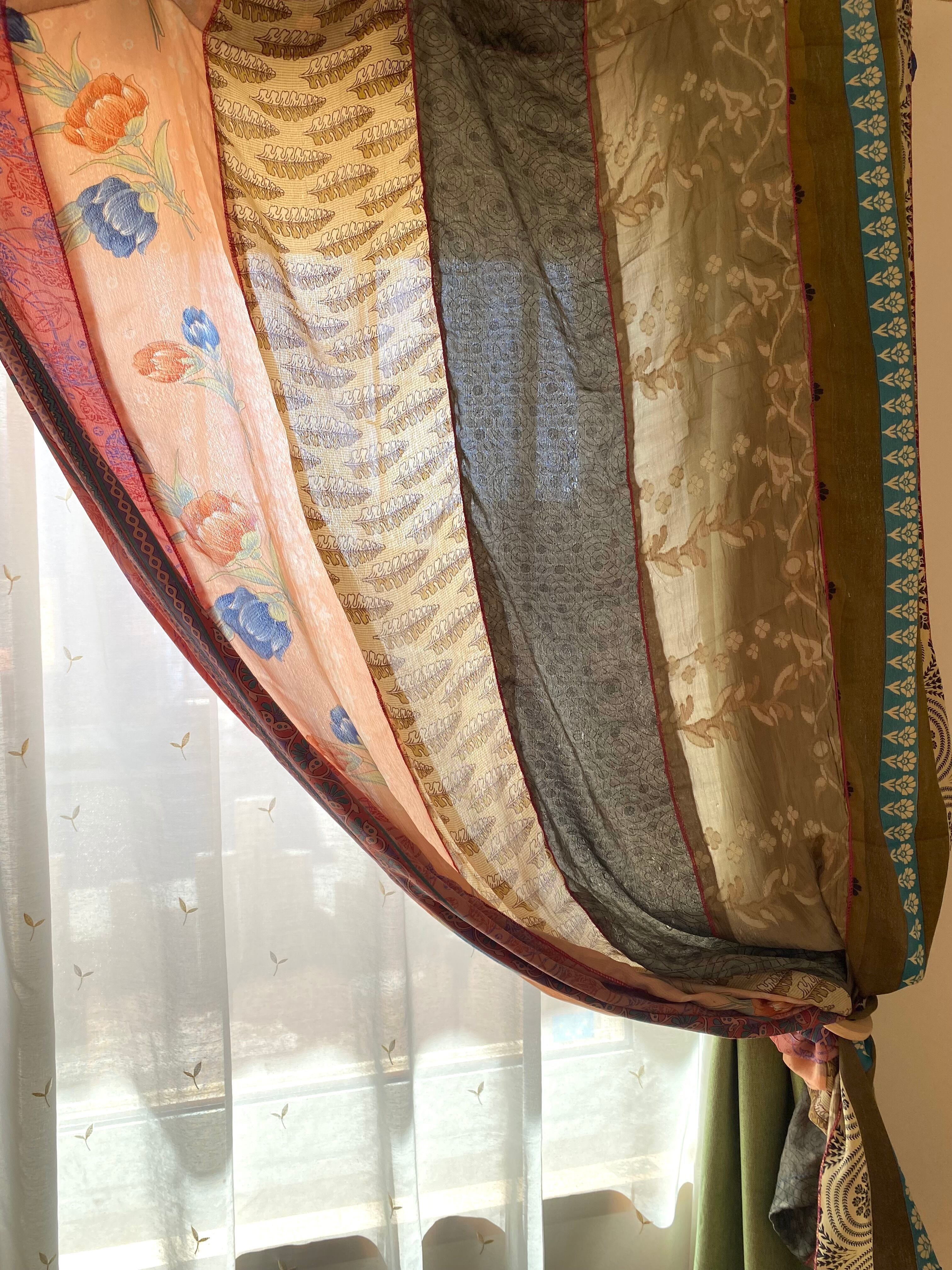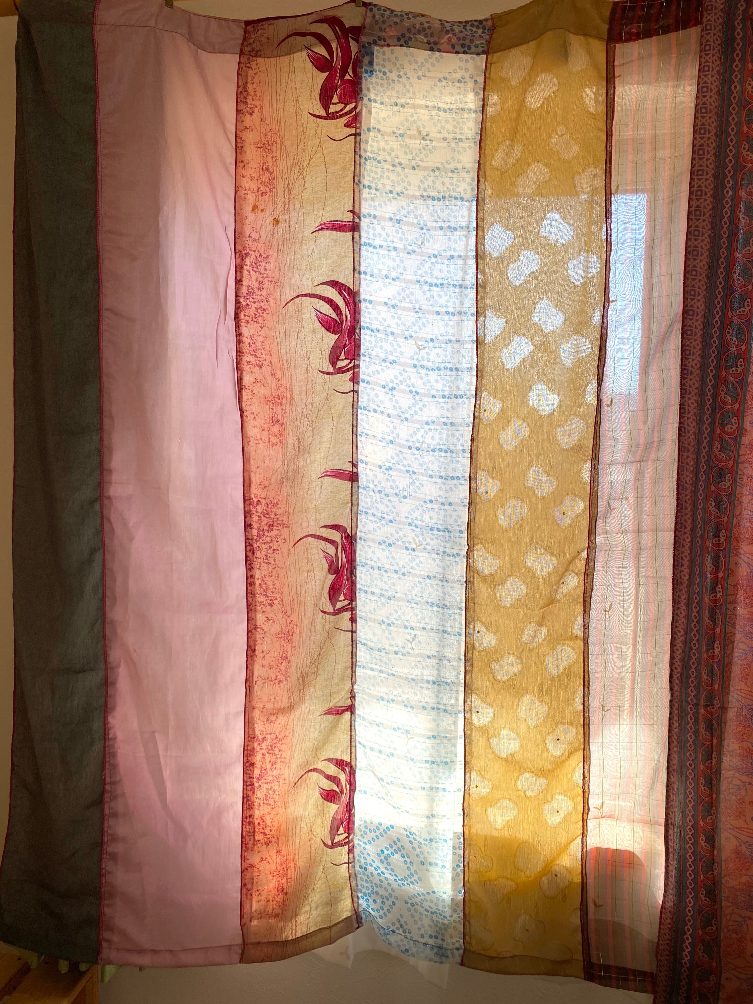 ヴィンテージサリーで出来たパッチワークシルクカーテン