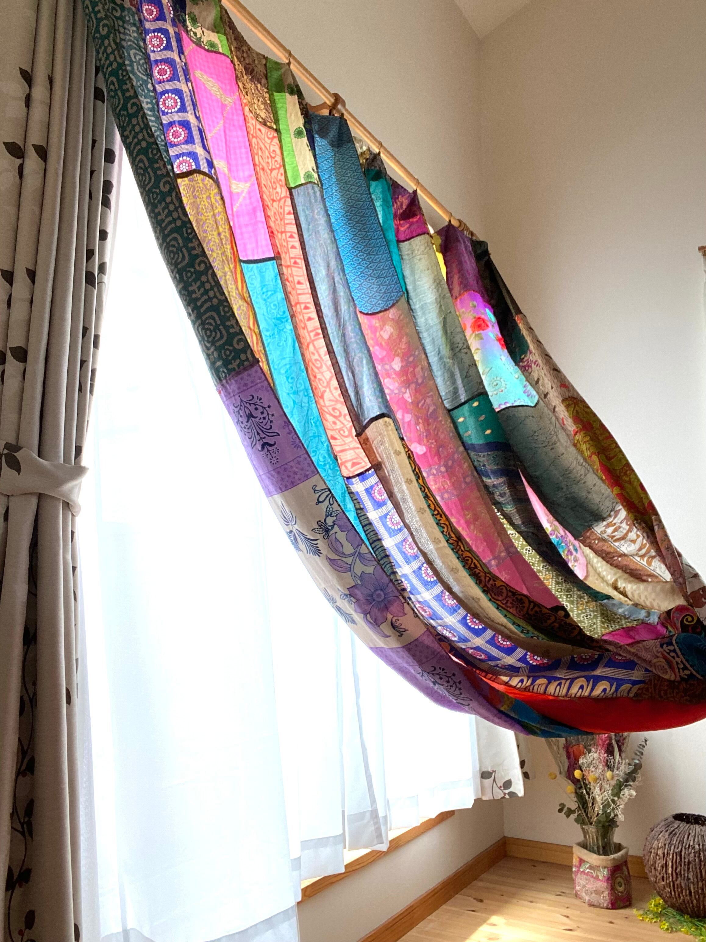 ヴィンテージサリーで出来たパッチワークシルクカーテン