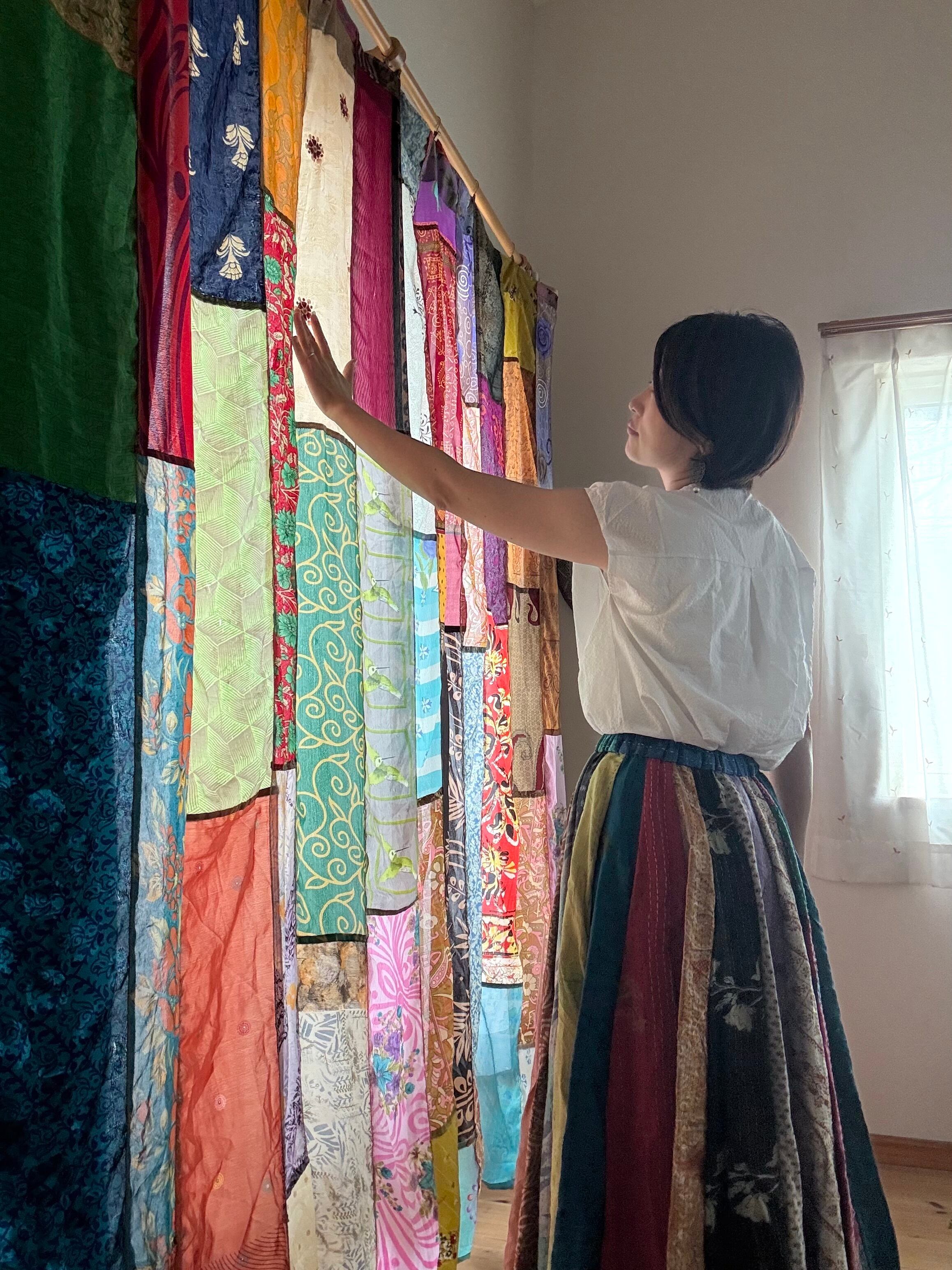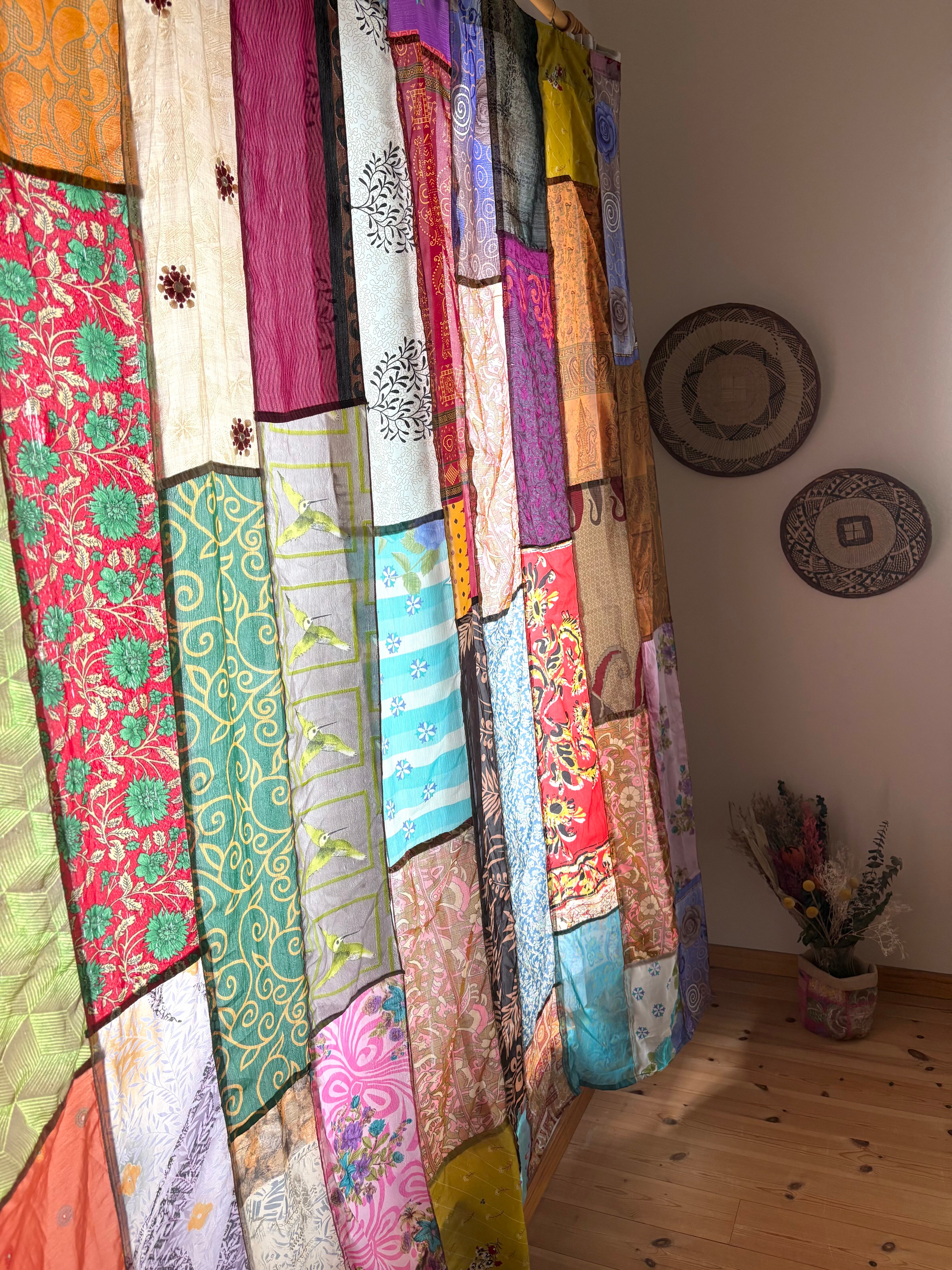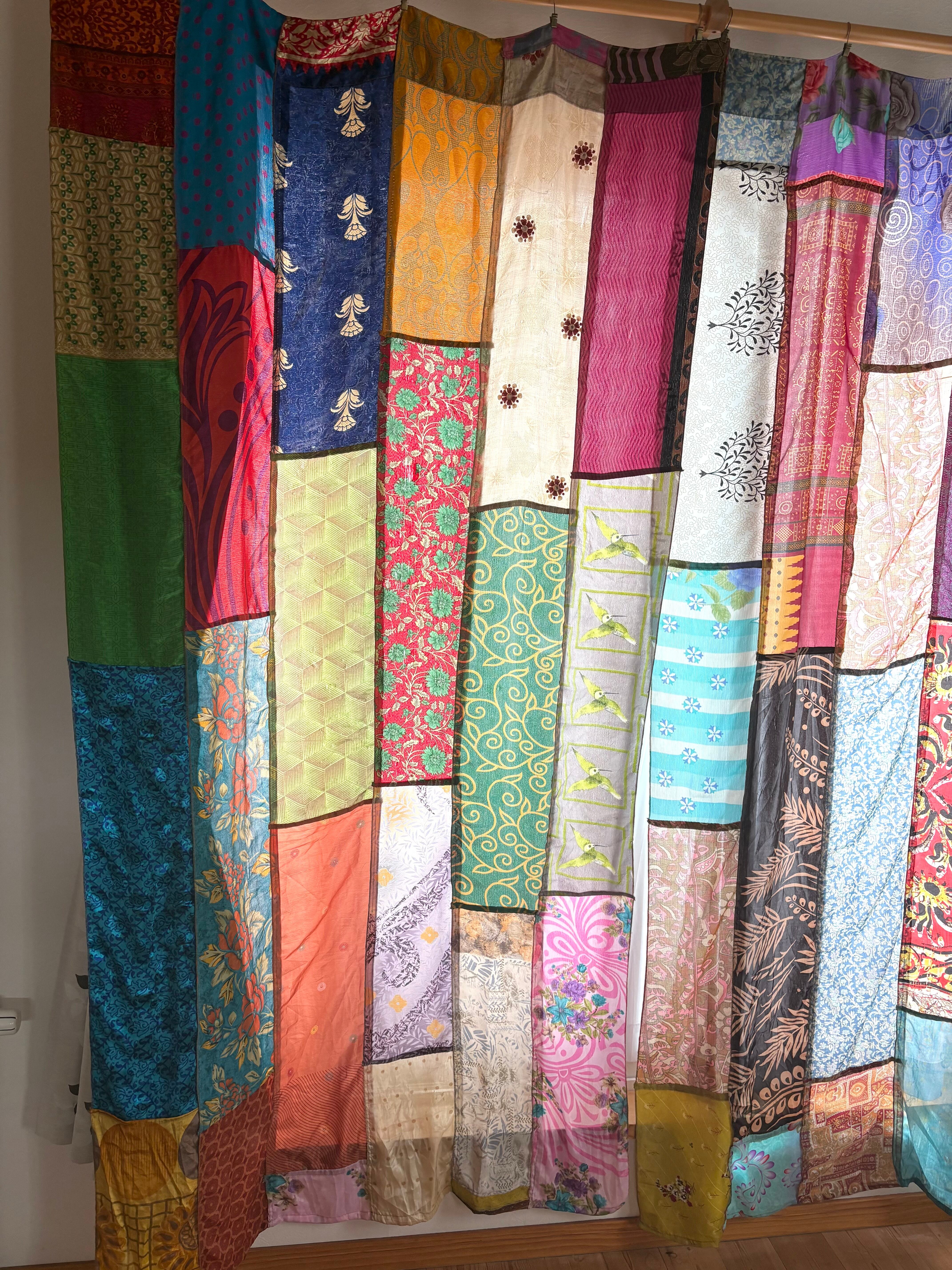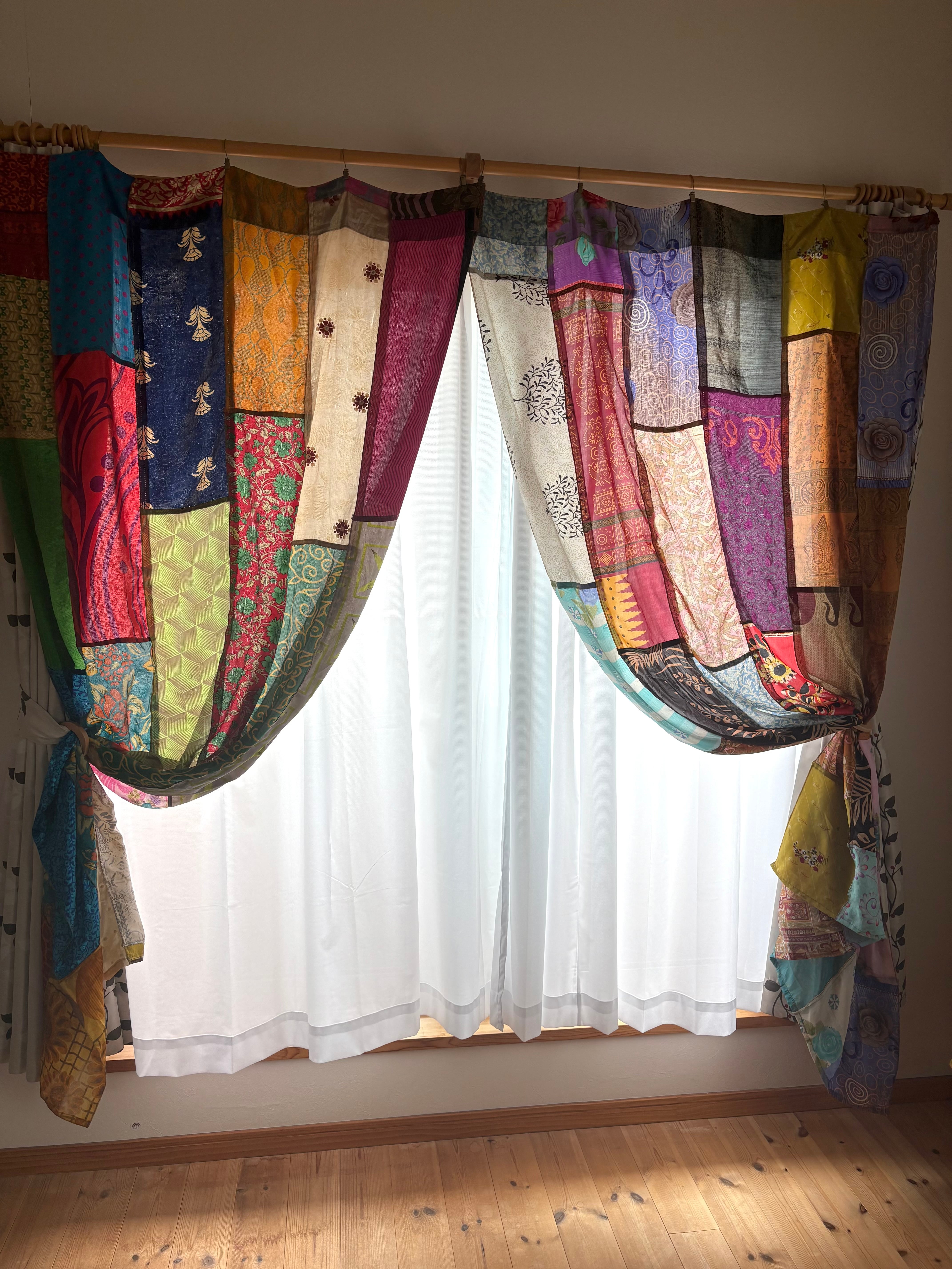 ヴィンテージサリーで出来たパッチワークシルクカーテン