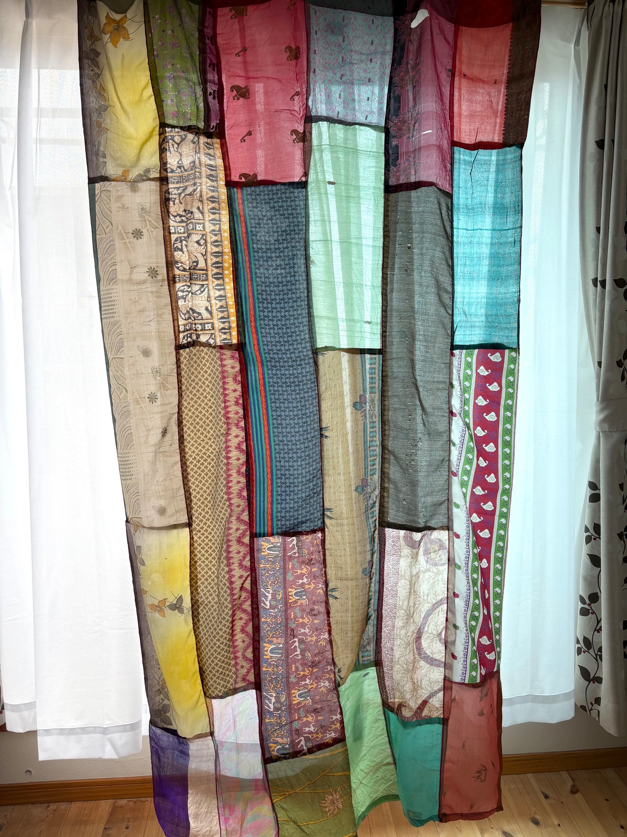 ヴィンテージサリーで出来たパッチワークシルクカーテン