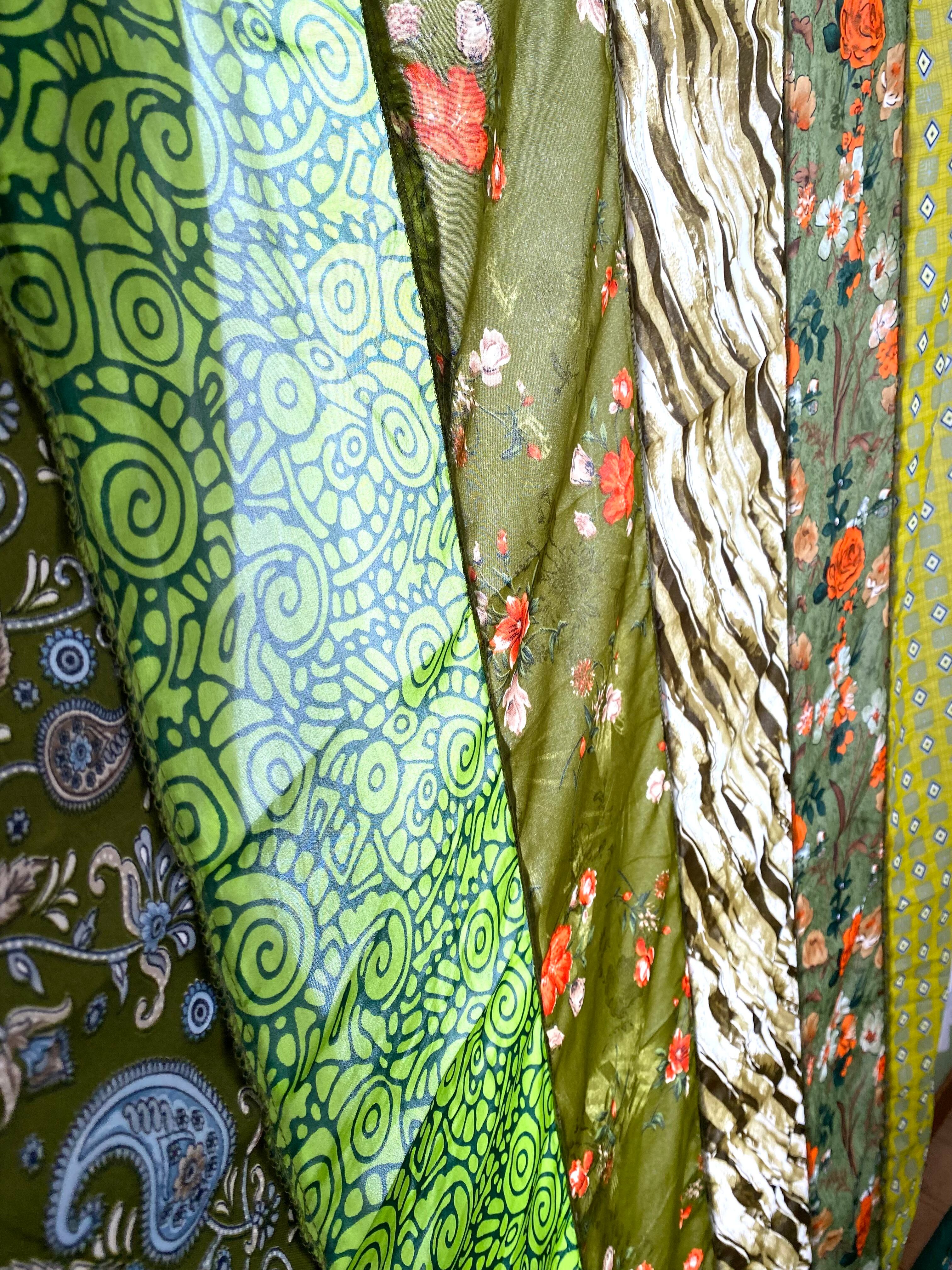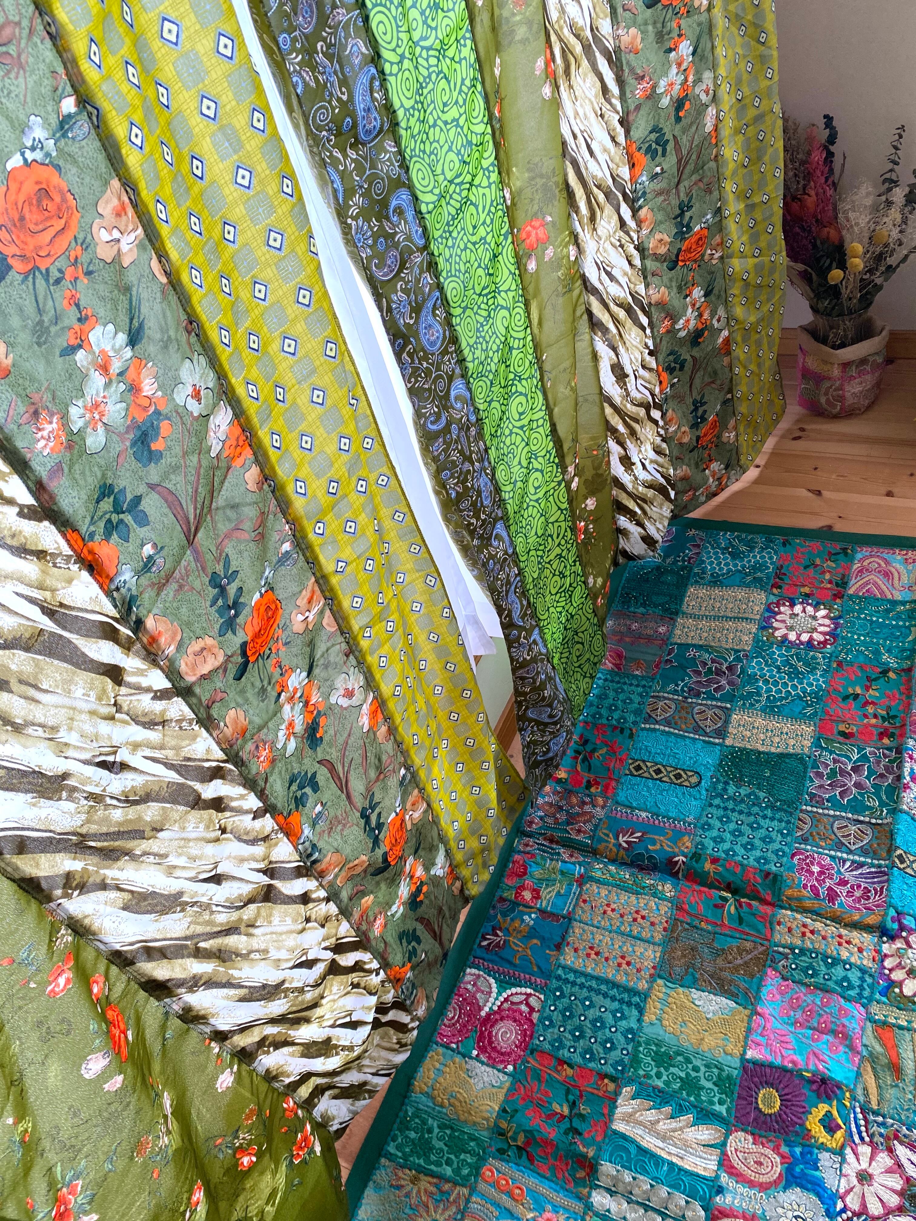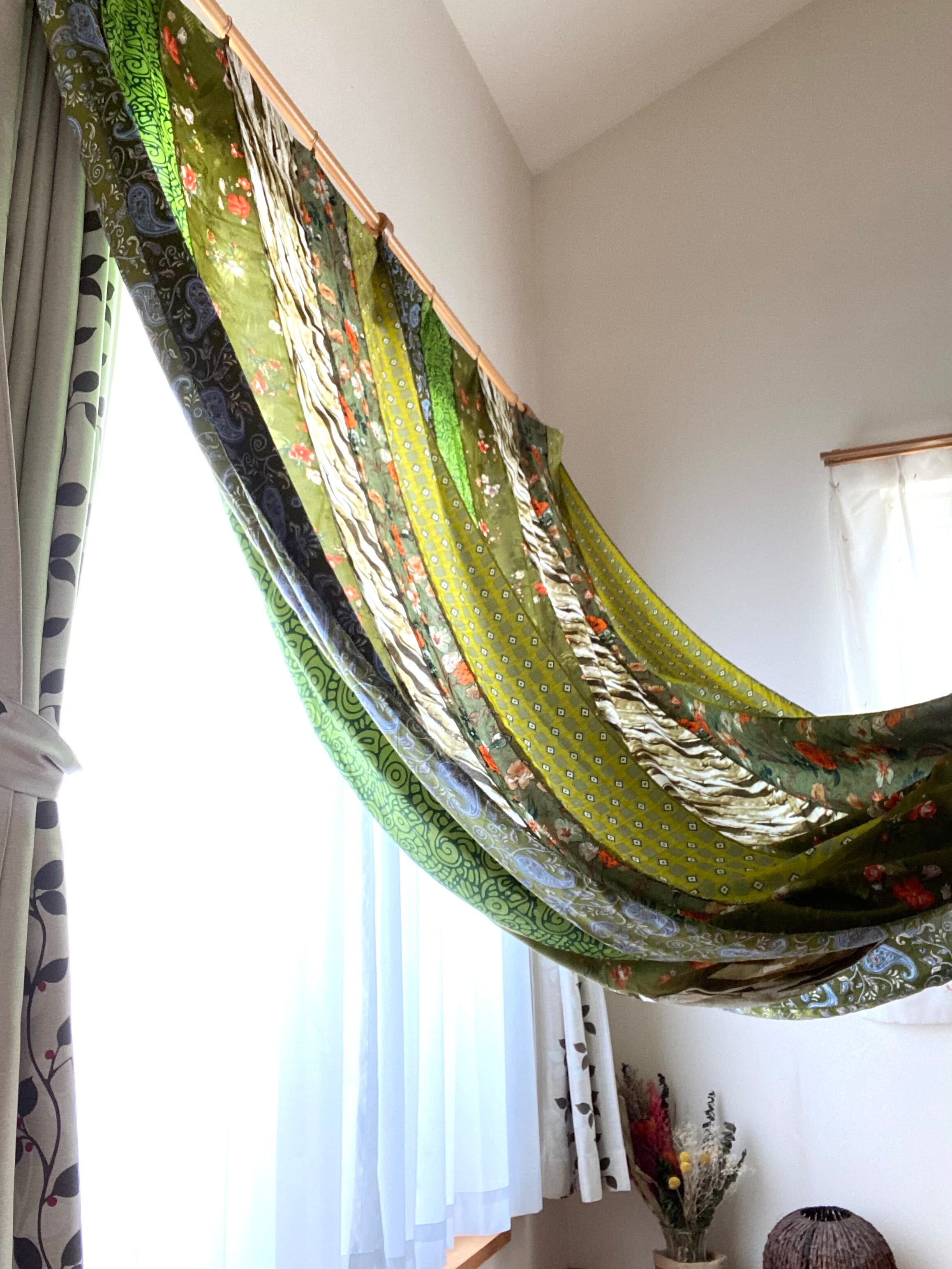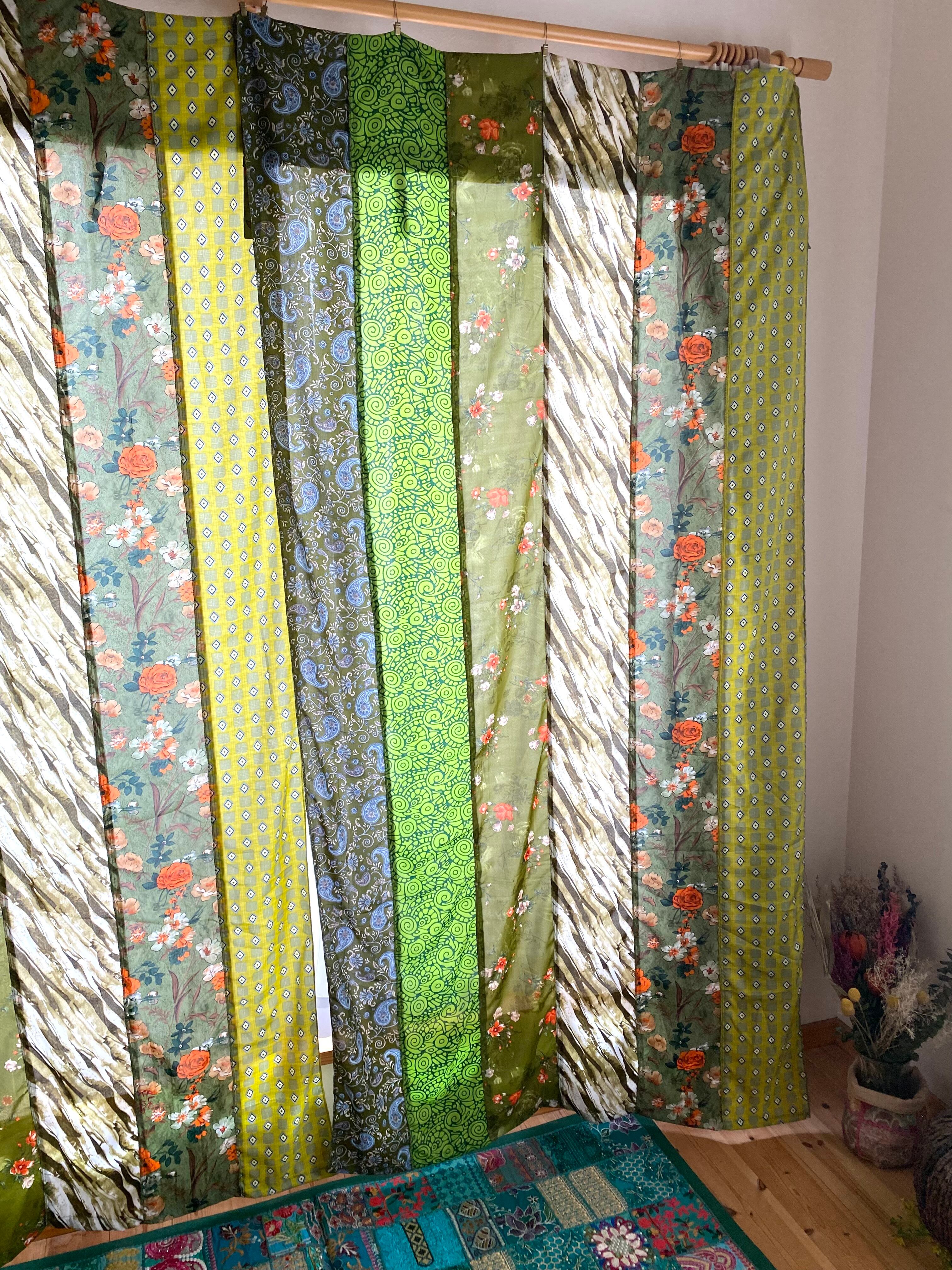 ヴィンテージサリーで出来たパッチワークシルクカーテン