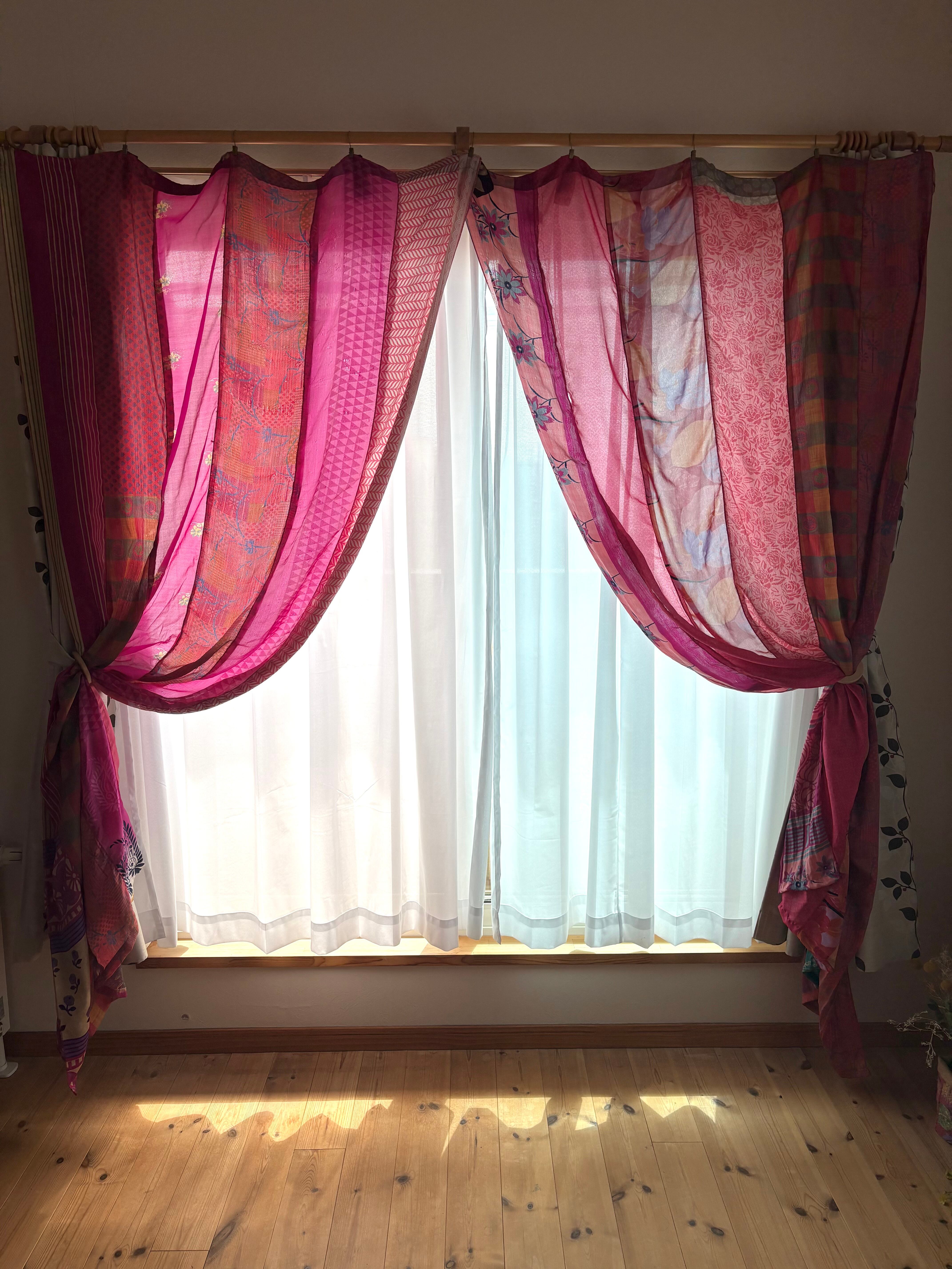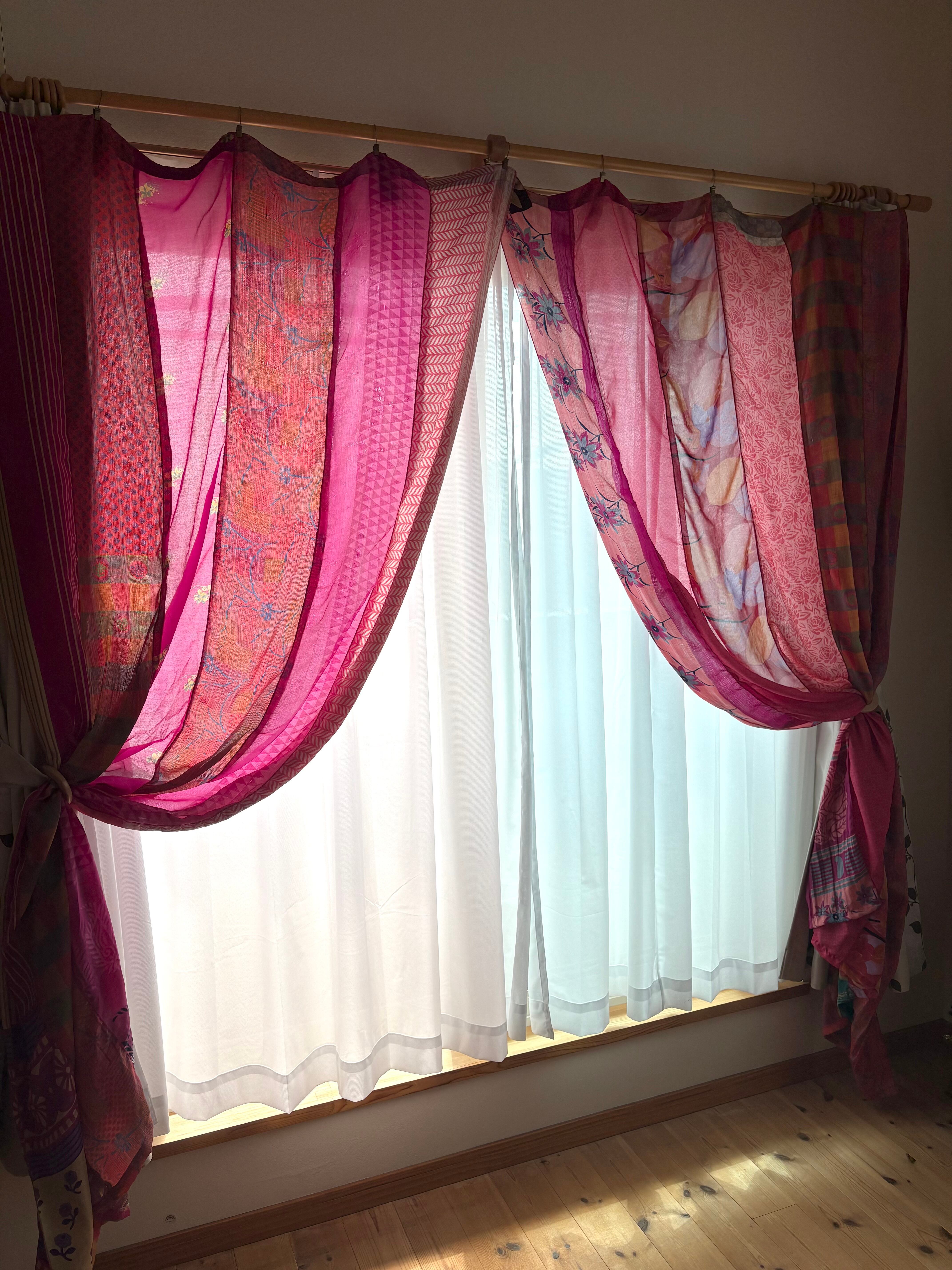 ※カーテンとしては新品未使用ですが、布はヴィンテージサリーを使っております。