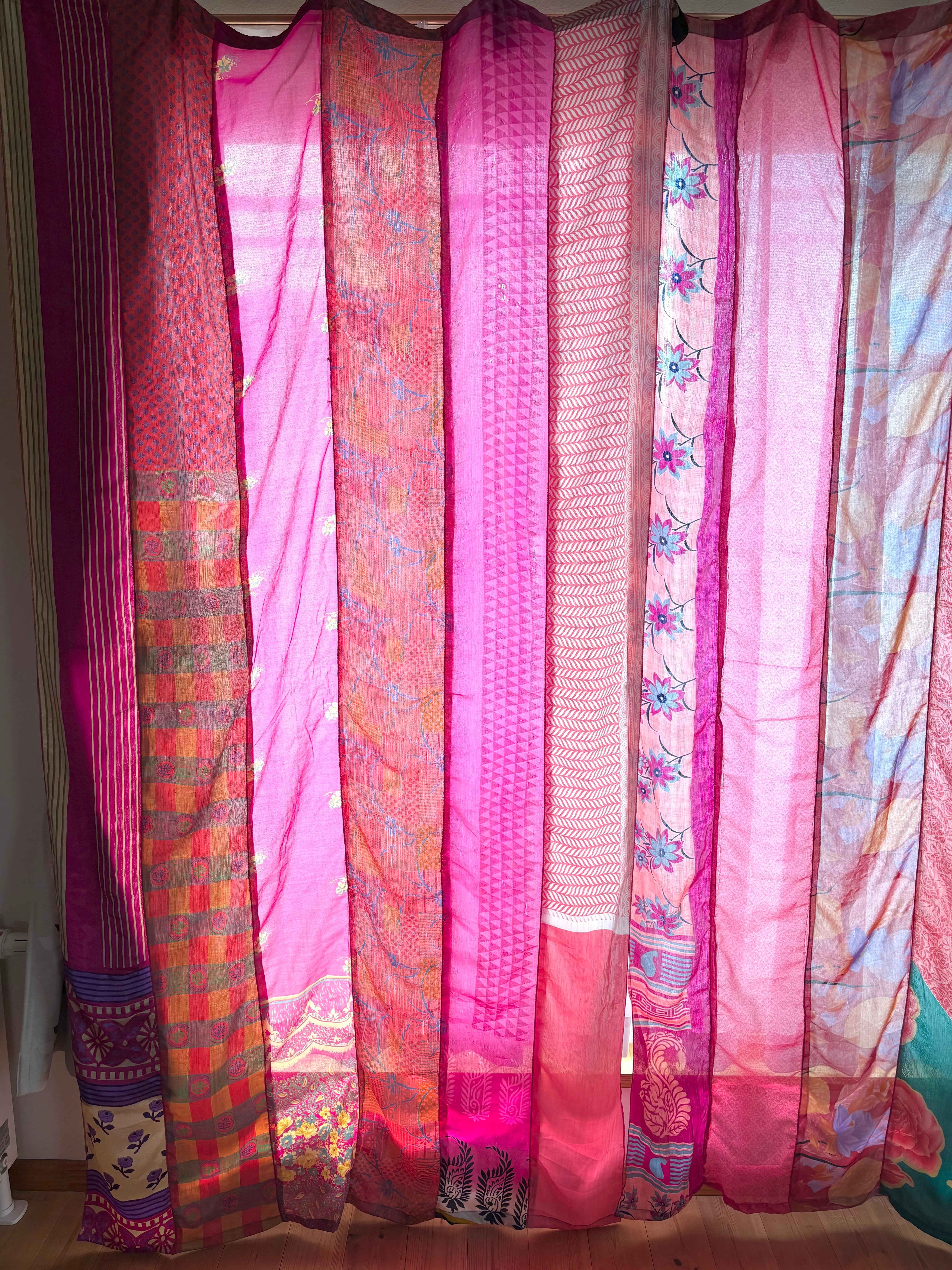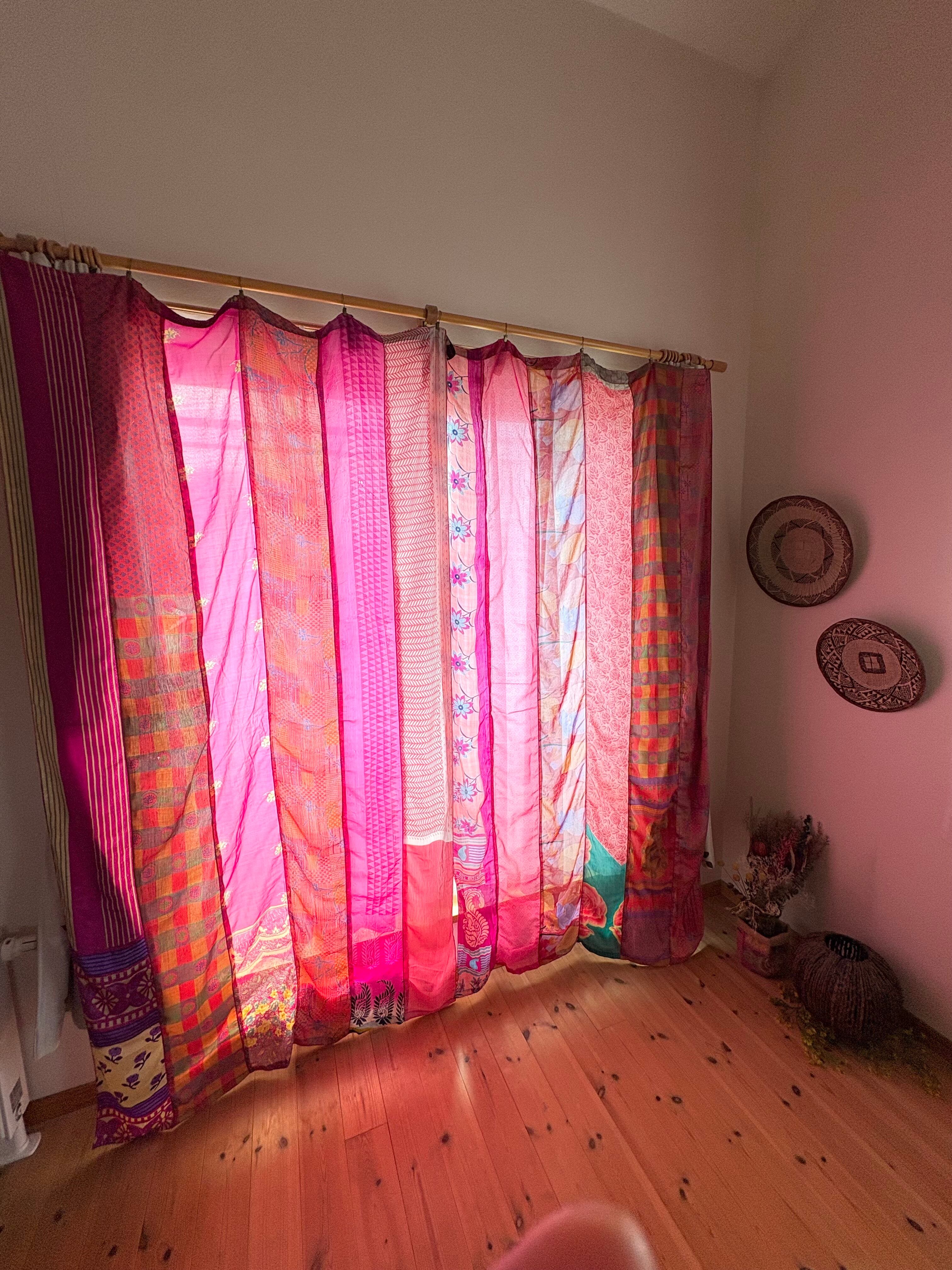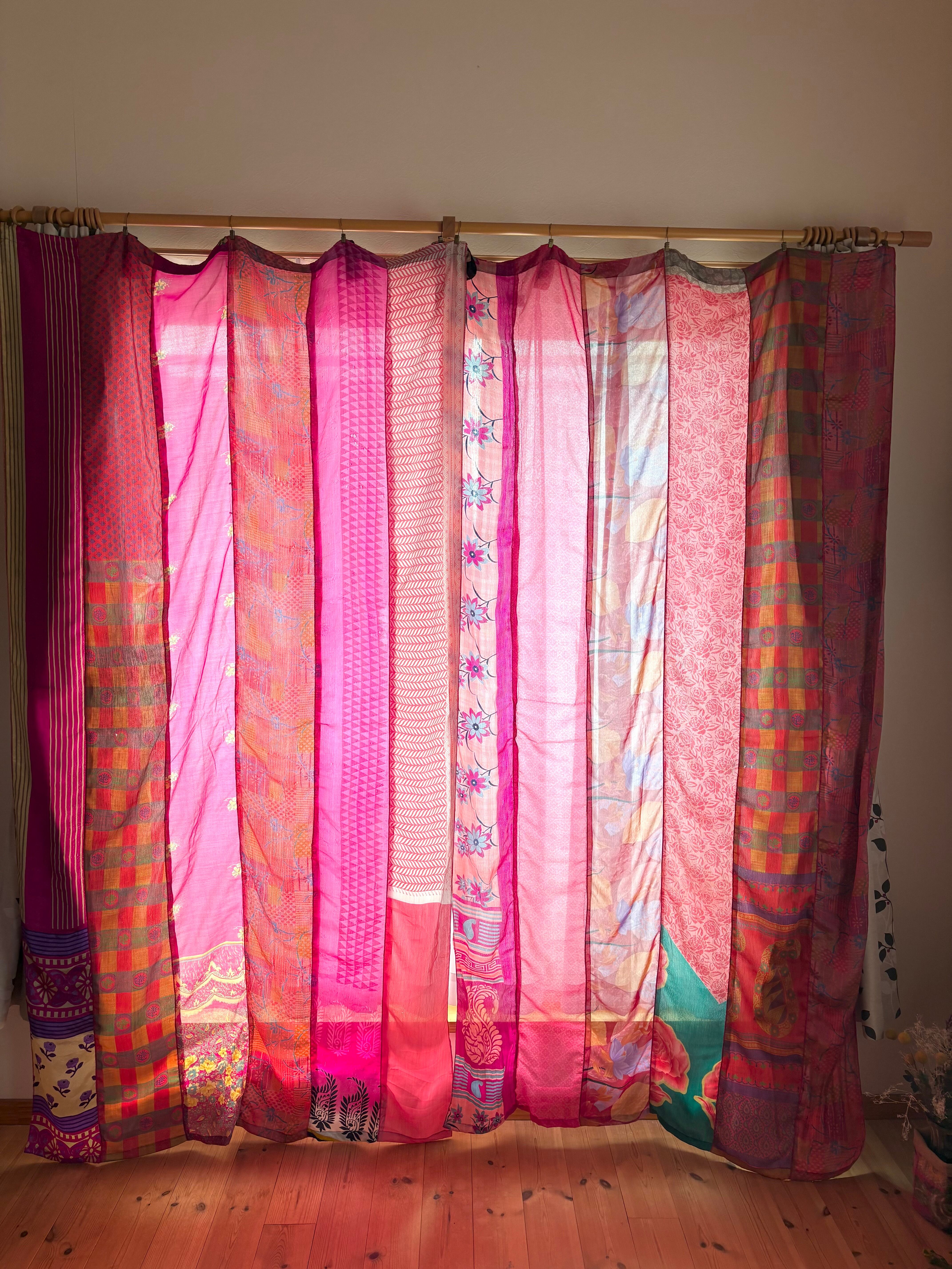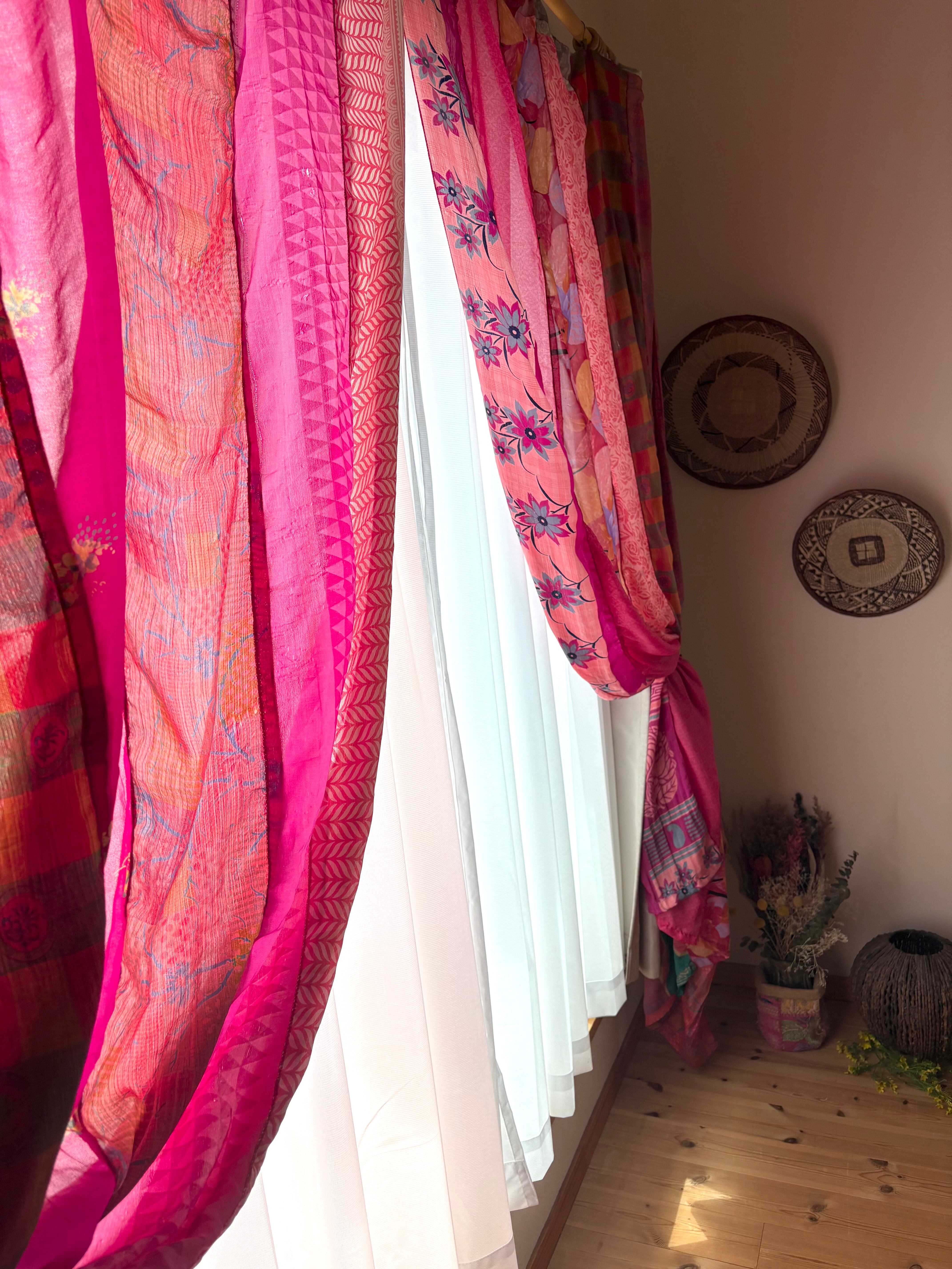 ヴィンテージサリーで出来たパッチワークシルクカーテン