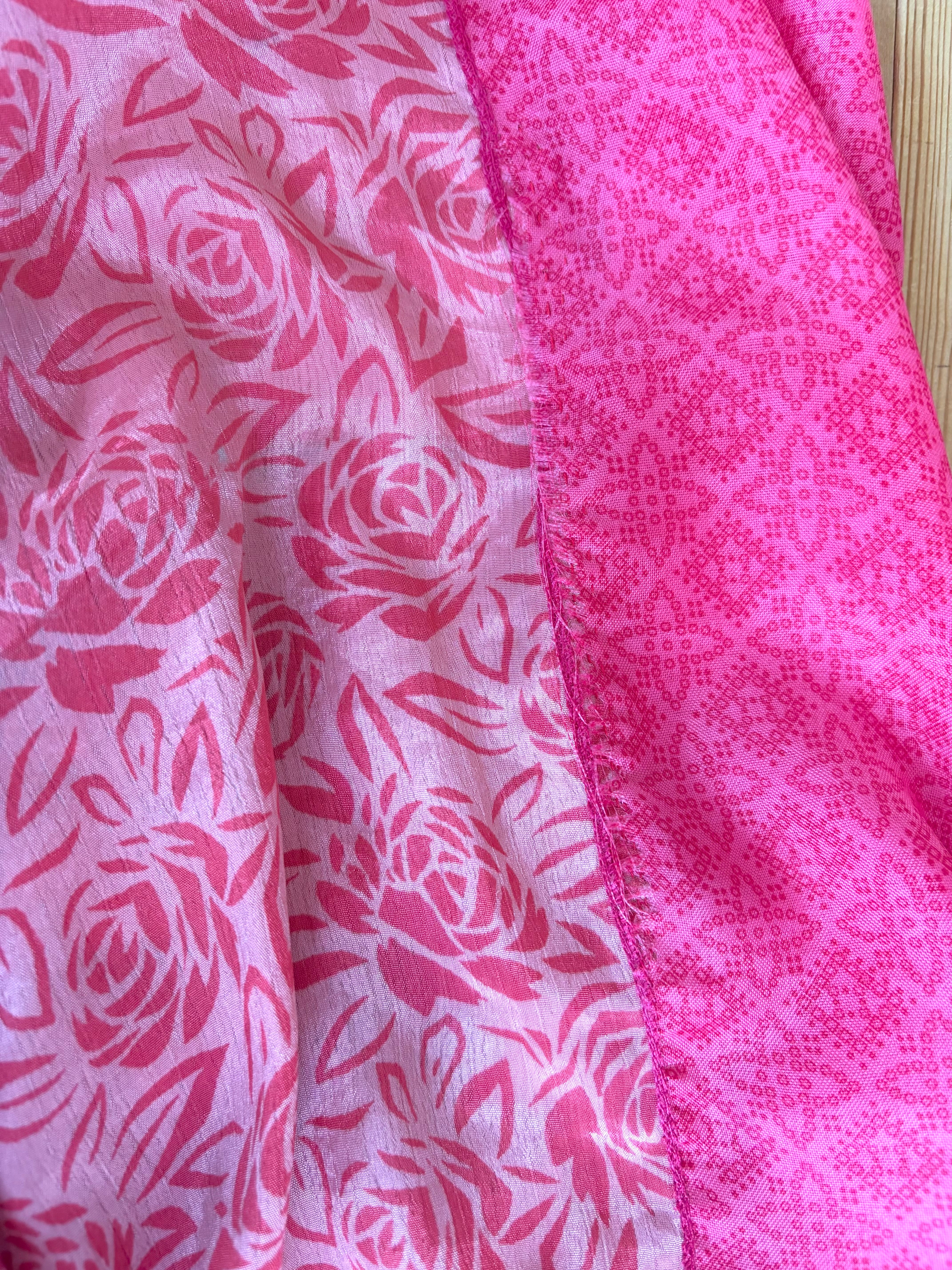 ワンカラーのヴィンテージサリーの生地を集めたとっても魅力的な【ピンクさん】です!!