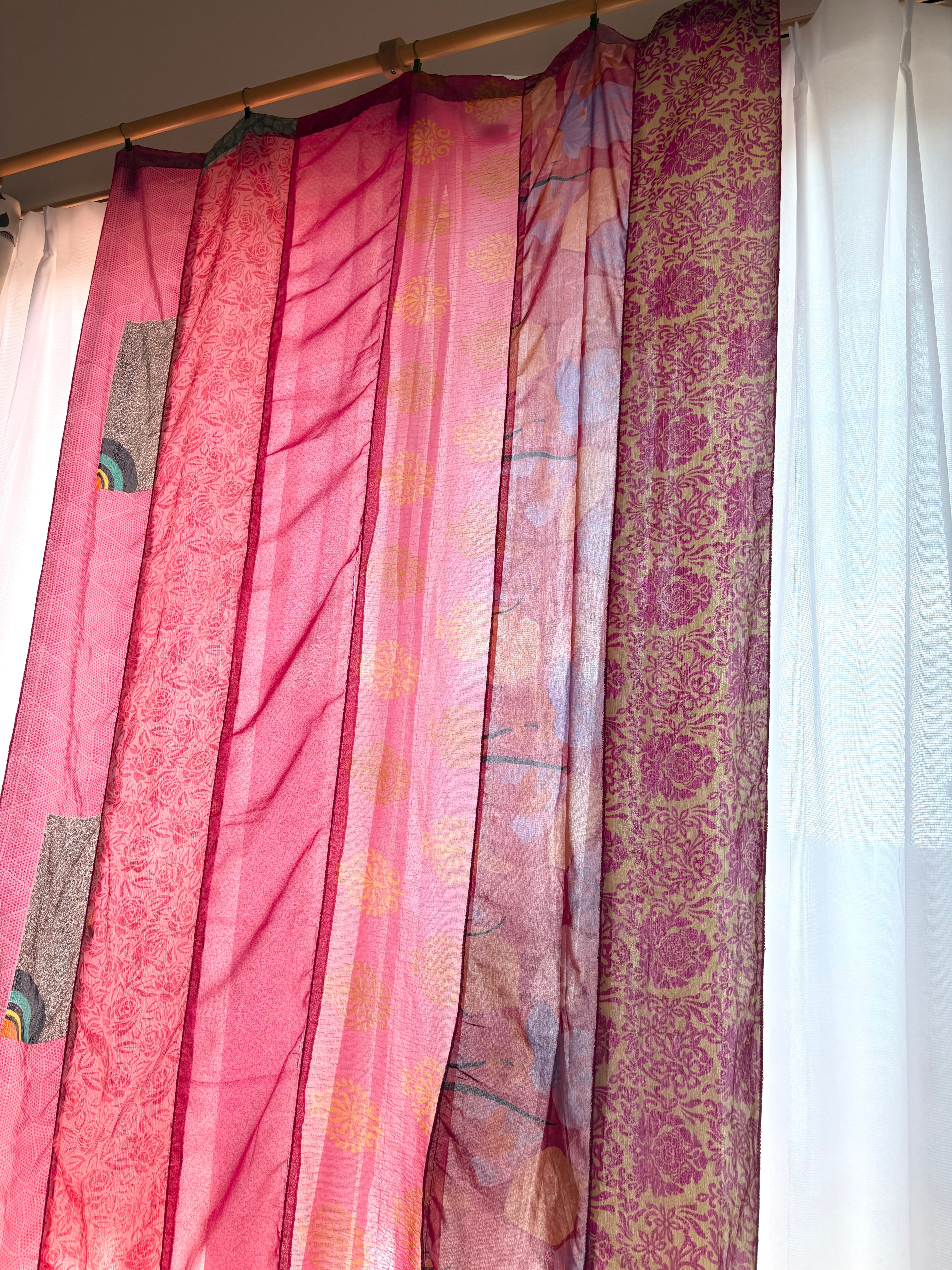 ヴィンテージサリーで出来たパッチワークシルクカーテン