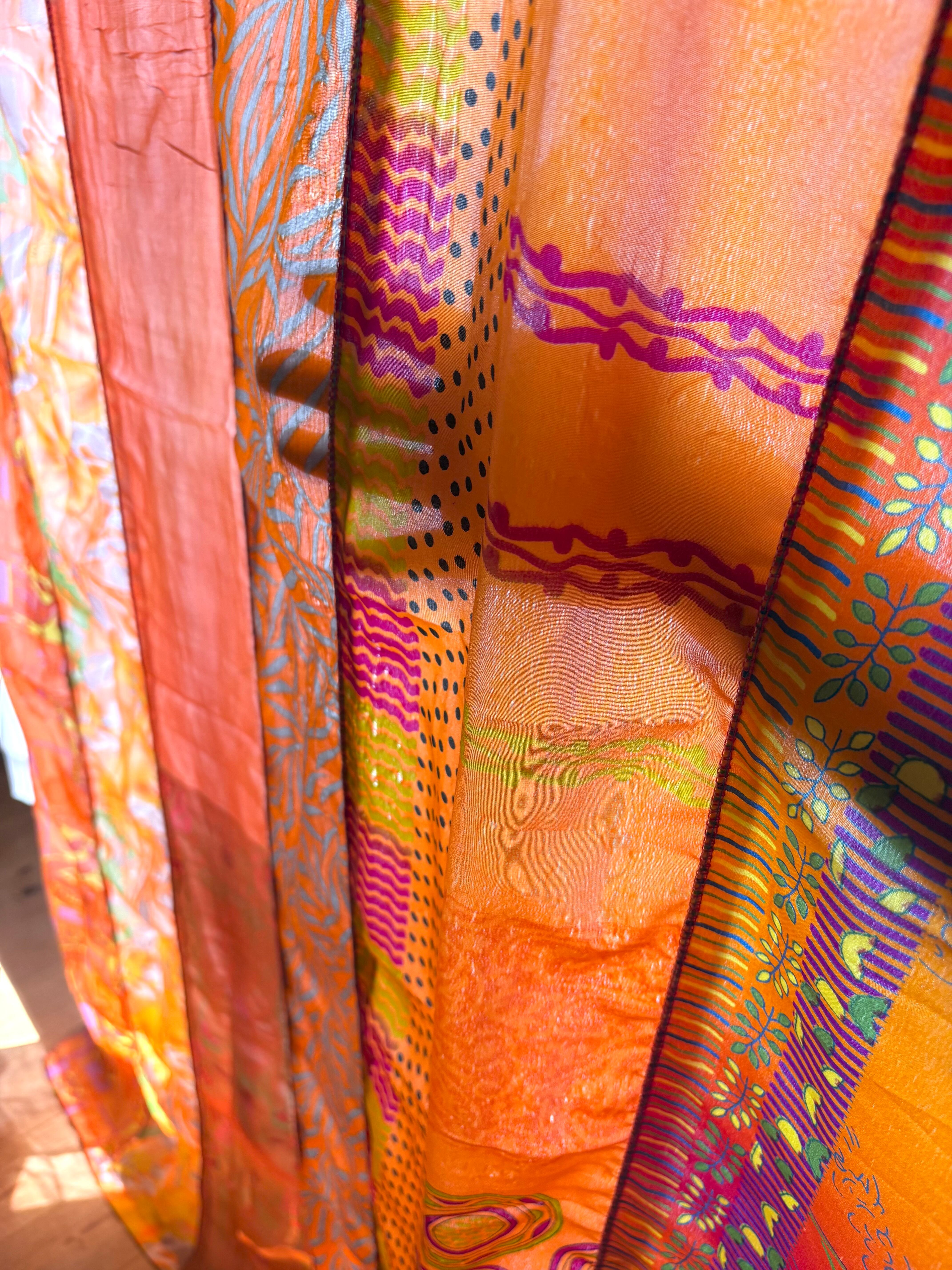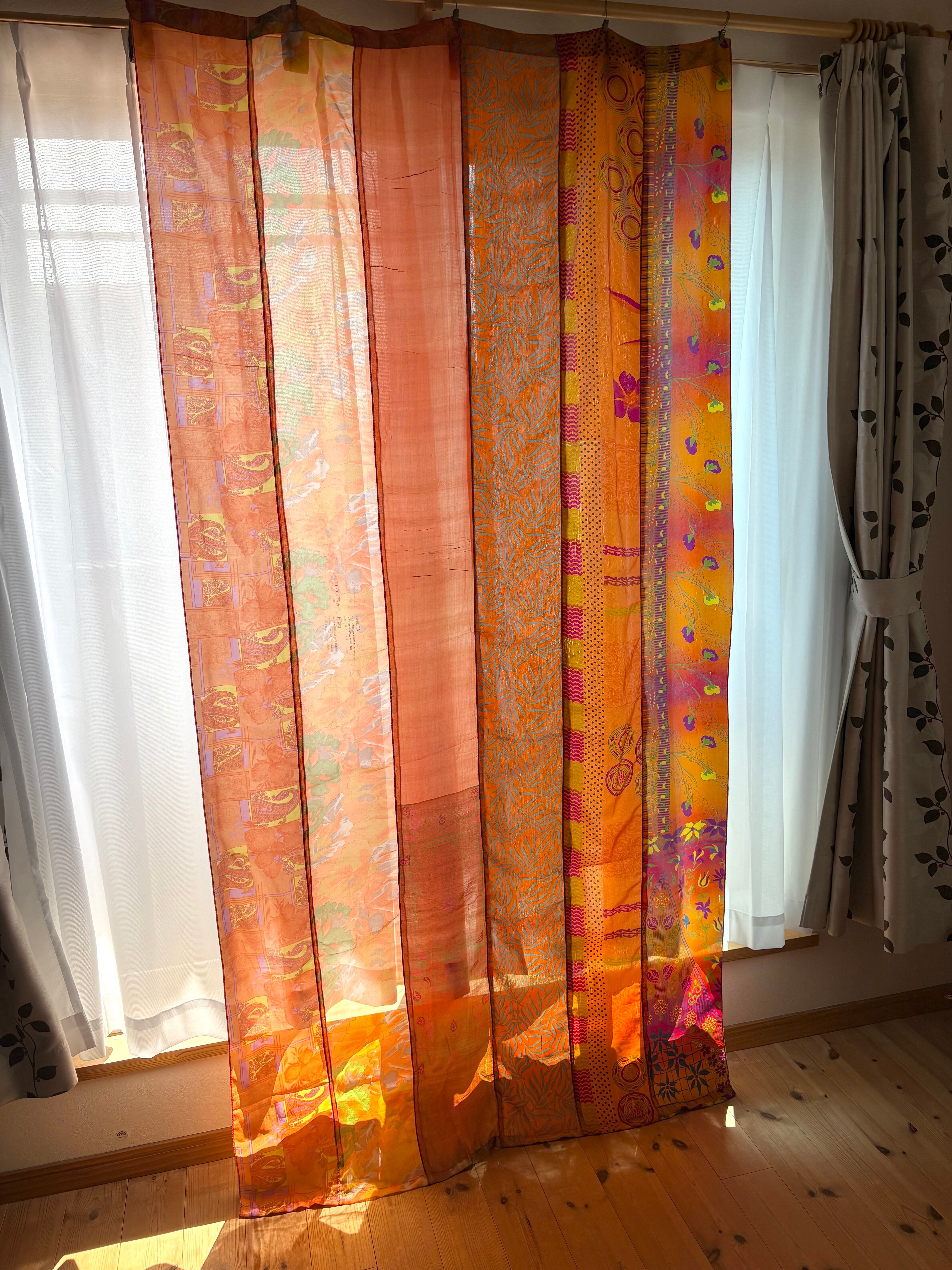 ヴィンテージサリーで出来たパッチワークシルクカーテン